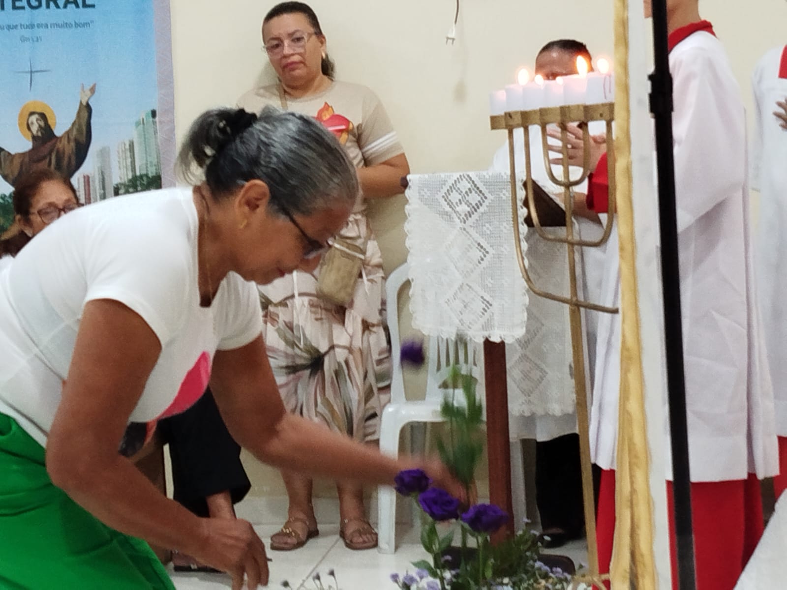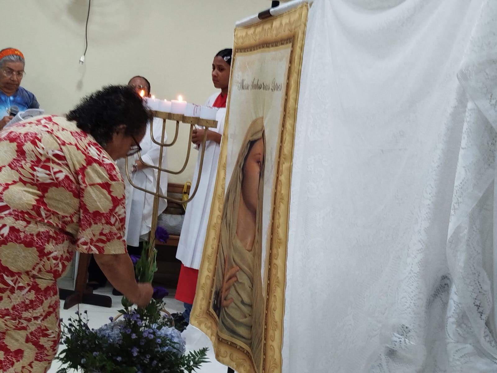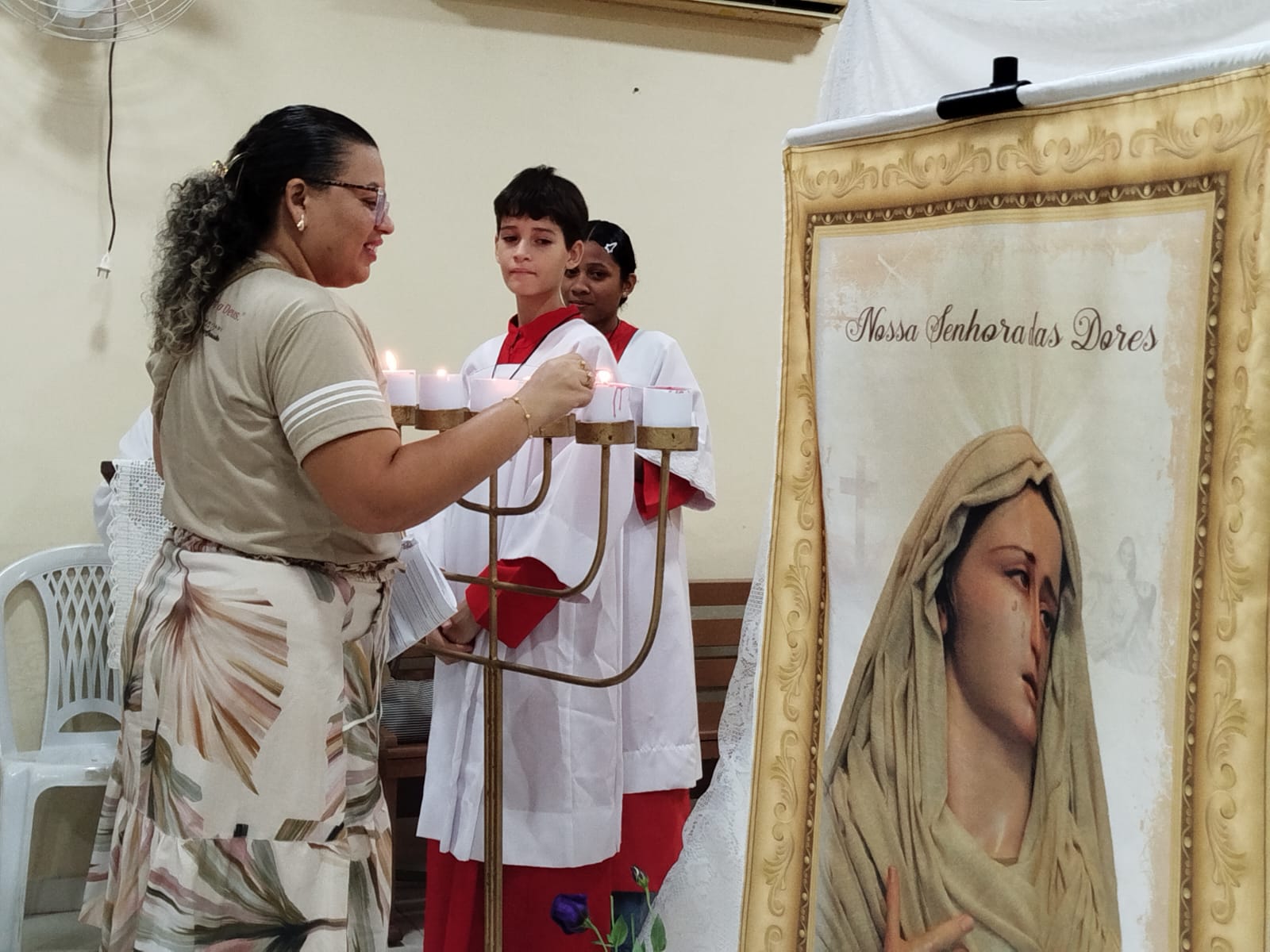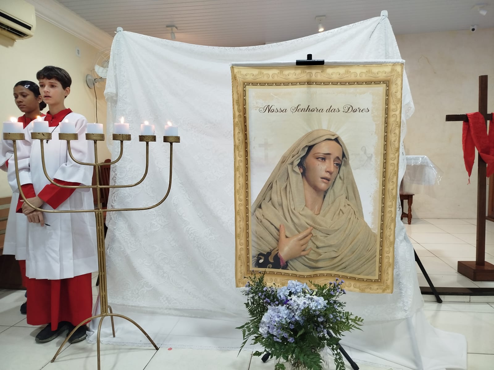 Nesta segunda-feira da Semana Santa (14/04), meditamos e contemplamos às Dores de Nossa Senhora com o tema: MARIA ESPERANÇA DO POVO. Contemplamos alguns momentos dolorosos que marcaram a vida de Maria, que nos permitirão compreender melhor o imenso amor e sacrifício da Mãe de Deus, desde quando aceitou ser a Mãe do Salvador. As celebrações aconteceram nas Comunidades São Raimundo Nonato e Beata Maria Assunta com a participação de uma numerosa assembleia que vivenciou este momento tão significativo da Semana Santa.