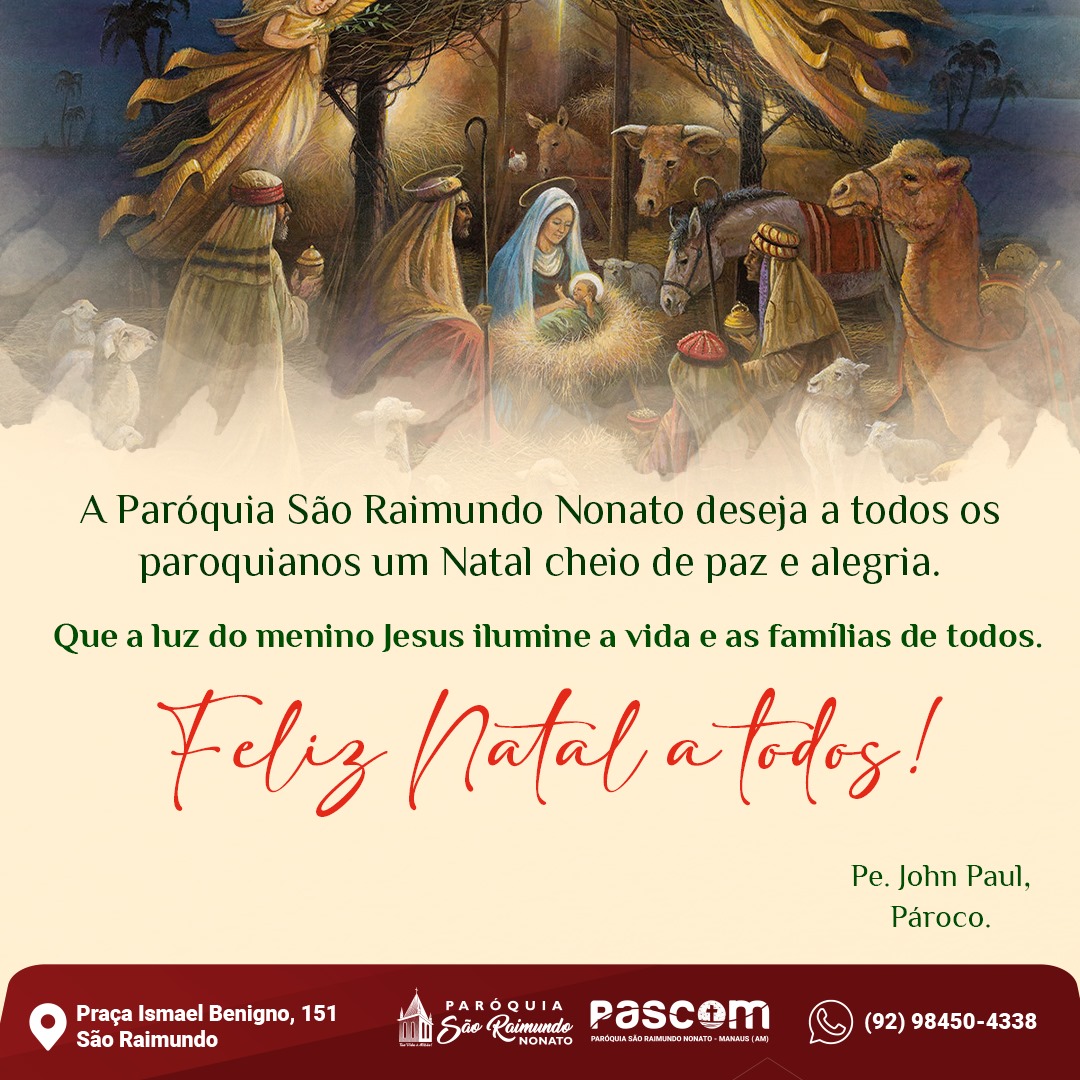 Feliz Natal! Que Jesus os abençoe e que a Virgem Maria e São José cuidem de sua família, hoje e sempre. Amém!