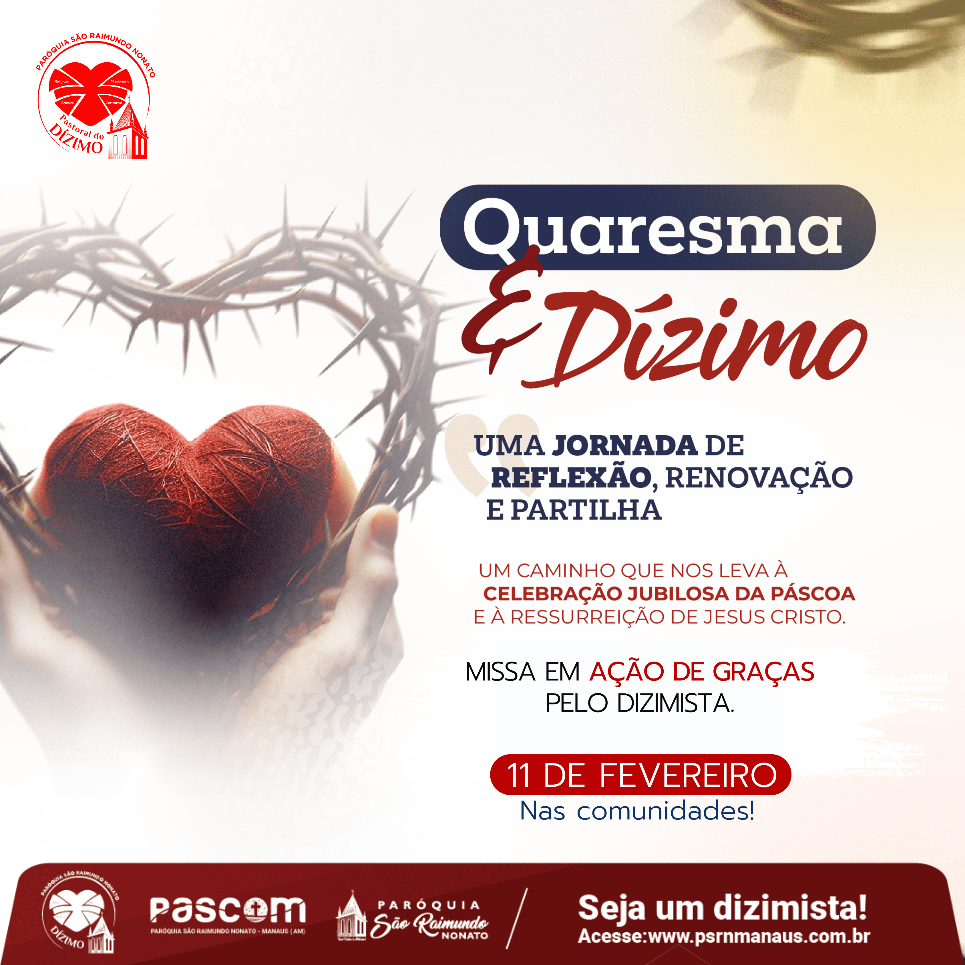 Embarque conosco neste caminho de reflexão, renovação e partilha. A Quaresma, assim como a partilha do Dízimo, é um tempo para nos aproximarmos de Deus, fortalecer nossa fé e aprofundar nosso compromisso com a comunidade.