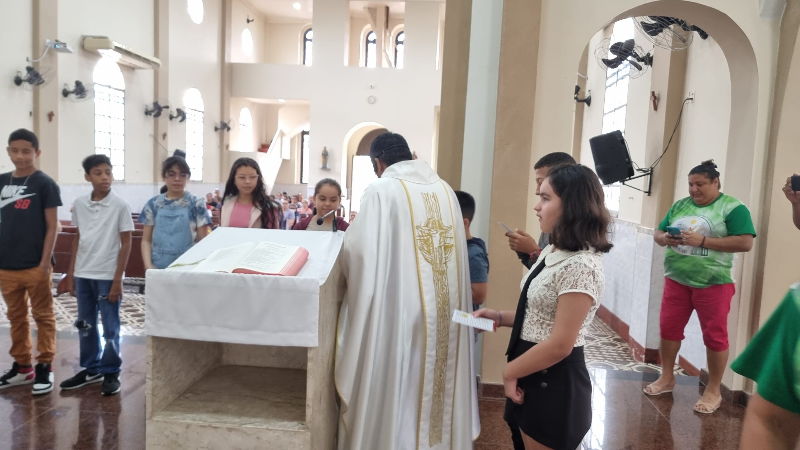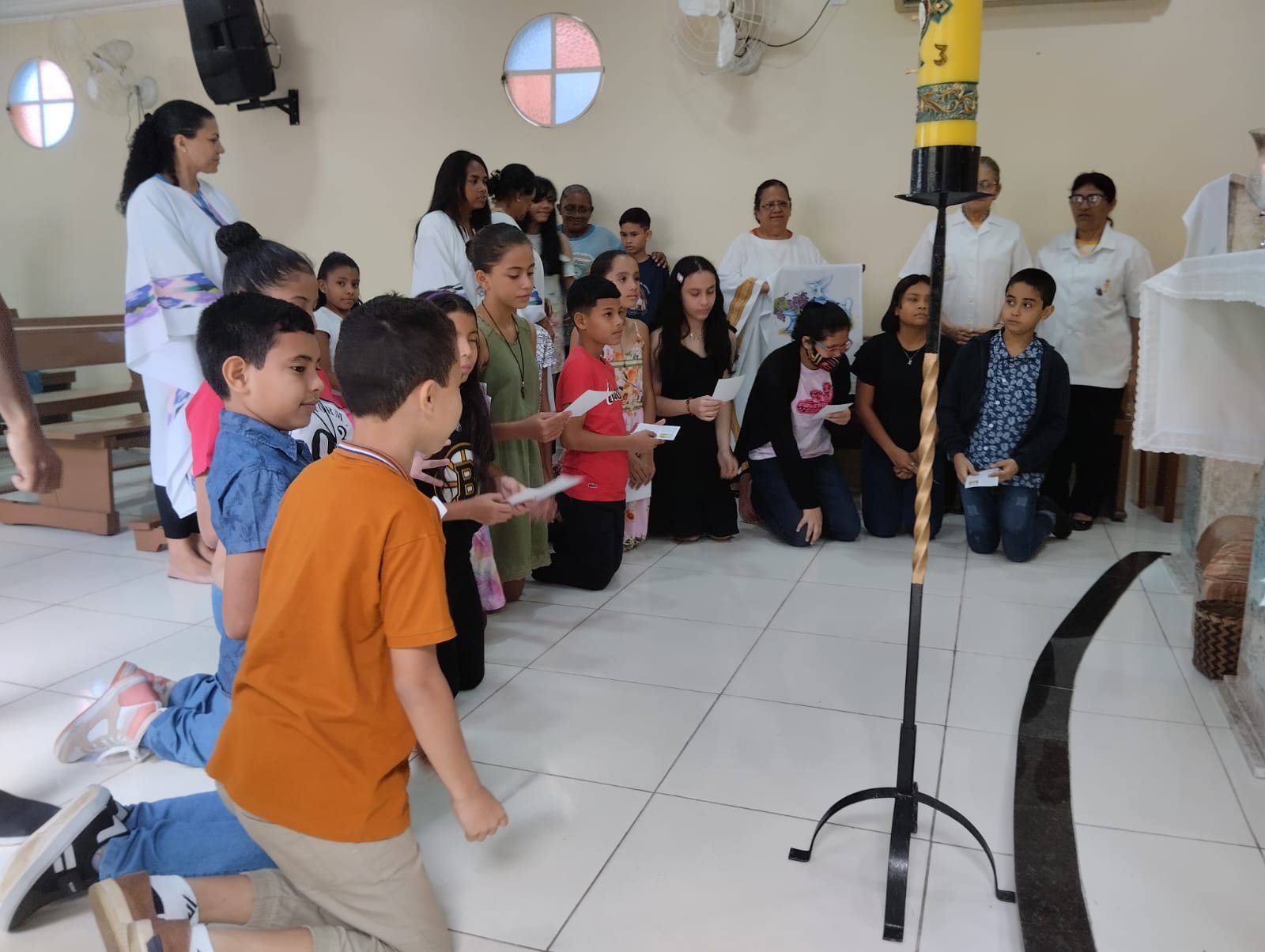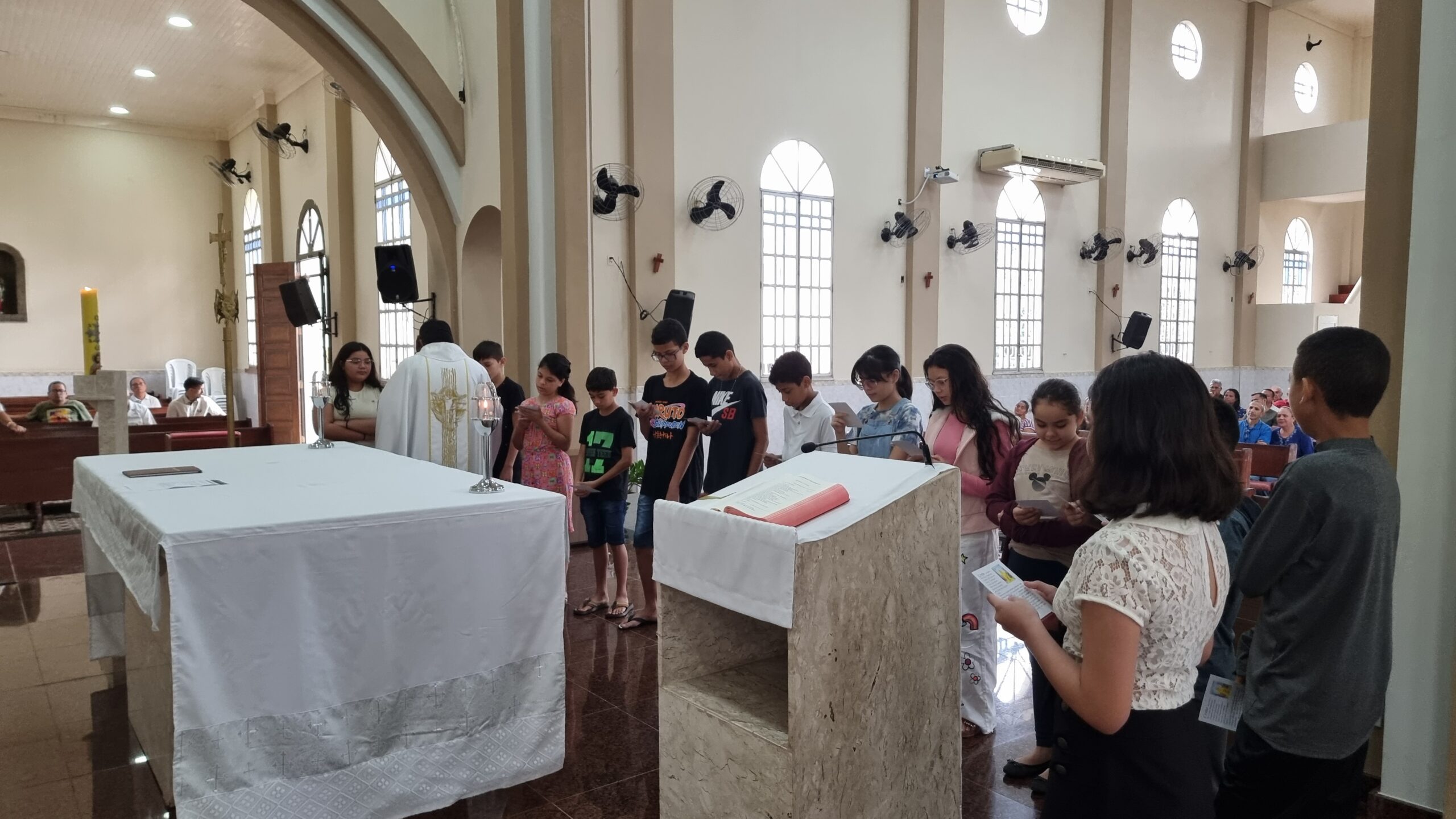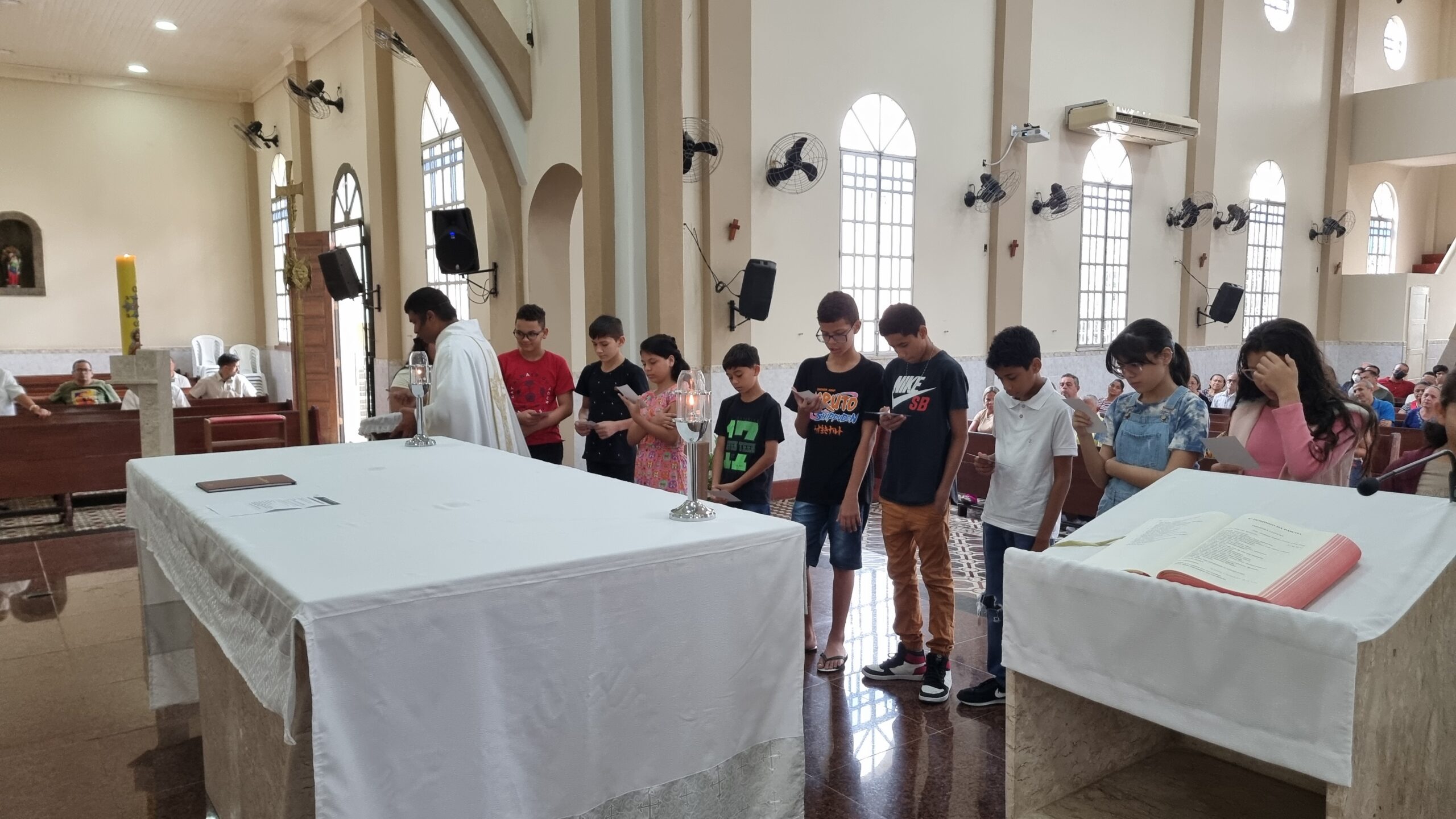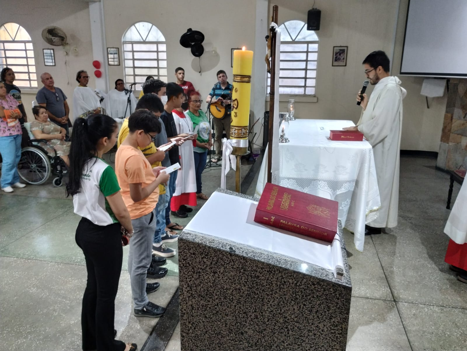 Neste domingo (23/04/23), na missa dominical, em todas as comunidades: São Raimundo Nonato, São Vicente de Paulo e Beata Maria Assunta; houve o Rito de entrega do Creio para as turmas de Eucaristia II durante a celebração Dominical.