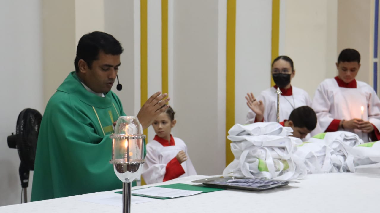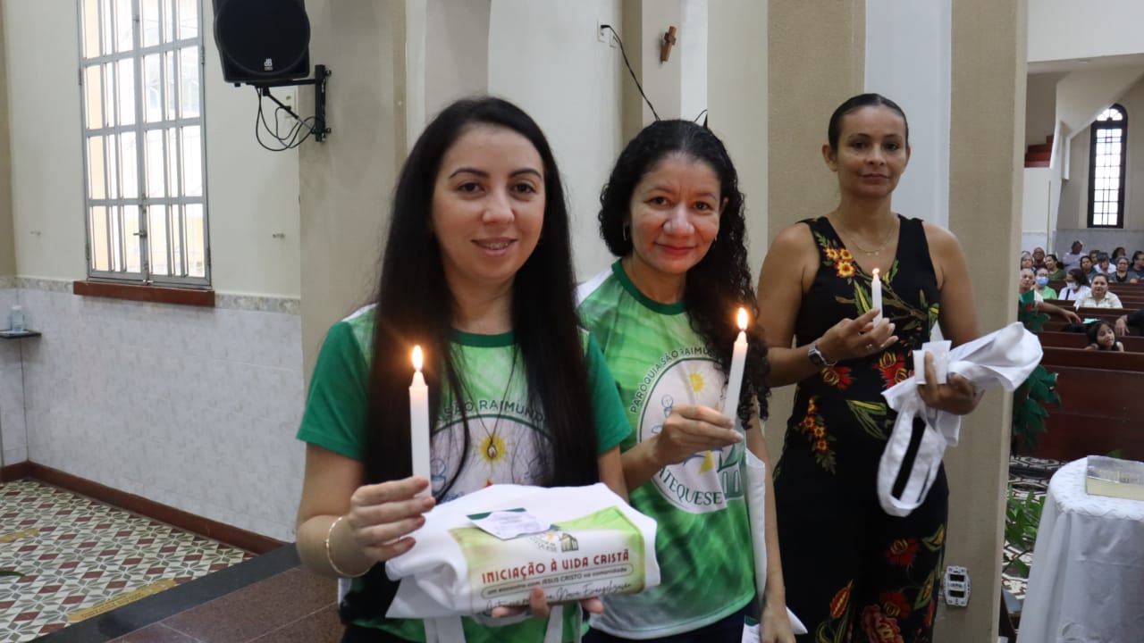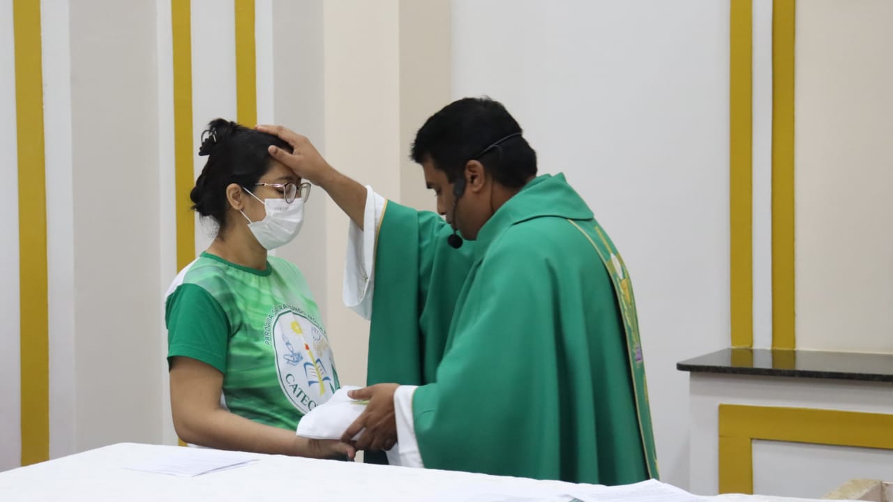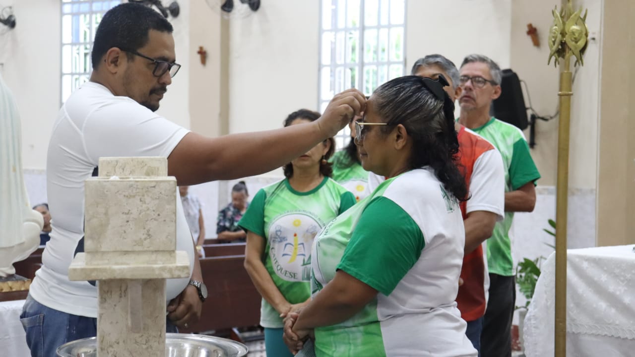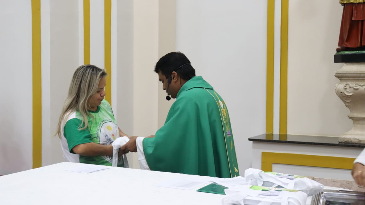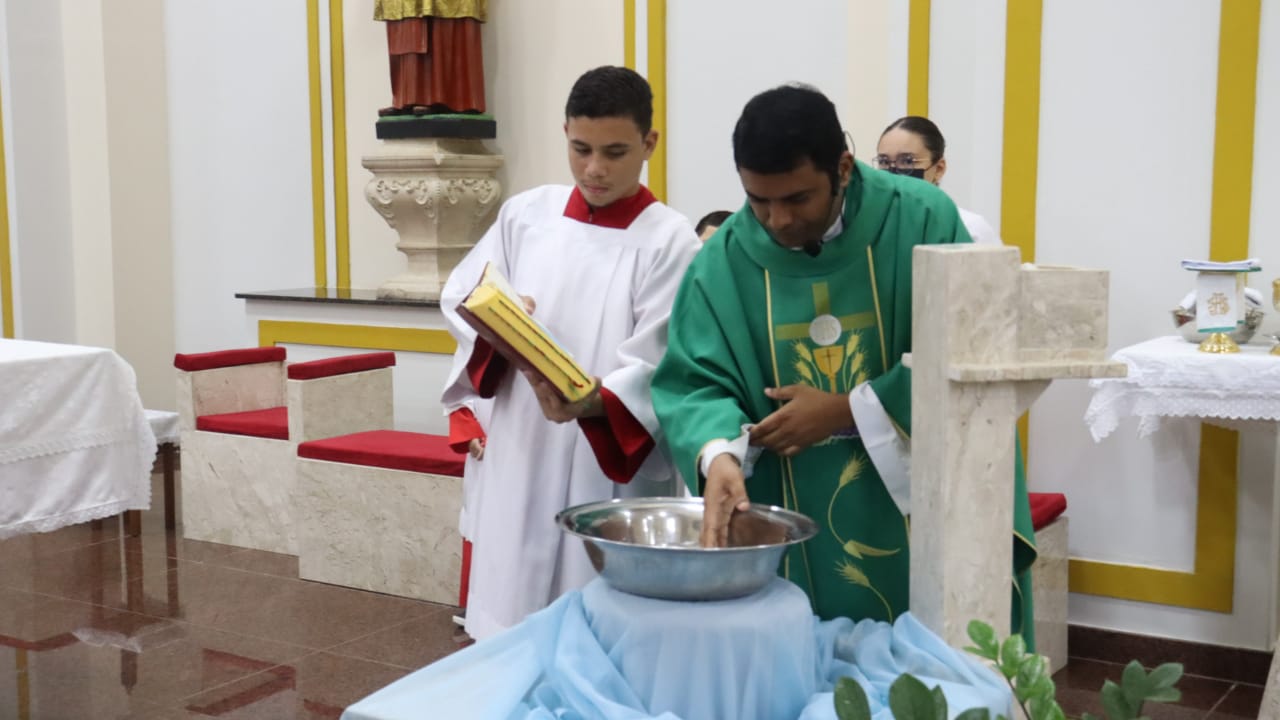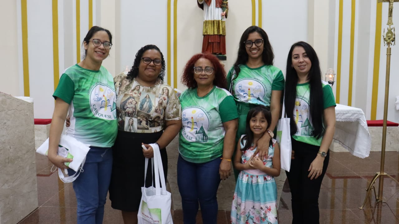 Neste dia 12/02/23, em uma linda celebração pela manhã, os catequistas de nossa Paróquia, representados pelas três comunidades, foram enviados a esta grande e necessária missão de catequizar. No primeiro momento tivemos a bênção da água, onde os catequistas de dois em dois foram direcionados a tocá-la e depois fazerem o sinal da cruz no seu par. No momento do ofertório, tivemos a entrada dos símbolos que ajudam na caminhada, como a Bíblia, o Catecismo da Igreja Católica, a Cruz, o Círio Pascal, que é a luz de Cristo, vindo acender a vela de cada um que deu o seu sim, para que se mantenha a chama acesa. Os catequistas também receberam o sal, uma bolsa com o livro e sua bíblia pessoal.