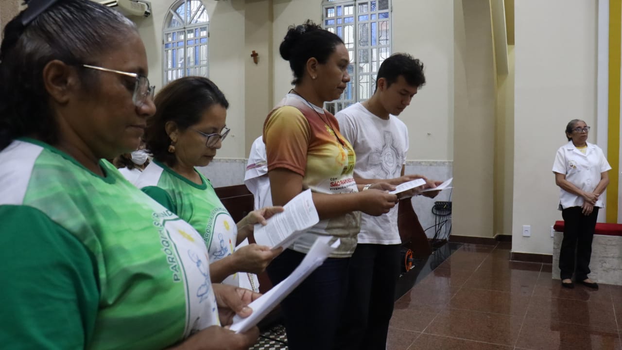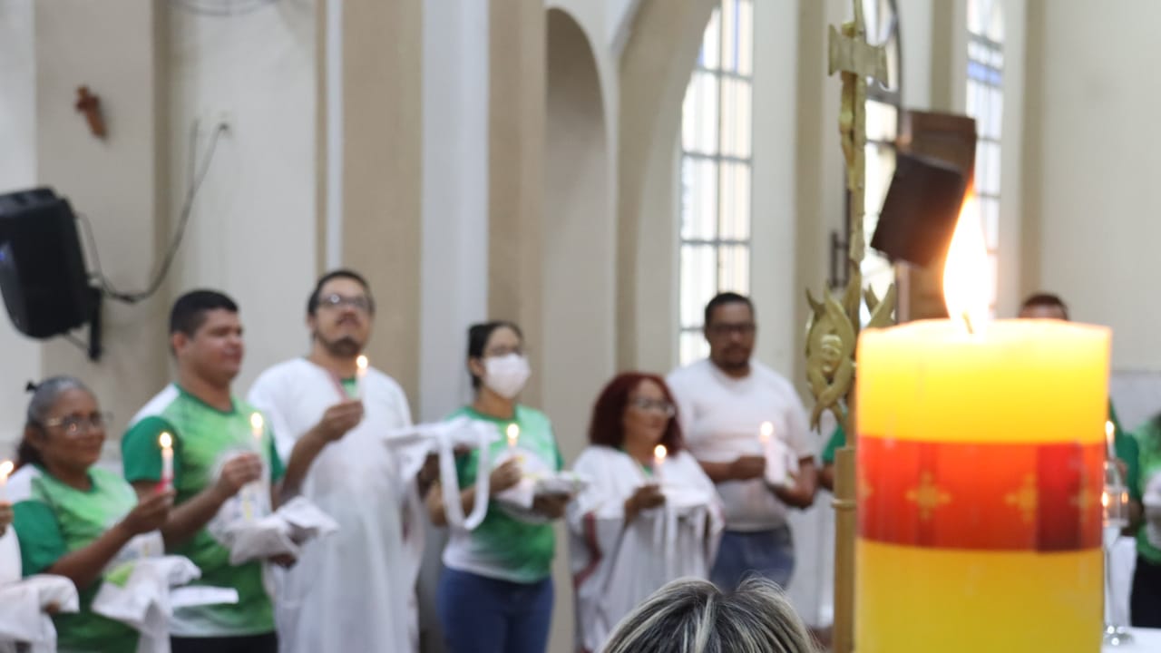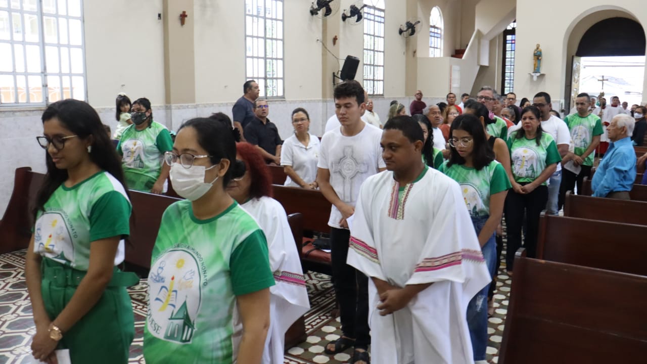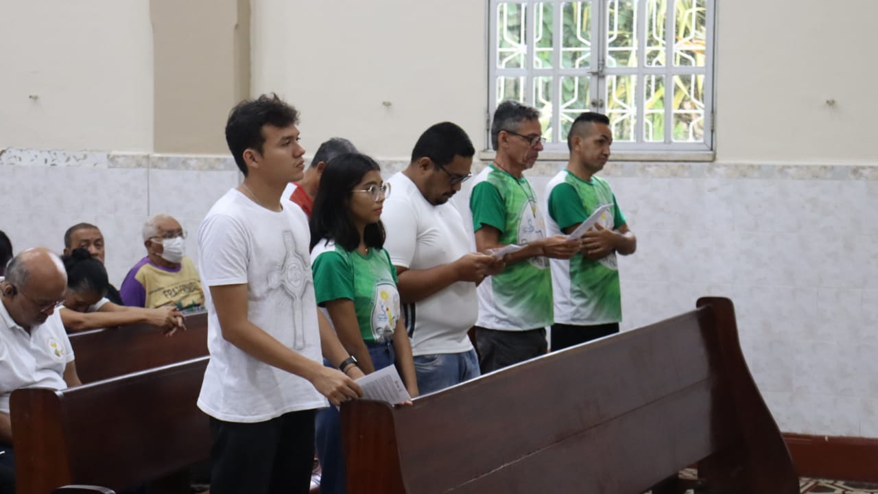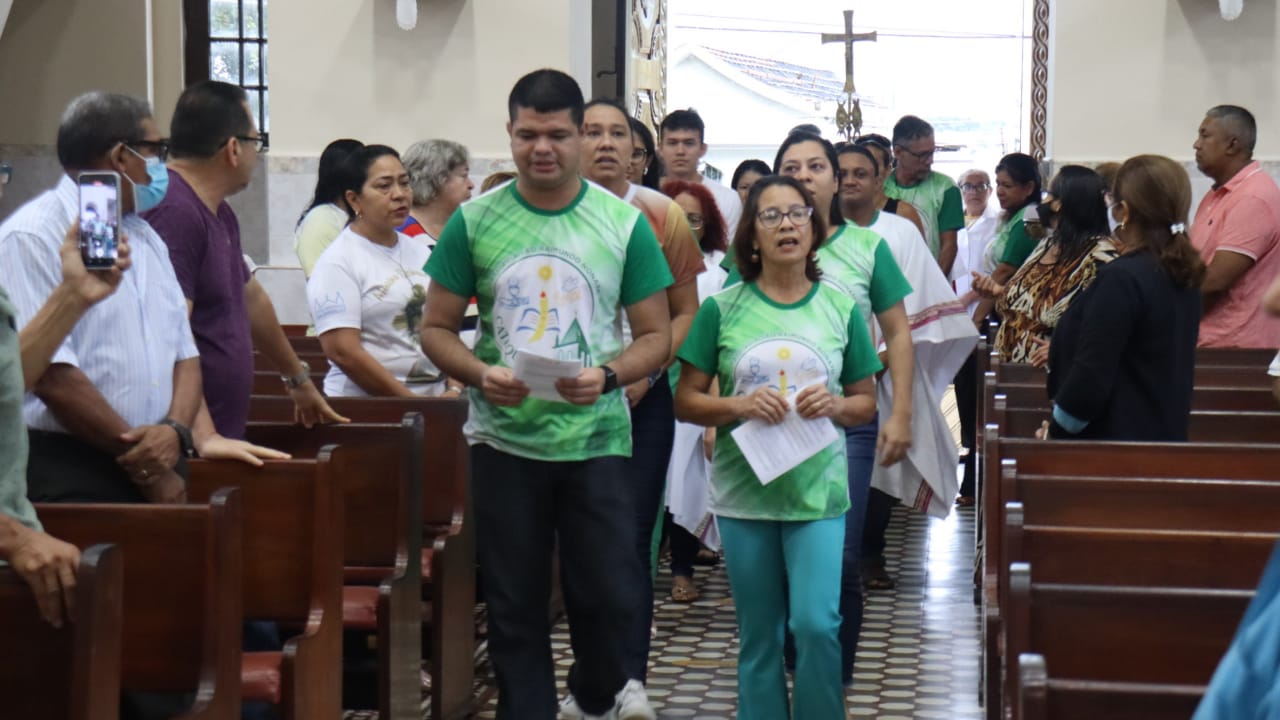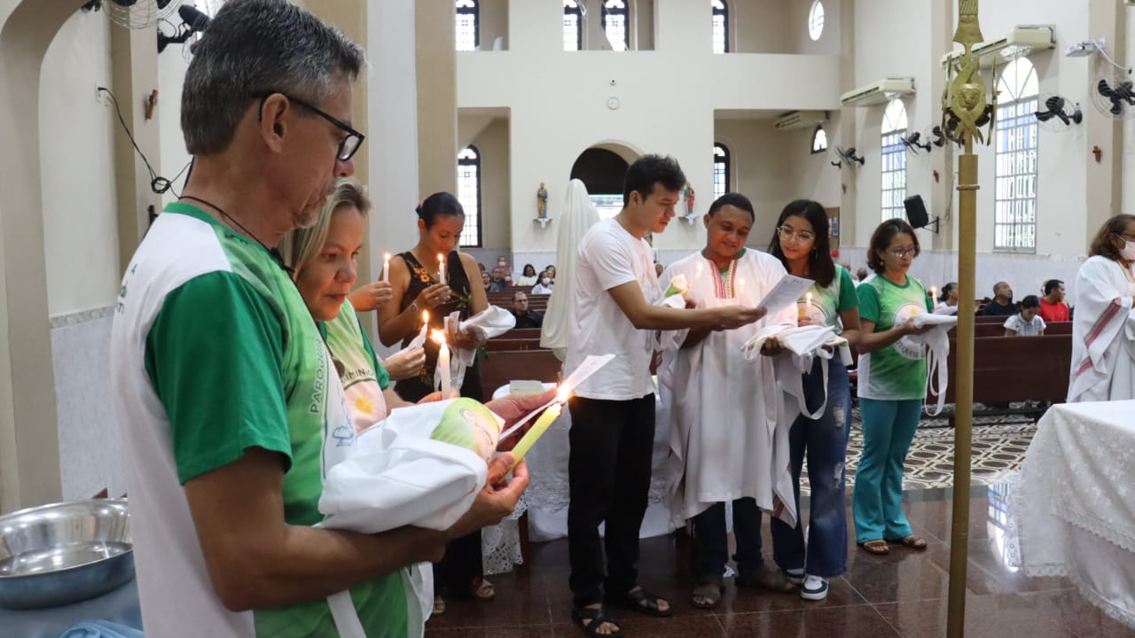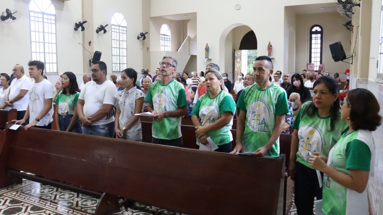 Neste dia 12/02/23, em uma linda celebração pela manhã, os catequistas de nossa Paróquia, representados pelas três comunidades, foram enviados a esta grande e necessária missão de catequizar. No primeiro momento tivemos a bênção da água, onde os catequistas de dois em dois foram direcionados a tocá-la e depois fazerem o sinal da cruz no seu par. No momento do ofertório, tivemos a entrada dos símbolos que ajudam na caminhada, como a Bíblia, o Catecismo da Igreja Católica, a Cruz, o Círio Pascal, que é a luz de Cristo, vindo acender a vela de cada um que deu o seu sim, para que se mantenha a chama acesa. Os catequistas também receberam o sal, uma bolsa com o livro e sua bíblia pessoal.