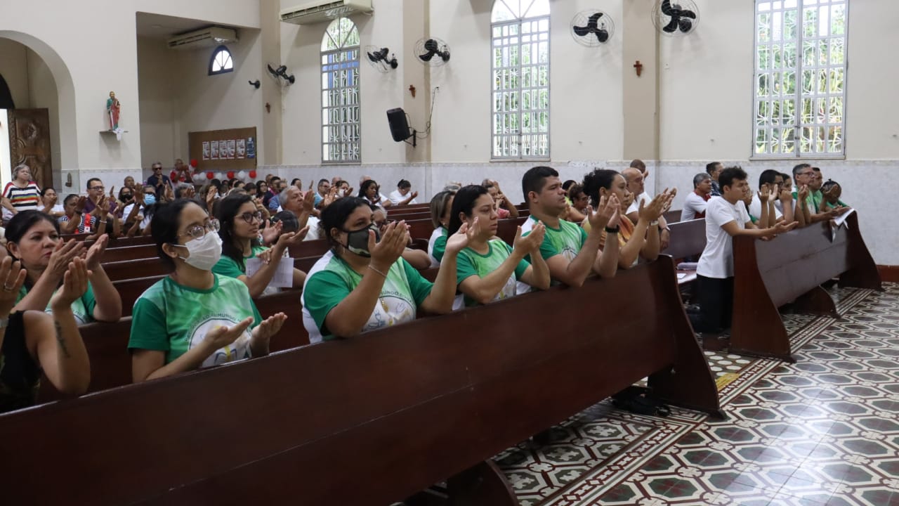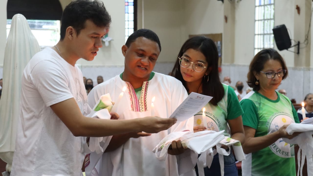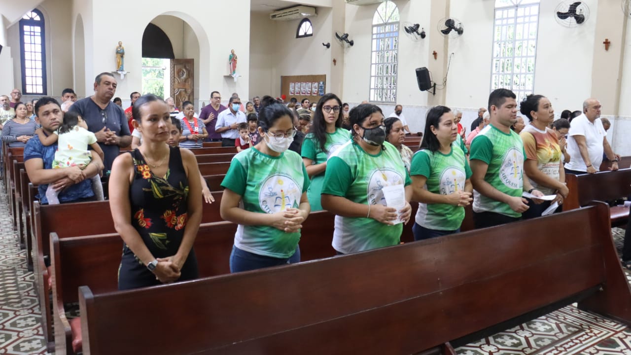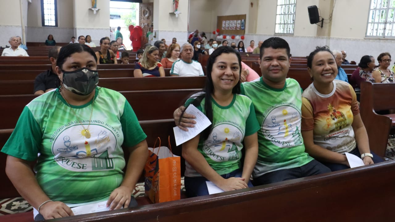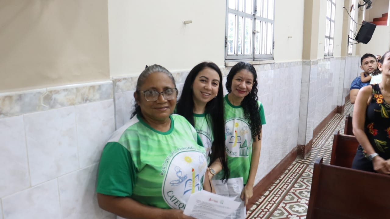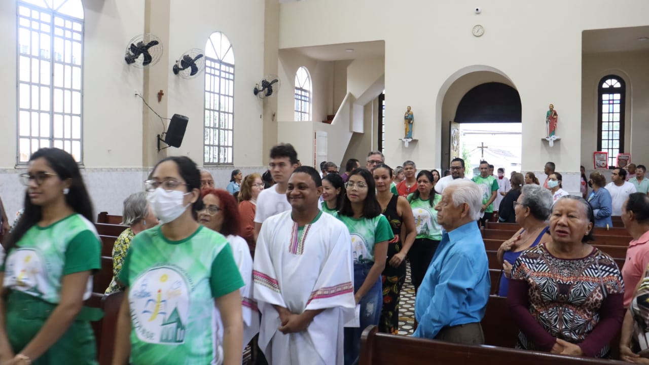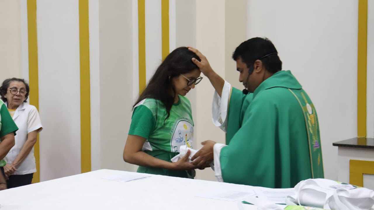 Neste dia 12/02/23, em uma linda celebração pela manhã, os catequistas de nossa Paróquia, representados pelas três comunidades, foram enviados a esta grande e necessária missão de catequizar. No primeiro momento tivemos a bênção da água, onde os catequistas de dois em dois foram direcionados a tocá-la e depois fazerem o sinal da cruz no seu par. No momento do ofertório, tivemos a entrada dos símbolos que ajudam na caminhada, como a Bíblia, o Catecismo da Igreja Católica, a Cruz, o Círio Pascal, que é a luz de Cristo, vindo acender a vela de cada um que deu o seu sim, para que se mantenha a chama acesa. Os catequistas também receberam o sal, uma bolsa com o livro e sua bíblia pessoal.