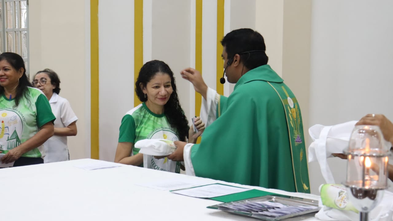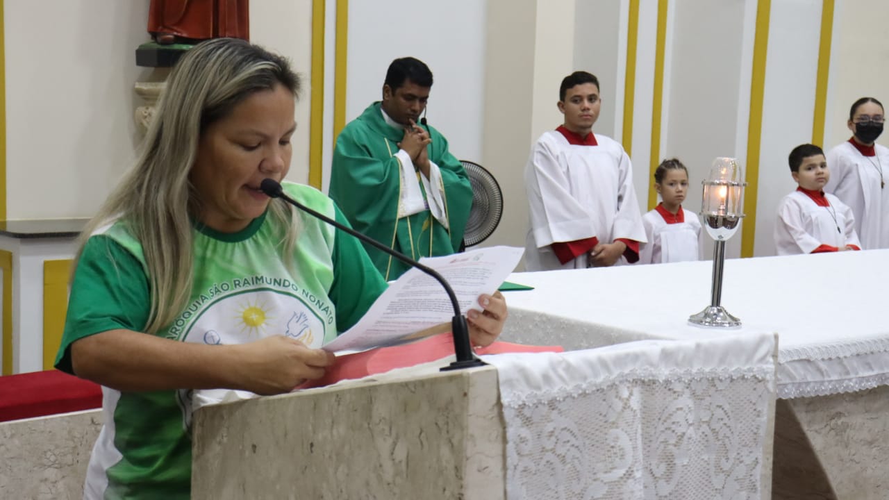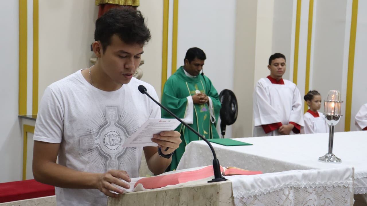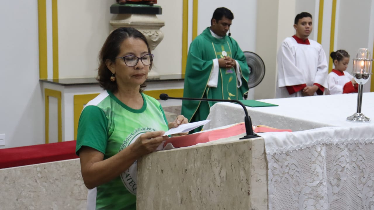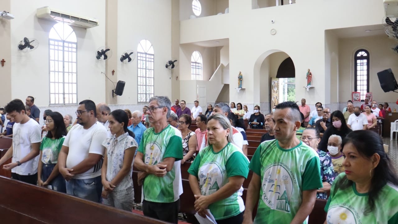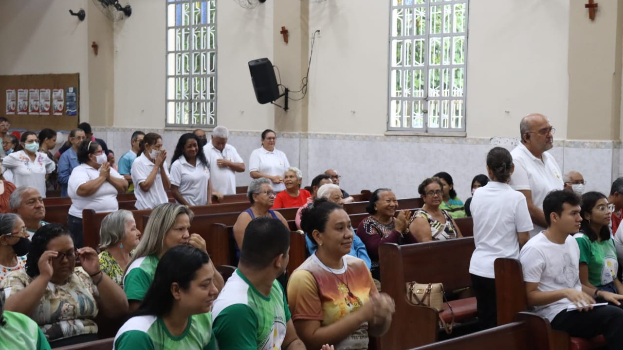 Neste dia 12/02/23, em uma linda celebração pela manhã, os catequistas de nossa Paróquia, representados pelas três comunidades, foram enviados a esta grande e necessária missão de catequizar. No primeiro momento tivemos a bênção da água, onde os catequistas de dois em dois foram direcionados a tocá-la e depois fazerem o sinal da cruz no seu par. No momento do ofertório, tivemos a entrada dos símbolos que ajudam na caminhada, como a Bíblia, o Catecismo da Igreja Católica, a Cruz, o Círio Pascal, que é a luz de Cristo, vindo acender a vela de cada um que deu o seu sim, para que se mantenha a chama acesa. Os catequistas também receberam o sal, uma bolsa com o livro e sua bíblia pessoal.