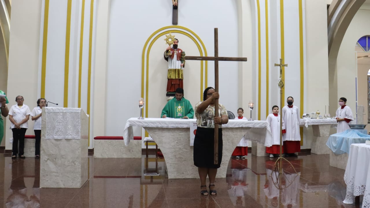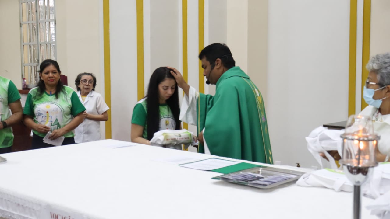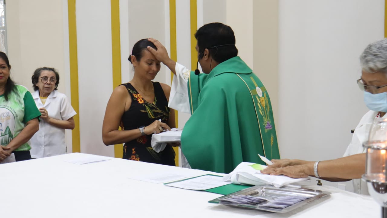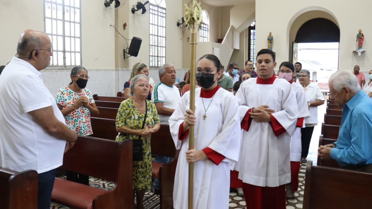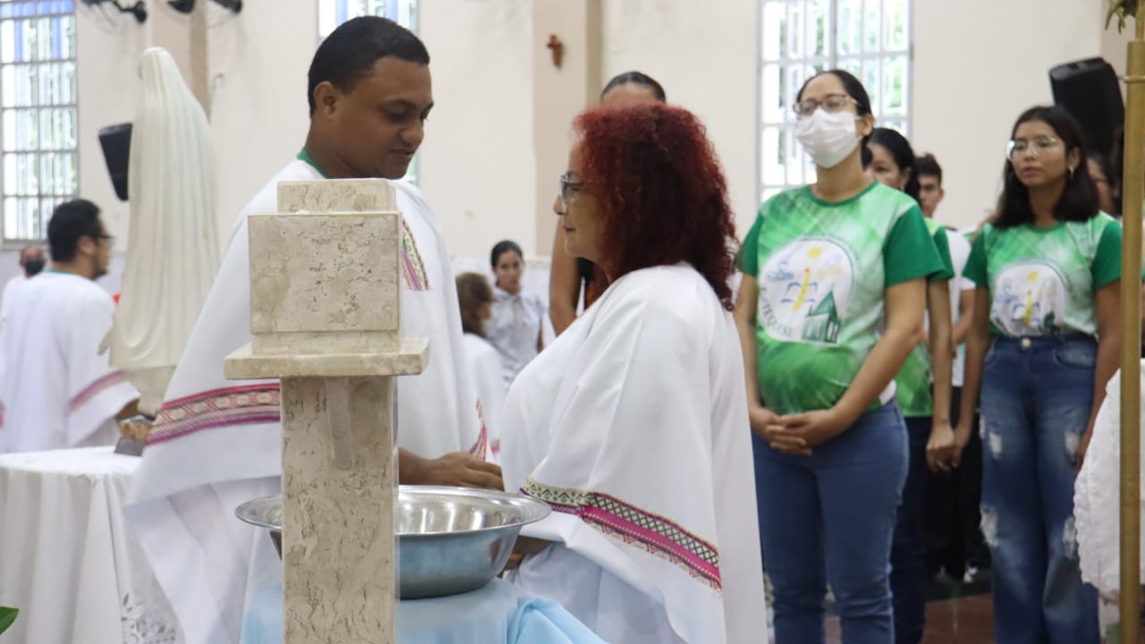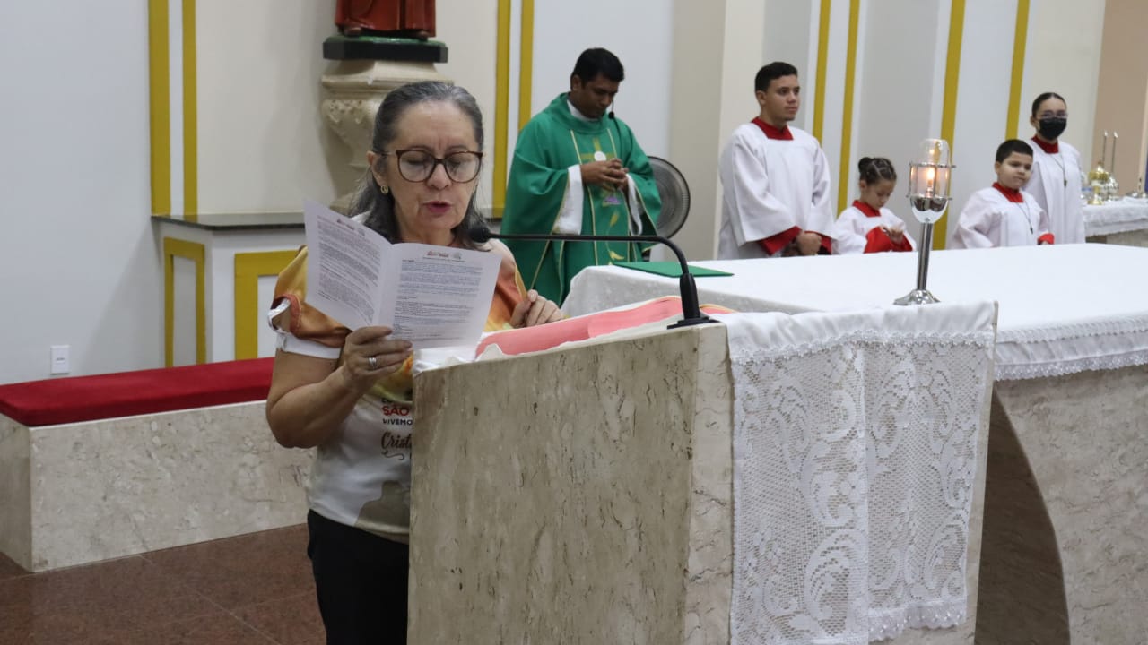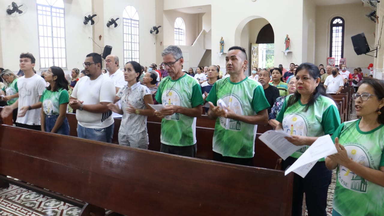 Neste dia 12/02/23, em uma linda celebração pela manhã, os catequistas de nossa Paróquia, representados pelas três comunidades, foram enviados a esta grande e necessária missão de catequizar. No primeiro momento tivemos a bênção da água, onde os catequistas de dois em dois foram direcionados a tocá-la e depois fazerem o sinal da cruz no seu par. No momento do ofertório, tivemos a entrada dos símbolos que ajudam na caminhada, como a Bíblia, o Catecismo da Igreja Católica, a Cruz, o Círio Pascal, que é a luz de Cristo, vindo acender a vela de cada um que deu o seu sim, para que se mantenha a chama acesa. Os catequistas também receberam o sal, uma bolsa com o livro e sua bíblia pessoal.
