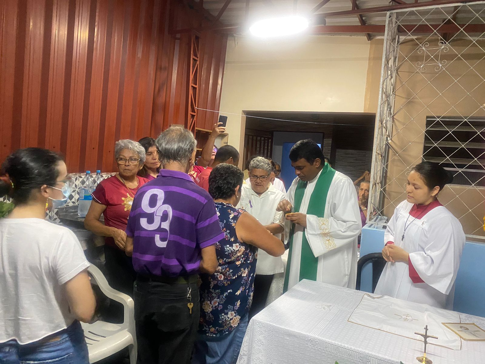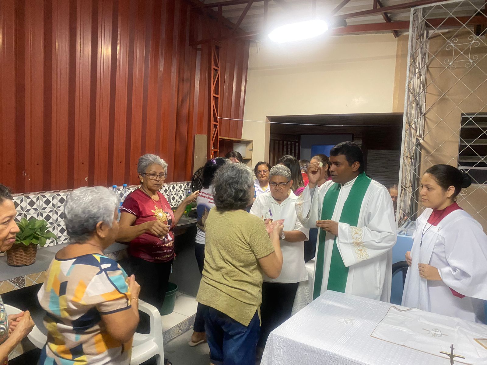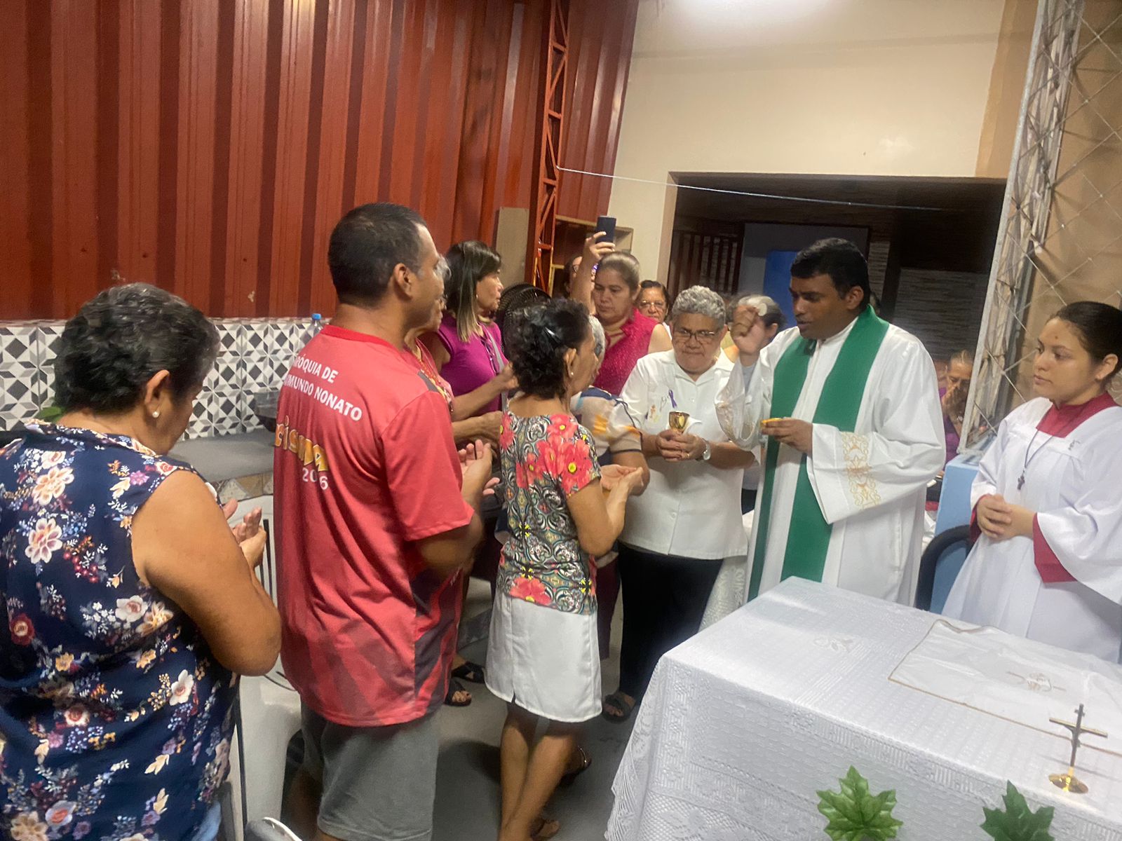 Tendo como Presidente desta Celebração o nosso Pároco, Pe. John e, contou com uma chuva para nos refrescar, animando ainda mais com a comunhão em duas espécies.