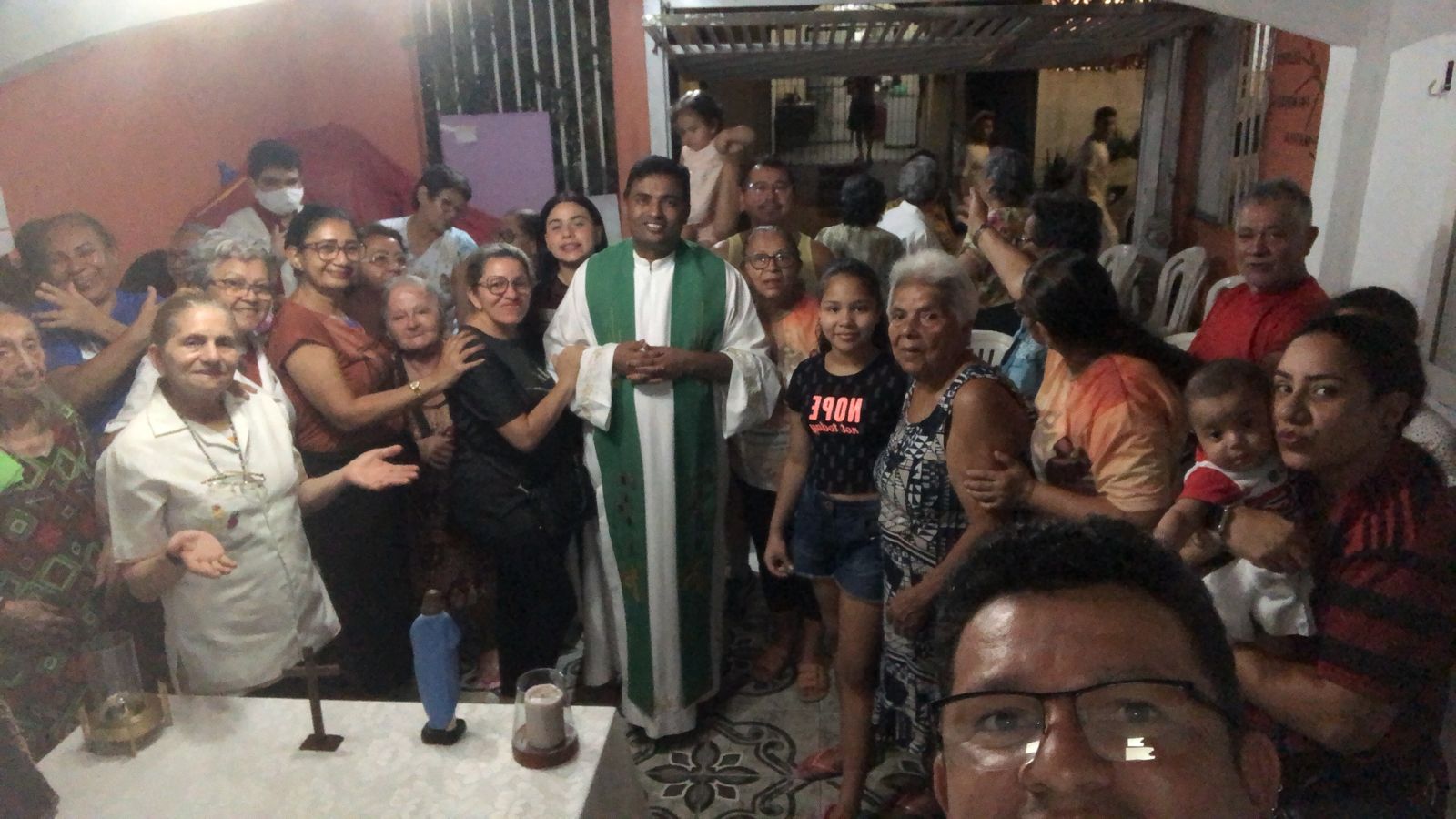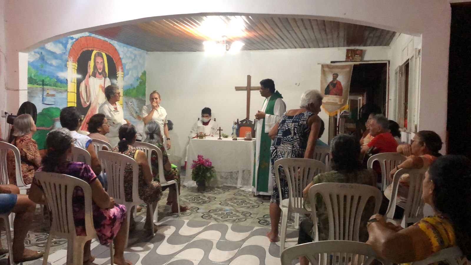 No dia 28/07, às 19 horas, foi celebrada missa na PCM São Tiago. Foi uma missa bem participada pelos comunitários, presidida pelo padre John. A missa aconteceu na residência da dona Leontina, que nos recebeu com muita alegria.