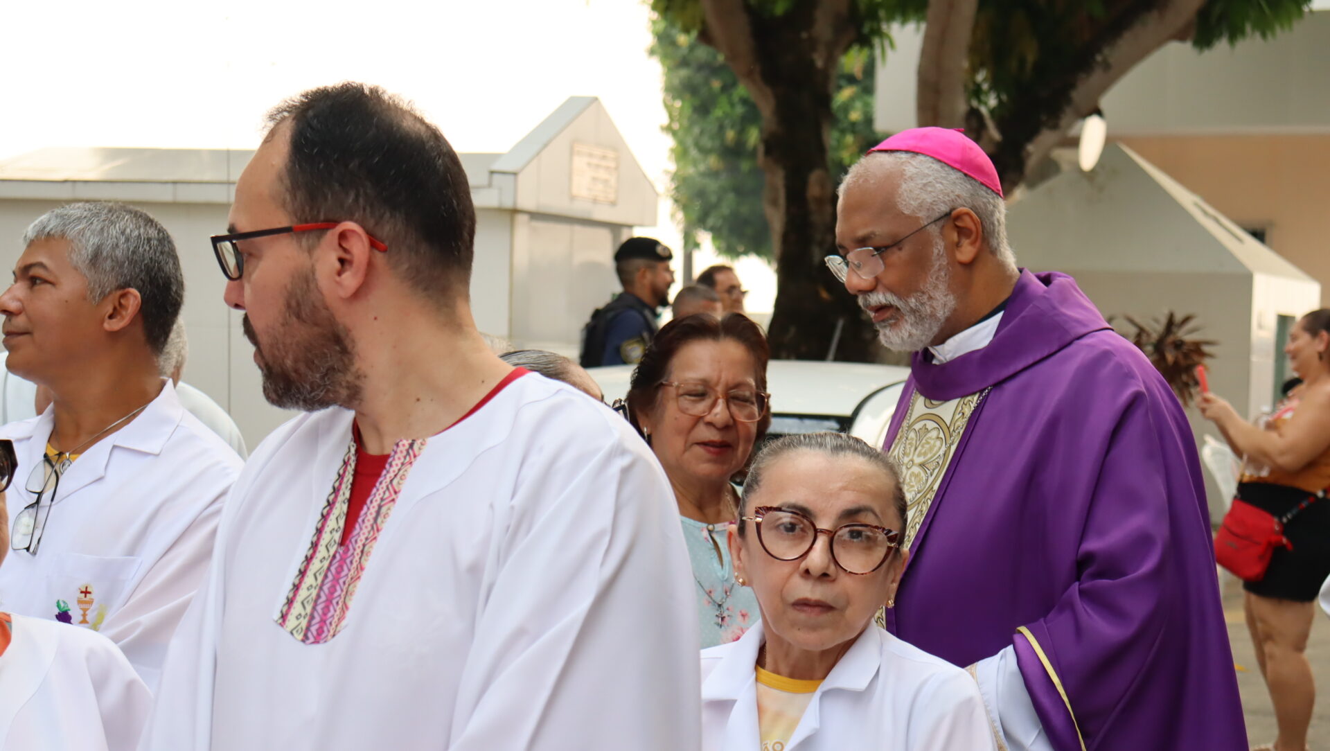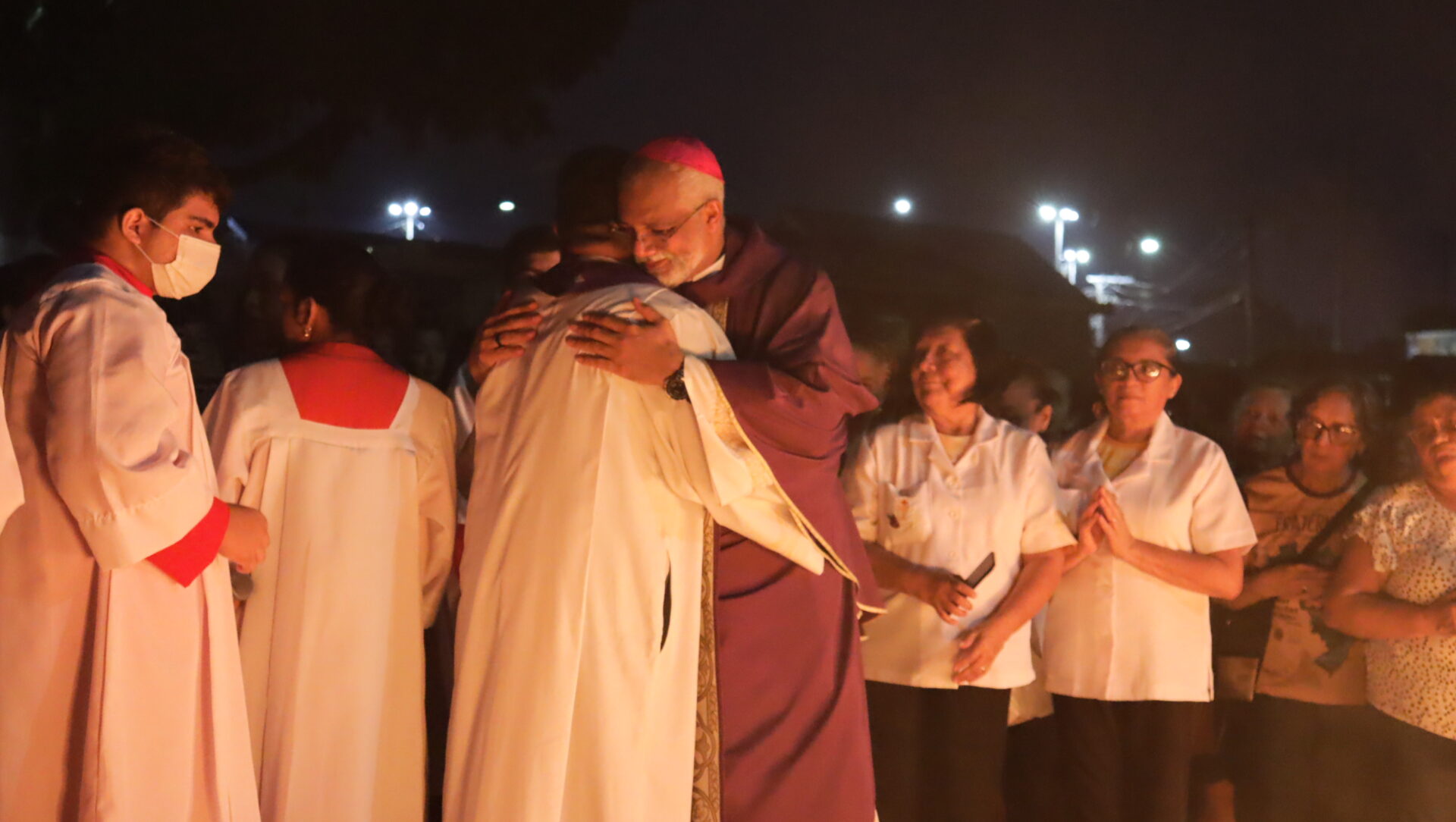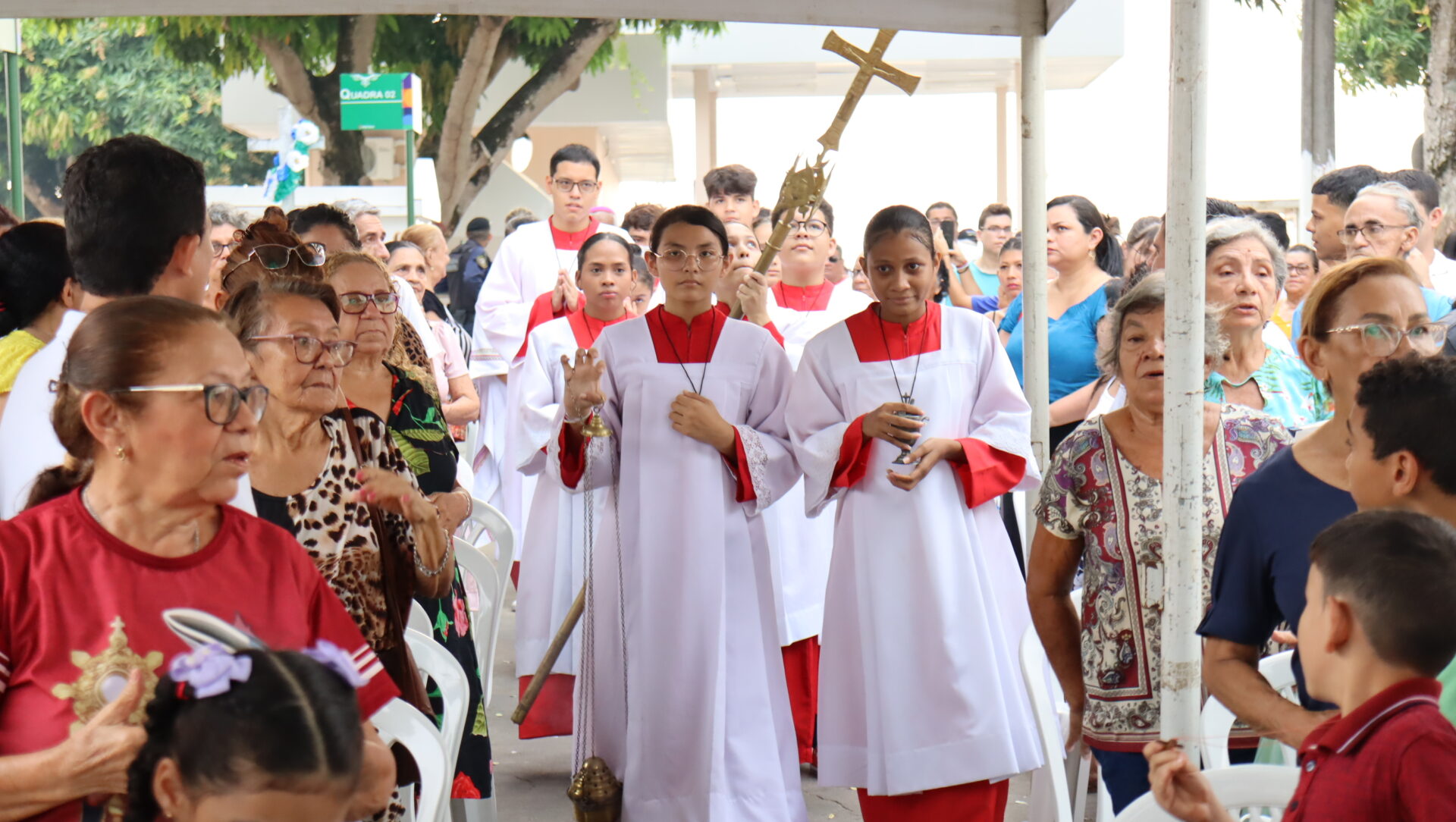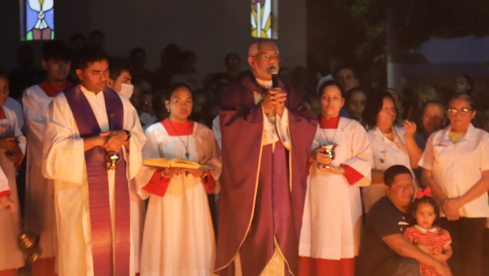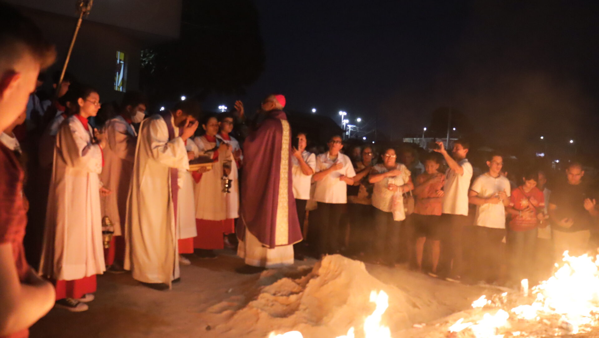 Ao final da celebração, fomos em procissão até o Cruzeiro. “Indo e vindo, trevas e luz. Tudo é graça, Deus nos conduz!” Mons. Zenildo abençoou, aspergindo, o cruzeiro e os presentes.