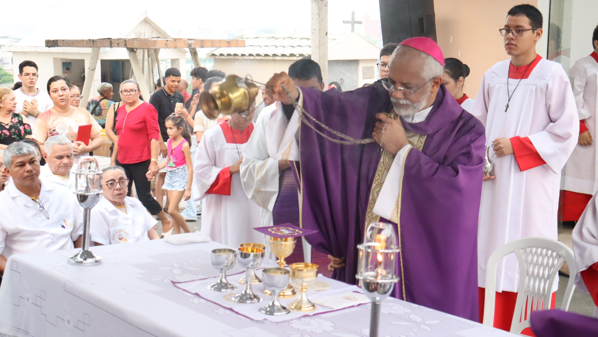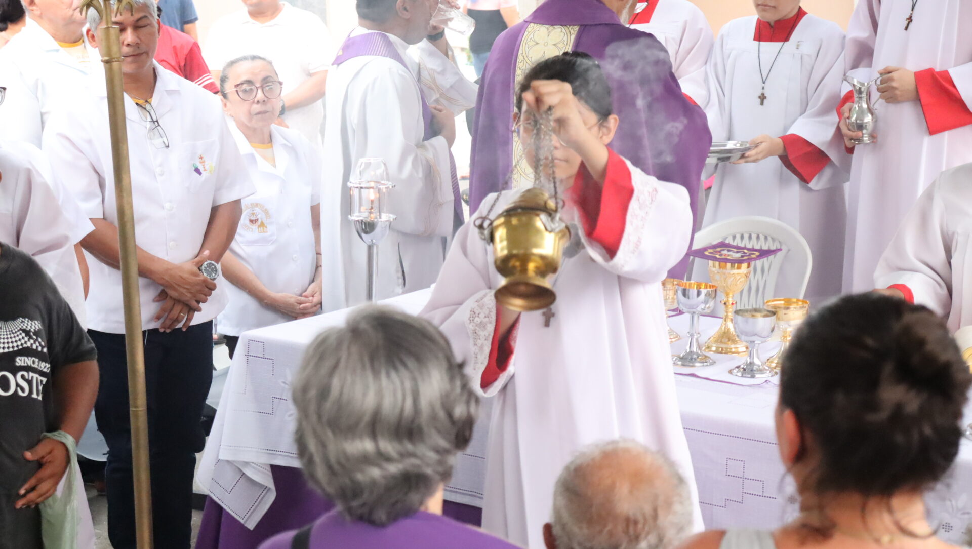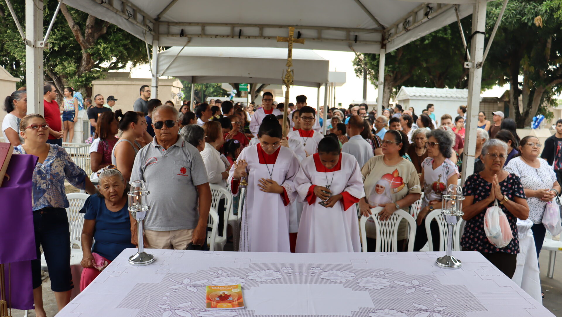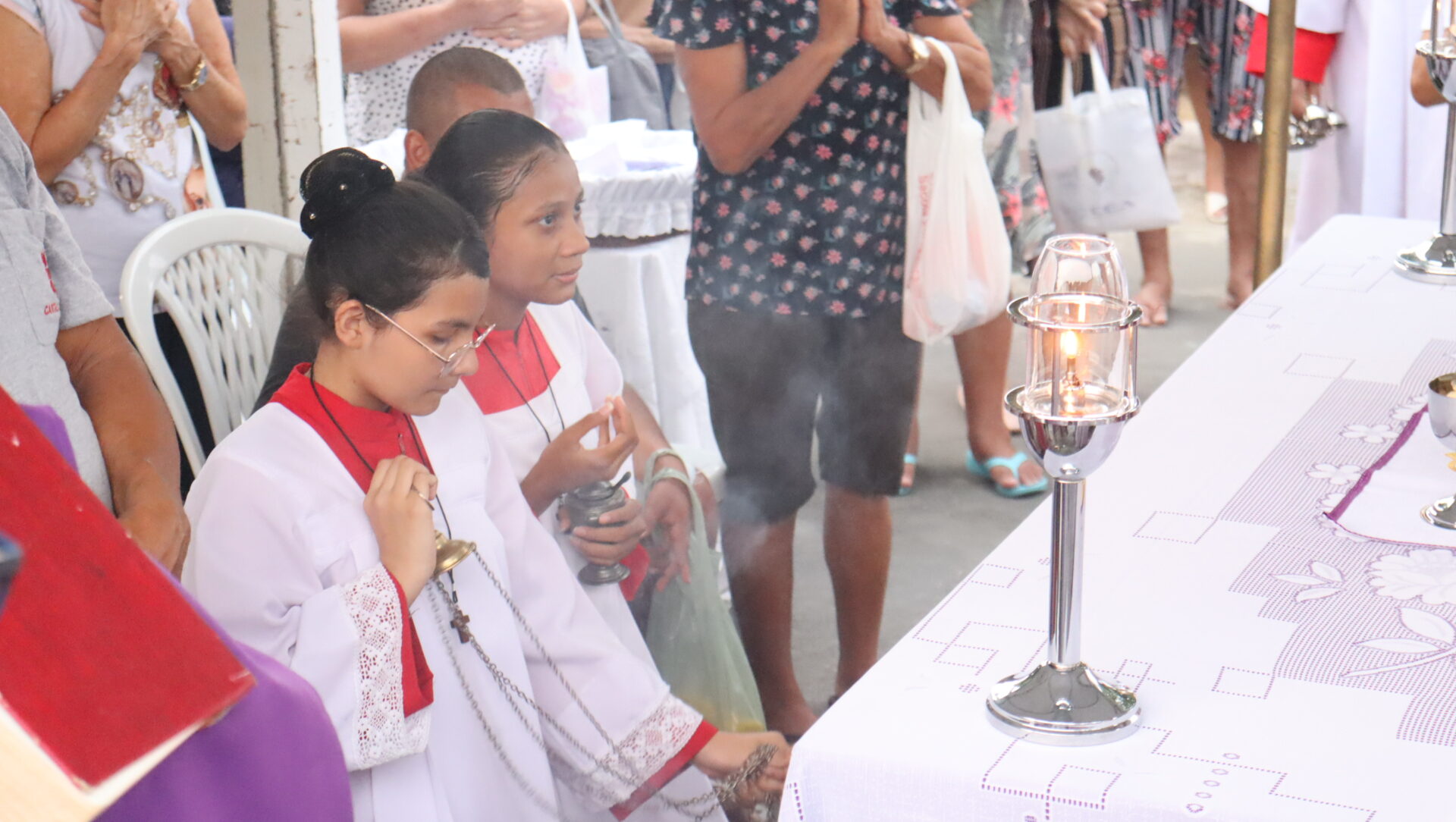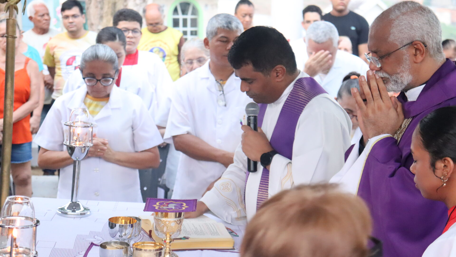 Ao final da celebração, fomos em procissão até o Cruzeiro. “Indo e vindo, trevas e luz. Tudo é graça, Deus nos conduz!” Mons. Zenildo abençoou, aspergindo, o cruzeiro e os presentes.