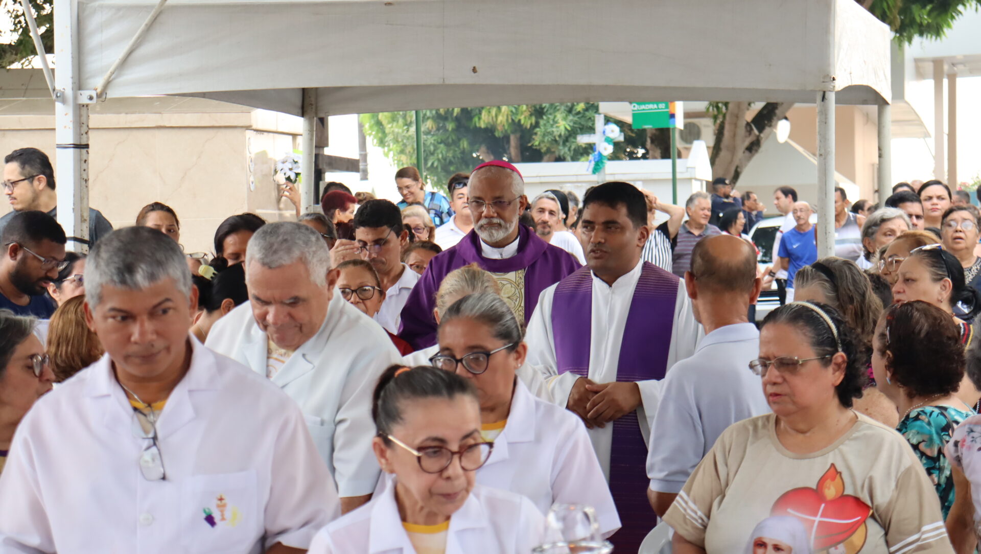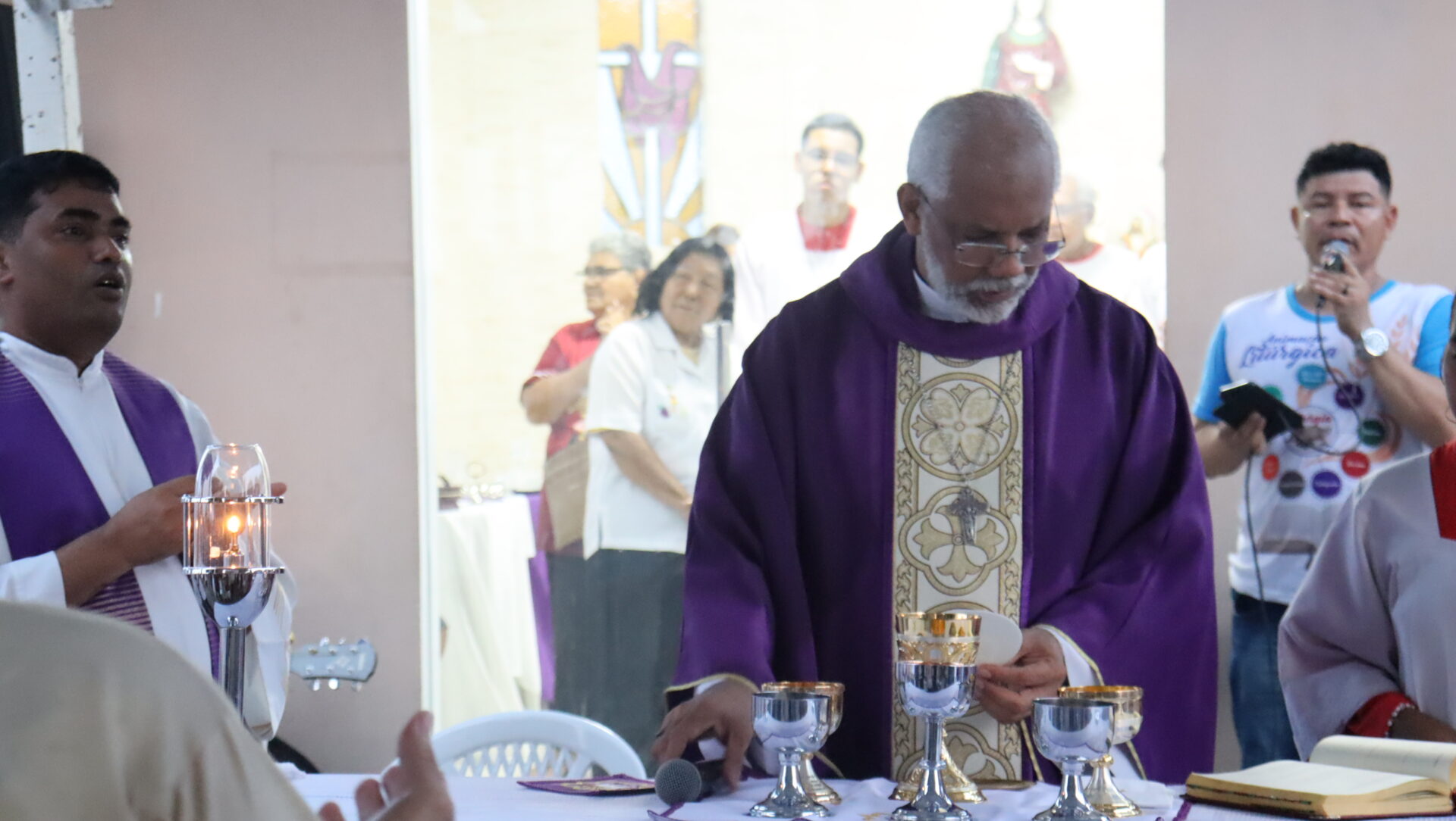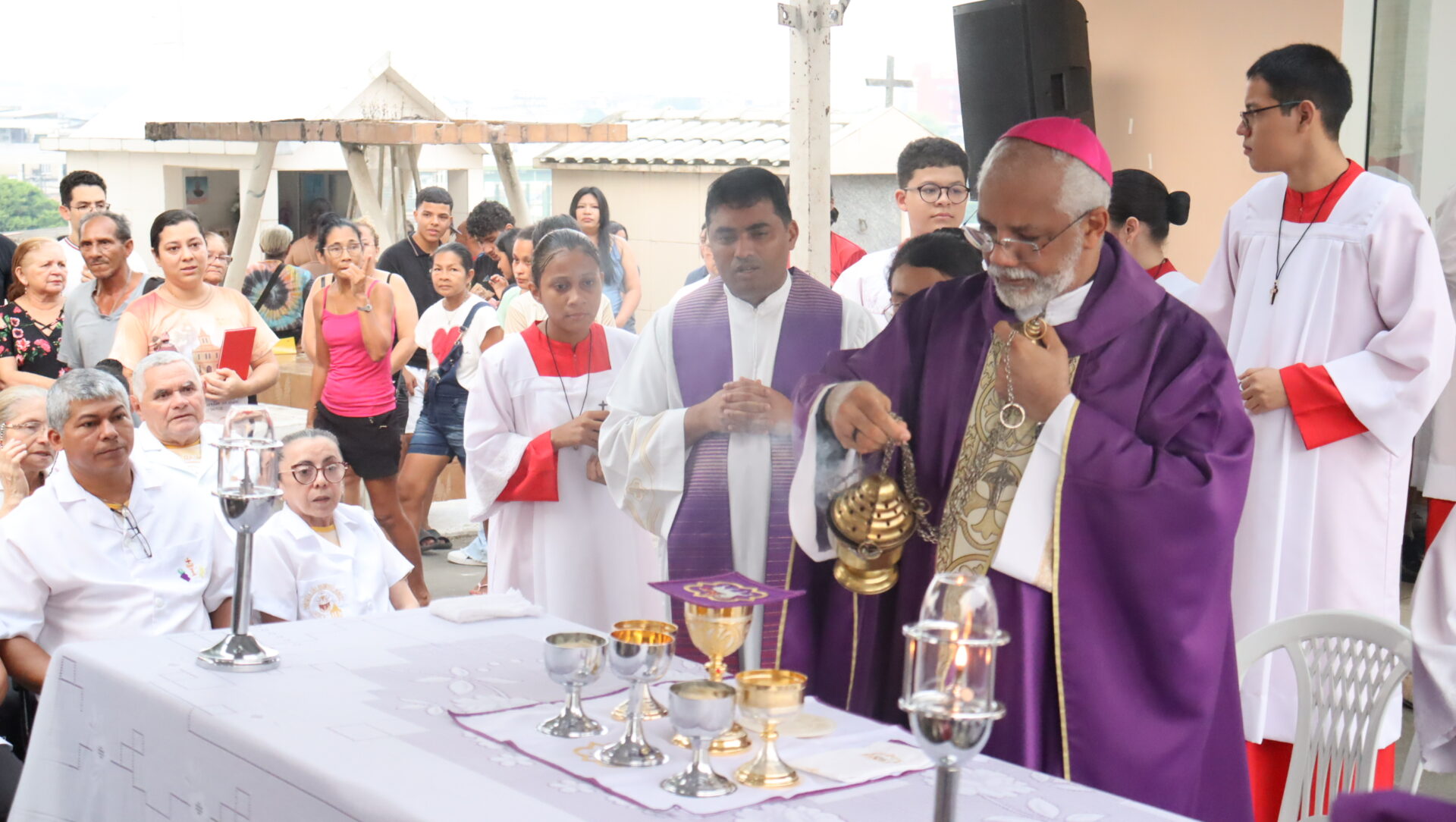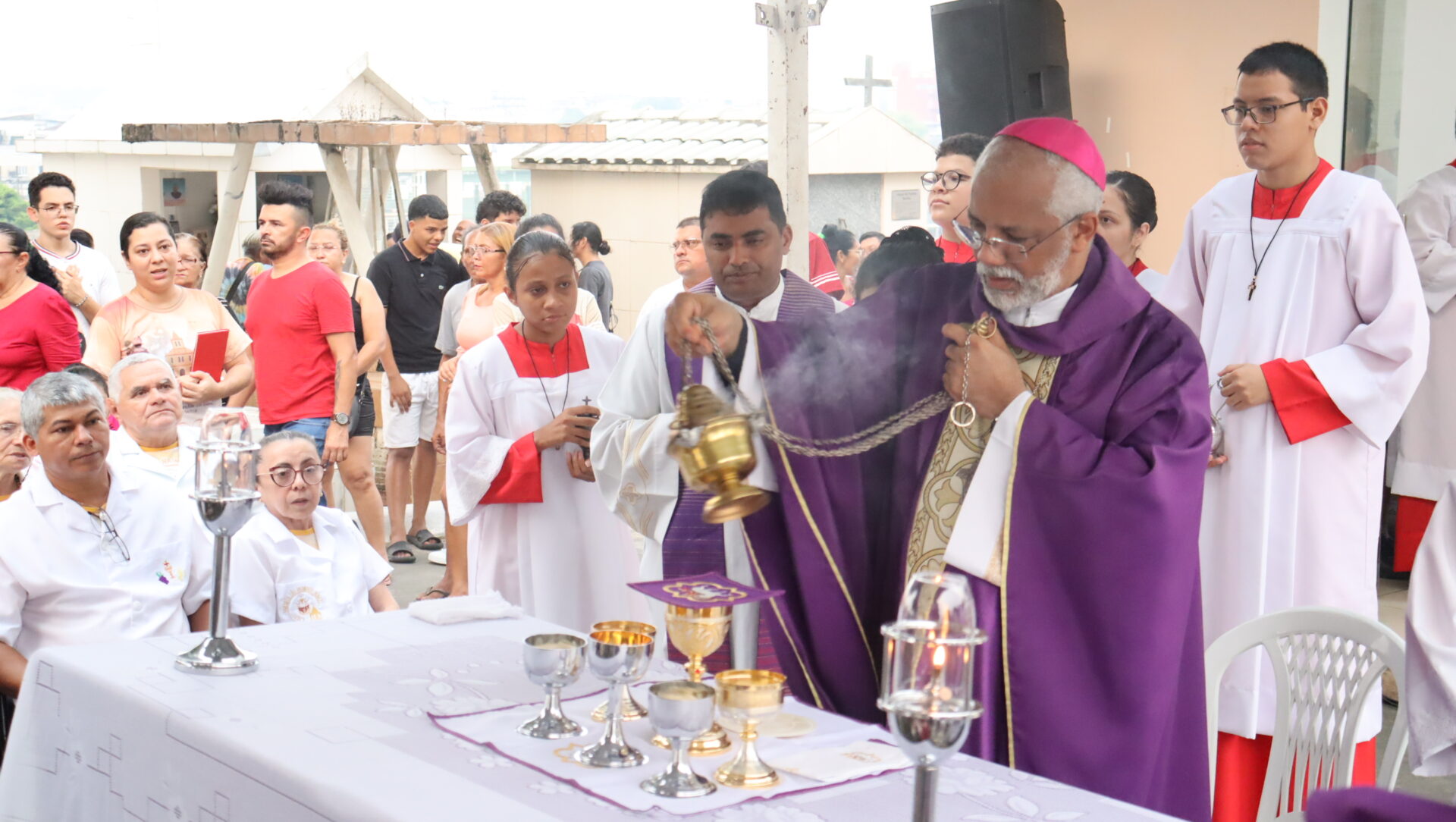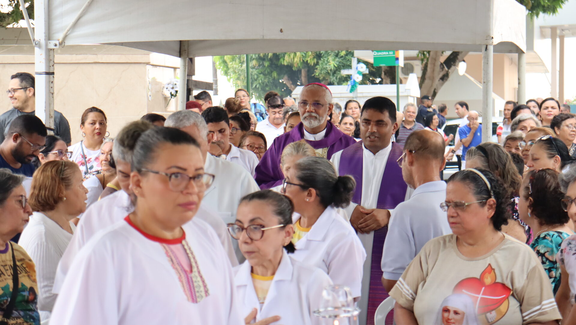 Ao final da celebração, fomos em procissão até o Cruzeiro. “Indo e vindo, trevas e luz. Tudo é graça, Deus nos conduz!” Mons. Zenildo abençoou, aspergindo, o cruzeiro e os presentes.
