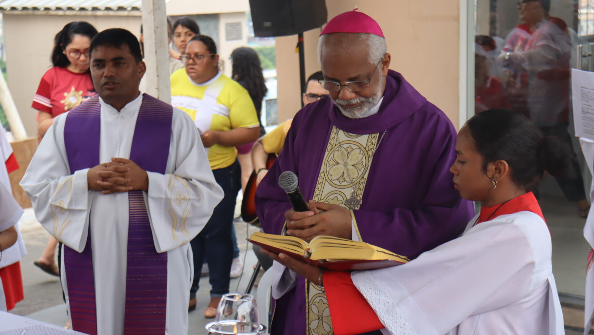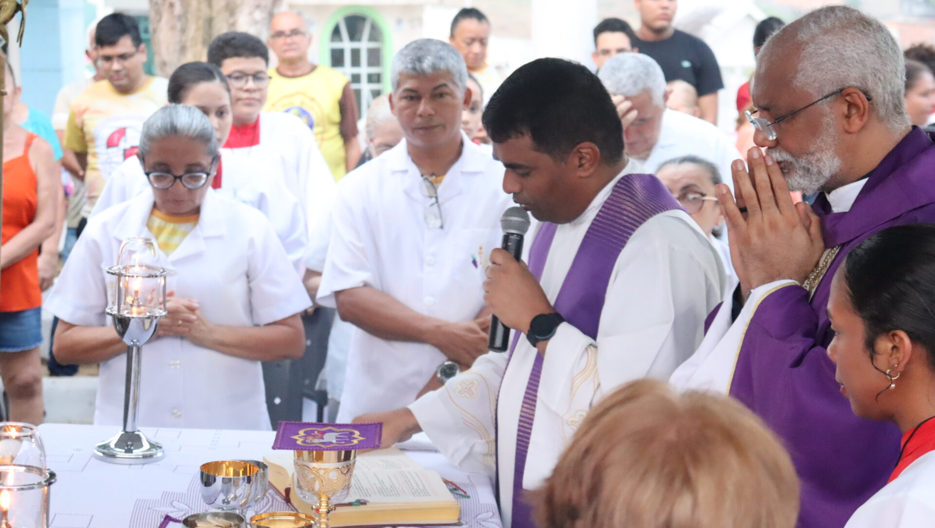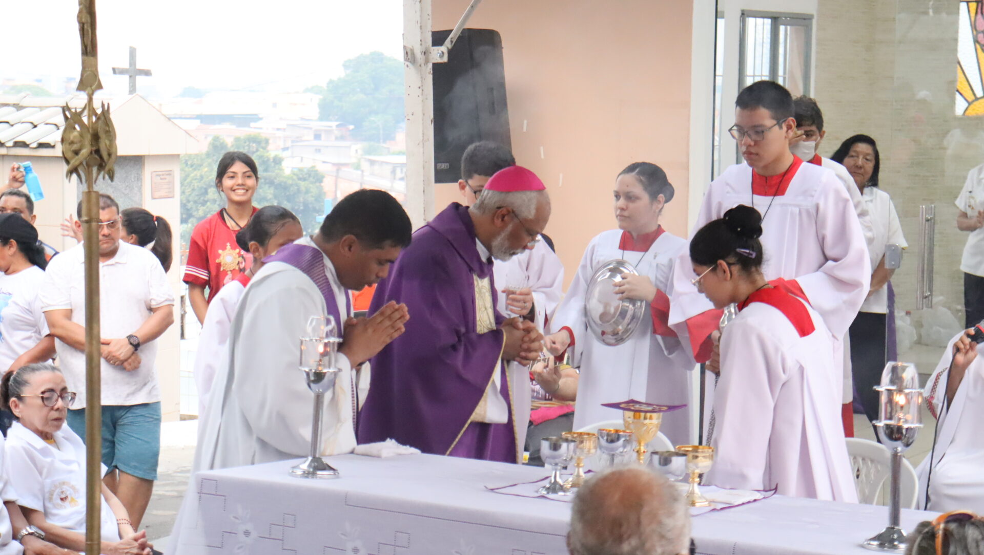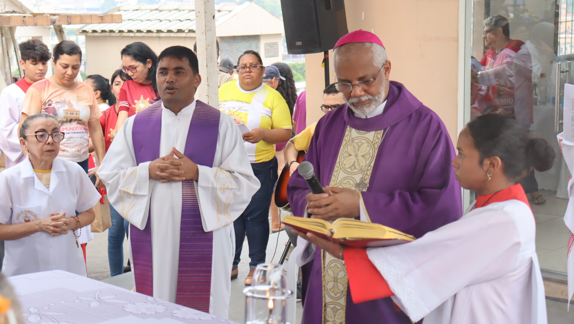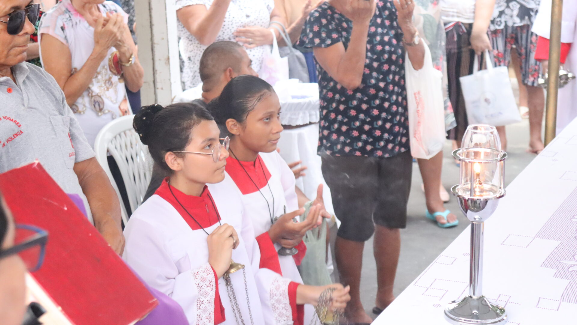 Ao final da celebração, fomos em procissão até o Cruzeiro. “Indo e vindo, trevas e luz. Tudo é graça, Deus nos conduz!” Mons. Zenildo abençoou, aspergindo, o cruzeiro e os presentes.