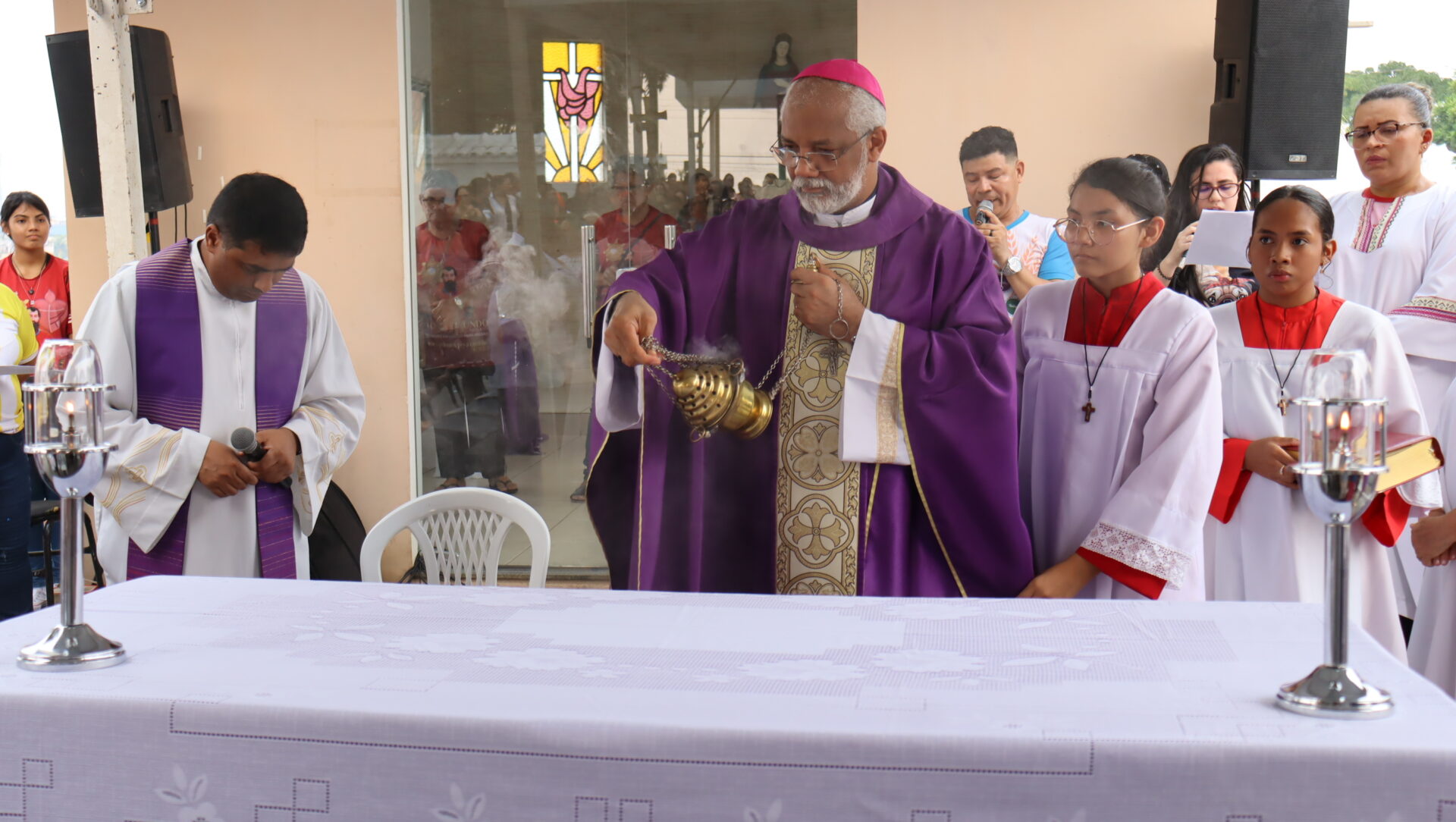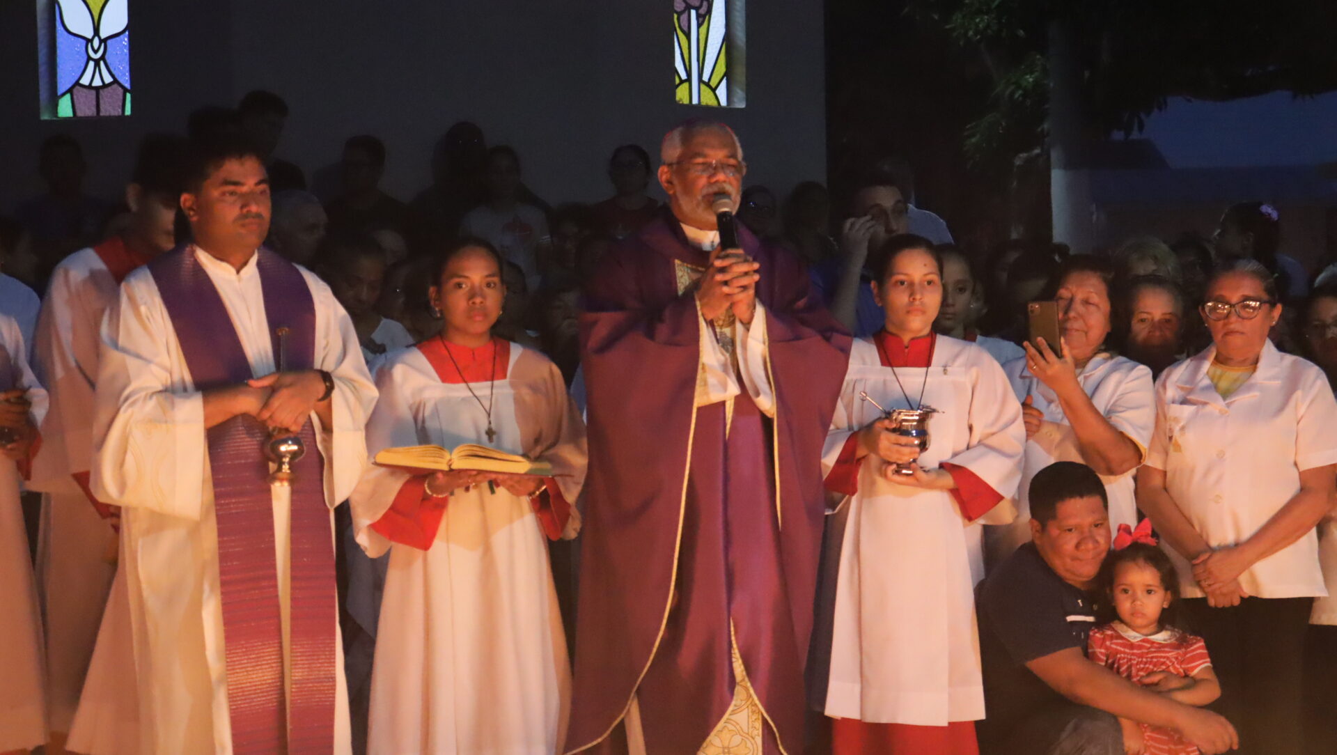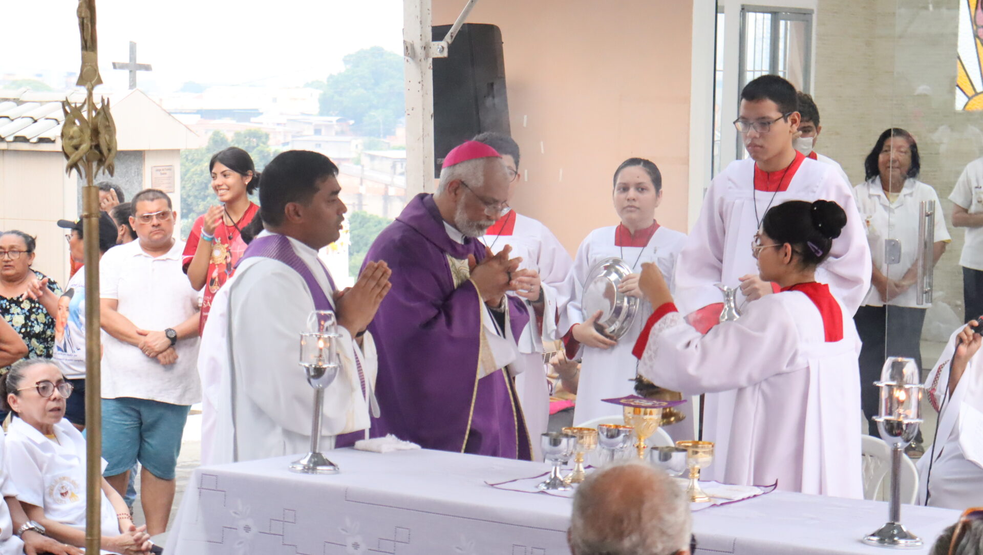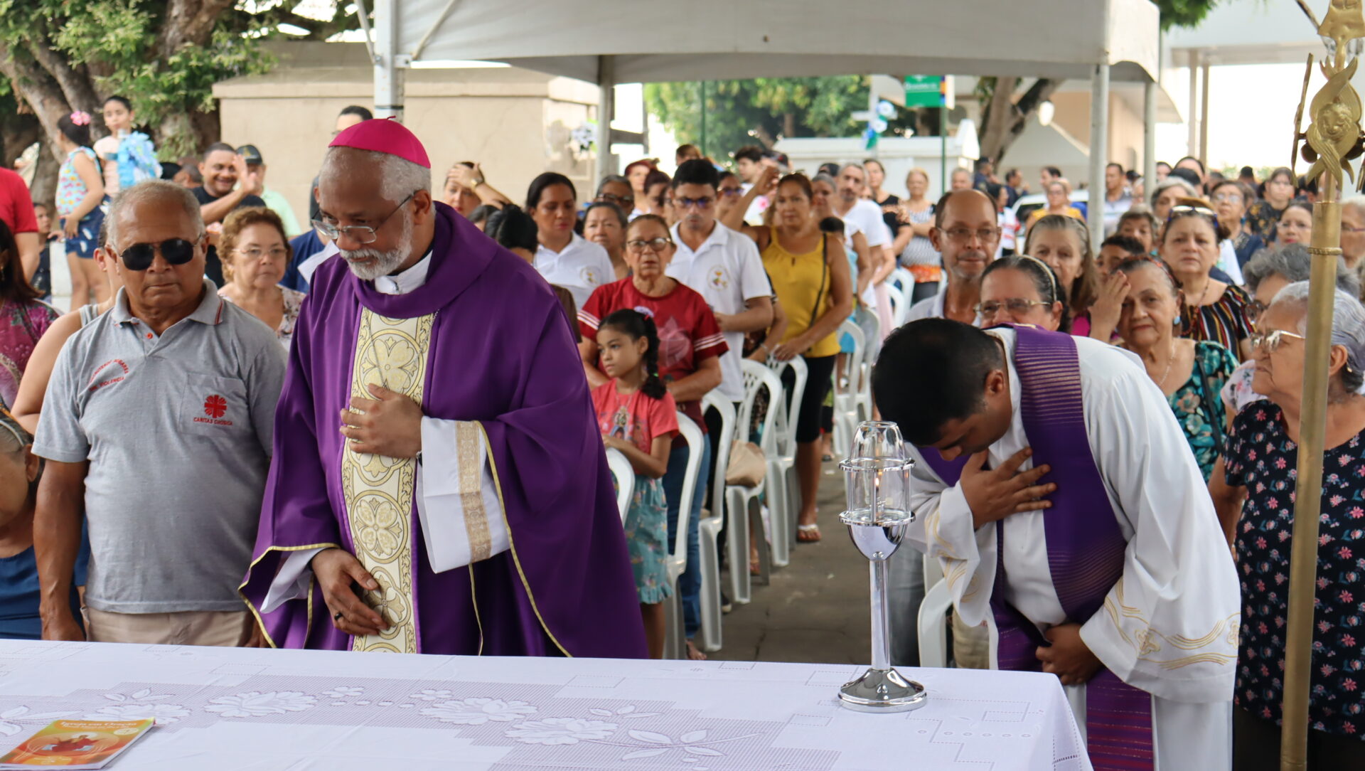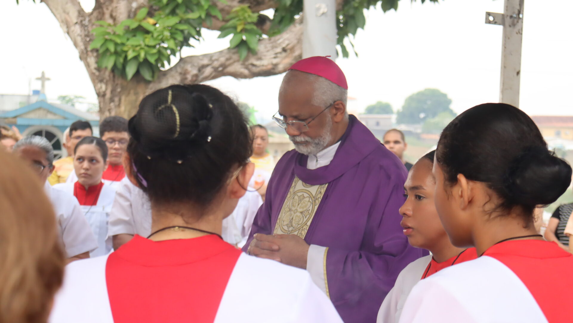 Ao final da celebração, fomos em procissão até o Cruzeiro. “Indo e vindo, trevas e luz. Tudo é graça, Deus nos conduz!” Mons. Zenildo abençoou, aspergindo, o cruzeiro e os presentes.