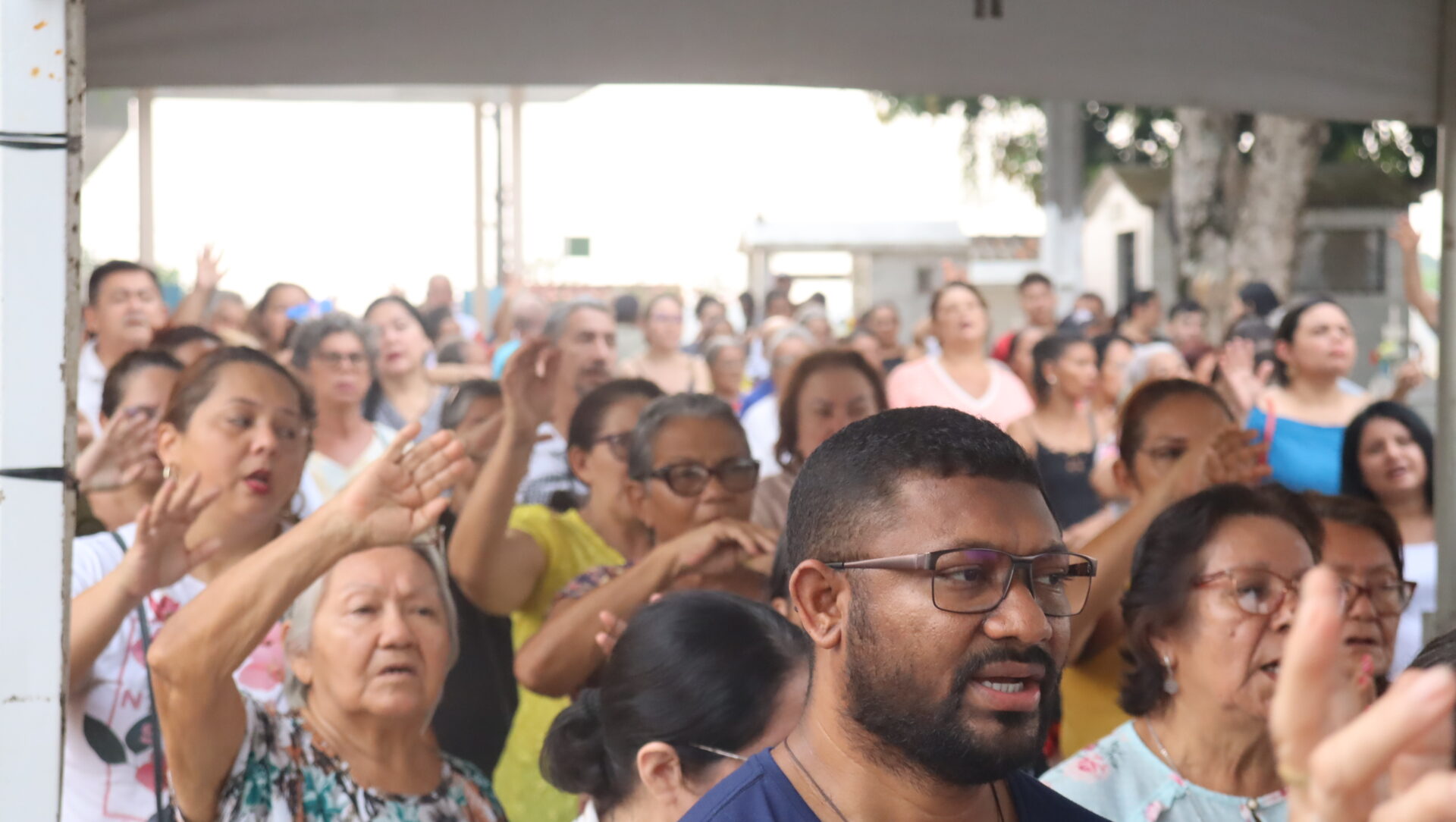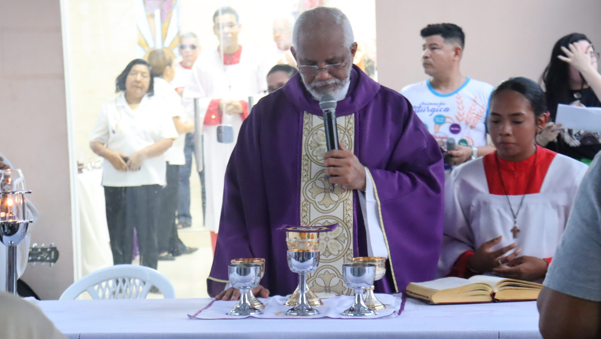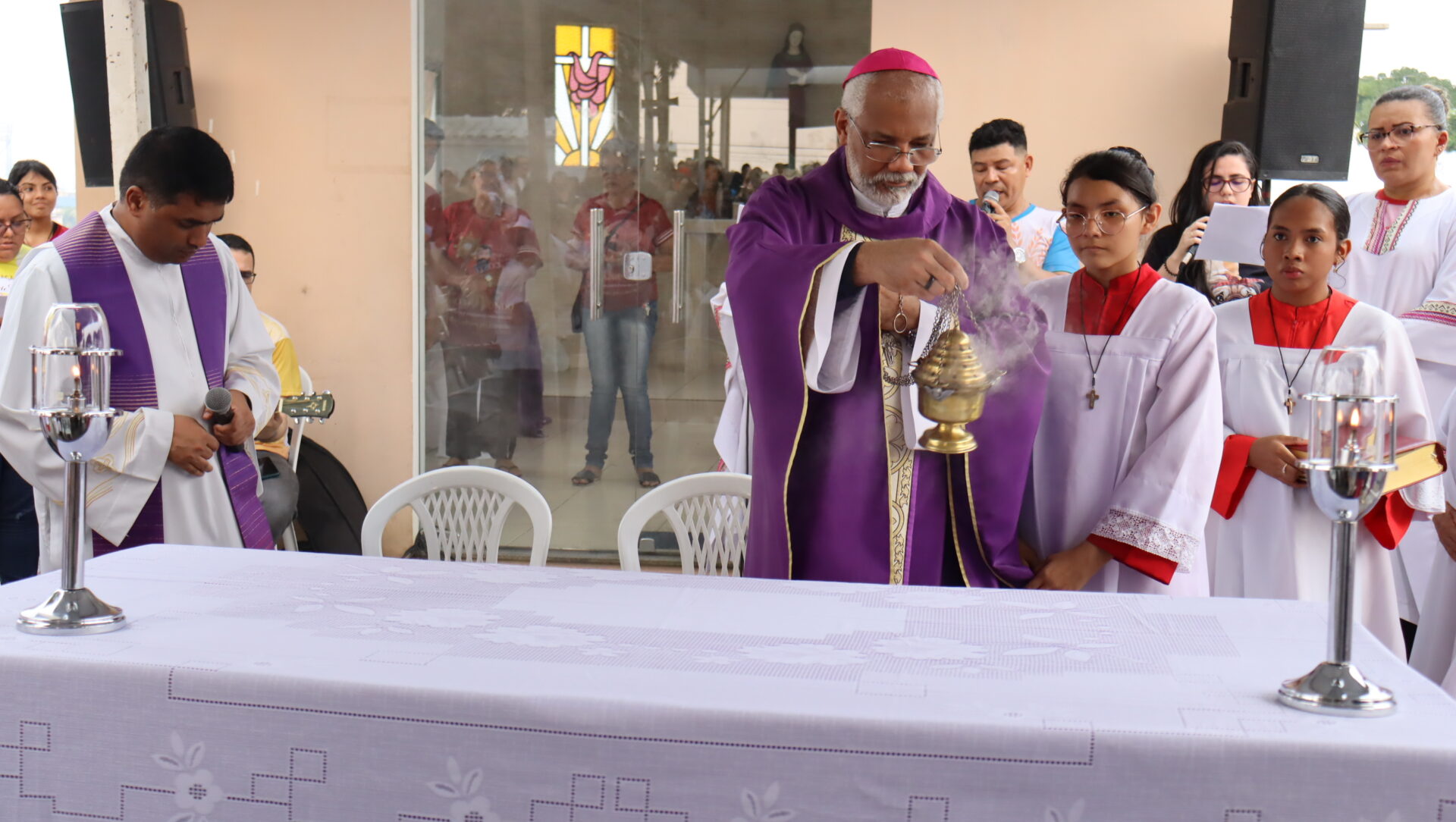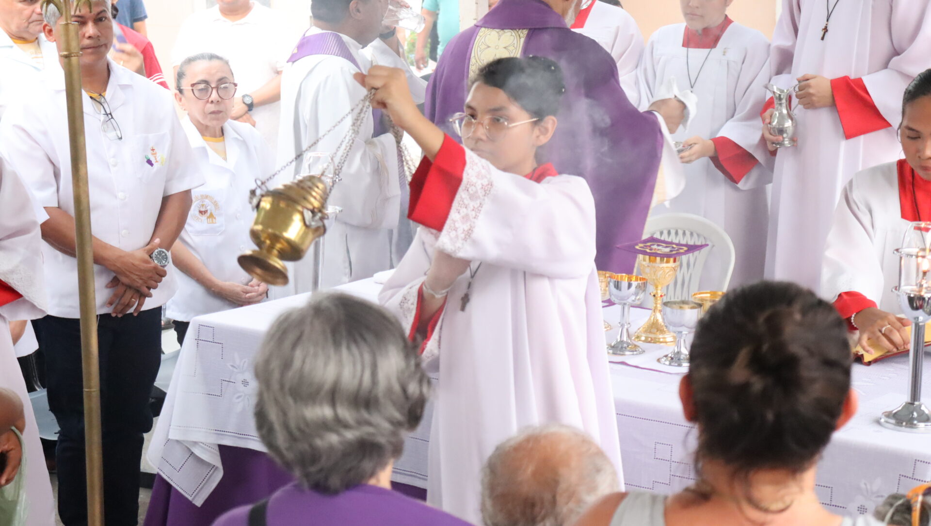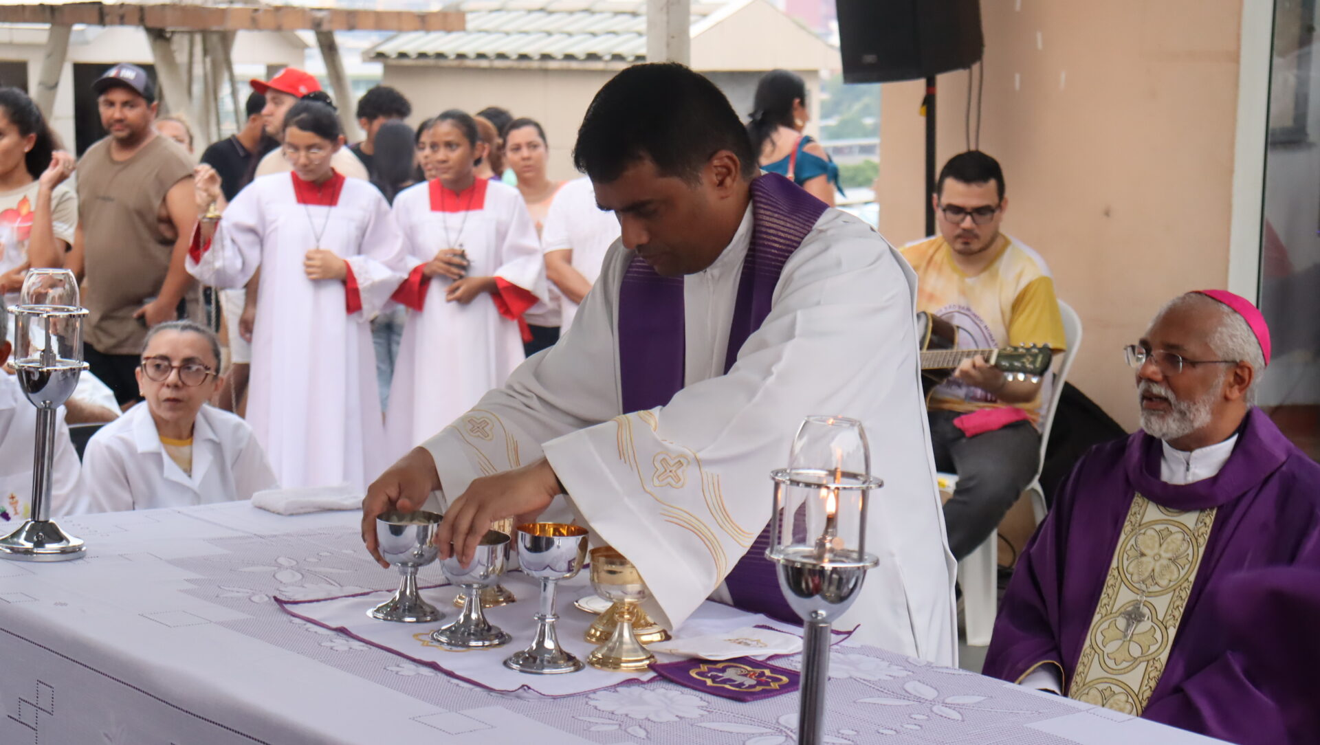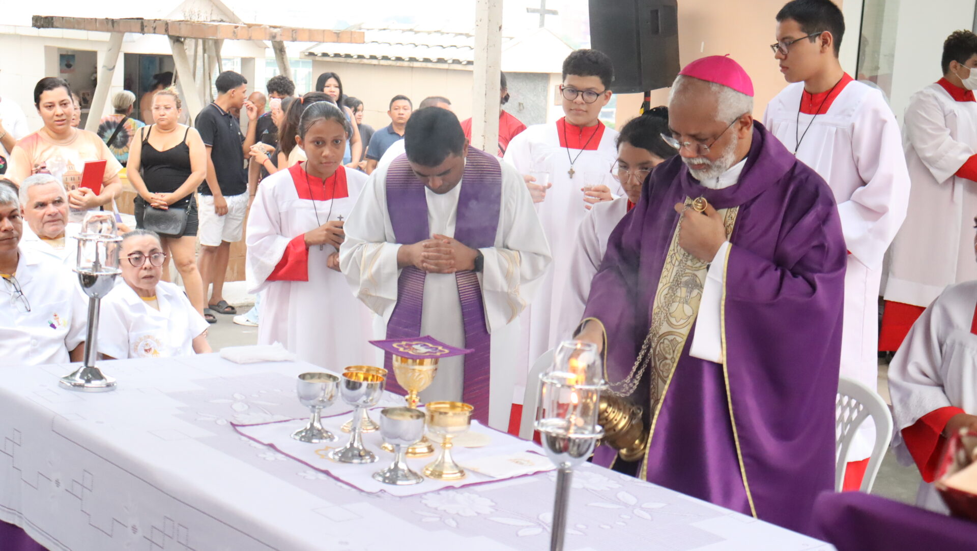 Ao final da celebração, fomos em procissão até o Cruzeiro. “Indo e vindo, trevas e luz. Tudo é graça, Deus nos conduz!” Mons. Zenildo abençoou, aspergindo, o cruzeiro e os presentes.