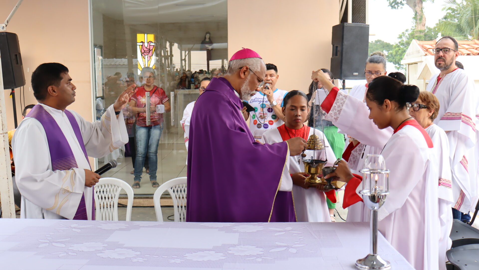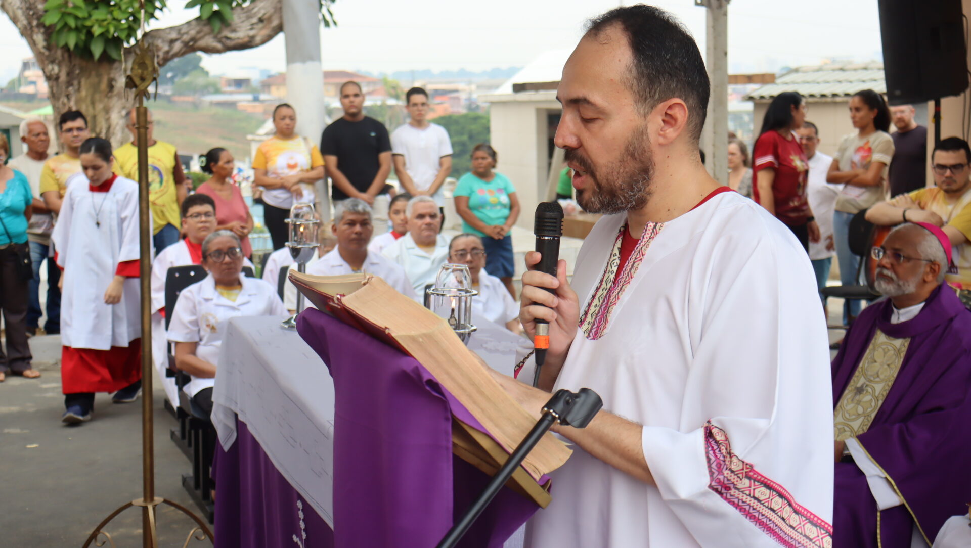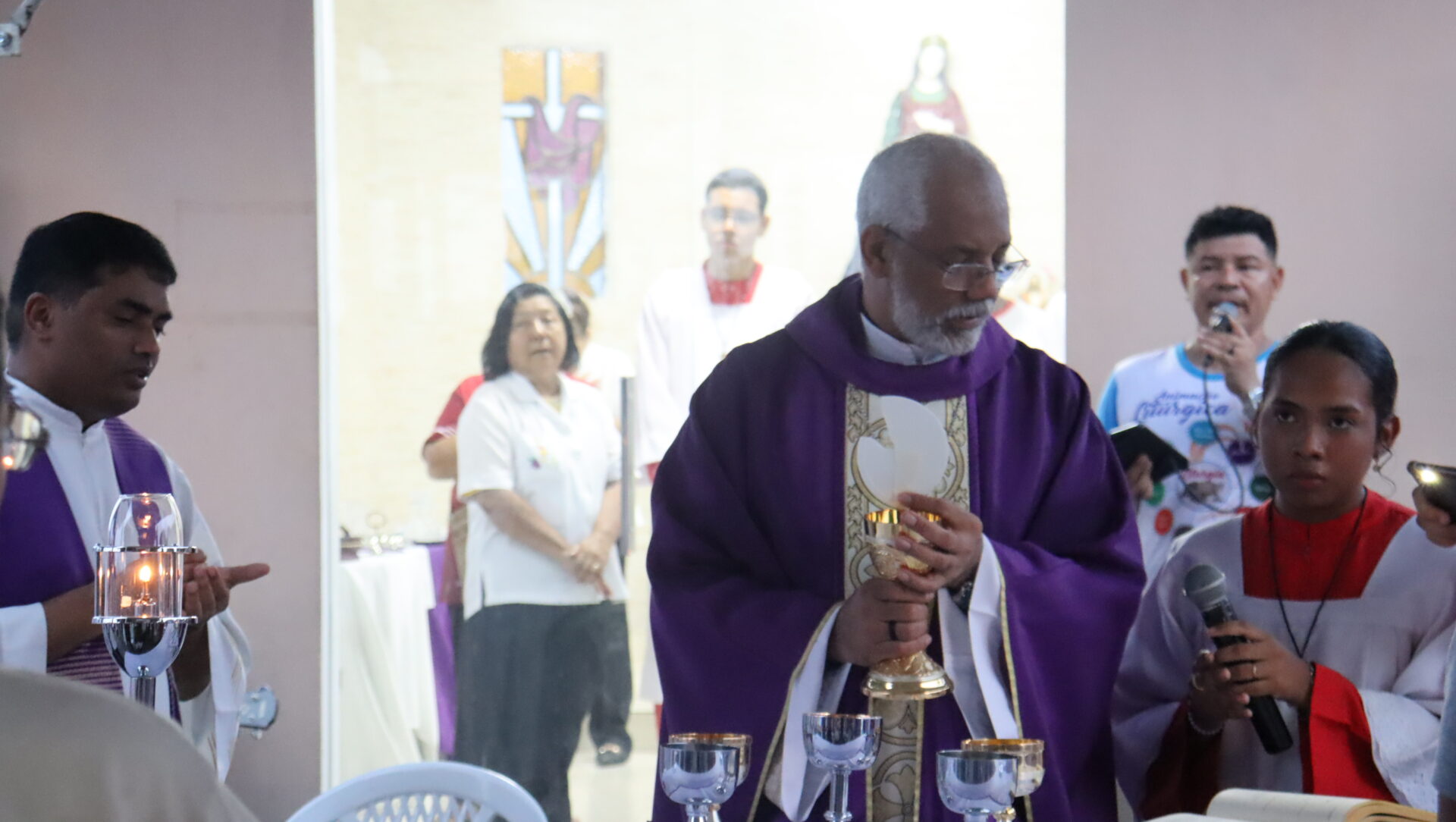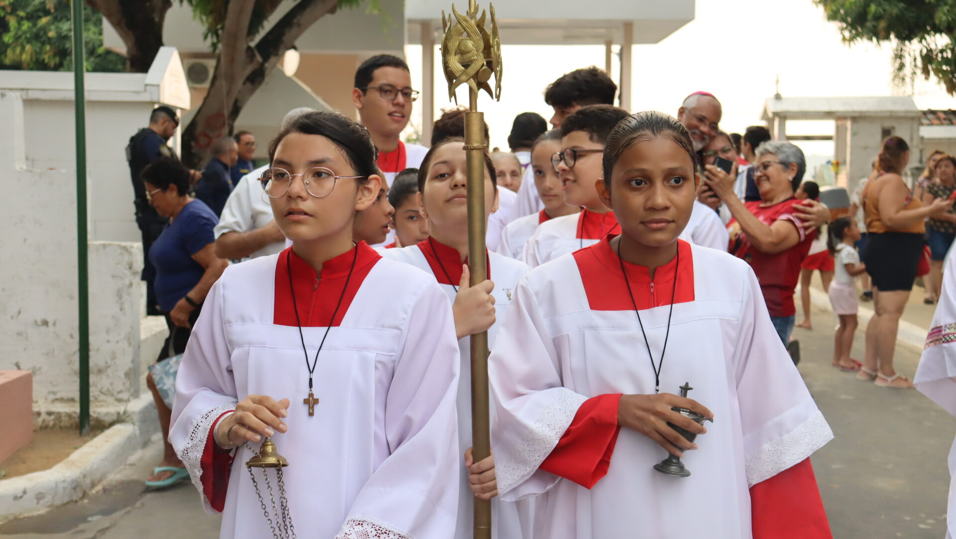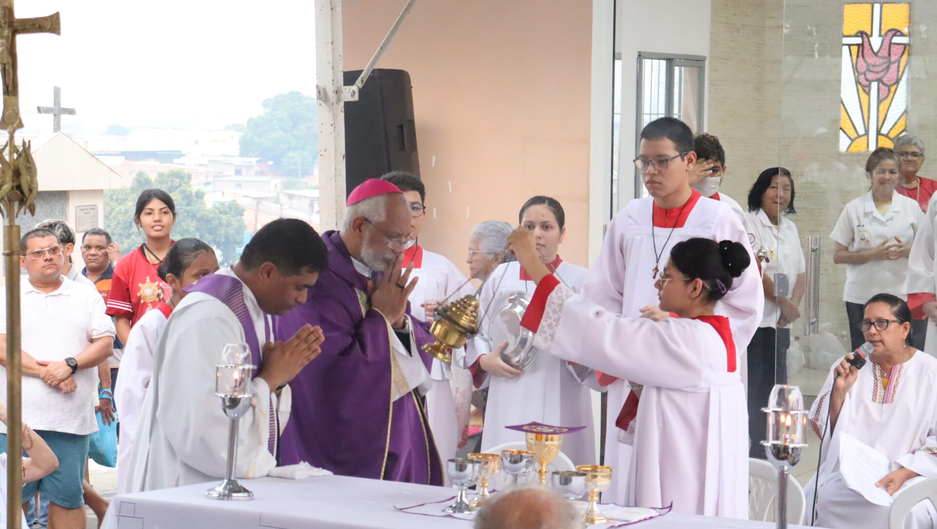 Ao final da celebração, fomos em procissão até o Cruzeiro. “Indo e vindo, trevas e luz. Tudo é graça, Deus nos conduz!” Mons. Zenildo abençoou, aspergindo, o cruzeiro e os presentes.