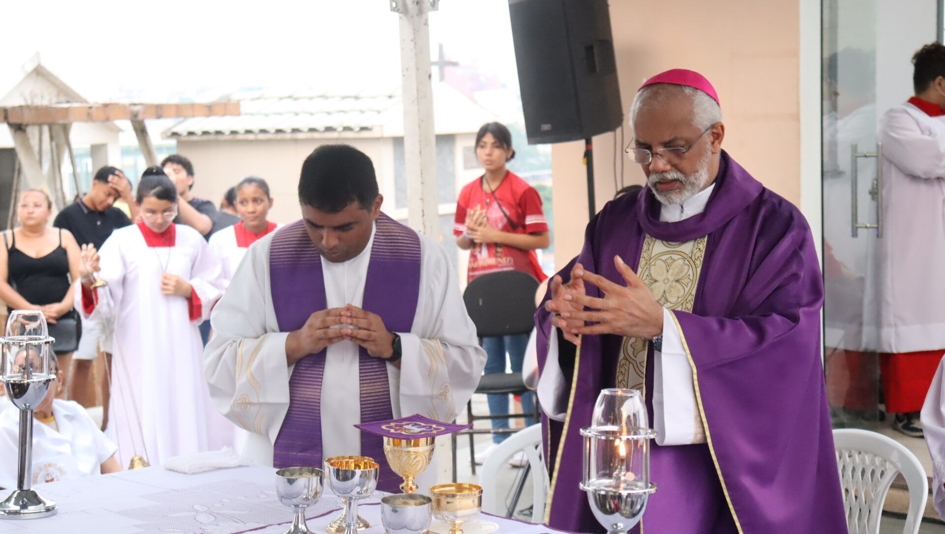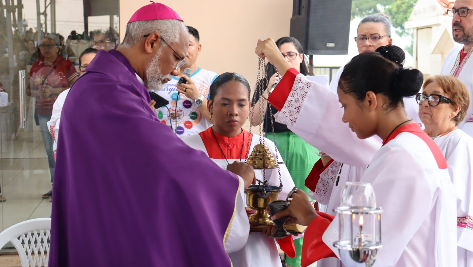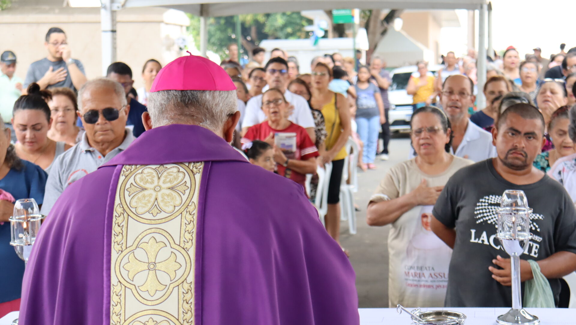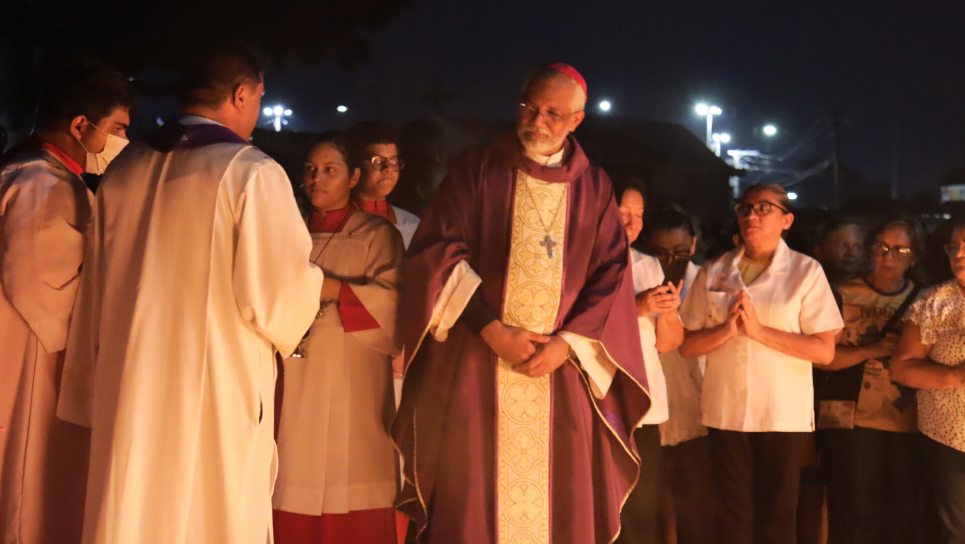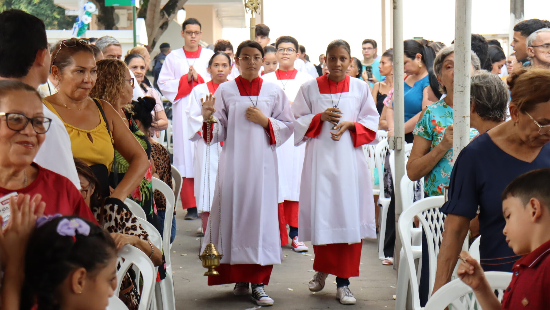 Ao final da celebração, fomos em procissão até o Cruzeiro. “Indo e vindo, trevas e luz. Tudo é graça, Deus nos conduz!” Mons. Zenildo abençoou, aspergindo, o cruzeiro e os presentes.