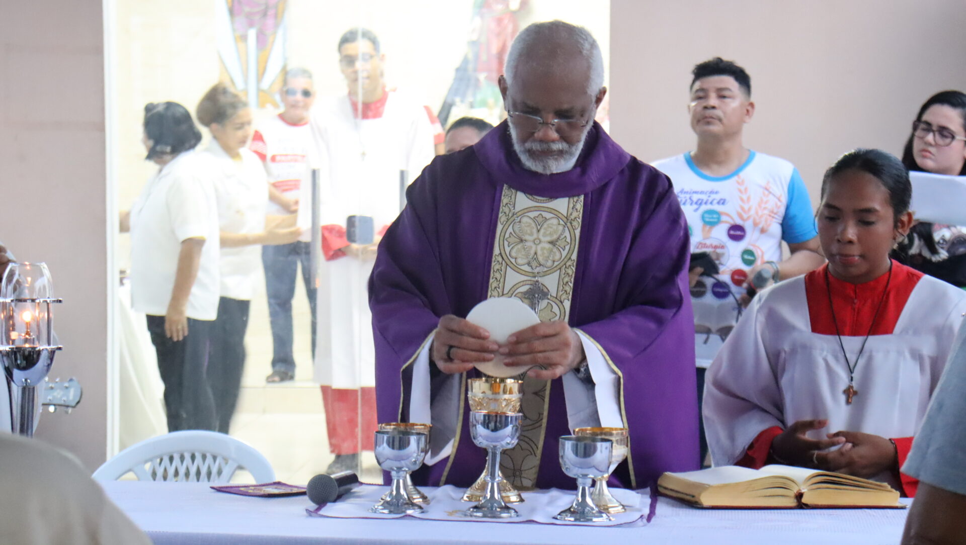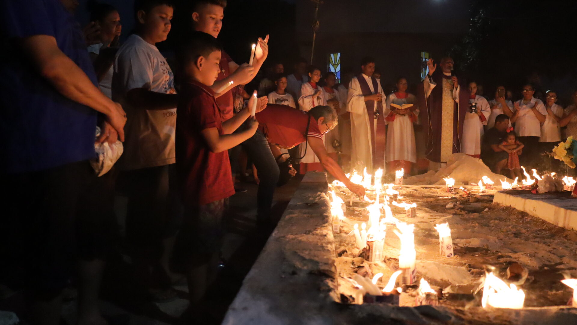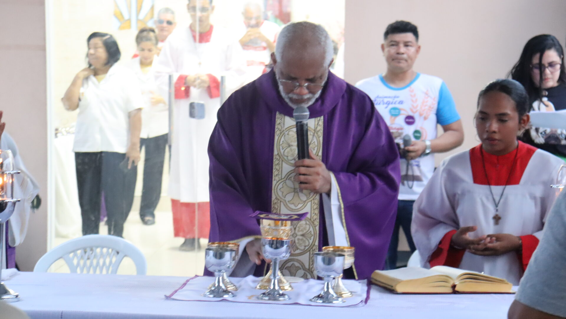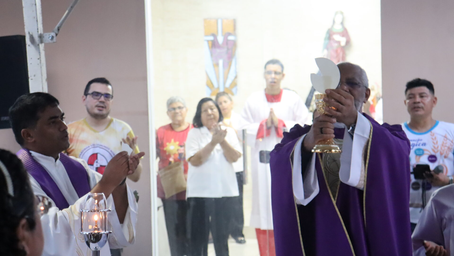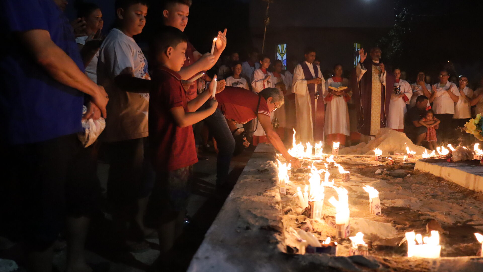 Ao final da celebração, fomos em procissão até o Cruzeiro. “Indo e vindo, trevas e luz. Tudo é graça, Deus nos conduz!” Mons. Zenildo abençoou, aspergindo, o cruzeiro e os presentes.