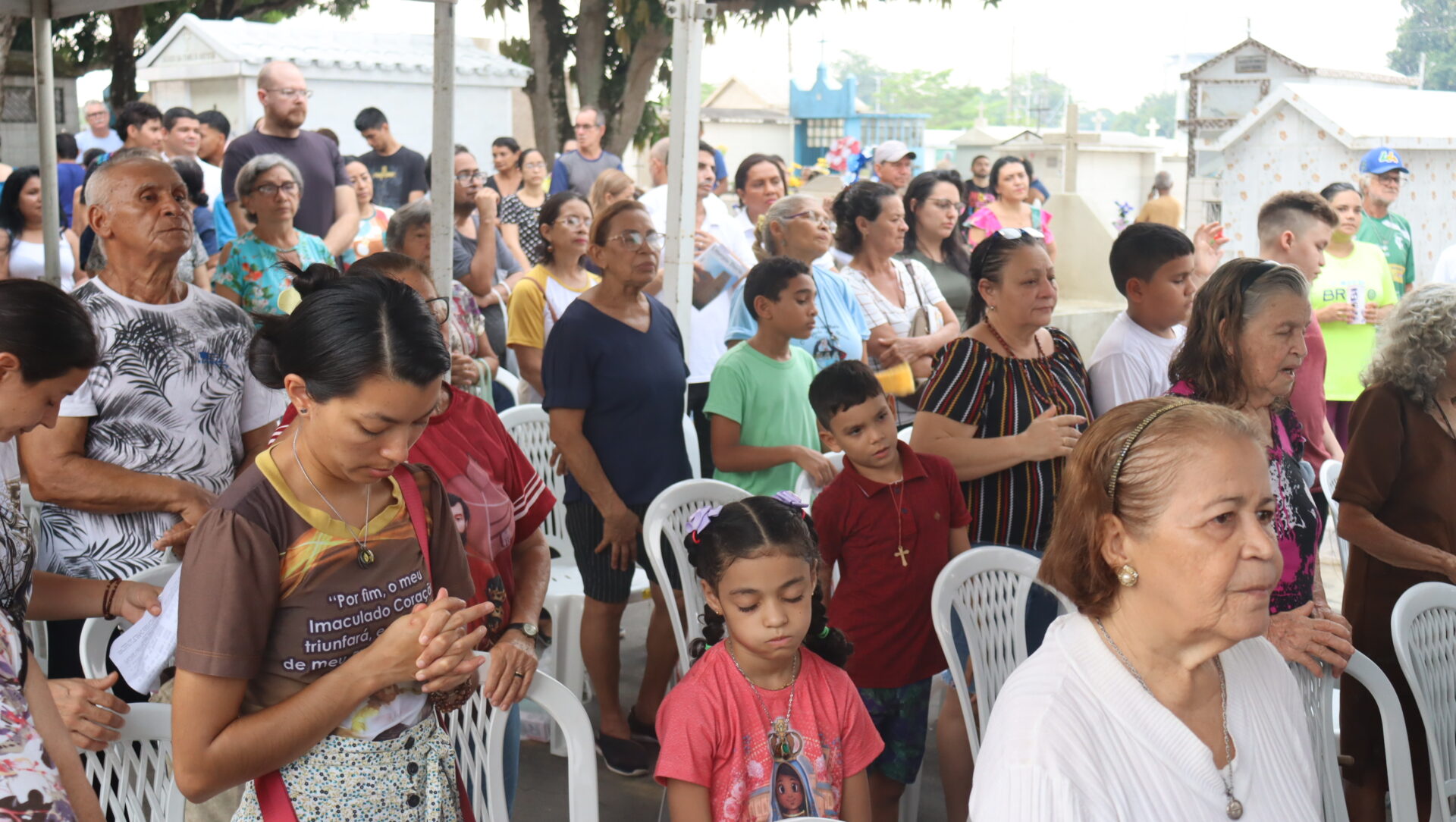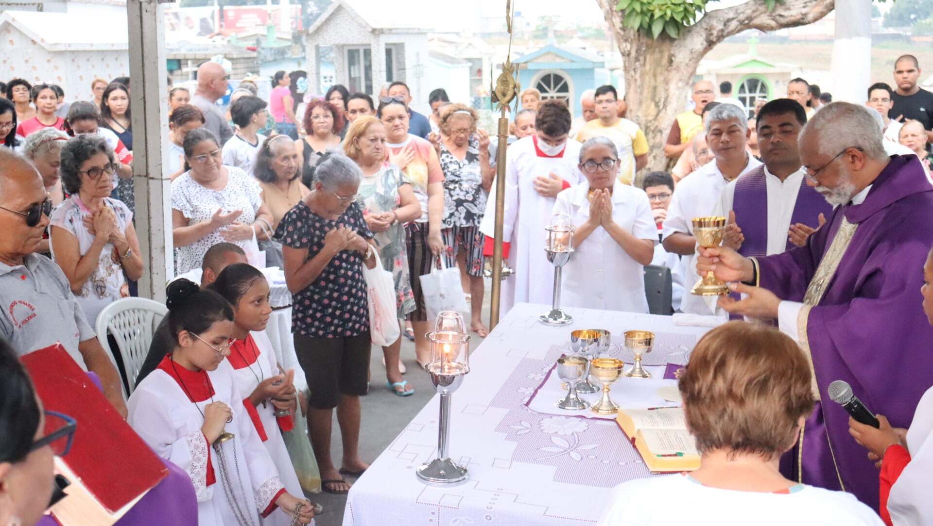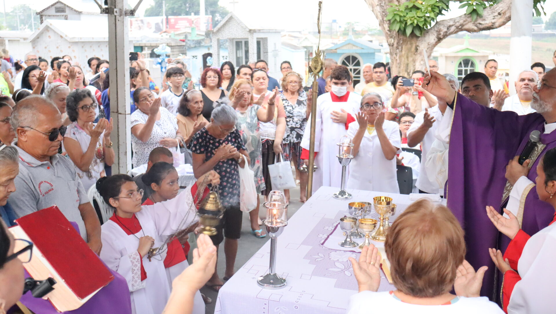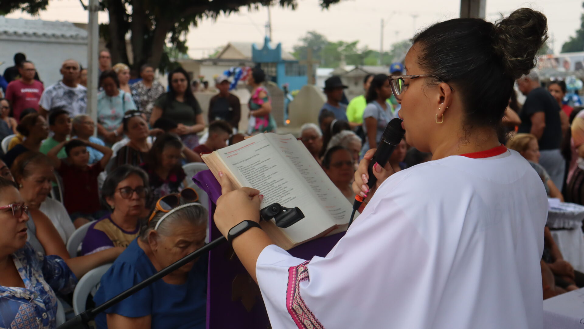 Encerramos este dia de Finados, no cemitério Santa Helena, com a missa presidida pelo monsenhor Zenildo, na companhia do padre John, nosso pároco. Monsenhor Zenildo falou sobre nossos sentimentos, mediante a partida dos nossos entes queridos, e como ficamos saudosos neste dia. Somos movidos pela necessidade de ir ao encontro deles, acender velas em suas sepulturas, como forma de homenageá-los. Quando vamos ao cemitério, disse Monsenhor, é também para nos reencontrarmos com os amigos e parentes vivos, que todos os anos vão neste dia. Foi gratificante nos reencontrarmos, as três Comunidades, para celebrarmos juntos nossa fé! Gratidão!
