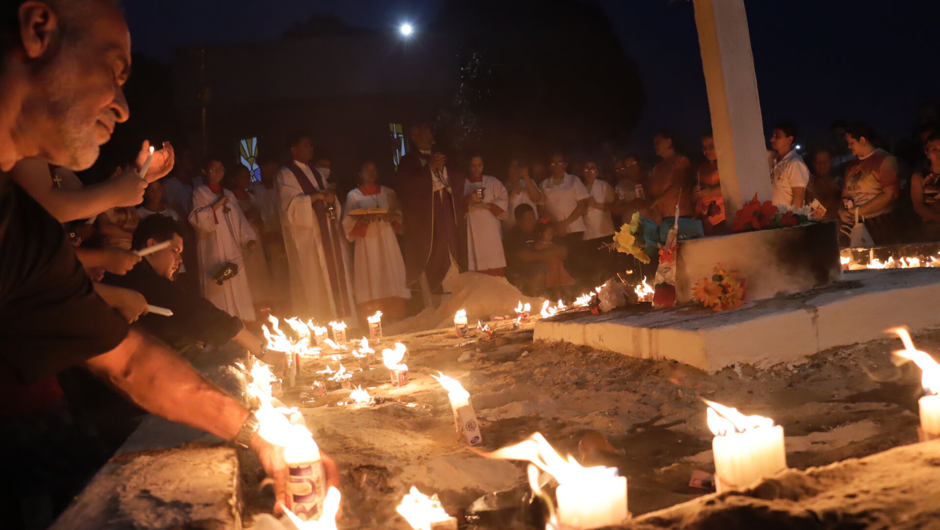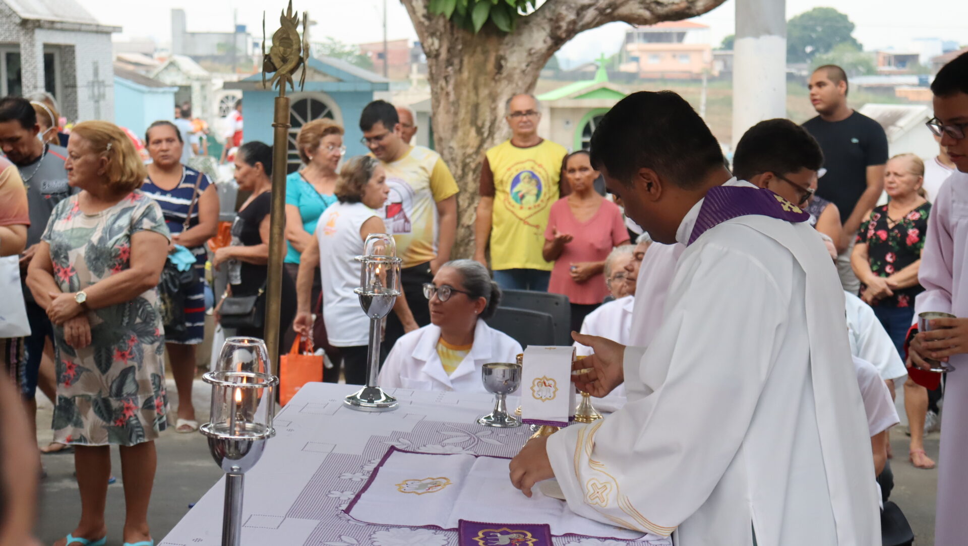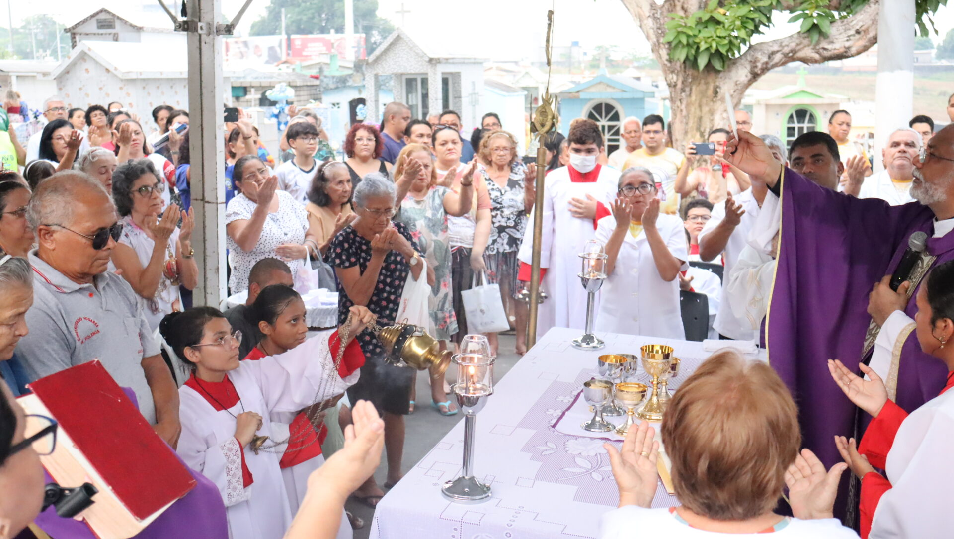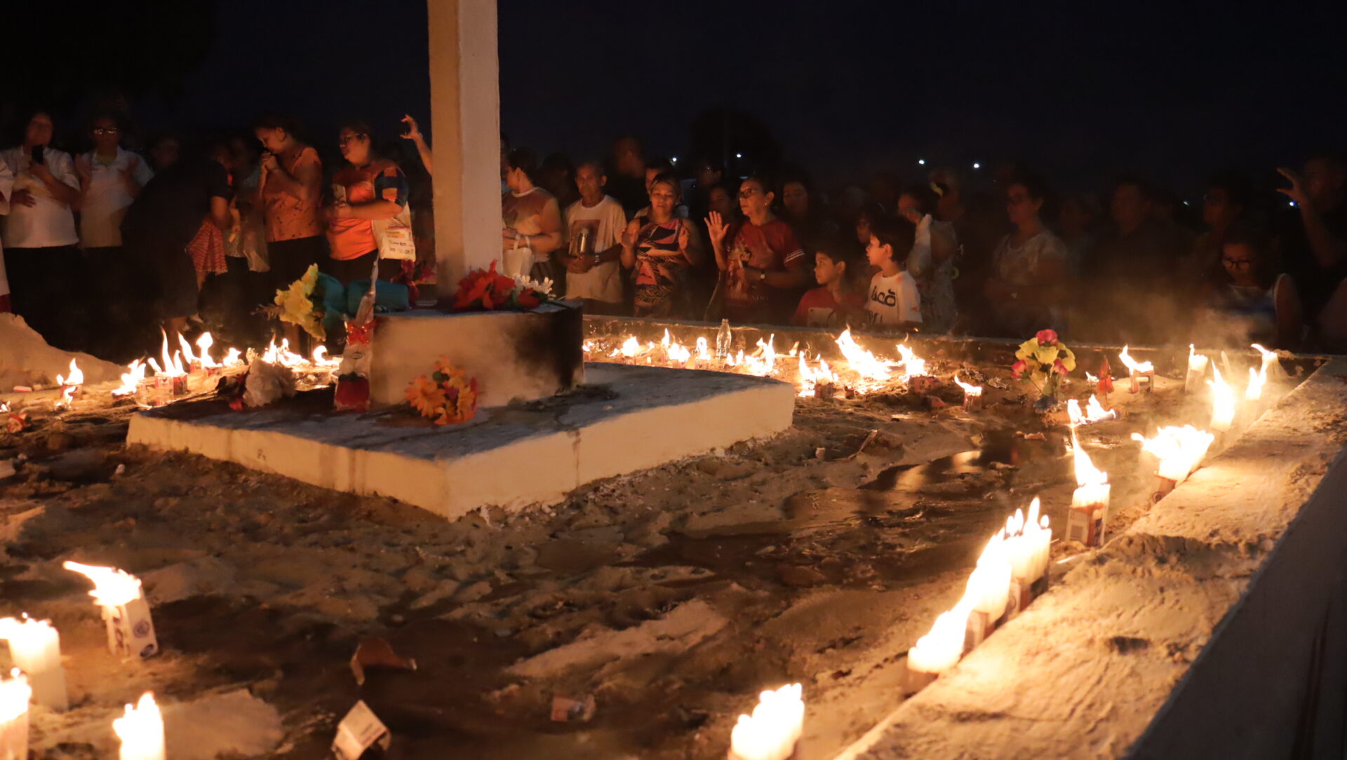 Encerramos este dia de Finados, no cemitério Santa Helena, com a missa presidida pelo monsenhor Zenildo, na companhia do padre John, nosso pároco. Monsenhor Zenildo falou sobre nossos sentimentos, mediante a partida dos nossos entes queridos, e como ficamos saudosos neste dia. Somos movidos pela necessidade de ir ao encontro deles, acender velas em suas sepulturas, como forma de homenageá-los. Quando vamos ao cemitério, disse Monsenhor, é também para nos reencontrarmos com os amigos e parentes vivos, que todos os anos vão neste dia. Foi gratificante nos reencontrarmos, as três Comunidades, para celebrarmos juntos nossa fé! Gratidão!
