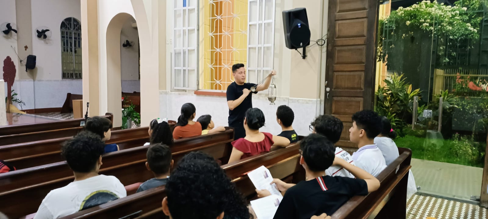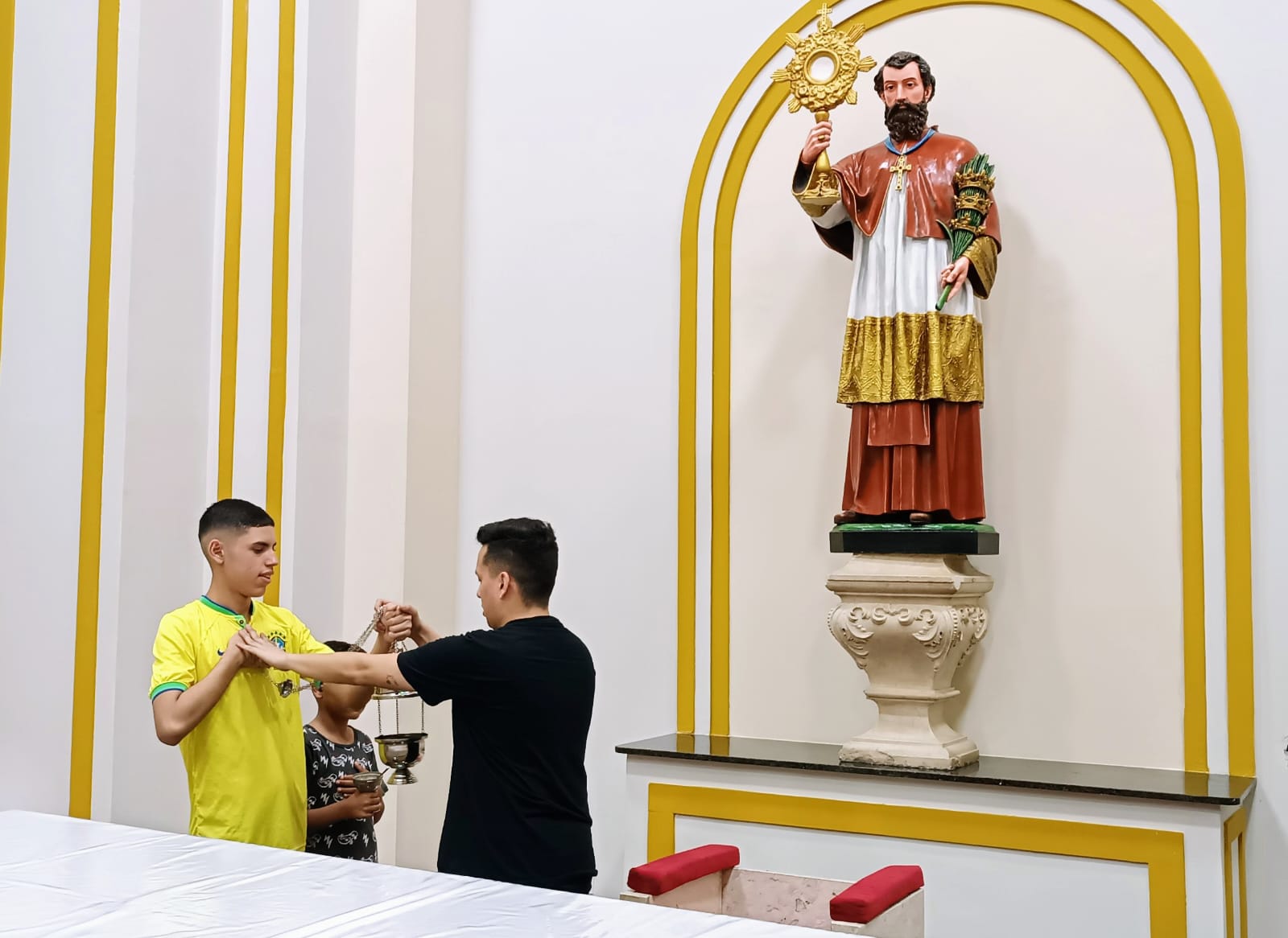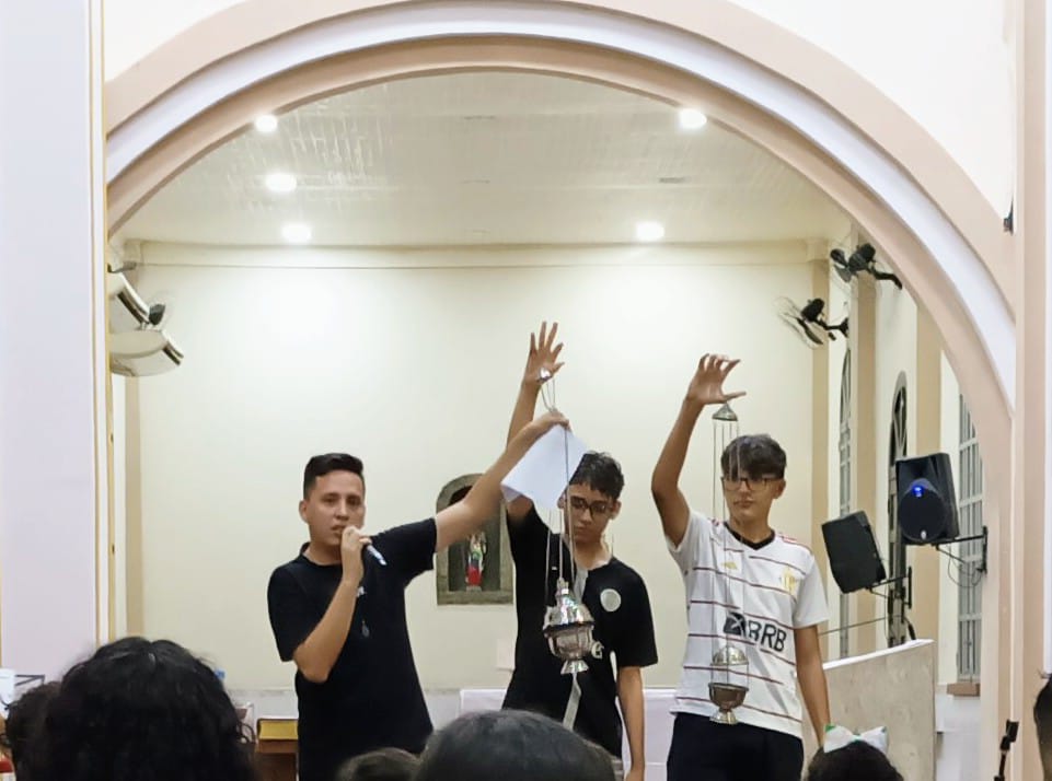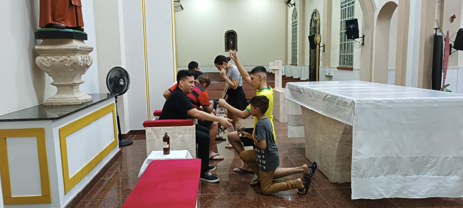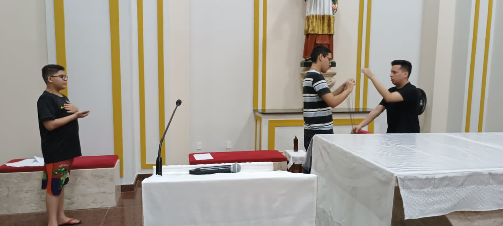 Na última sexta-feira, dia 7 de julho, na Comunidade São Raimundo Nonato aconteceu uma Oficina de Missal e Turíbulo para os Aspirantes e Coroinhas de nossa Paróquia. O formador convidado, Victor Daniel, coordenador dos Coroinhas no setor Avenida Brasil, trabalhou o tema com os participantes, que se