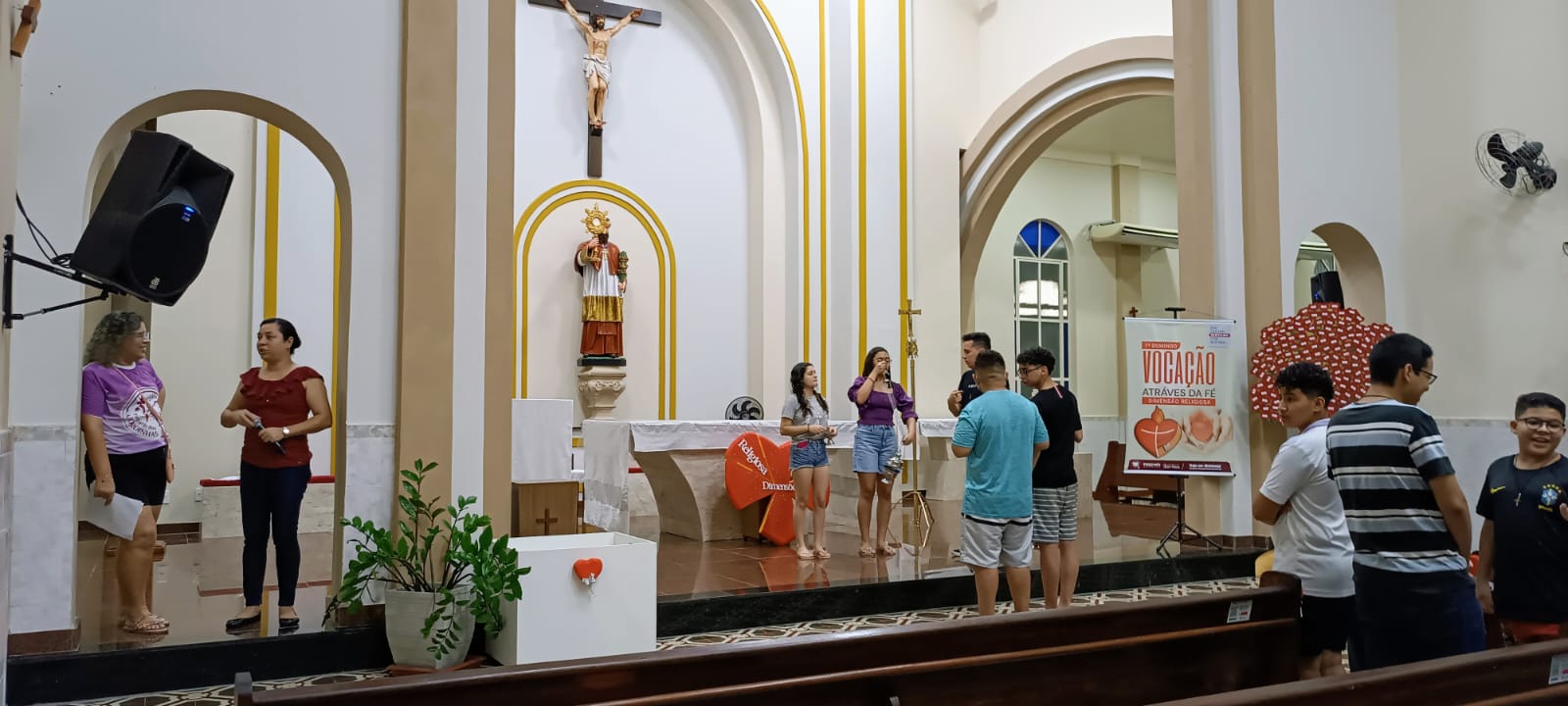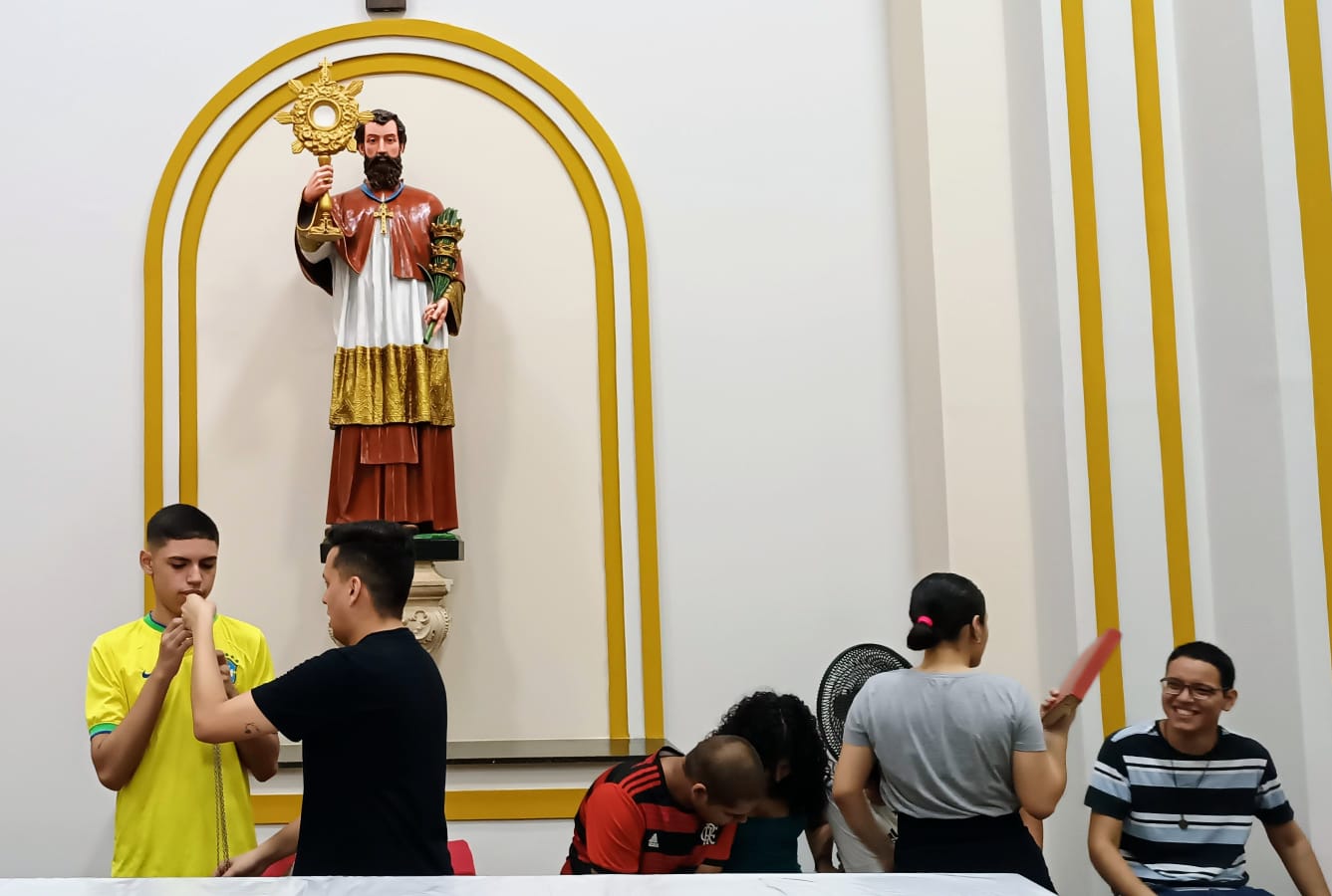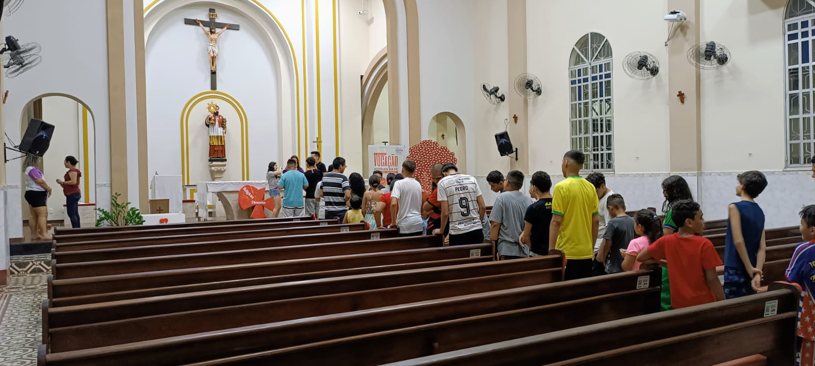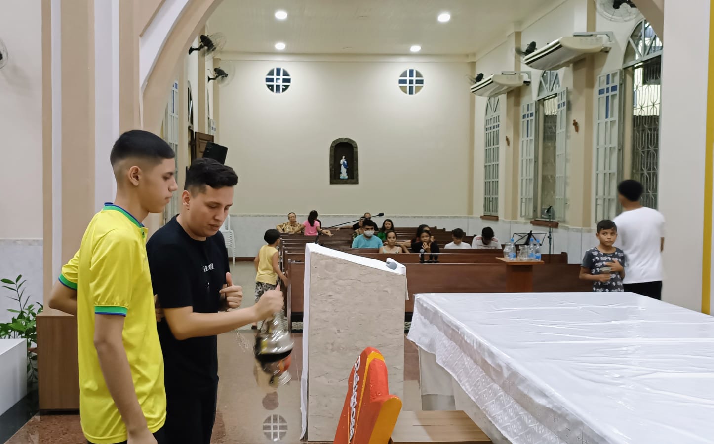 Na última sexta-feira, dia 7 de julho, na Comunidade São Raimundo Nonato aconteceu uma Oficina de Missal e Turíbulo para os Aspirantes e Coroinhas de nossa Paróquia. O formador convidado, Victor Daniel, coordenador dos Coroinhas no setor Avenida Brasil, trabalhou o tema com os participantes, que se