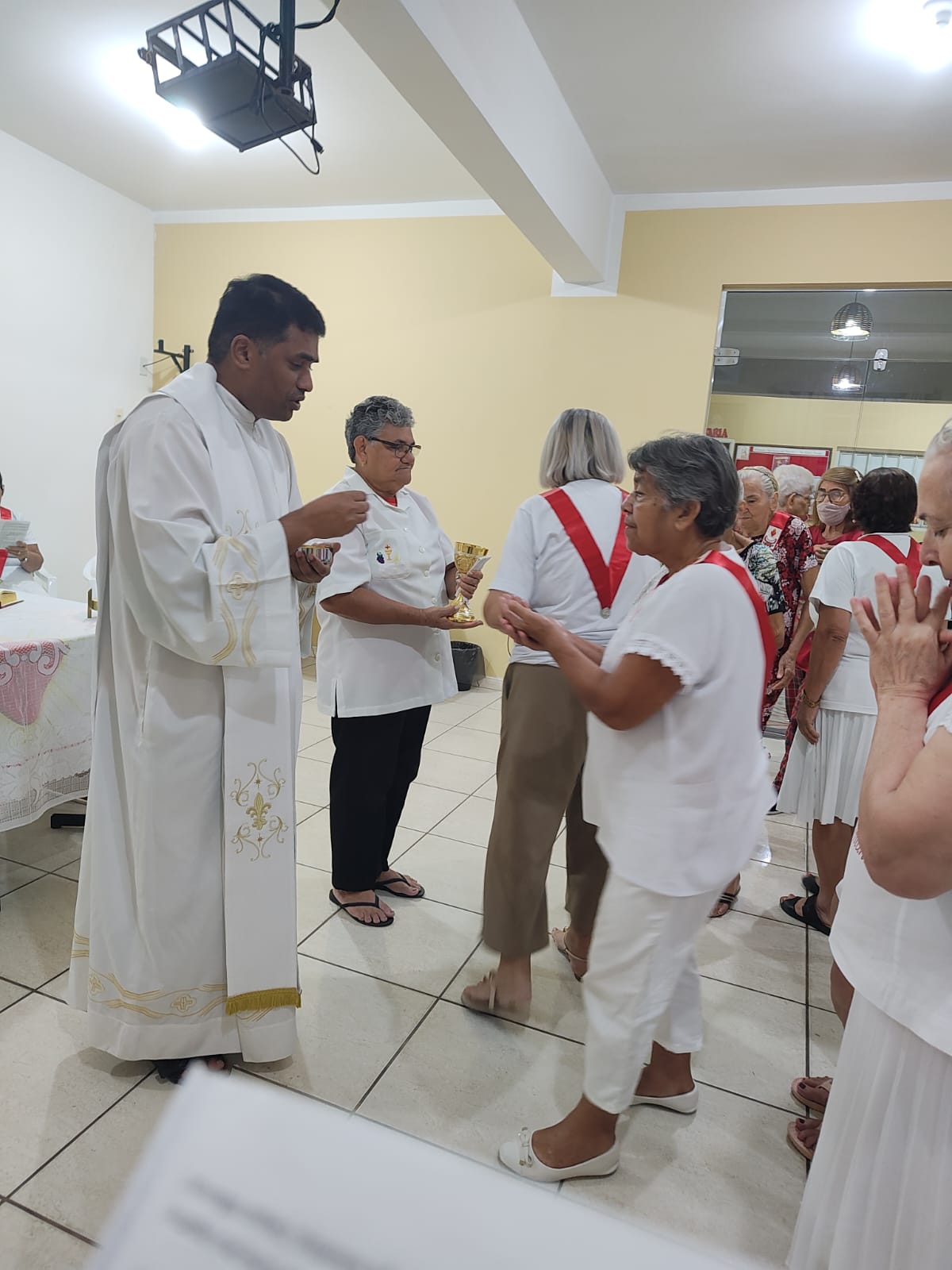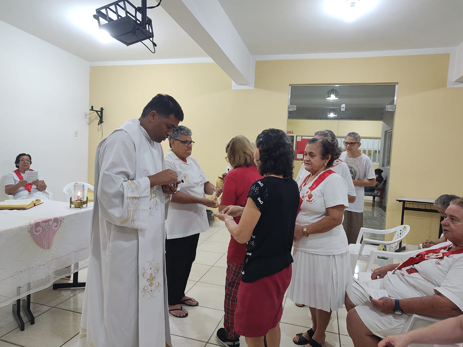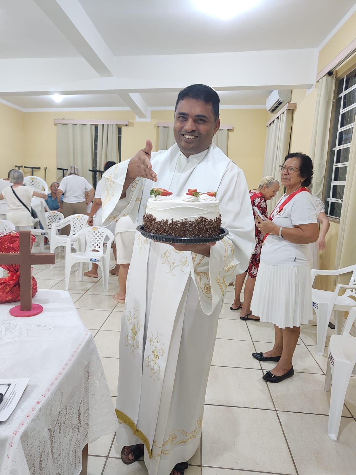 Ao final, os membros do Apostolado fizeram sua homenagem ao padre, cantaram parabéns e serviram um delicioso lanche.