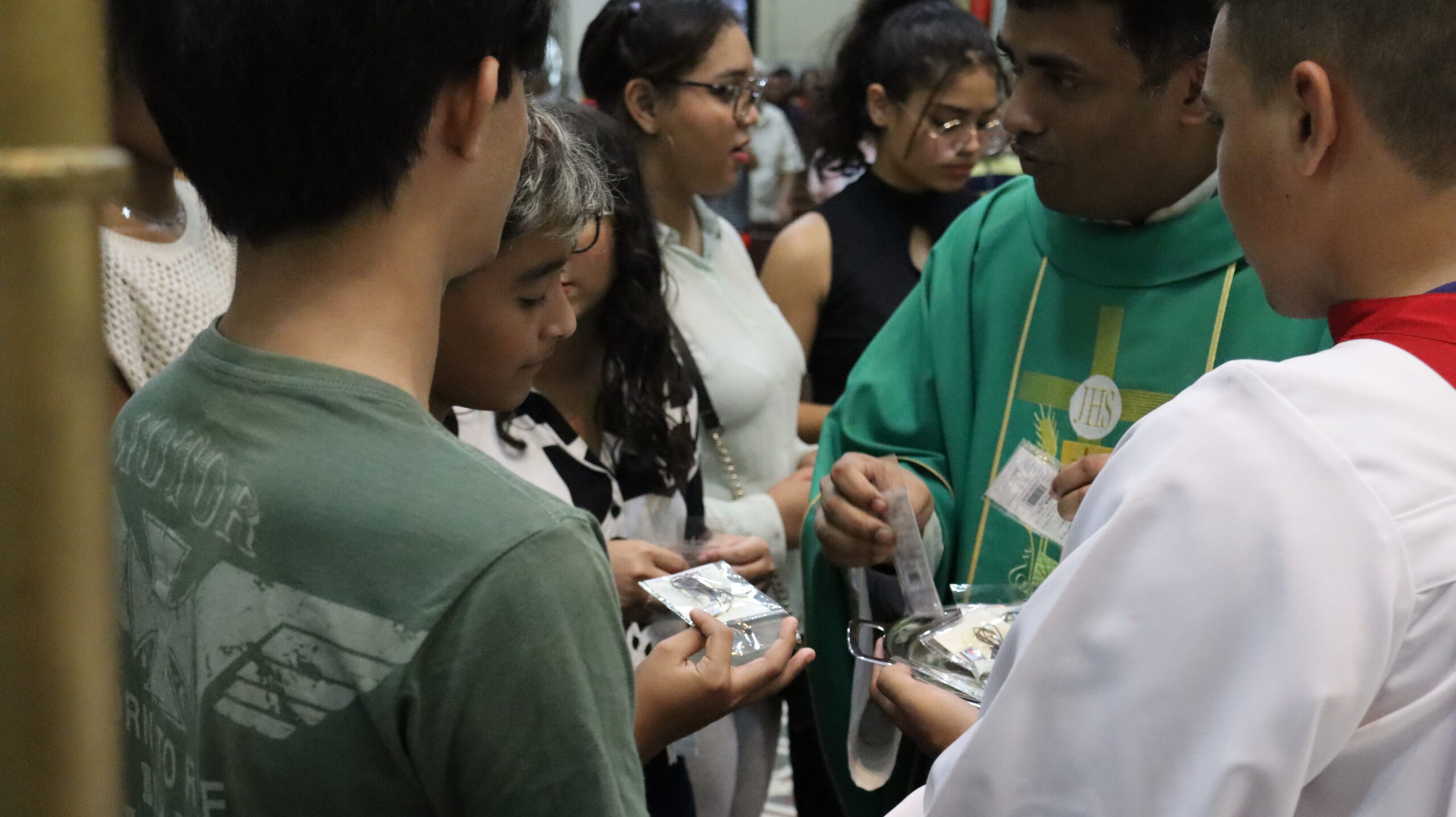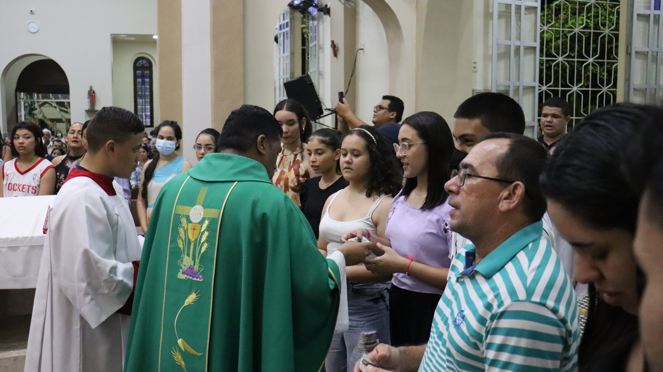 Neste domingo, data marcaca pela comemoração do dia de Nossa Senhora do Carmo, na celebração a nível paróquial às 19h, presidida pelo nosso pároco Pe. Jonh Paul, realizou-se rito da entrega do escapulário para os jovens da Catequese de Crisma 1 de todas as comunidades e da Catequese de Adultos. O Escapulário é um sinal de intimidade com a Nossa Mãe Maria e seu filho Jesus, os dois estão ligados. Um sacramental para ser usado buscando sempre essa intimidade e essa proteção, todos estavam bem alegres ao receberem o escapulário das mãos do padre. Que Maria os direcione na caminhada como fez com seu filho Jesus.