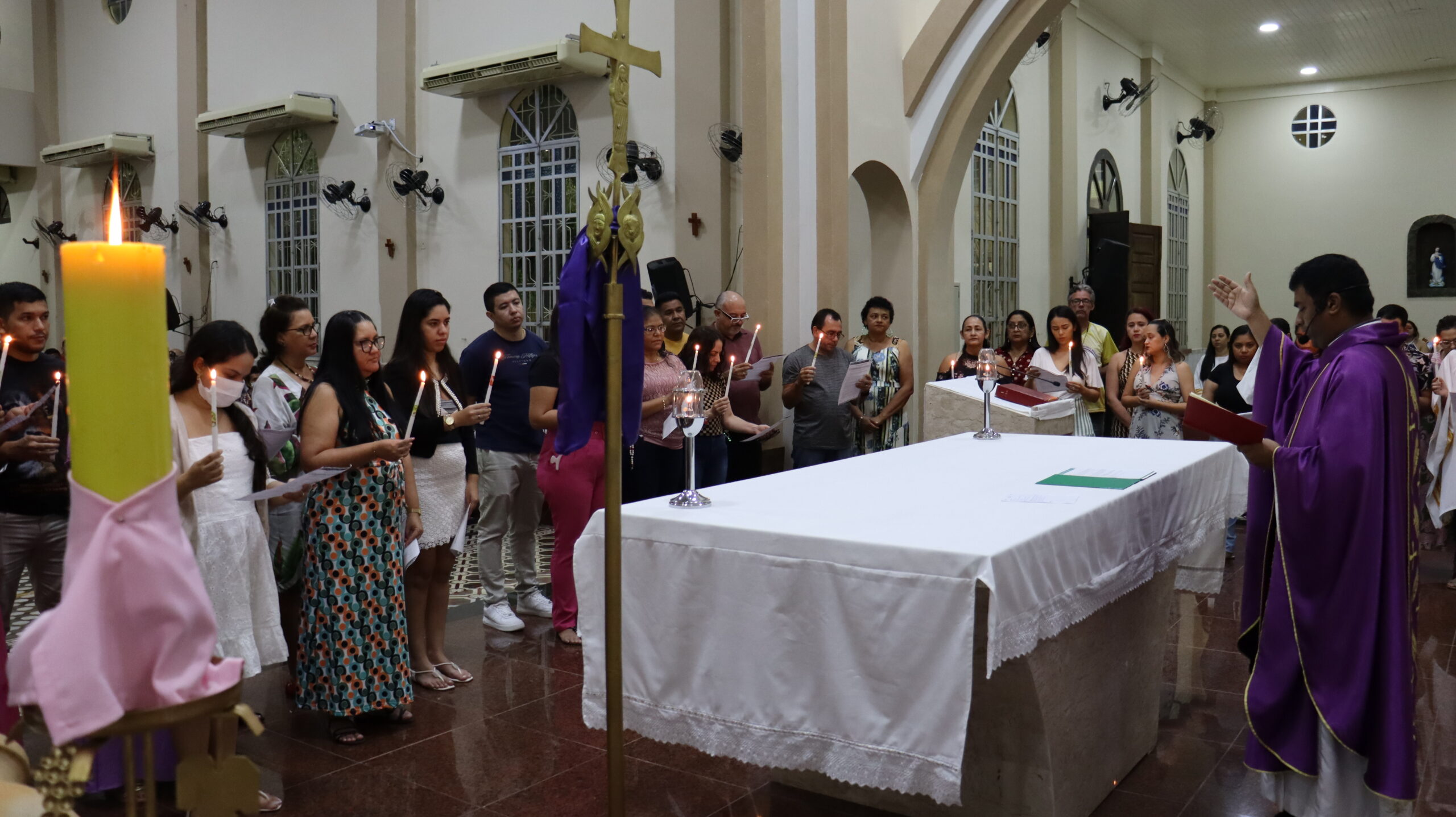 Neste domingo (18), às 19h, a Catequese da paróquia São Raimundo Nonato vivenciou o Segundo Rito dos Escrutínios, com o tema “Luz do mundo”. Durante a celebração eucarística, presidida pelo nosso pároco, padre John Paul, refletimos sobre a necessidade de caminharmos para a luz de Cristo, curando nossas cegueiras espirituais com dom da fé e buscando uma nova vida com um novo olhar.
