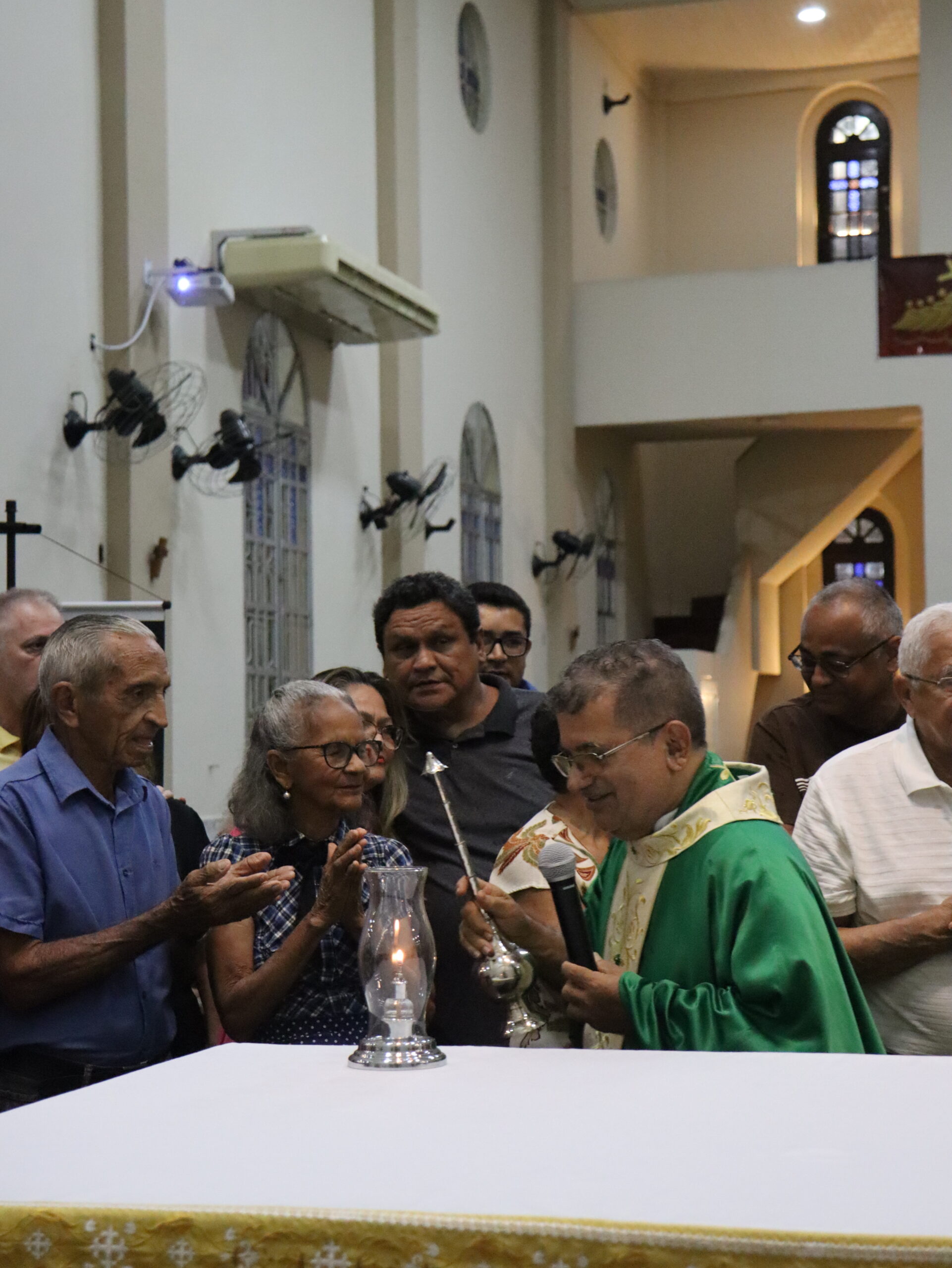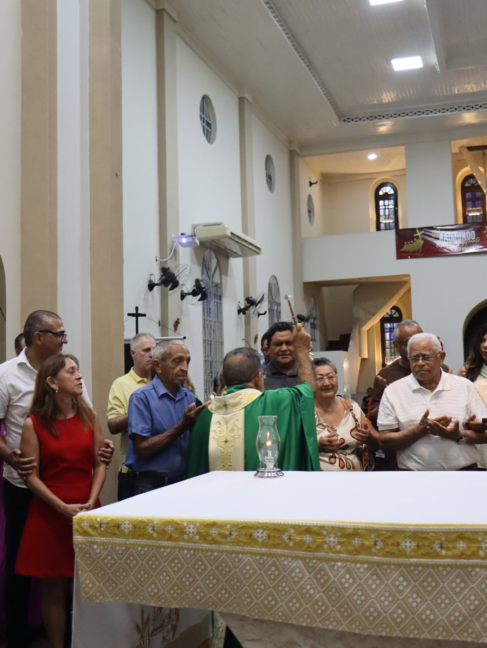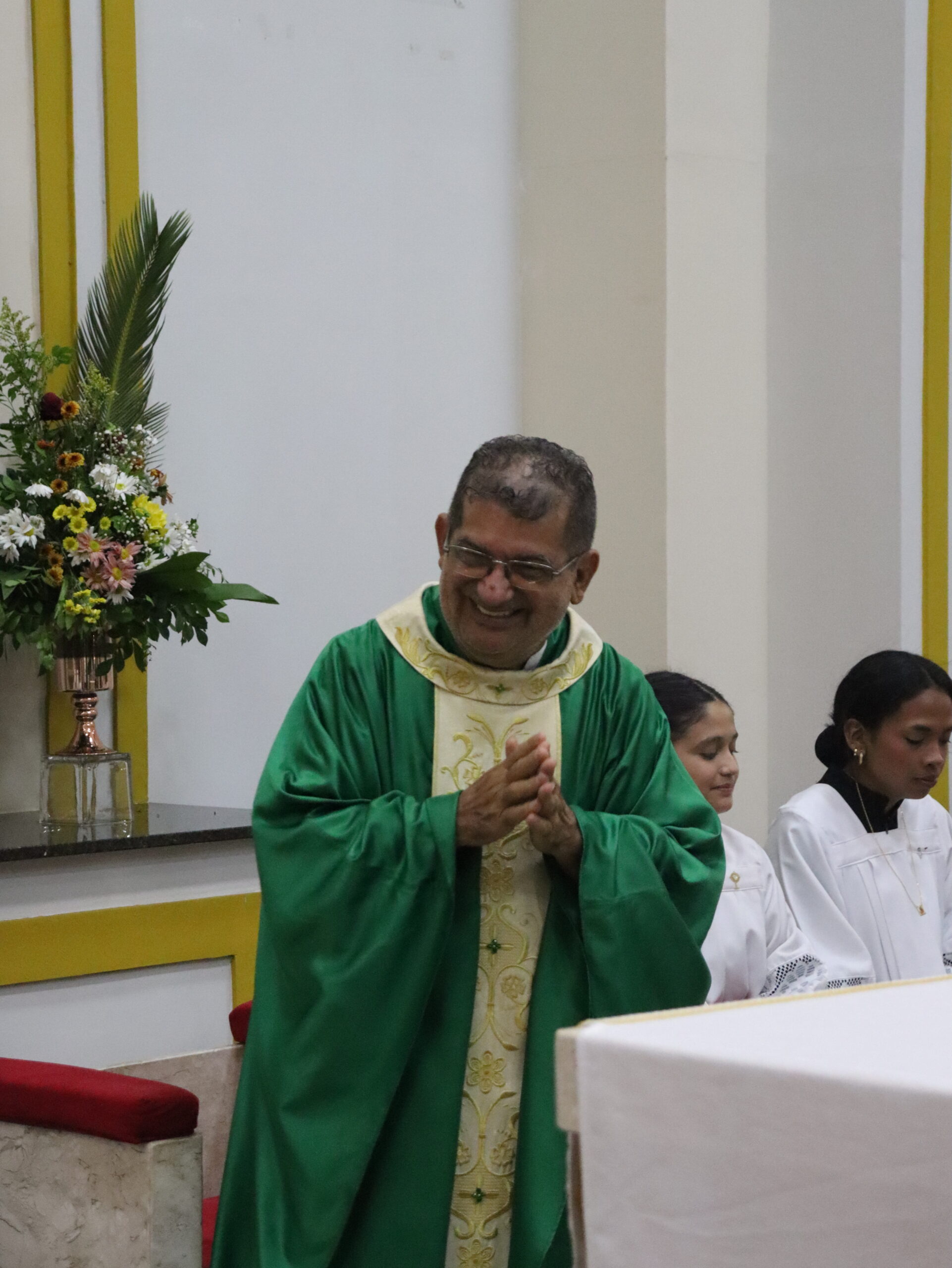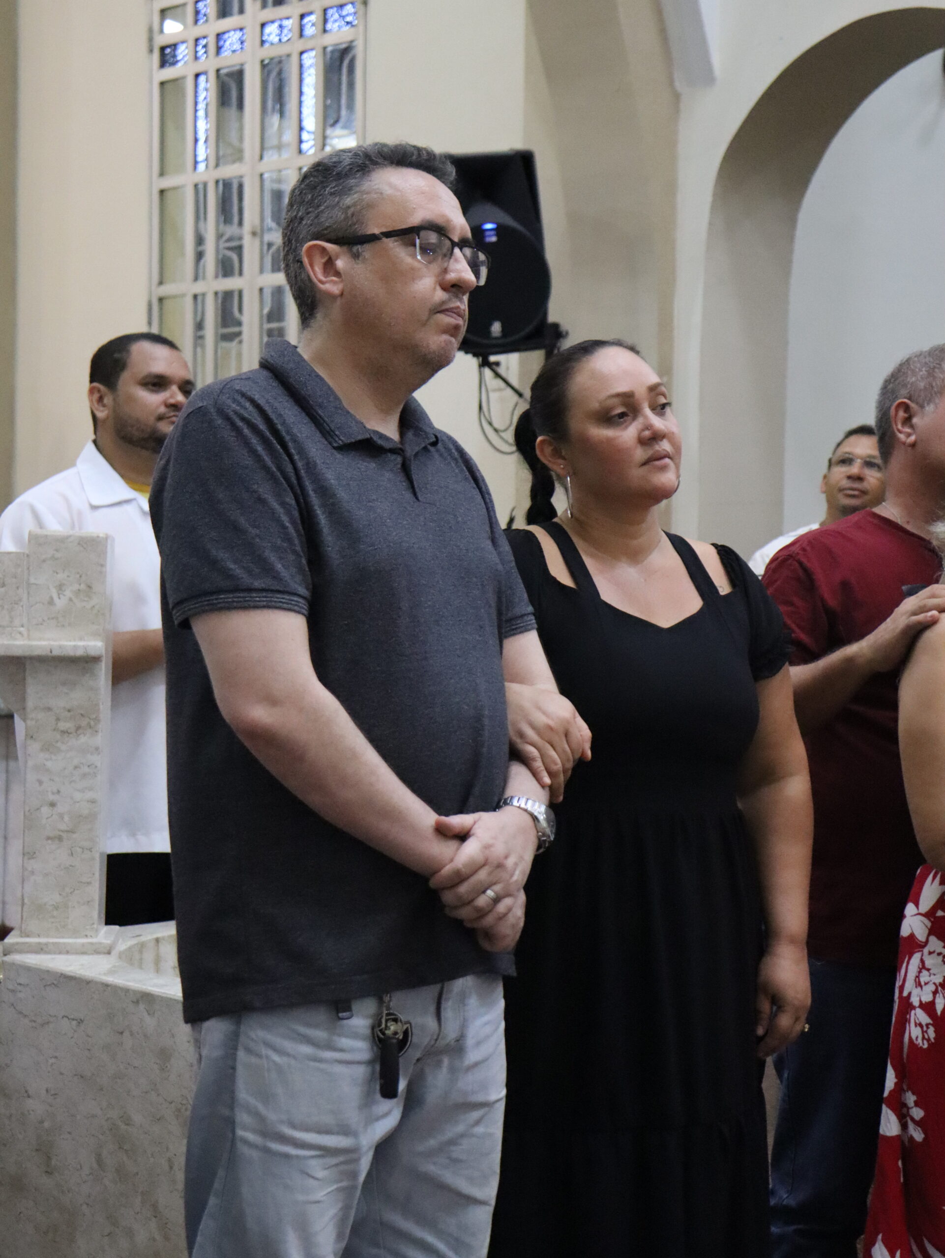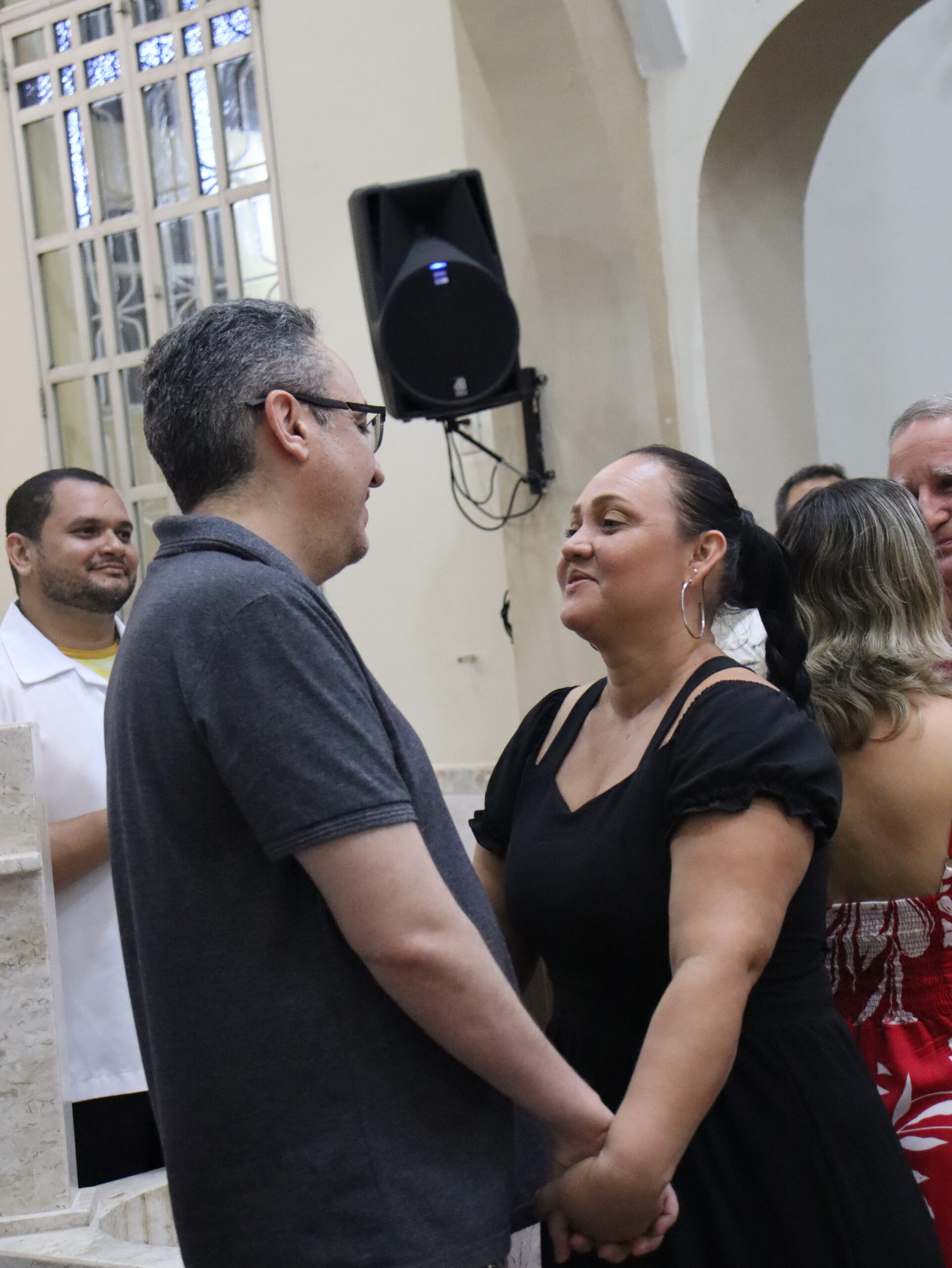 A Santa Missa foi presidida pelo Pe. Danival Lopes, que nos conduziu em uma celebração marcada pela fé e pela presença do Espírito Santo. Nesta noite especial, os casais receberam a bênção matrimonial, renovando diante de Deus o compromisso do amor, do cuidado e da fidelidade.