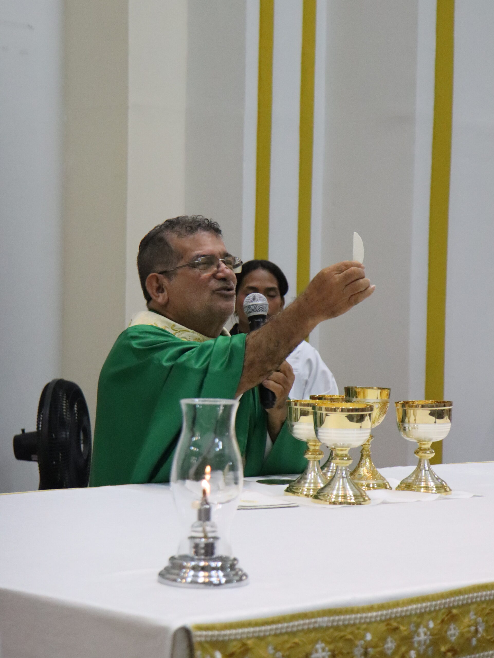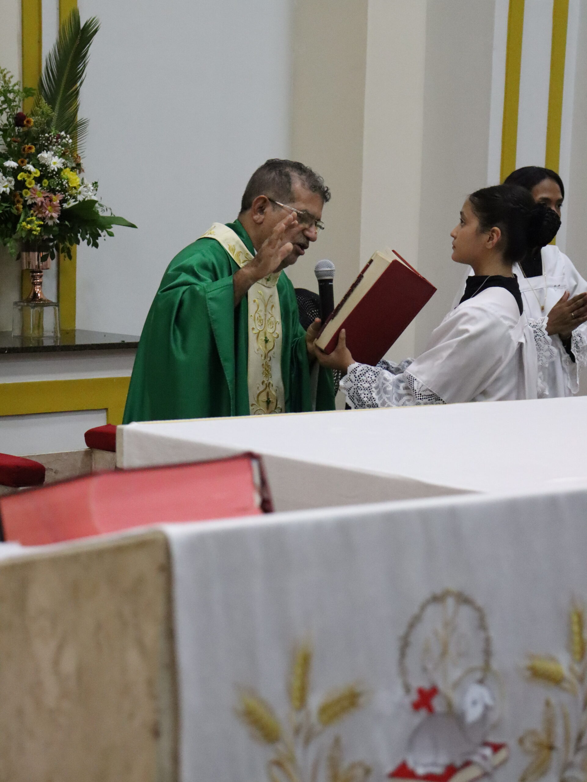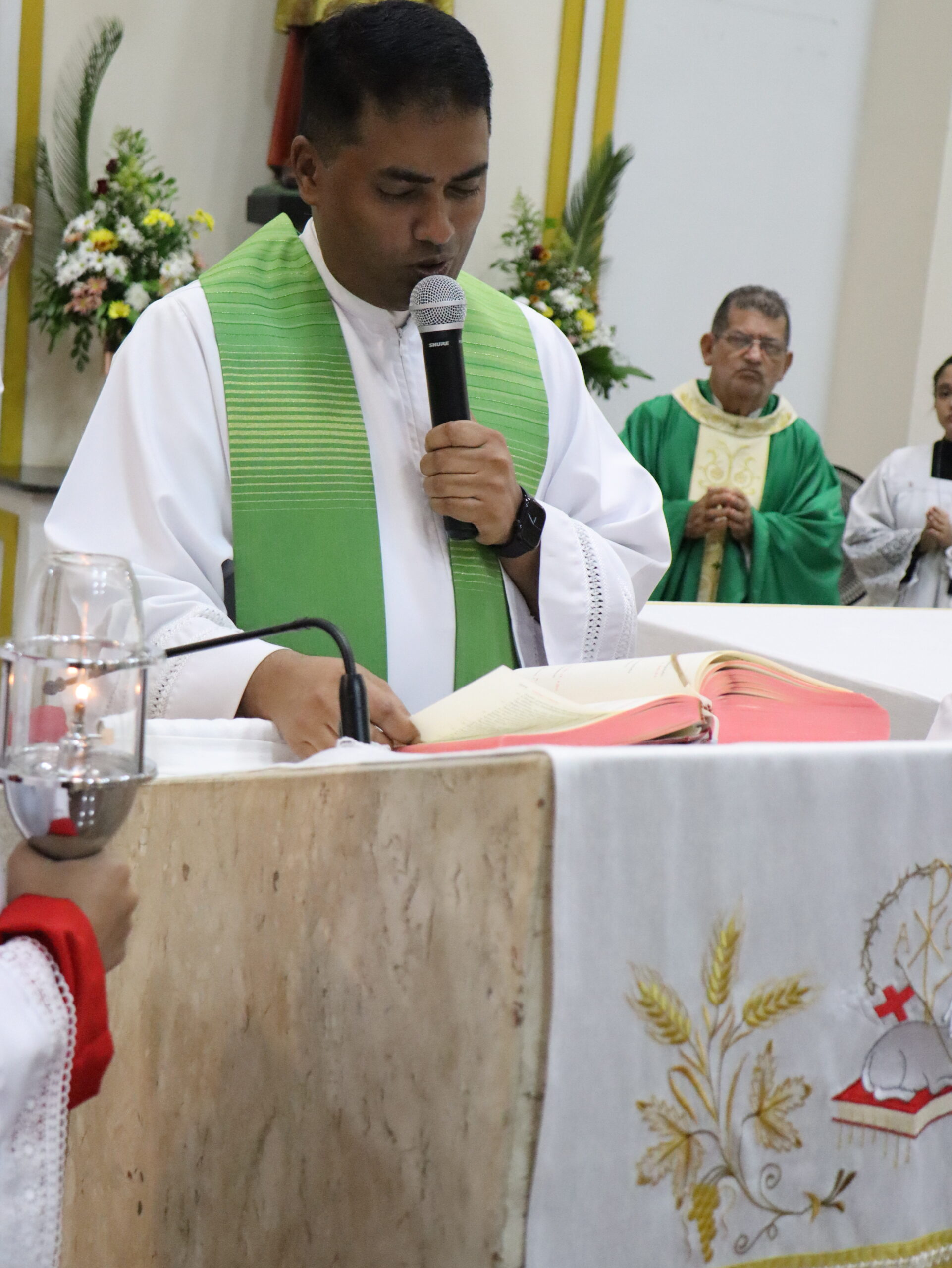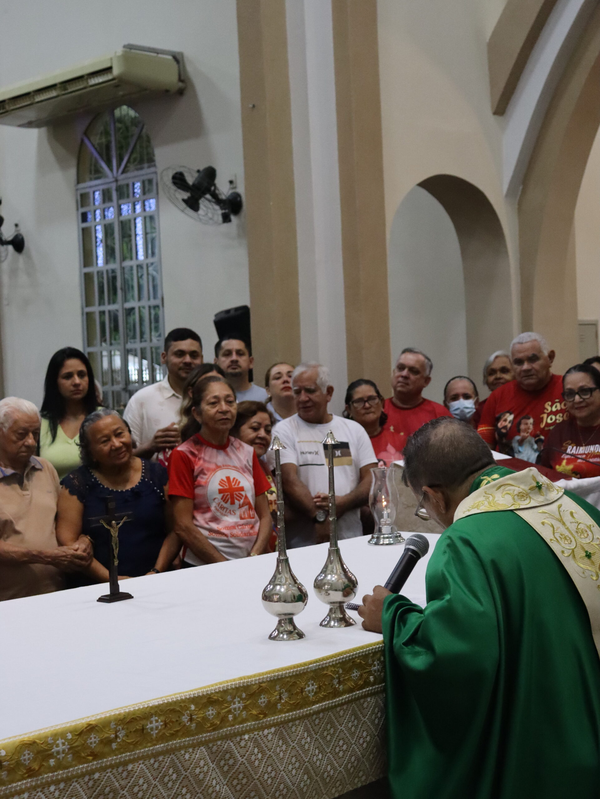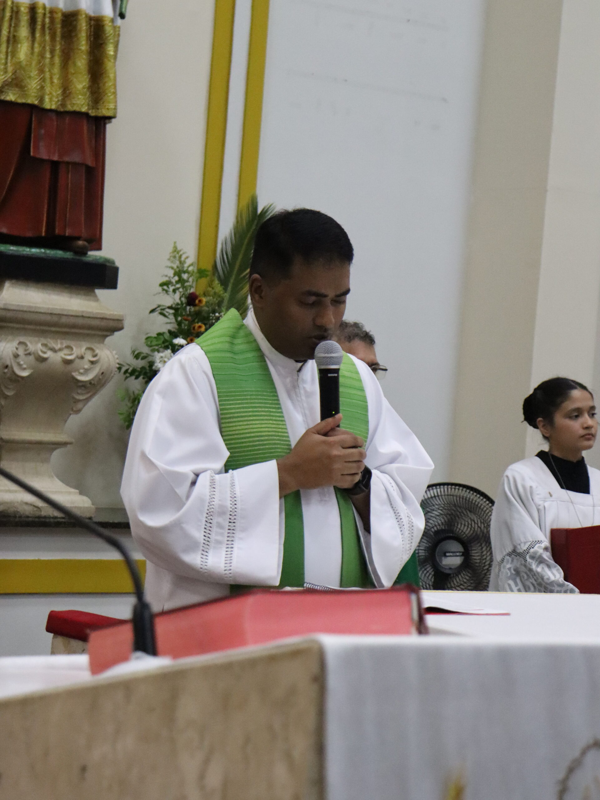 A Santa Missa foi presidida pelo Pe. Danival Lopes, que nos conduziu em uma celebração marcada pela fé e pela presença do Espírito Santo. Nesta noite especial, os casais receberam a bênção matrimonial, renovando diante de Deus o compromisso do amor, do cuidado e da fidelidade.
