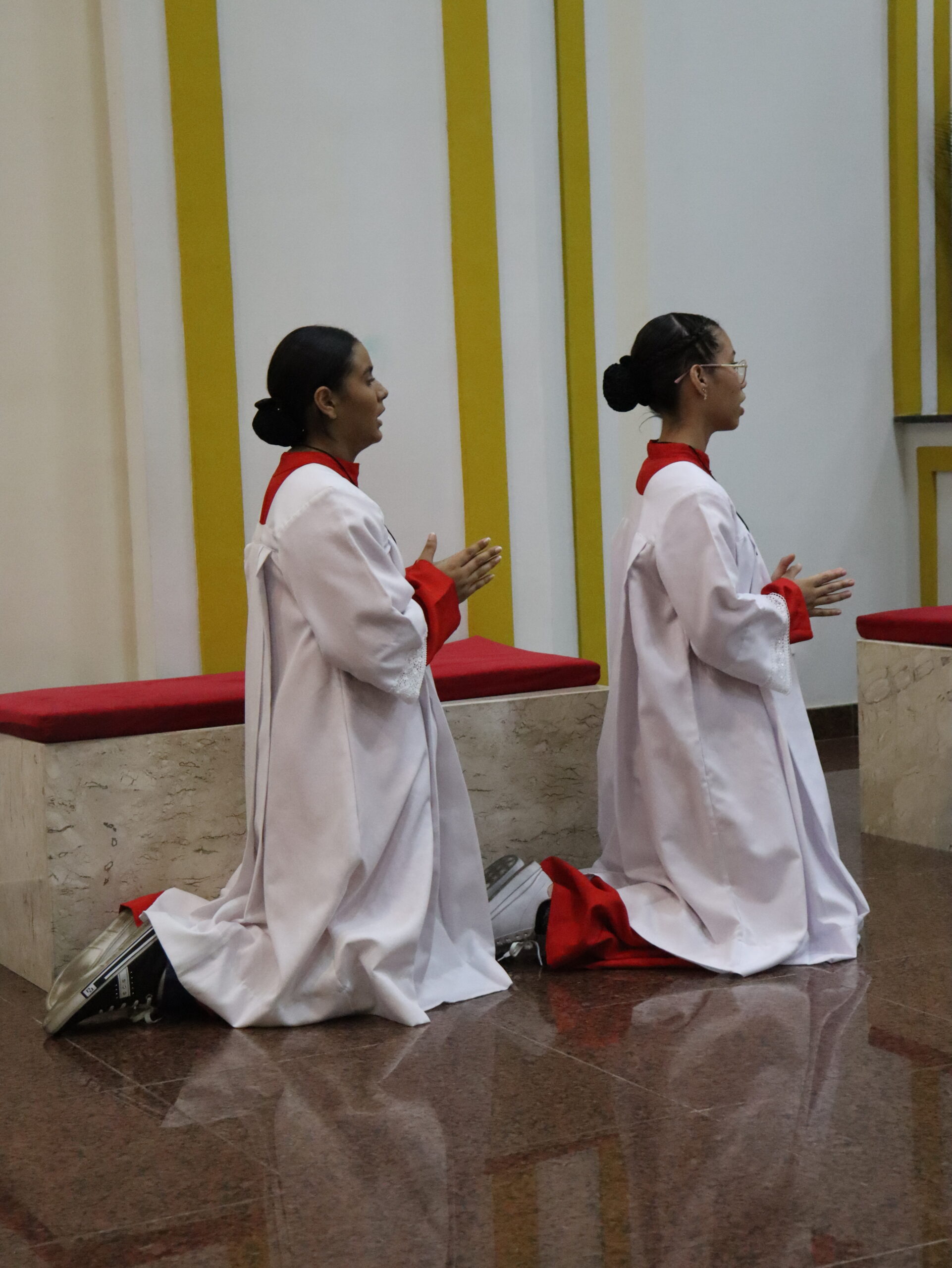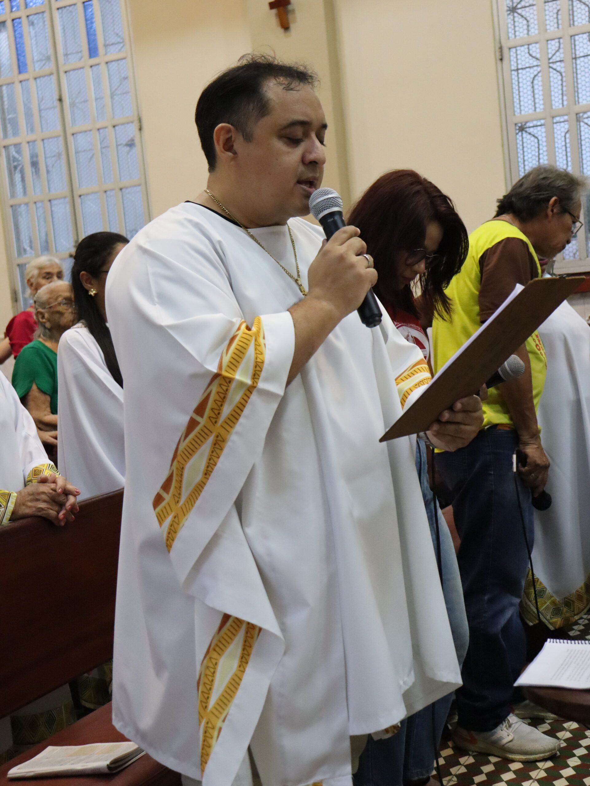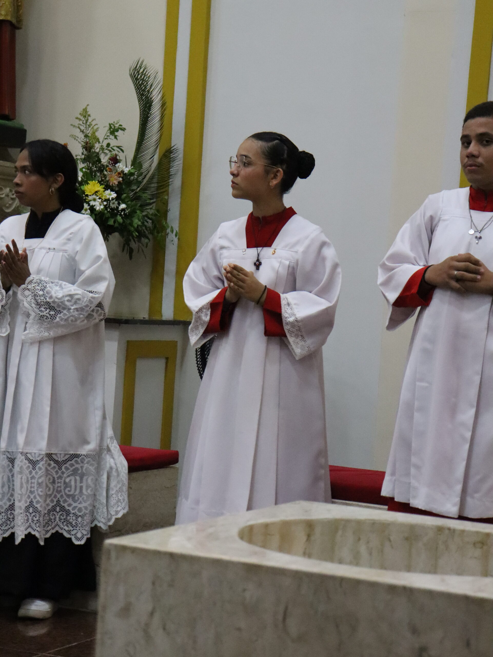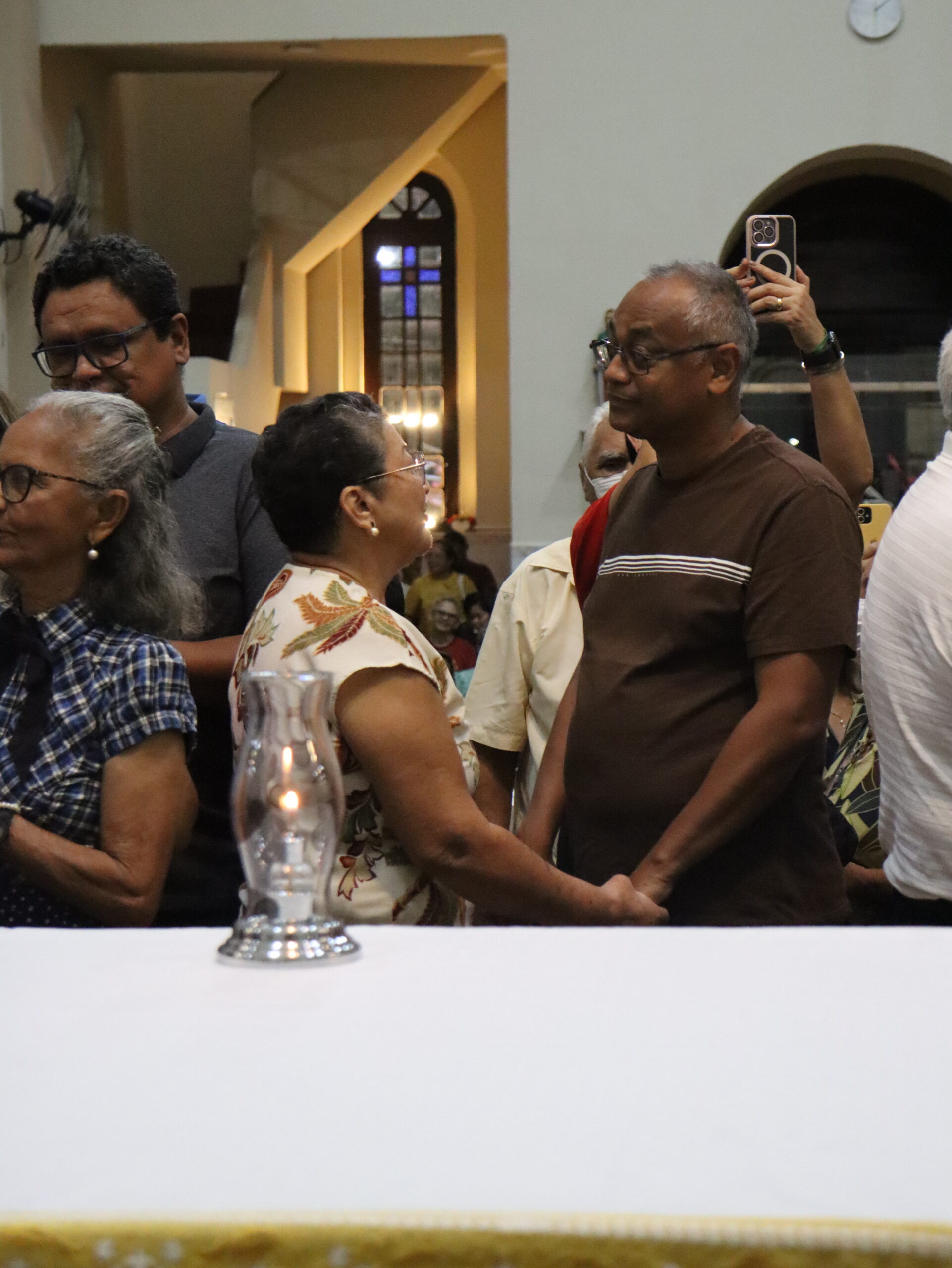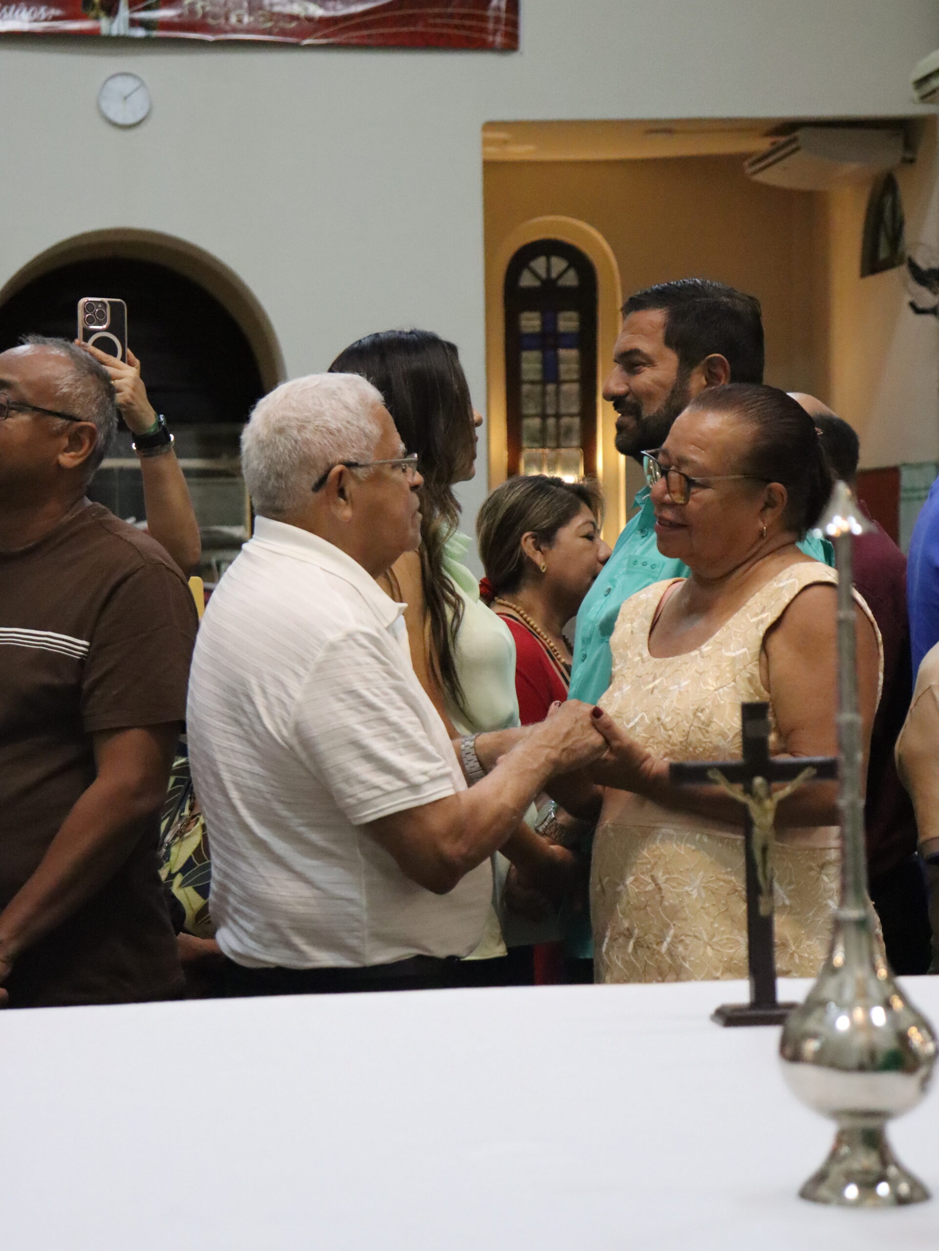 A Santa Missa foi presidida pelo Pe. Danival Lopes, que nos conduziu em uma celebração marcada pela fé e pela presença do Espírito Santo. Nesta noite especial, os casais receberam a bênção matrimonial, renovando diante de Deus o compromisso do amor, do cuidado e da fidelidade.