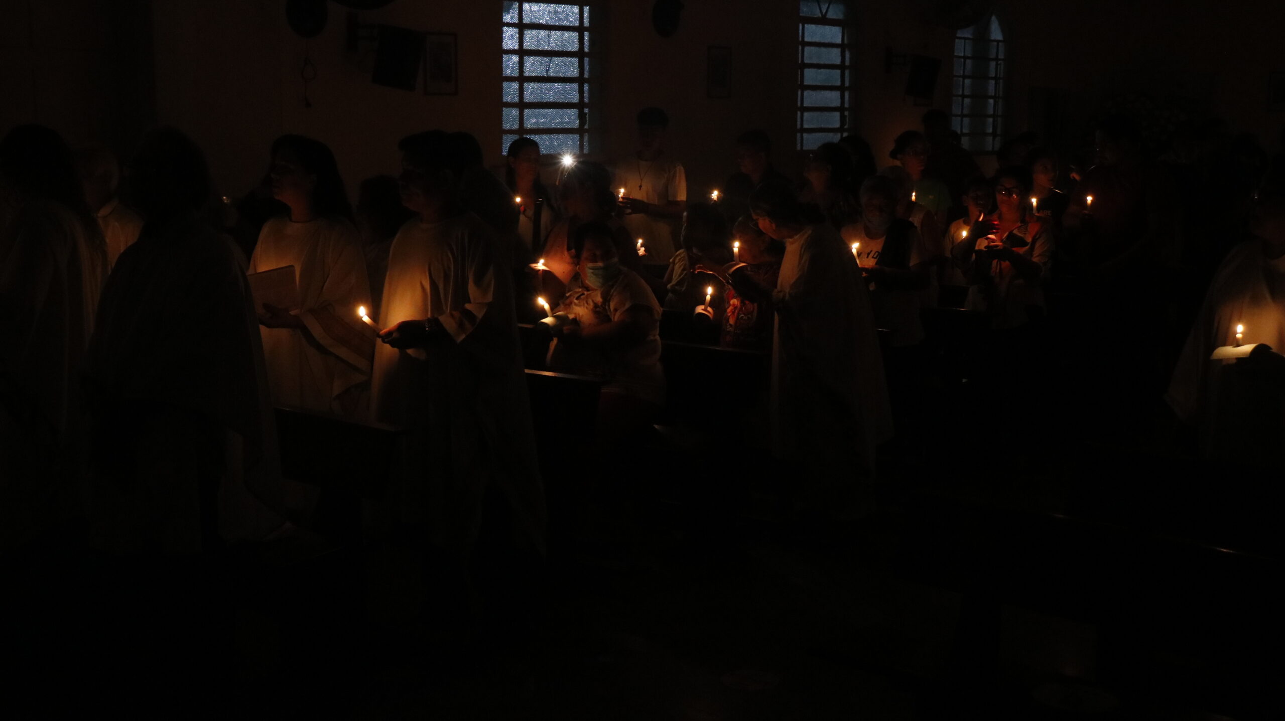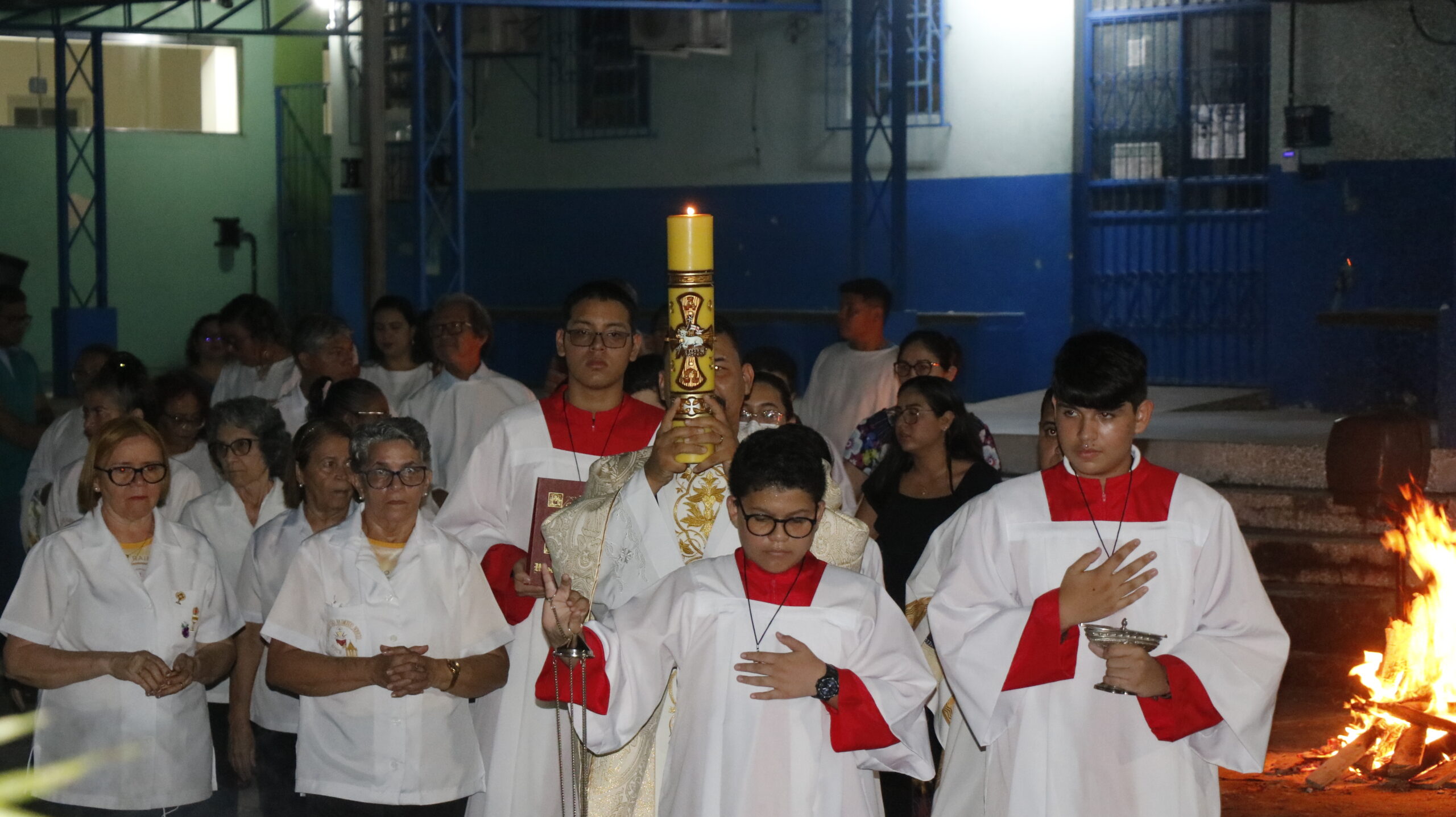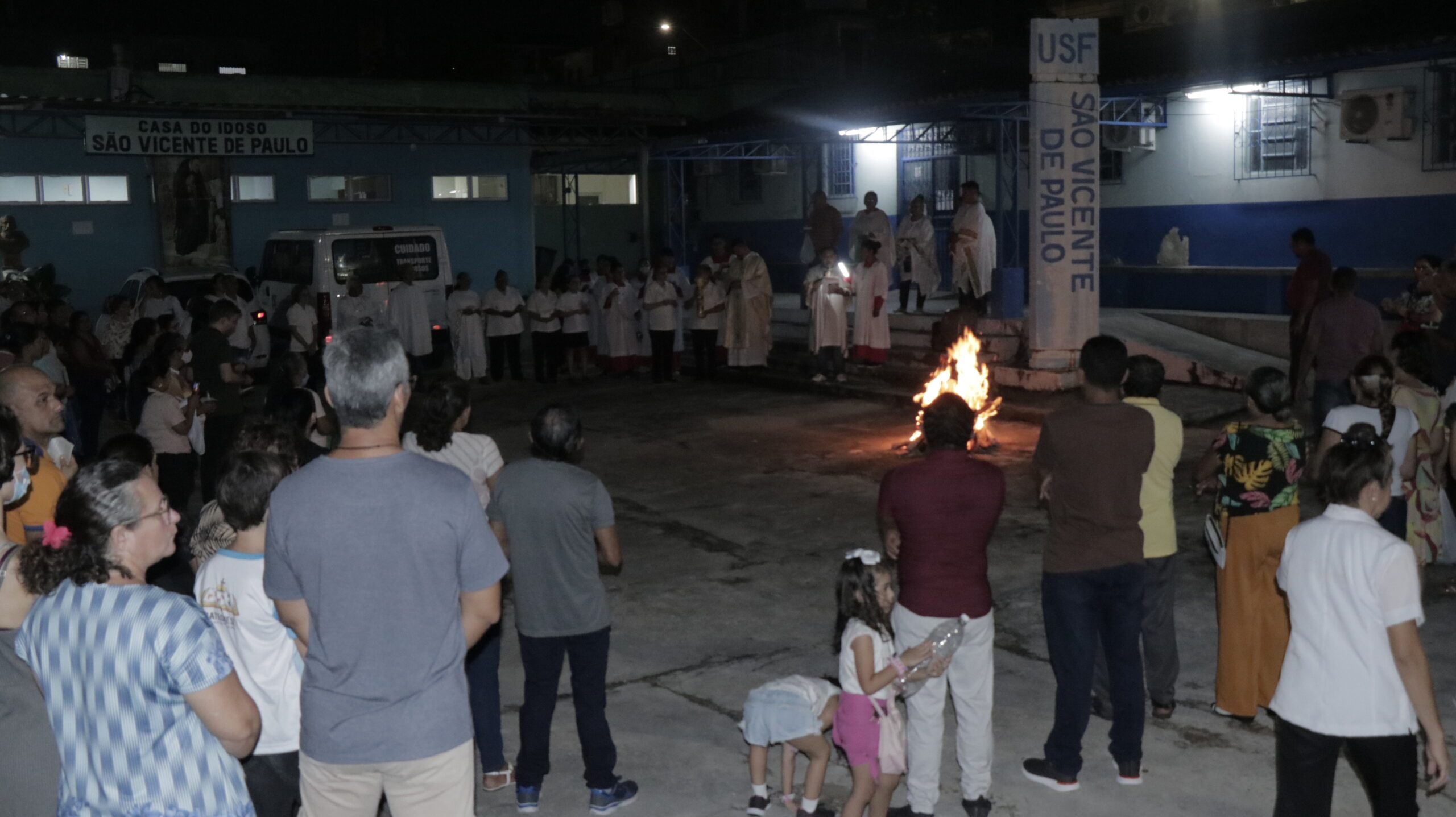 No Sábado Santo à noite, na comunidade São Vicente de Paulo celebraram a solene Vigília Pascal, quando se proclama a Ressurreição do Senhor. Com essa celebração chegamos ao ápice do Tríduo Pascal, iniciado na quinta-feira santa. Essa é a vigília das vigílias, dessa vigília provém todas as outras, é a celebração mais importante do ano. As comunidades São Vicente de Paulo e Beata Maria Assunta celebraram juntas, em comunhão com a paróquia e seus comunitários.