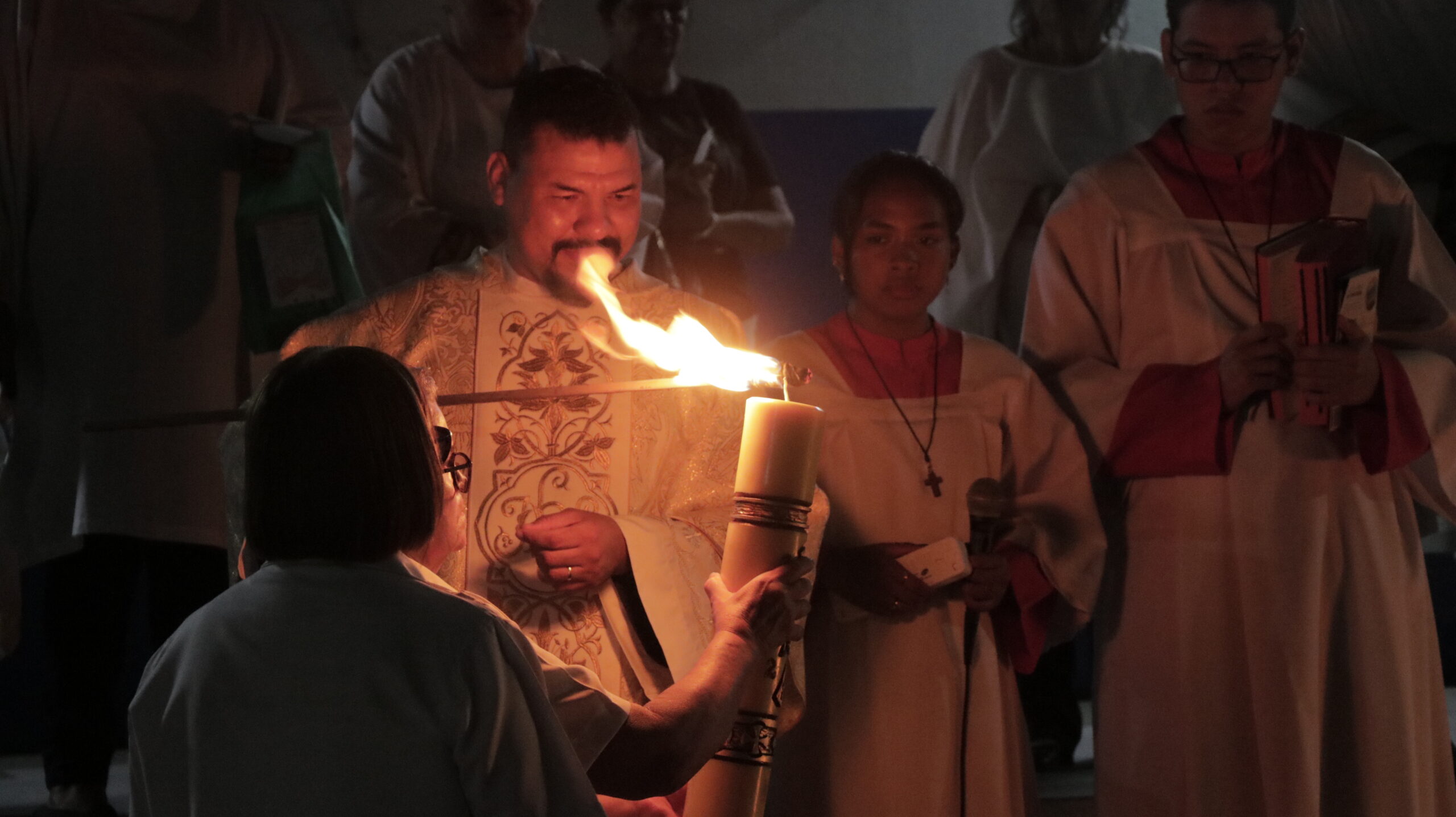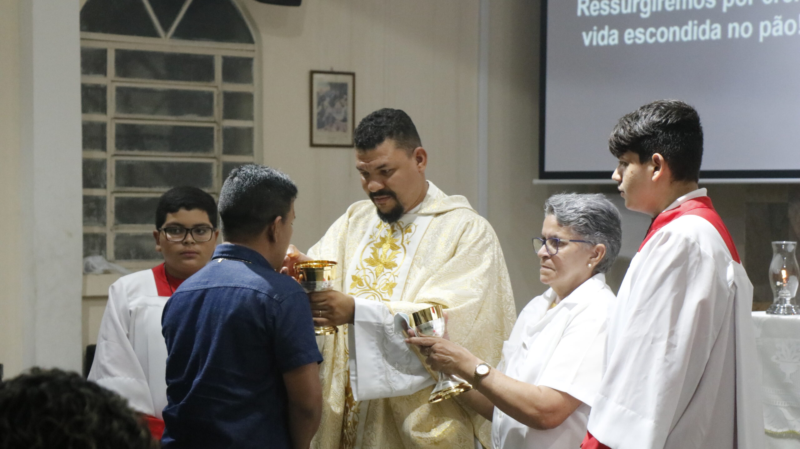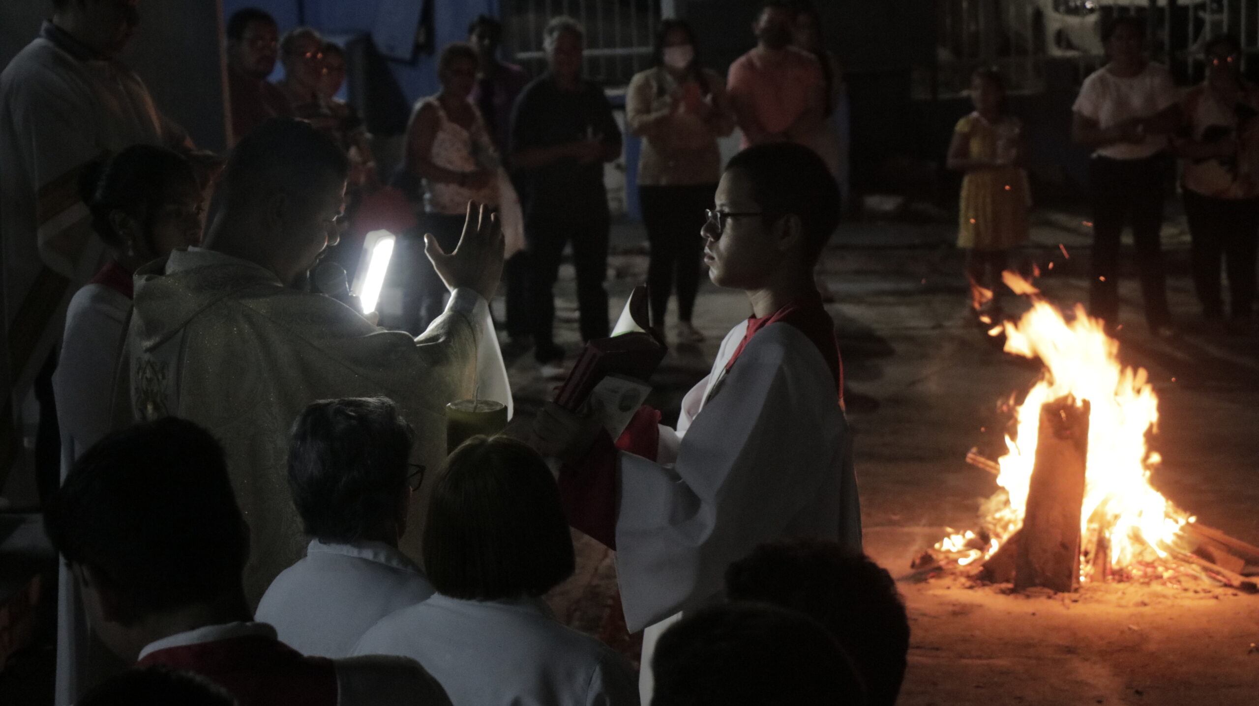 No Sábado Santo à noite, na comunidade São Vicente de Paulo celebraram a solene Vigília Pascal, quando se proclama a Ressurreição do Senhor. Com essa celebração chegamos ao ápice do Tríduo Pascal, iniciado na quinta-feira santa. Essa é a vigília das vigílias, dessa vigília provém todas as outras, é a celebração mais importante do ano. As comunidades São Vicente de Paulo e Beata Maria Assunta celebraram juntas, em comunhão com a paróquia e seus comunitários.
