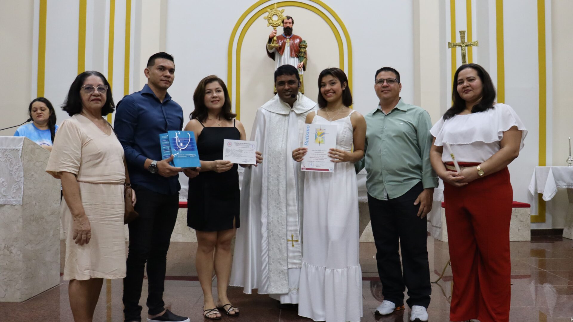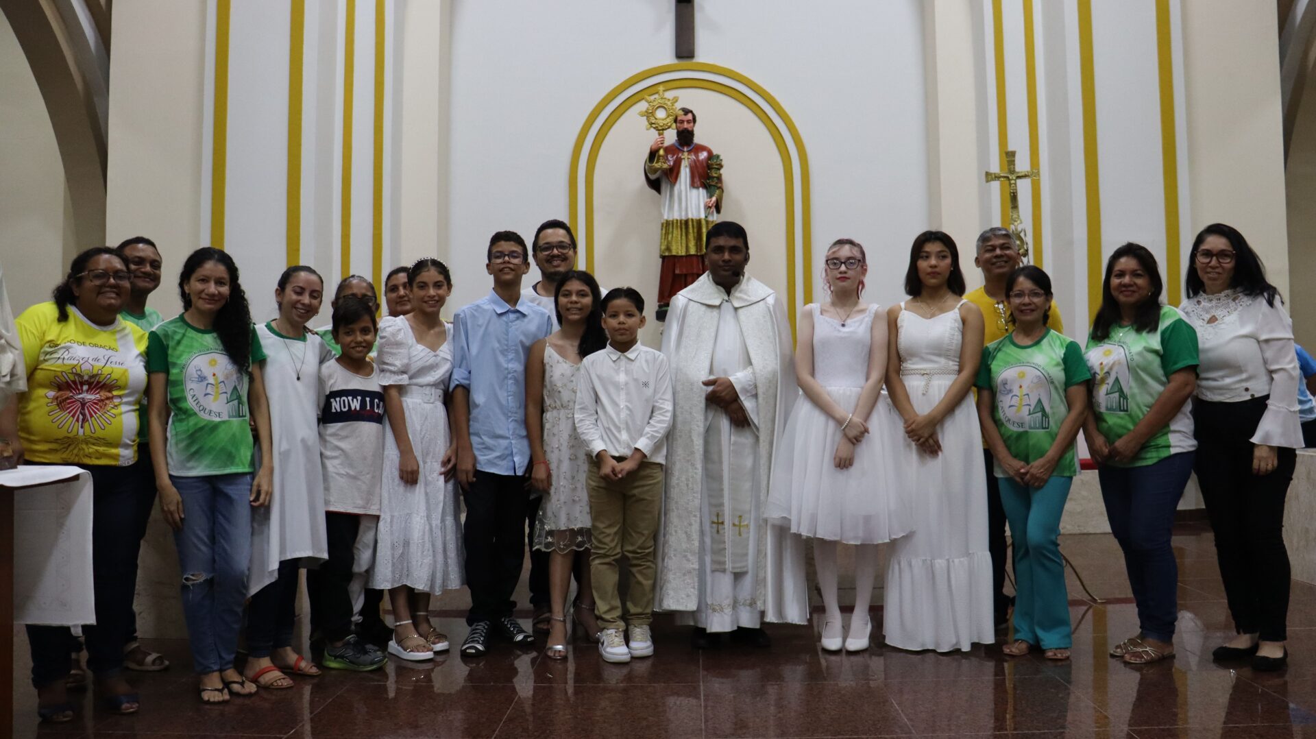 No dia 19/08, às 18:30 hs, na Comunidade São Raimundo Nonato, realizou-se o Sacramento do Batismo de 7 catequizandos adolescentes, das turmas do Crisma I existentes nas três Comunidades. A Celebração foi presidida pelo nosso pároco, Pe. Jonh Paul. Foi noite de festa no céu e em nossa Paróquia, por esses 7 adolescentes que se tornaram Filhos de Deus, pertencentes ao seu Reino.
