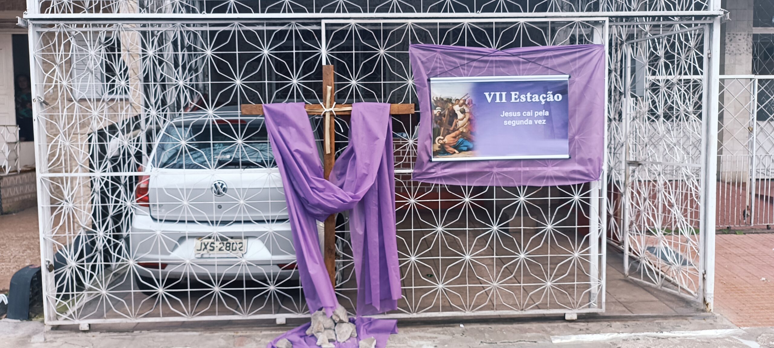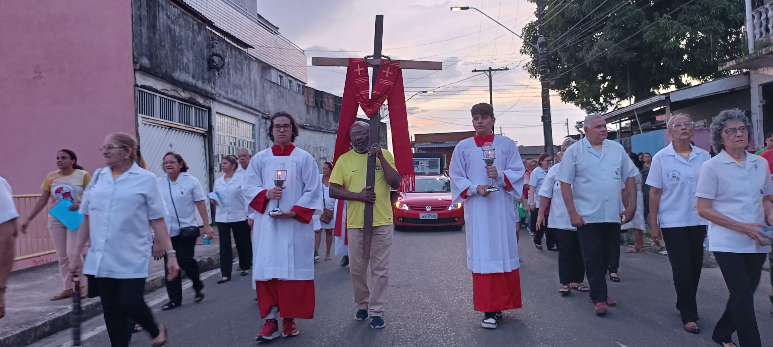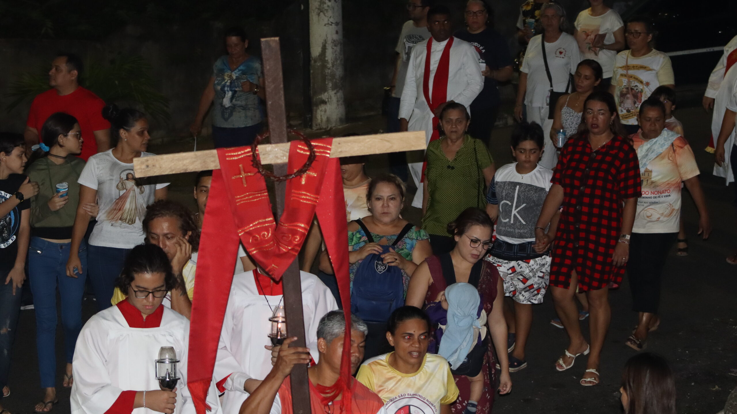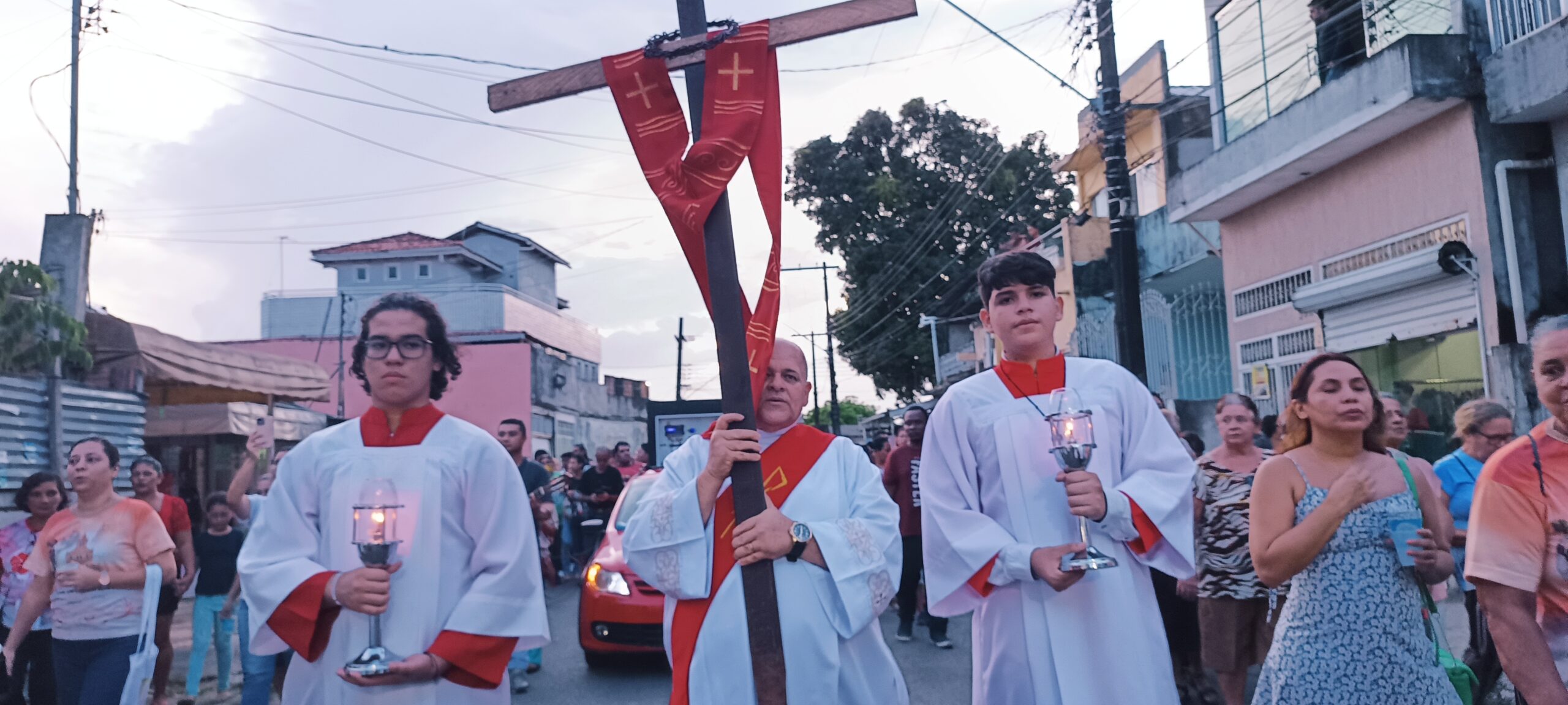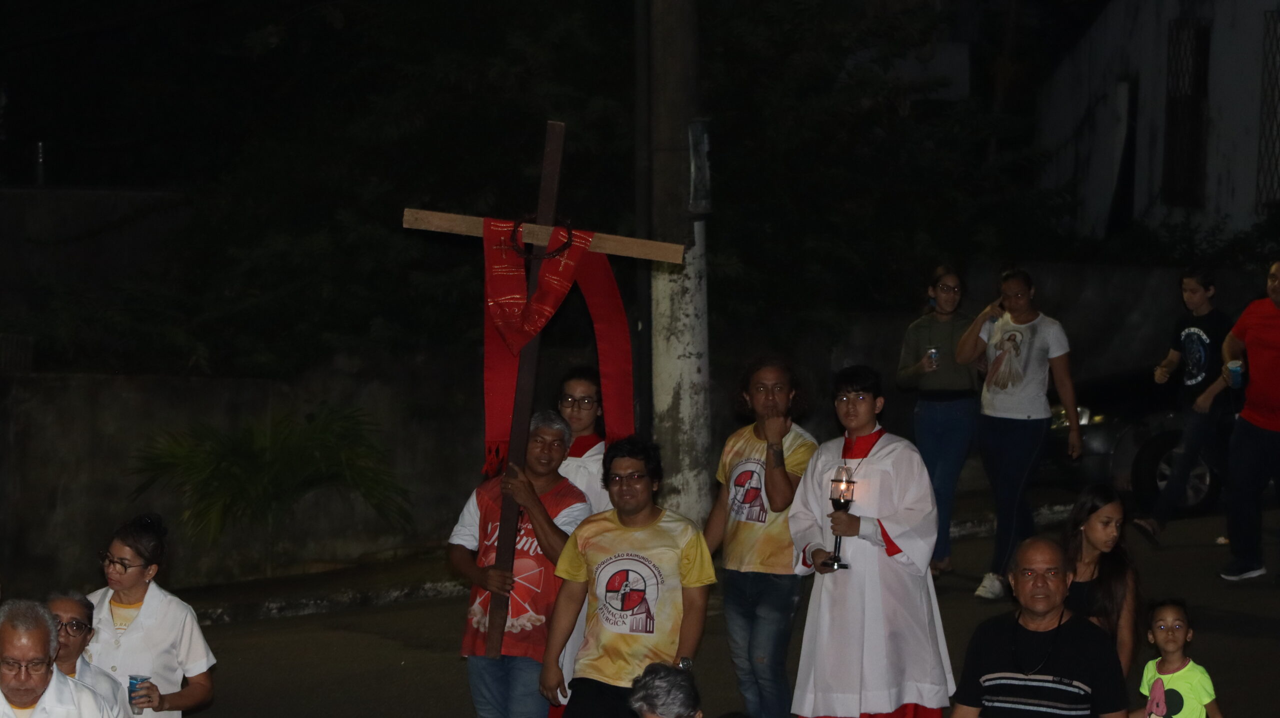 A paróquia, nesta sexta-feira santa, fez a via-sacra nas principais ruas do nosso bairro, contemplando e rezando a Paixão de Nosso Senhor Jesus Cristo.