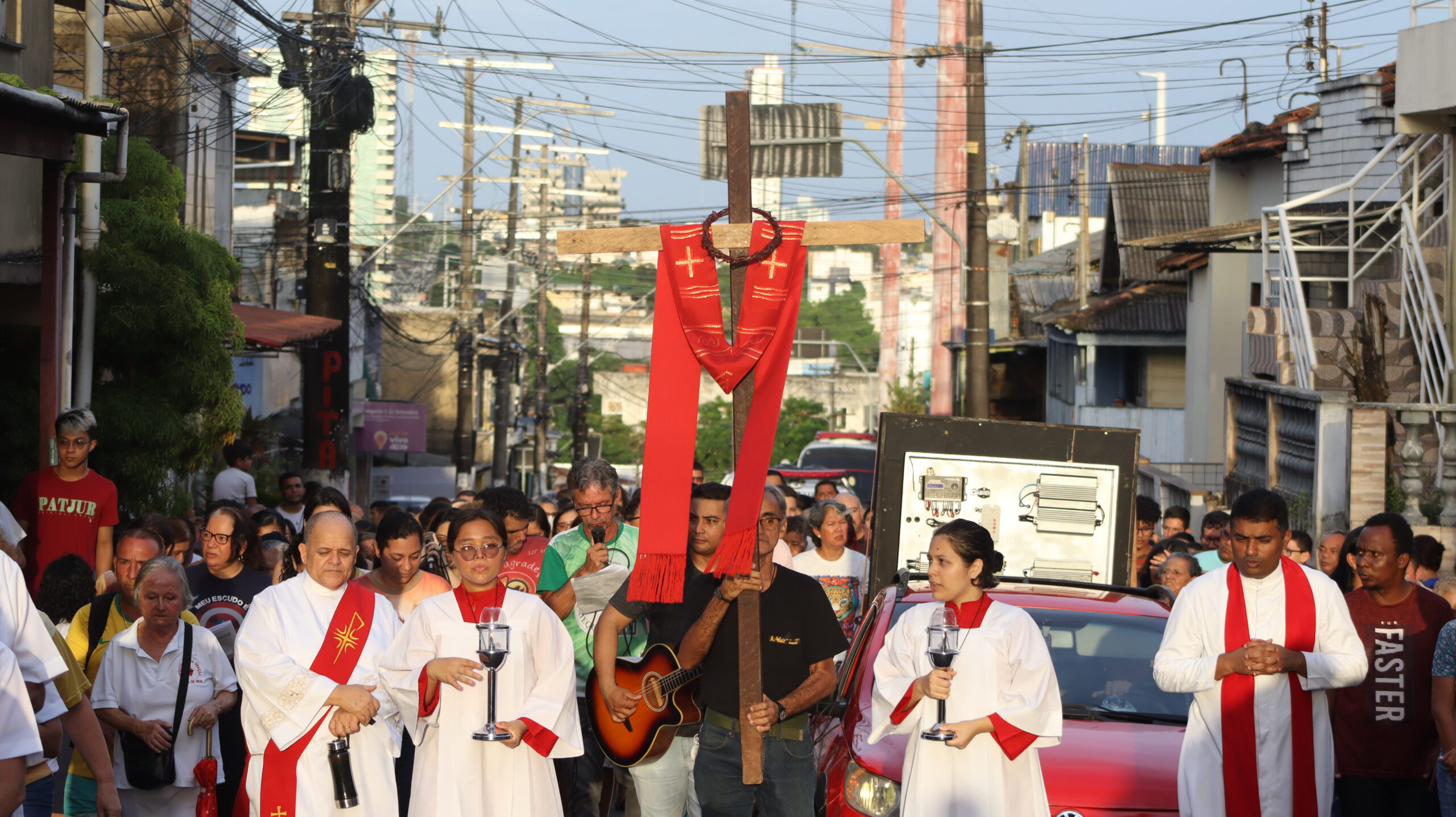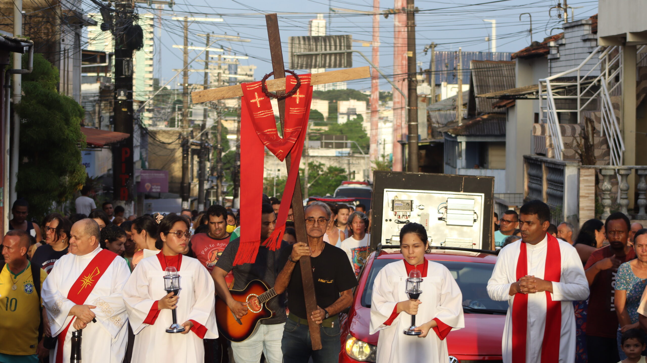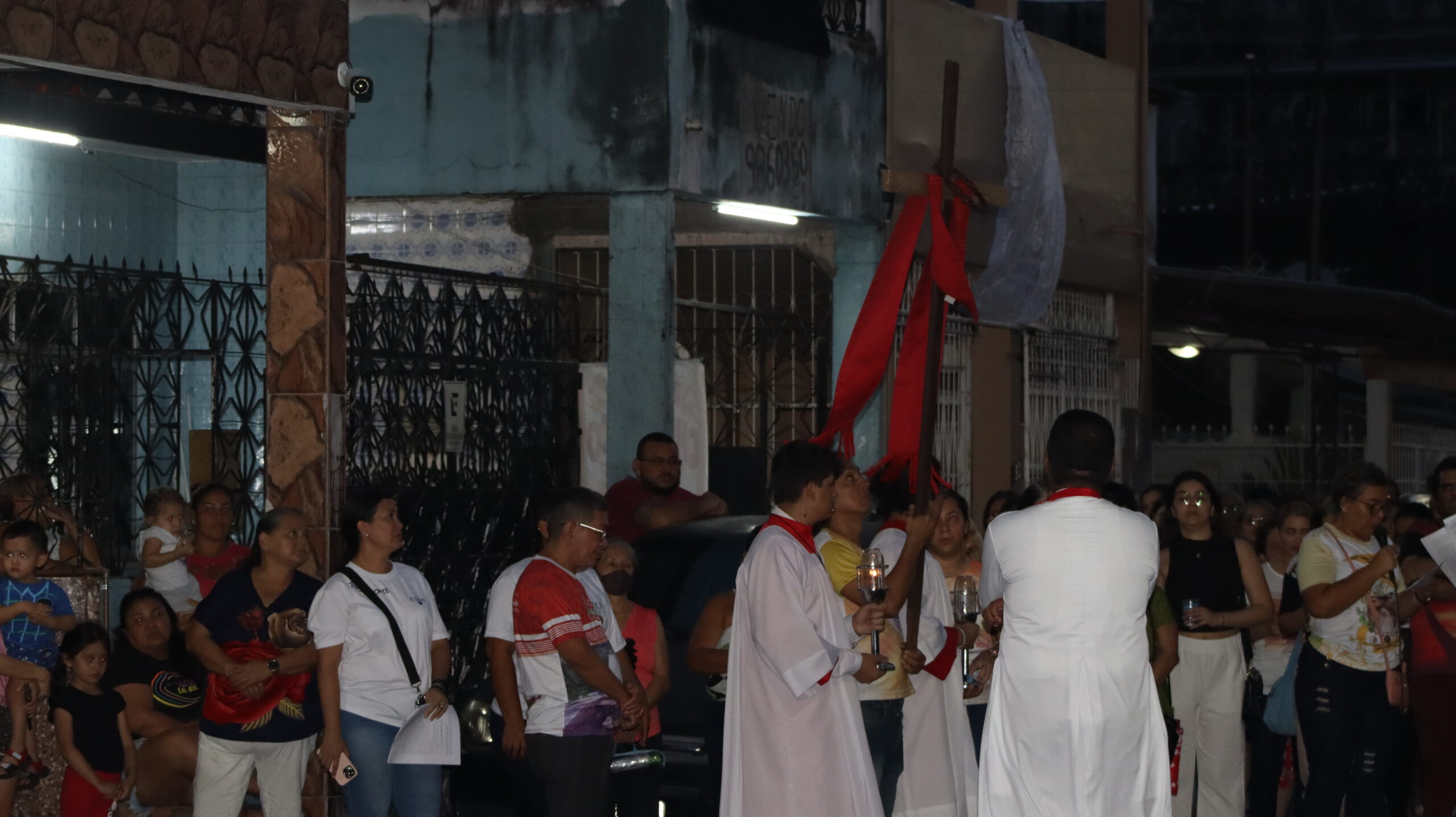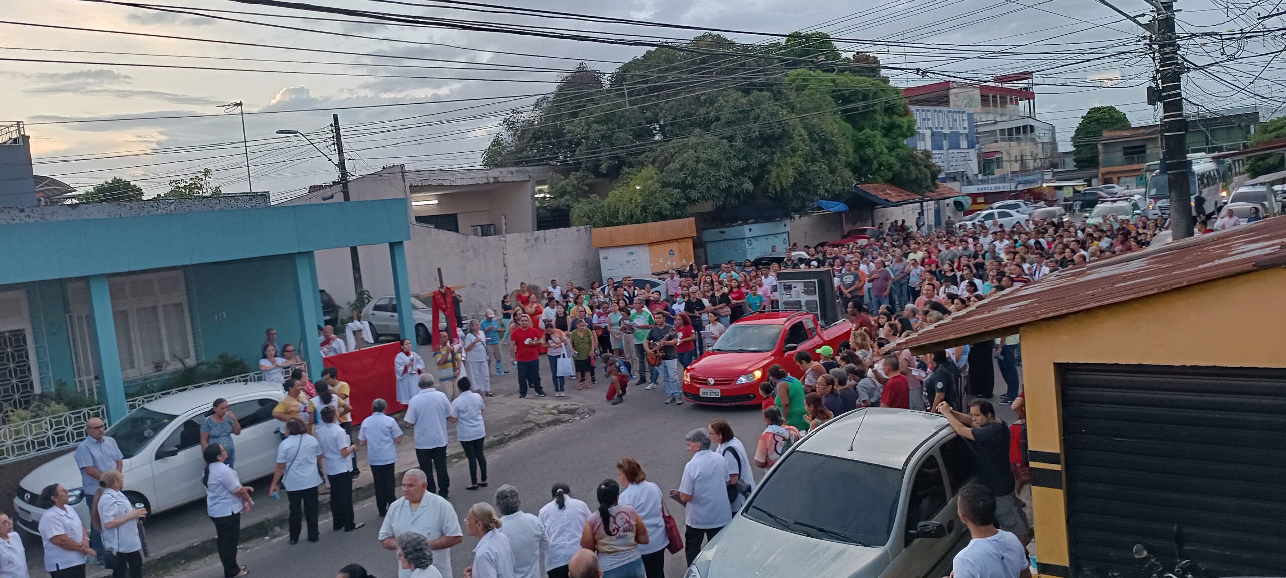 A paróquia, nesta sexta-feira santa, fez a via-sacra nas principais ruas do nosso bairro, contemplando e rezando a Paixão de Nosso Senhor Jesus Cristo.