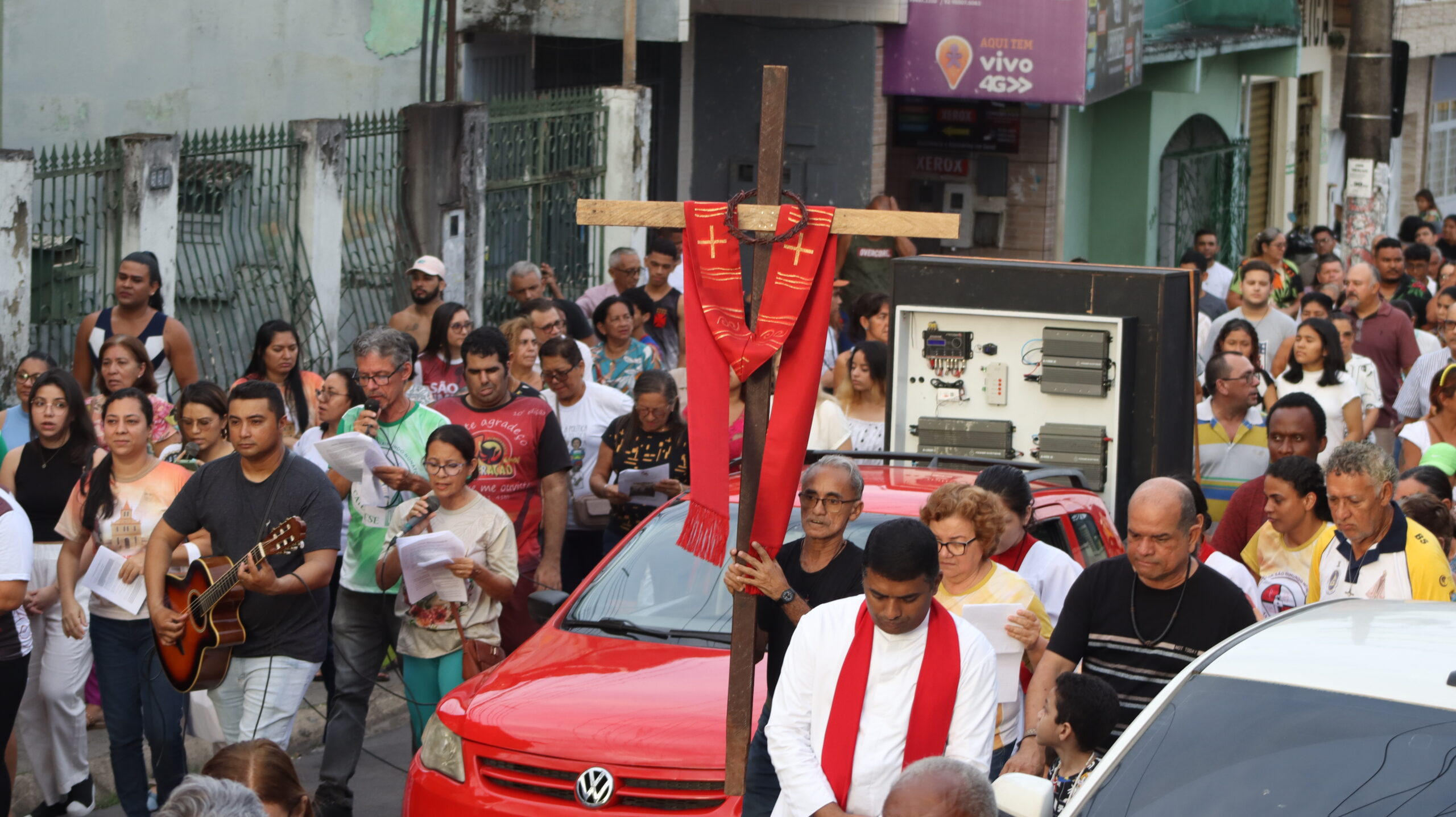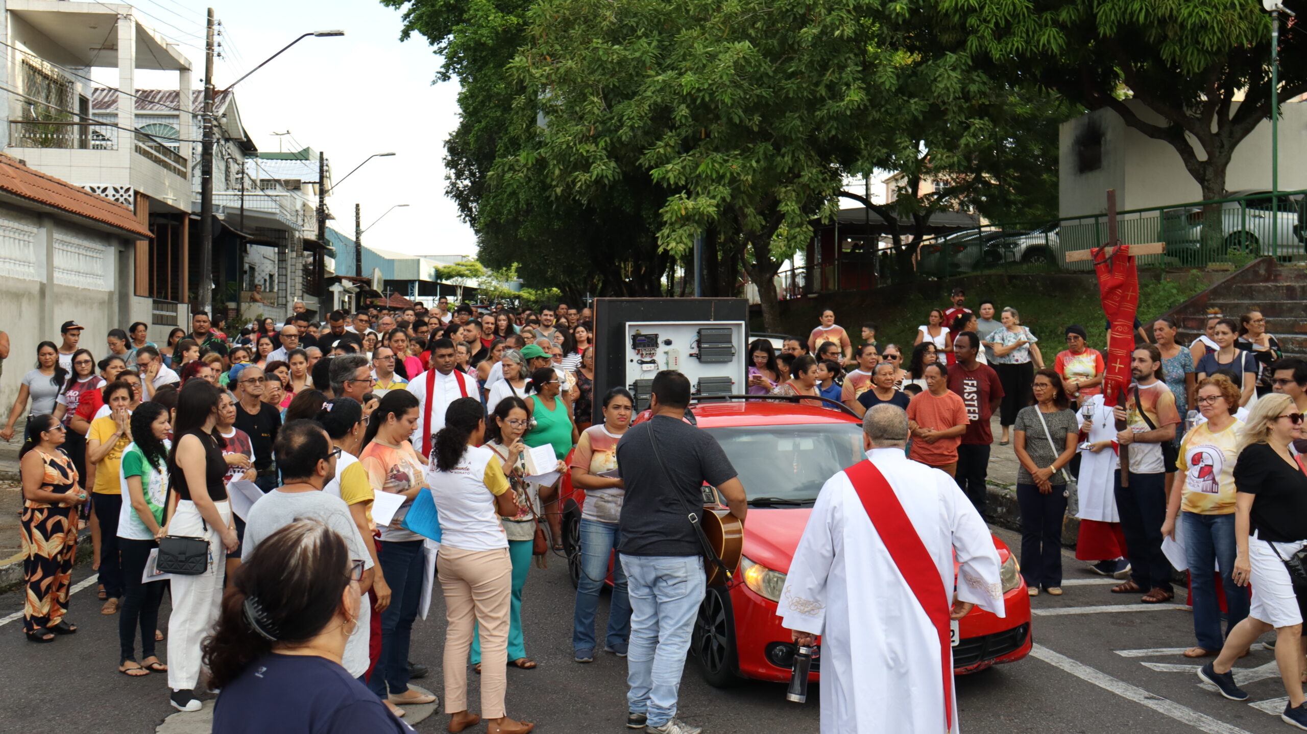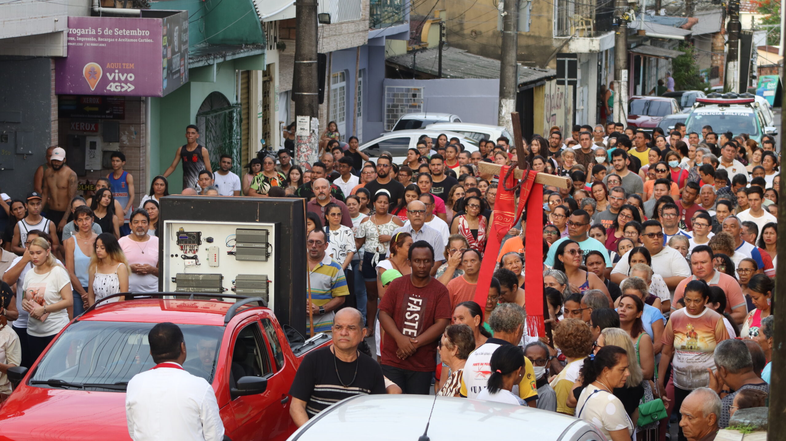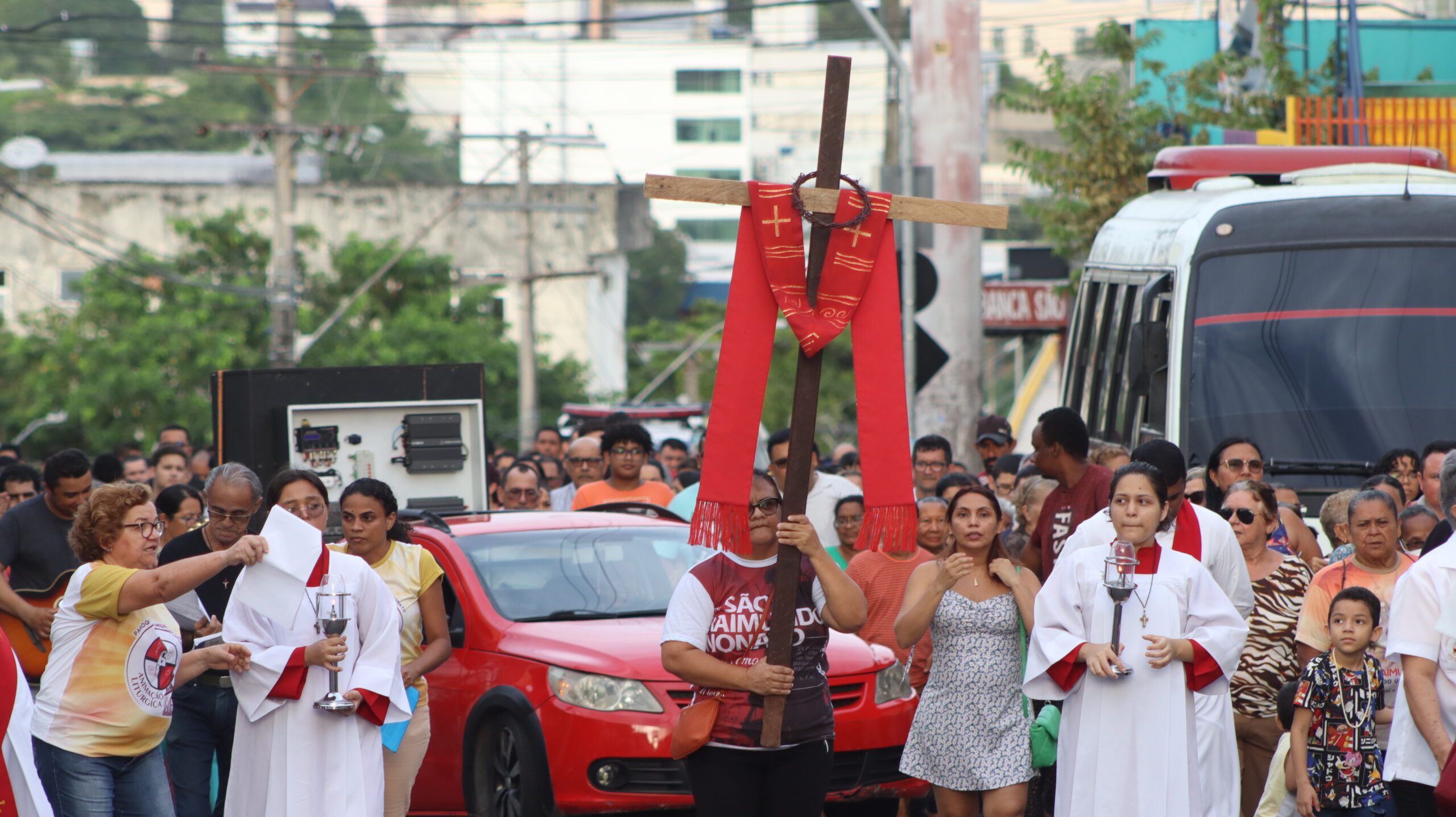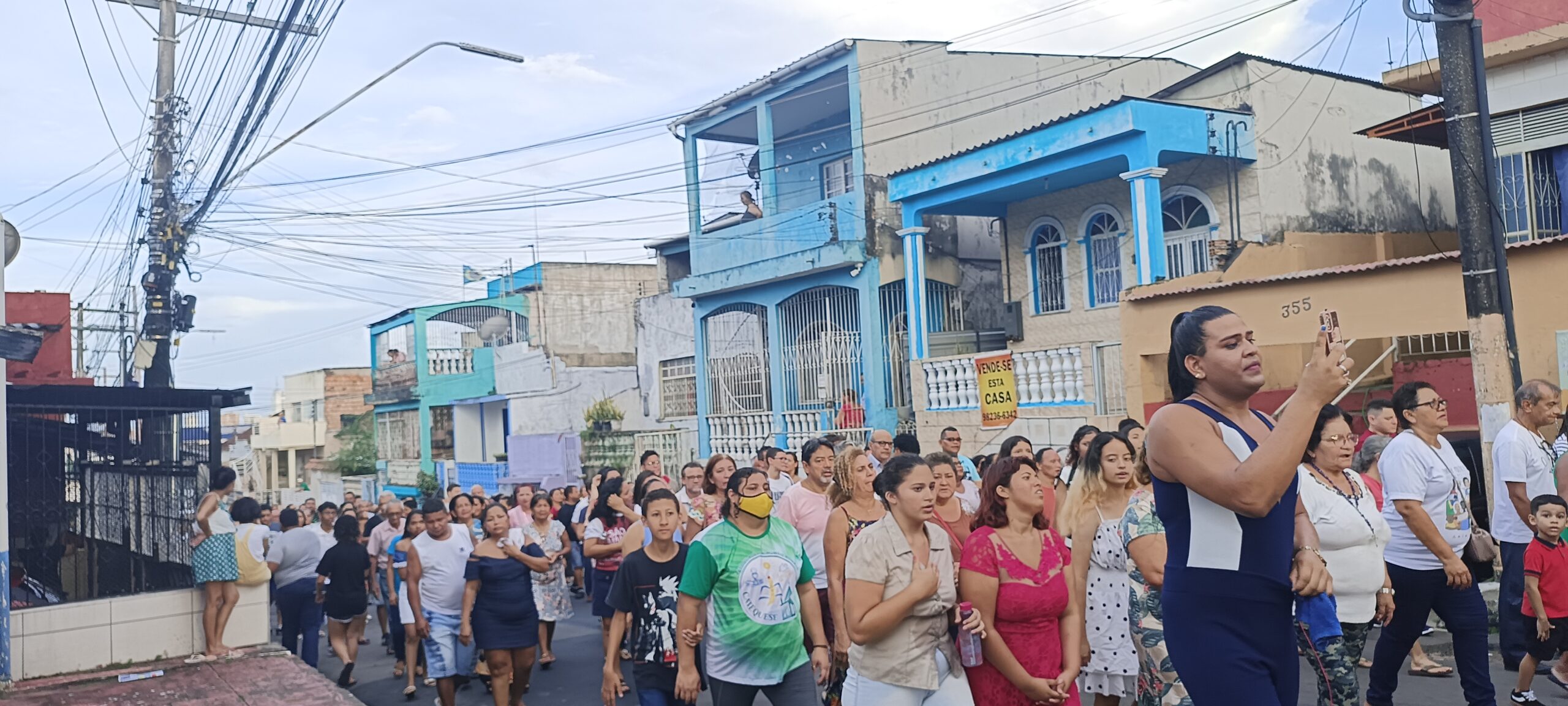 A paróquia, nesta sexta-feira santa, fez a via-sacra nas principais ruas do nosso bairro, contemplando e rezando a Paixão de Nosso Senhor Jesus Cristo.