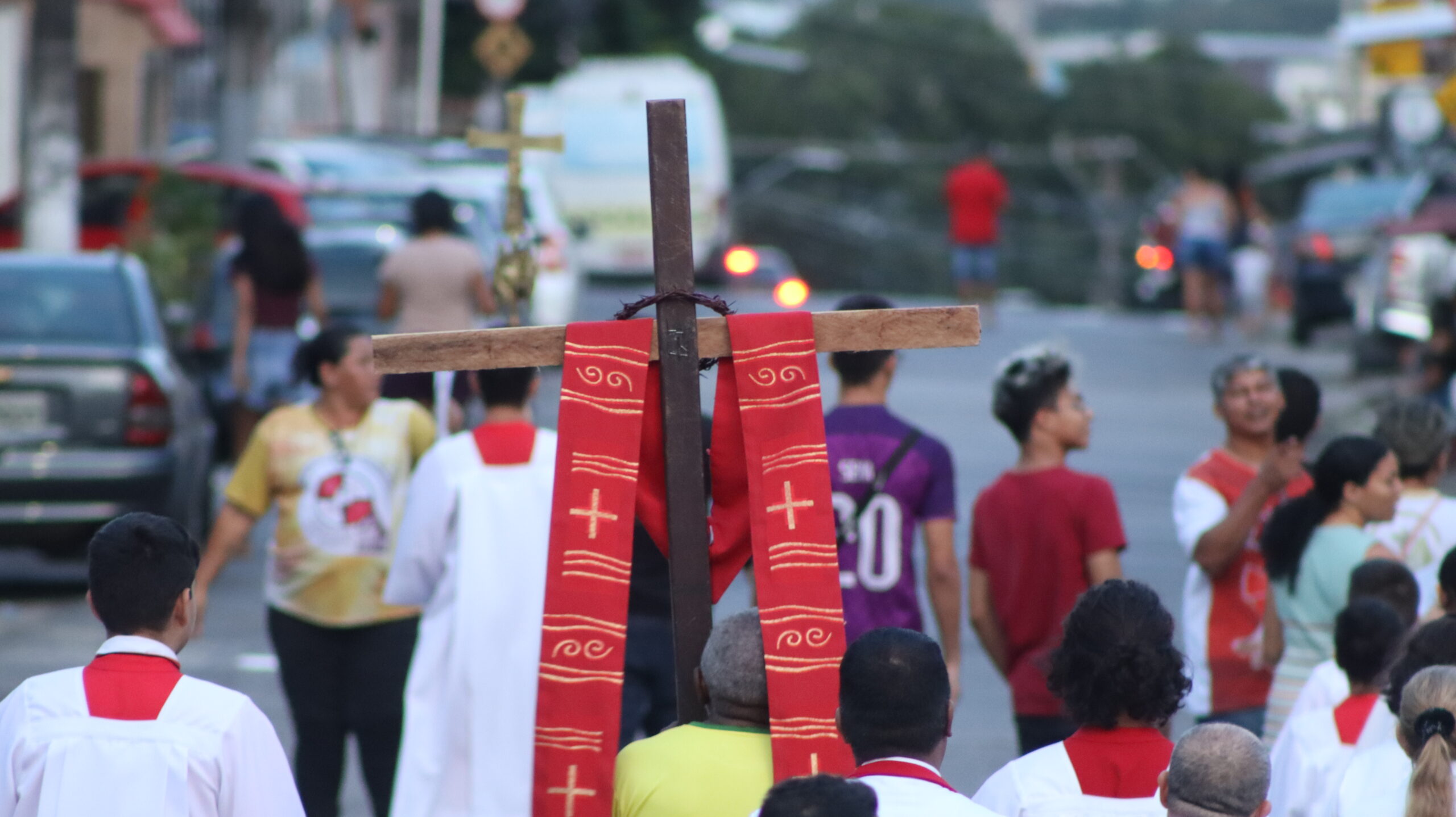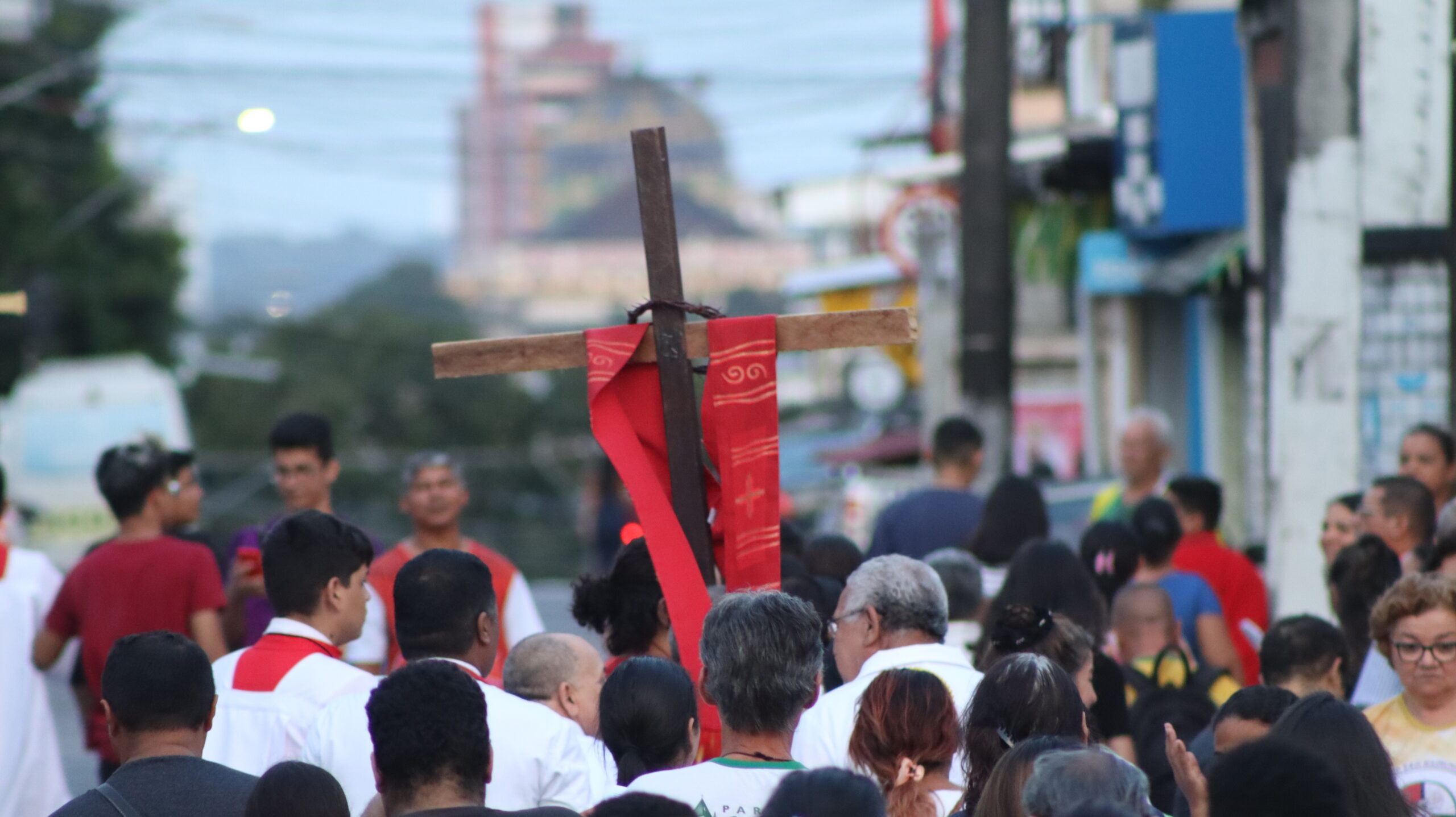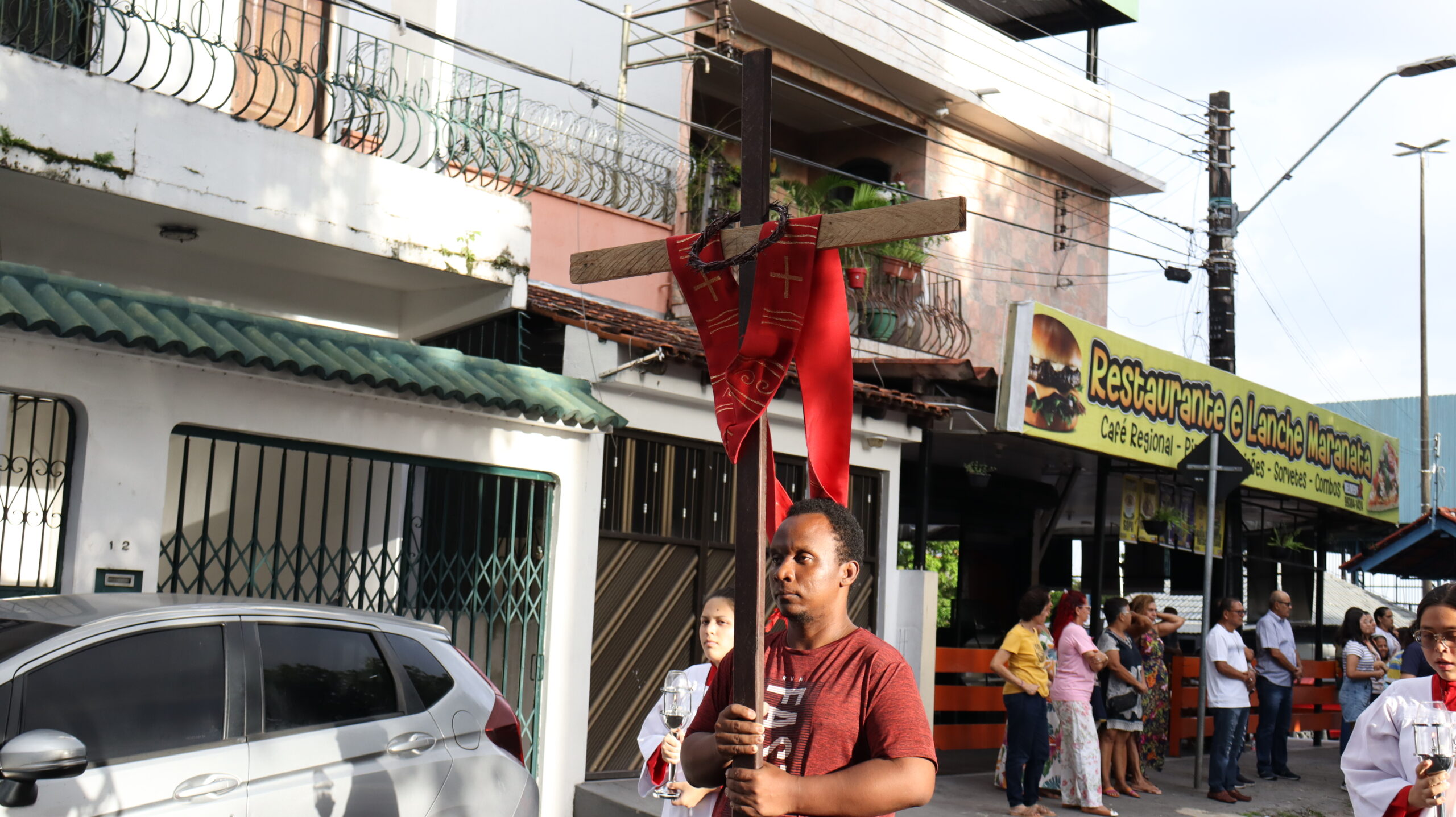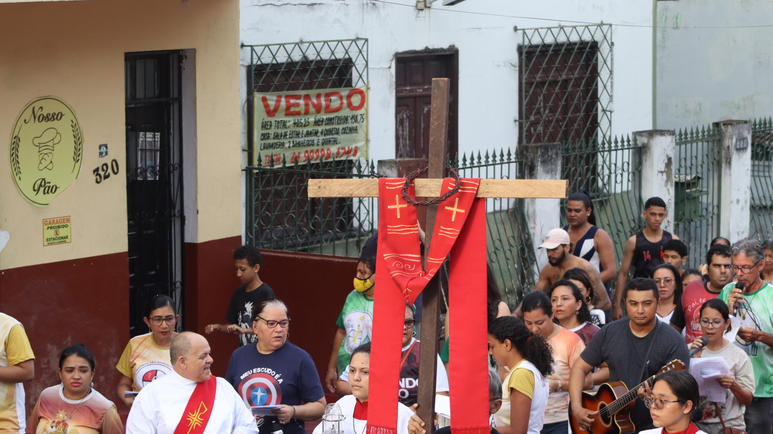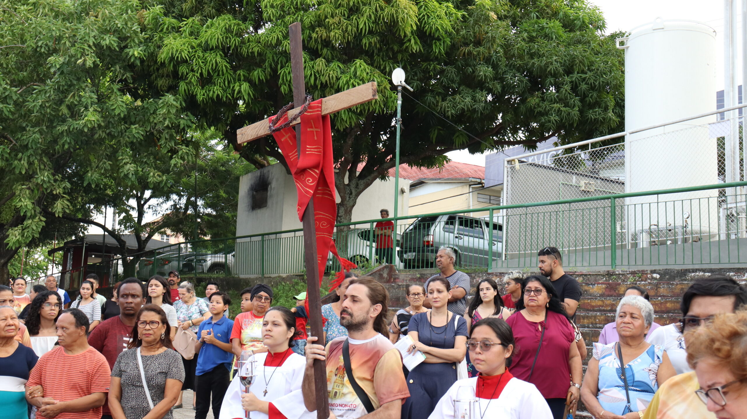 A paróquia, nesta sexta-feira santa, fez a via-sacra nas principais ruas do nosso bairro, contemplando e rezando a Paixão de Nosso Senhor Jesus Cristo.