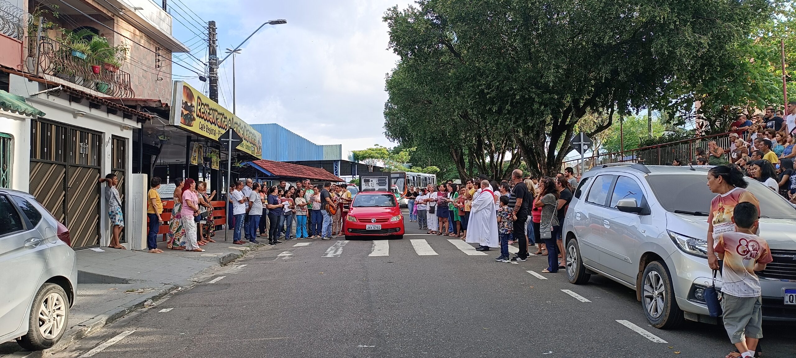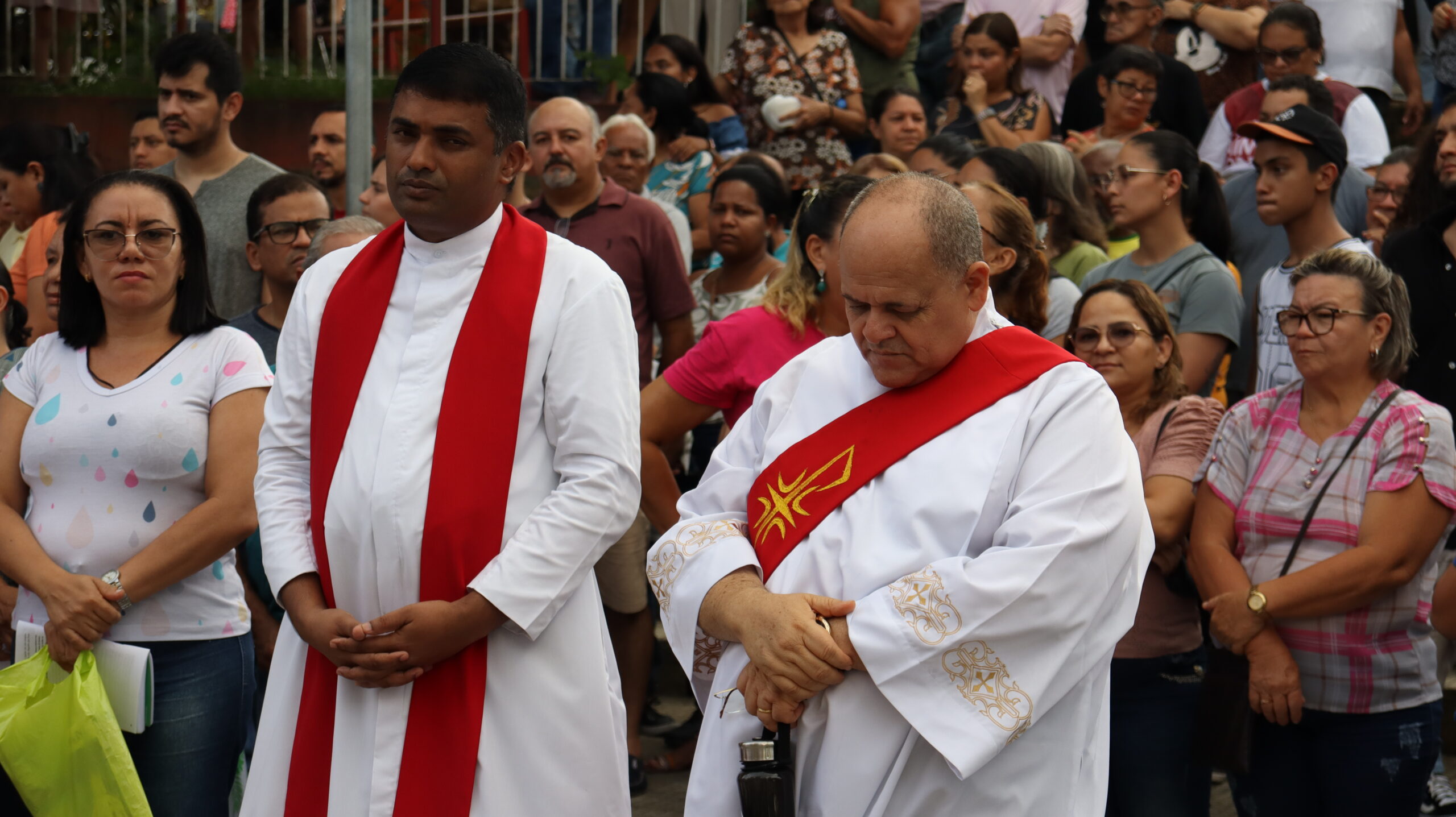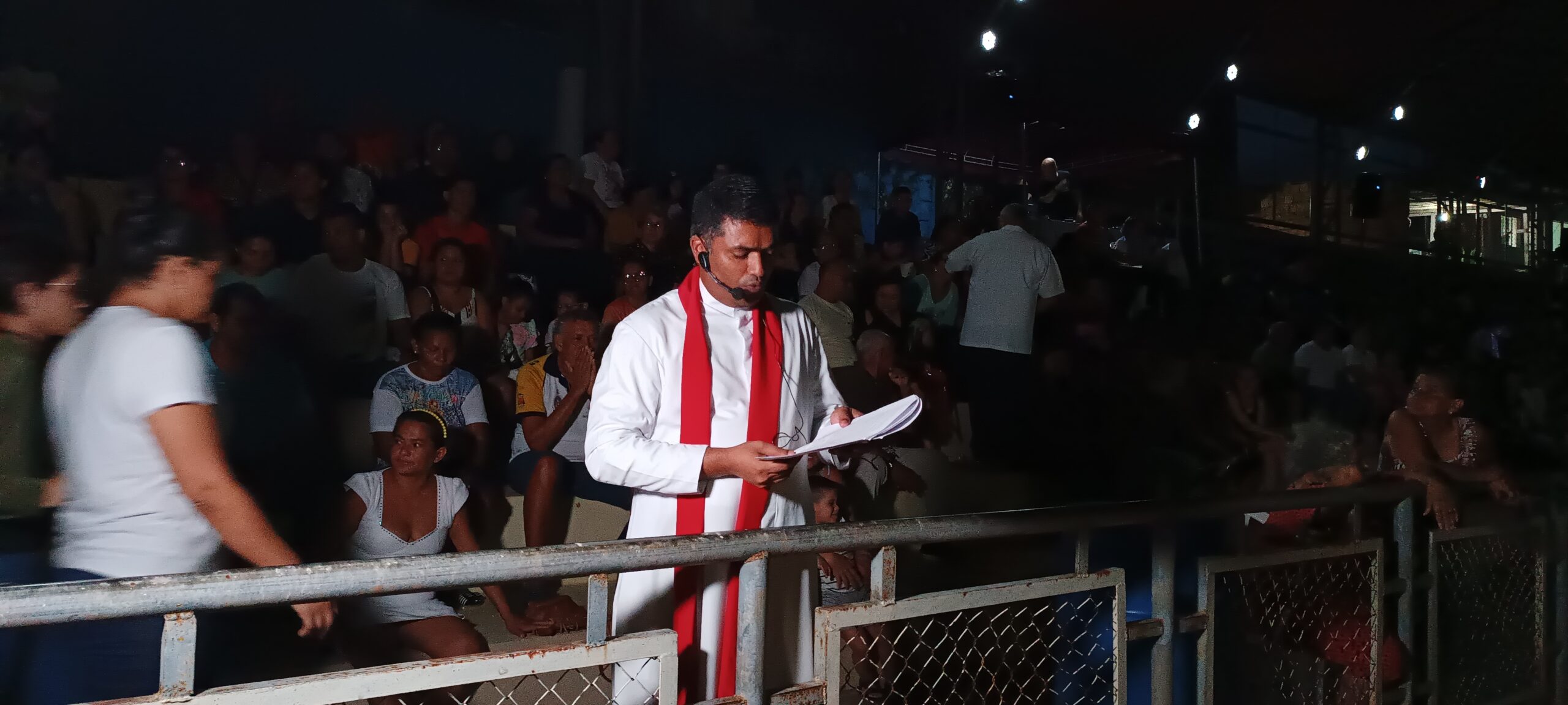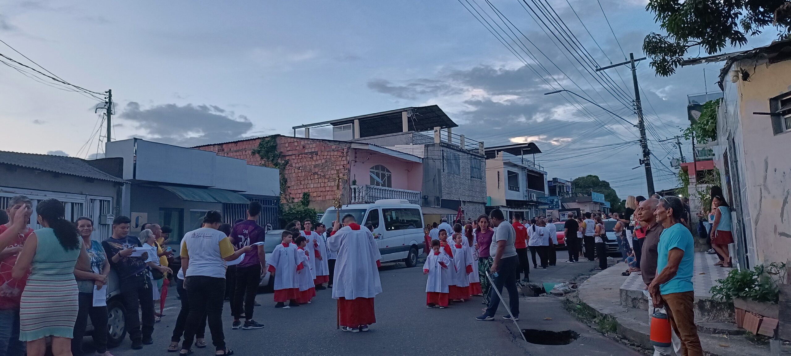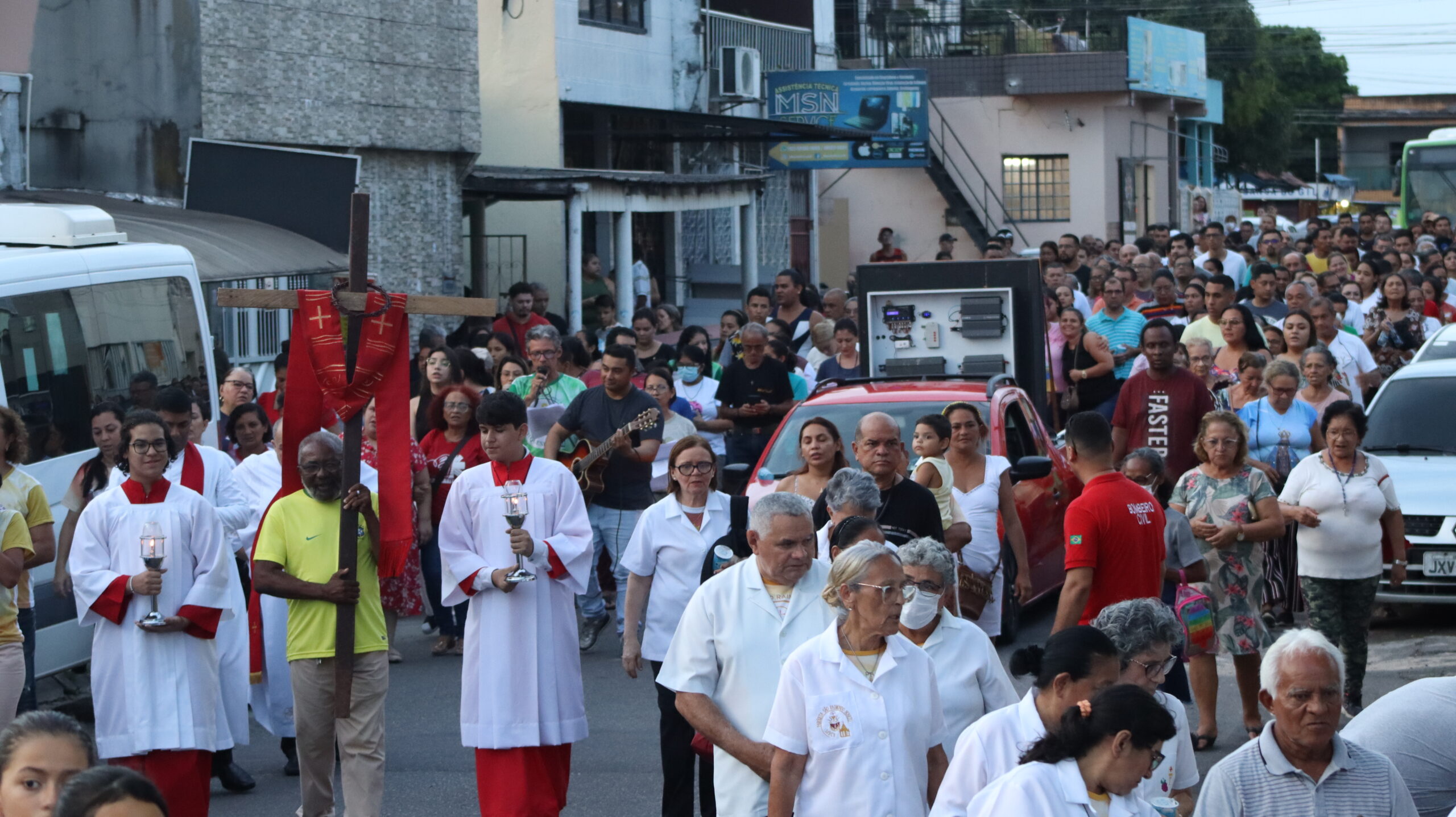 A paróquia, nesta sexta-feira santa, fez a via-sacra nas principais ruas do nosso bairro, contemplando e rezando a Paixão de Nosso Senhor Jesus Cristo.