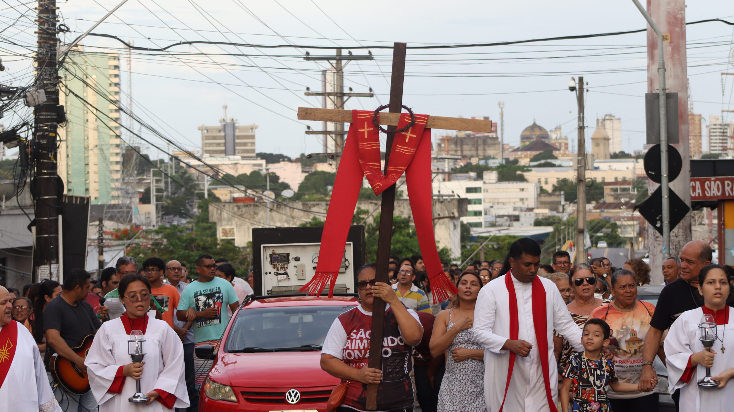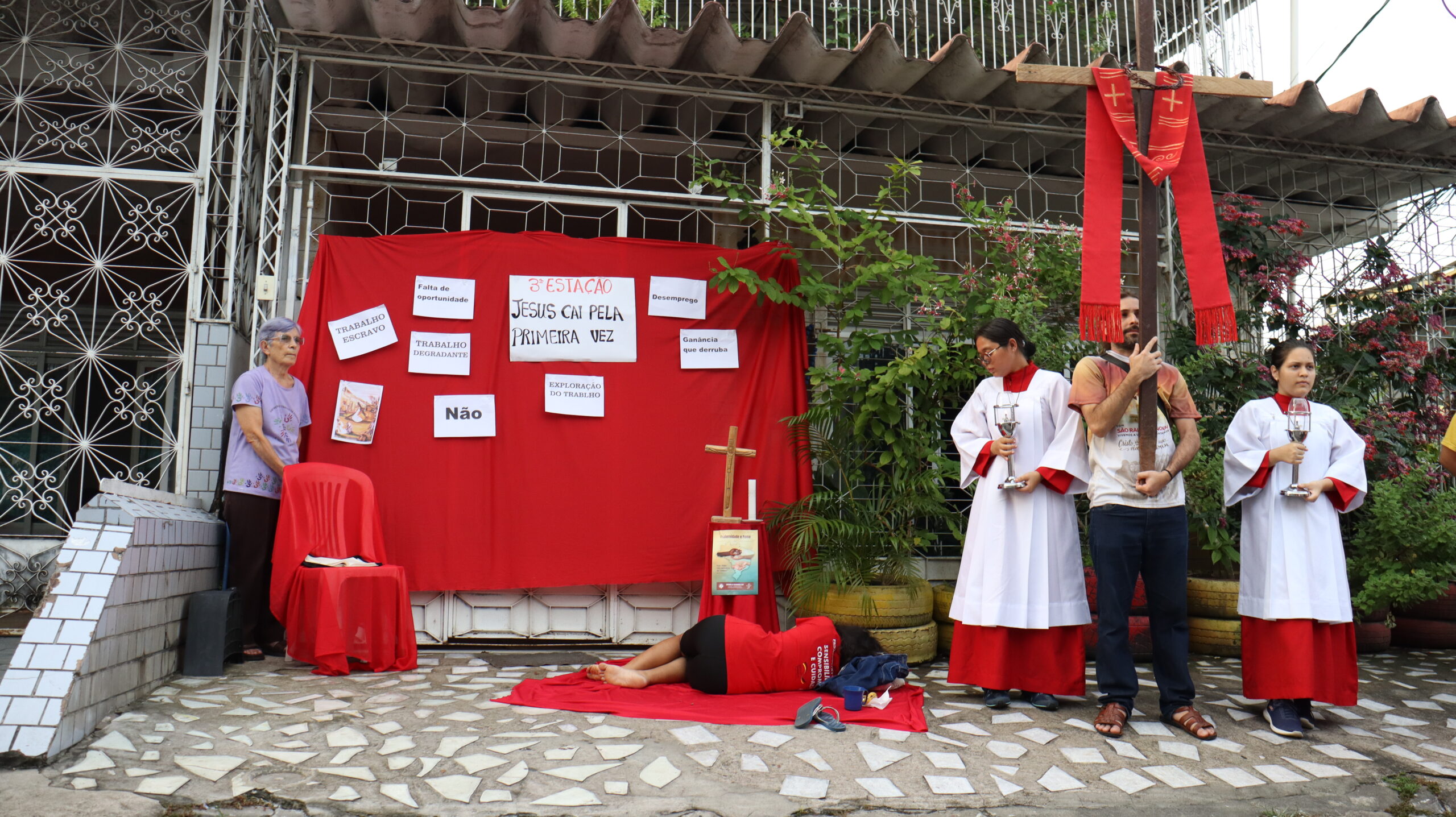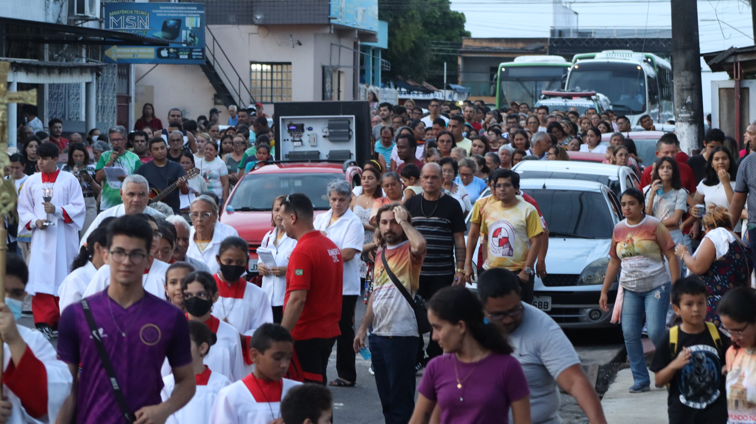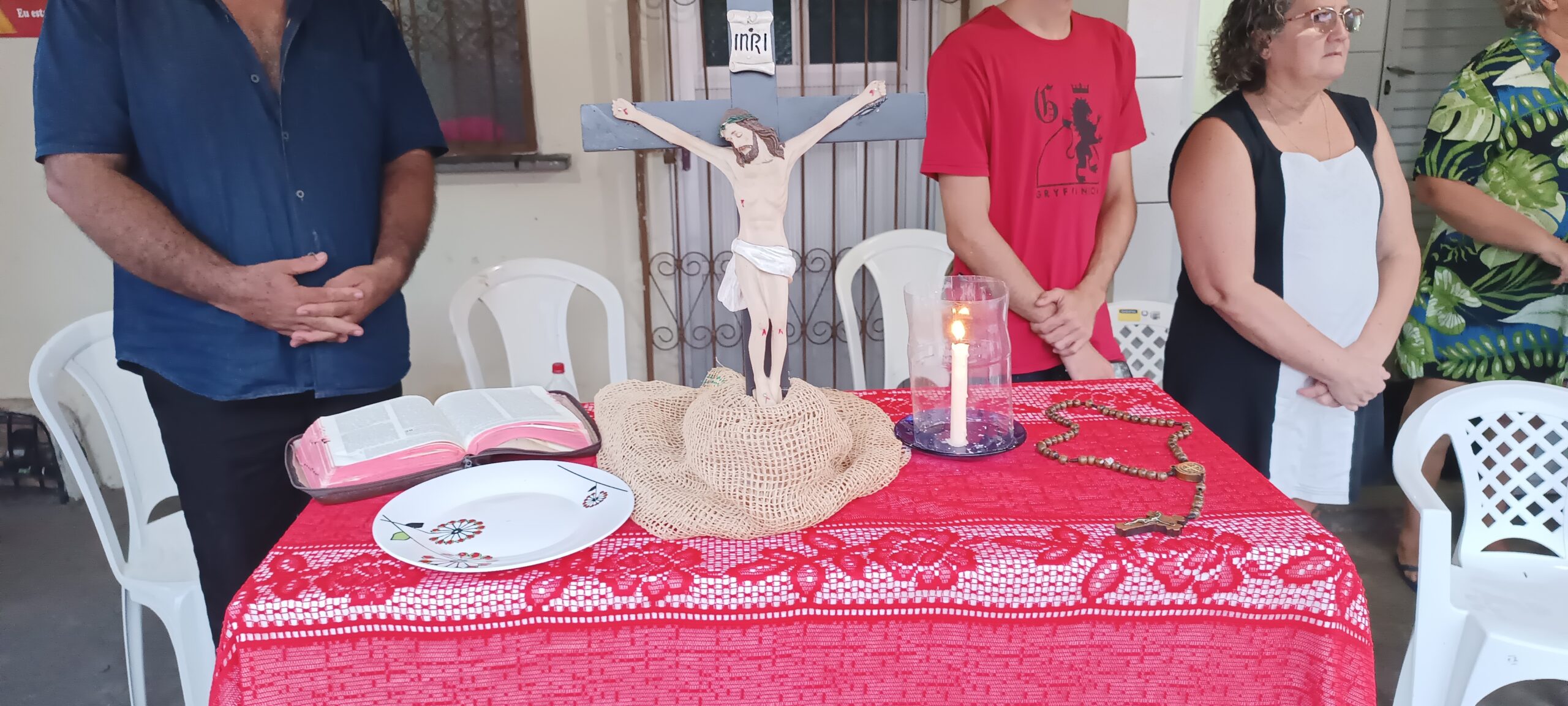 A paróquia, nesta sexta-feira santa, fez a via-sacra nas principais ruas do nosso bairro, contemplando e rezando a Paixão de Nosso Senhor Jesus Cristo.