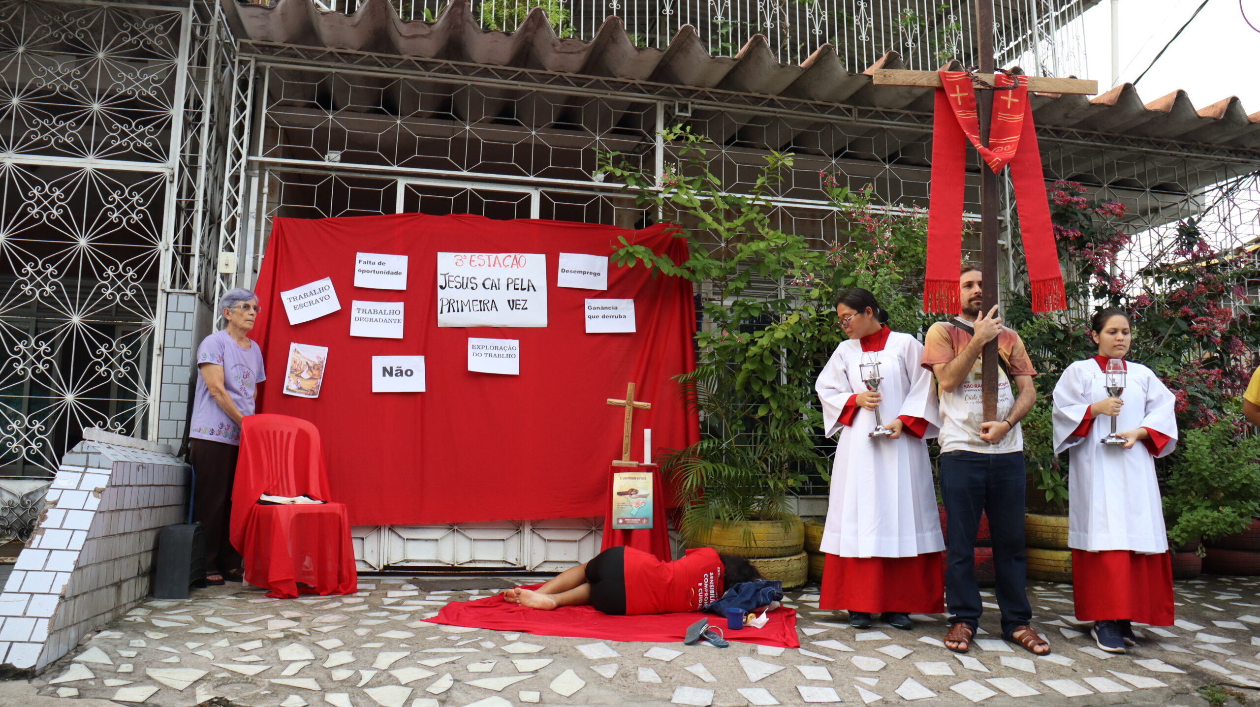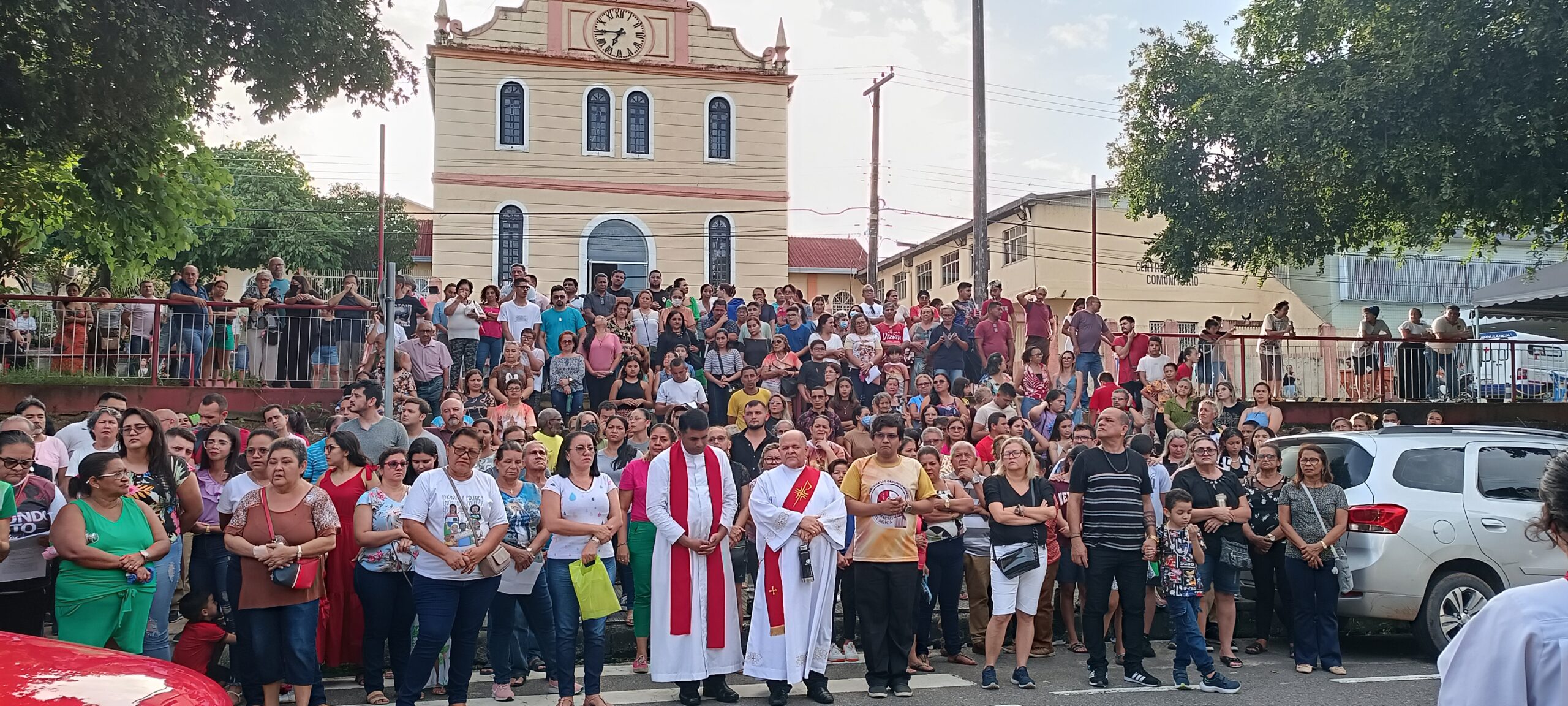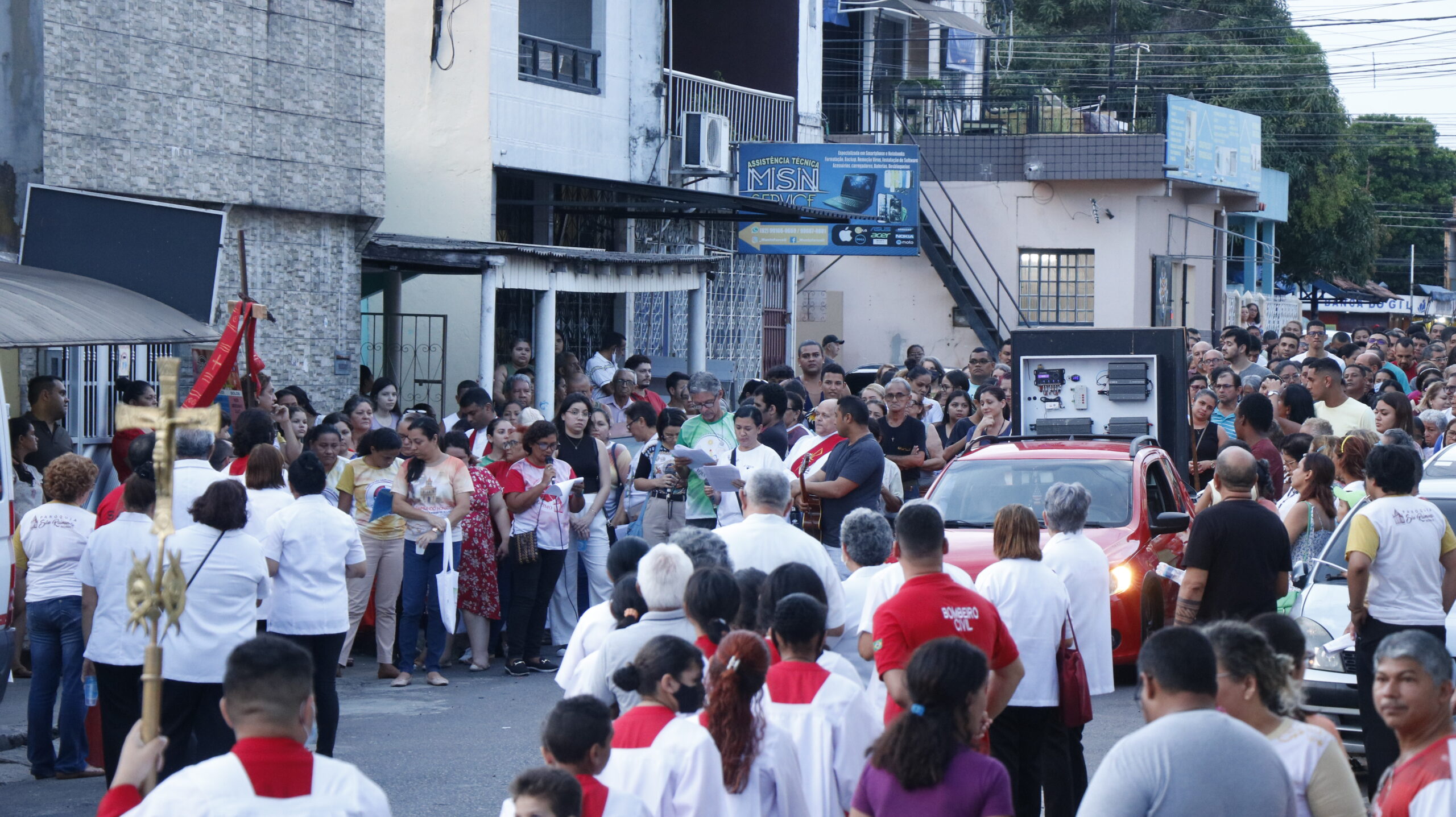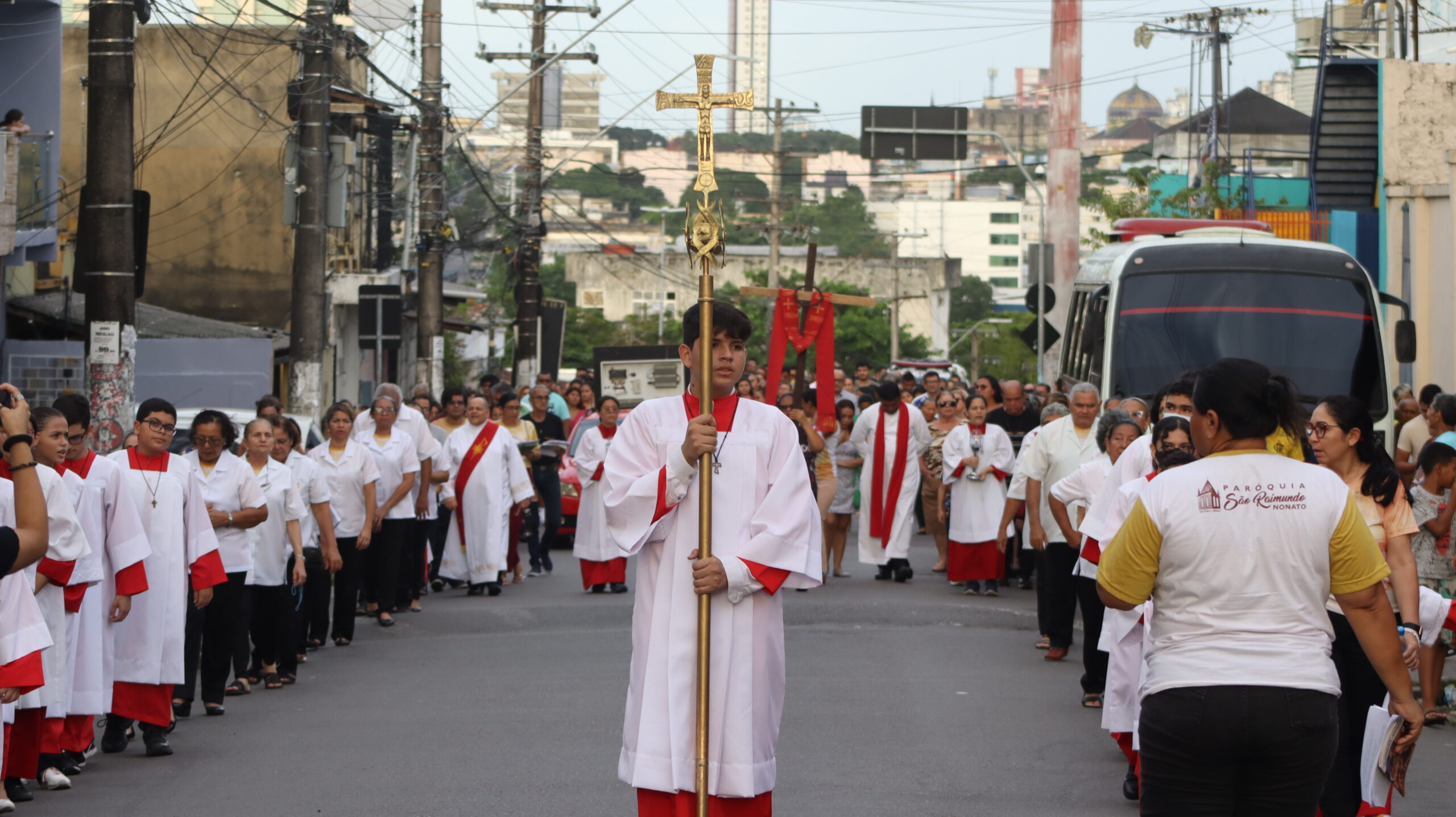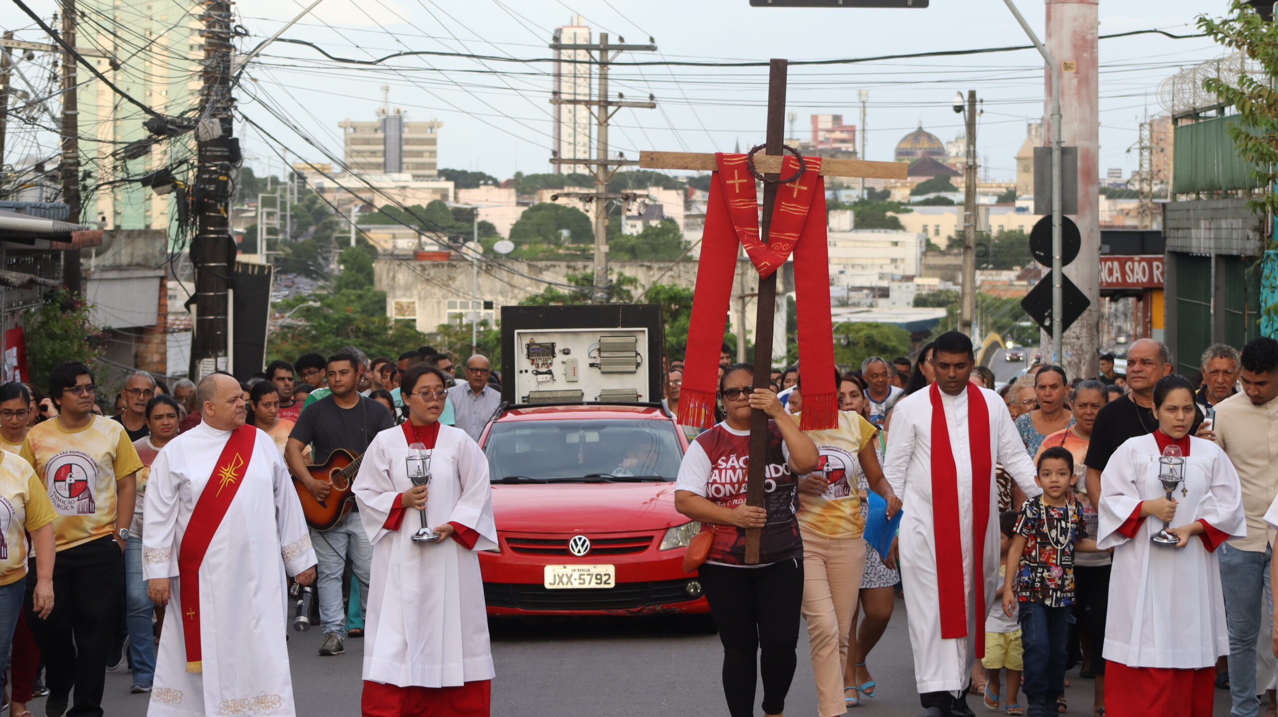 A paróquia, nesta sexta-feira santa, fez a via-sacra nas principais ruas do nosso bairro, contemplando e rezando a Paixão de Nosso Senhor Jesus Cristo.