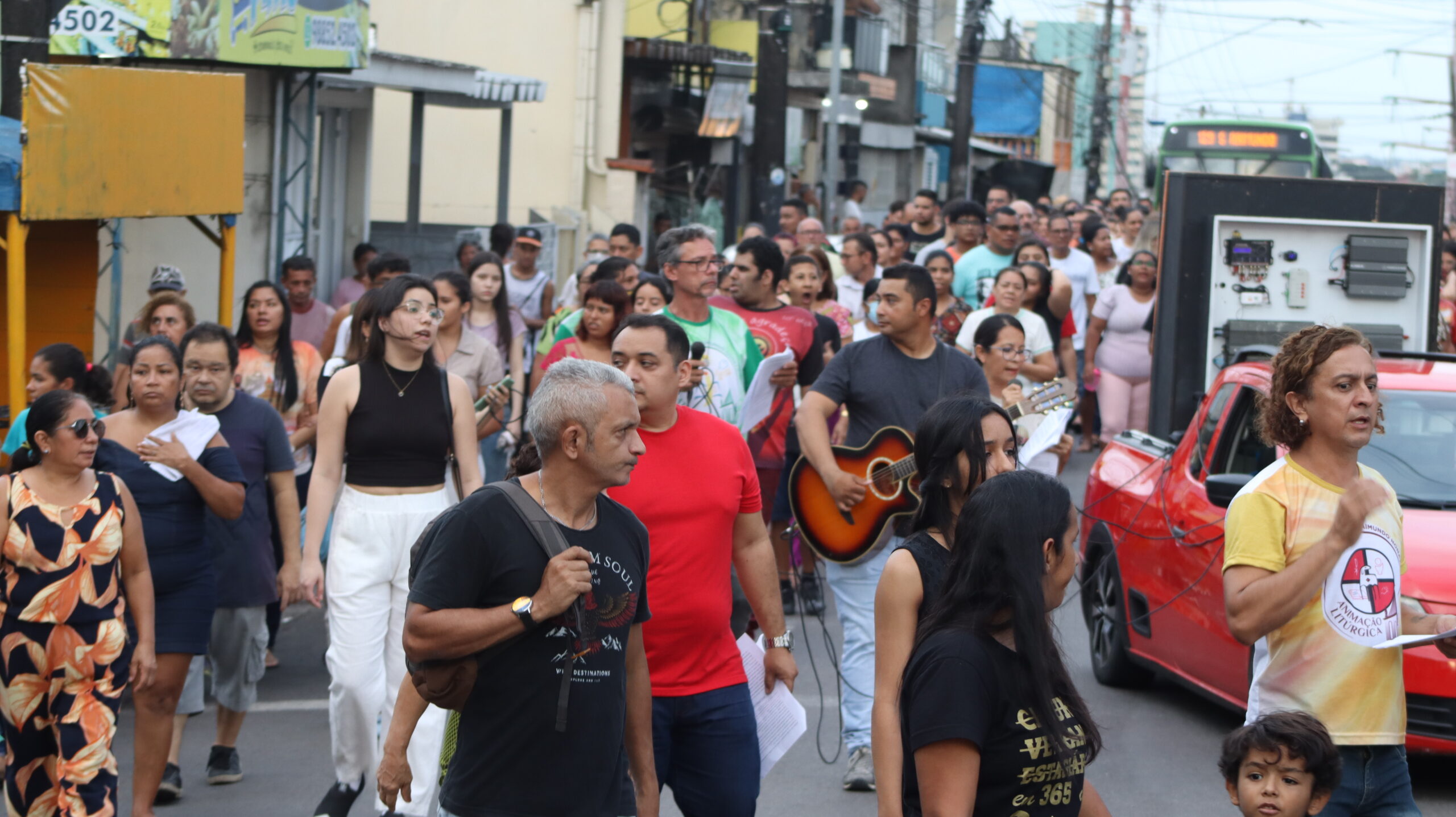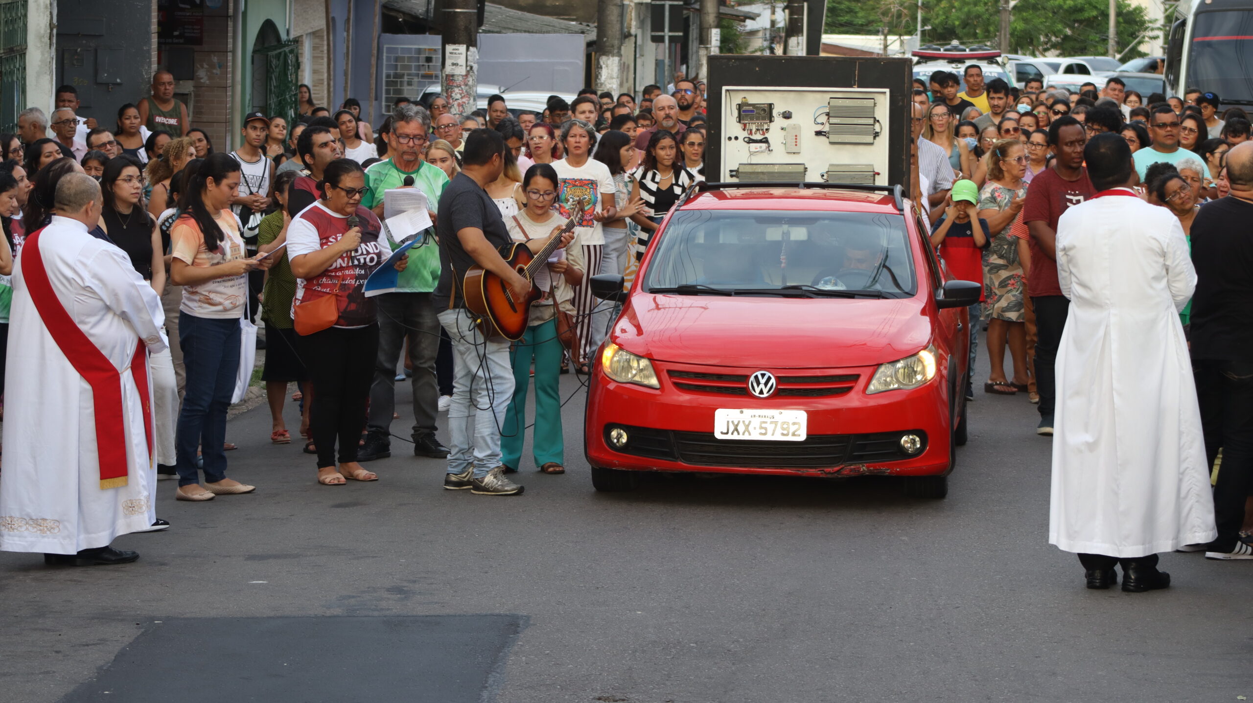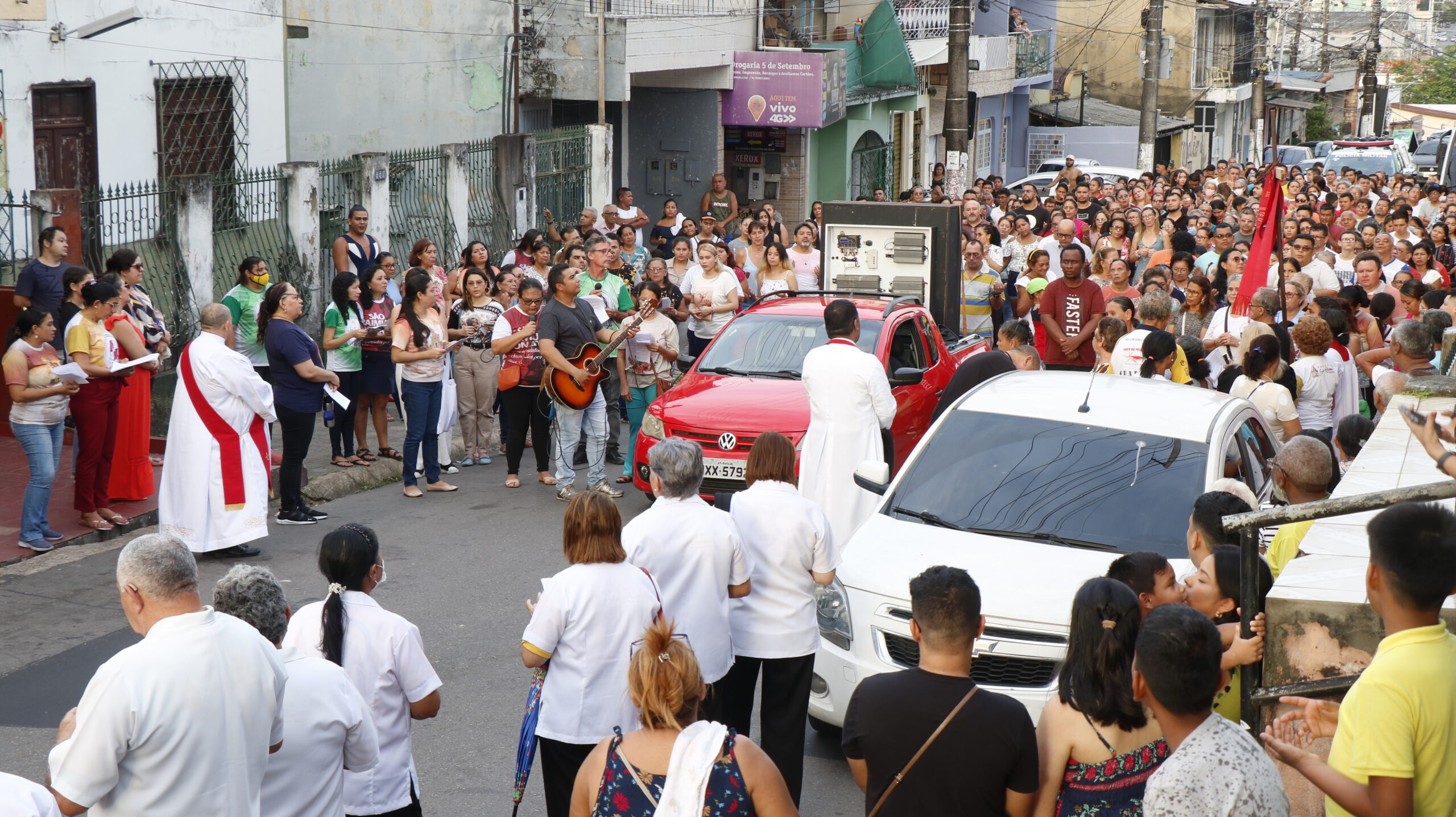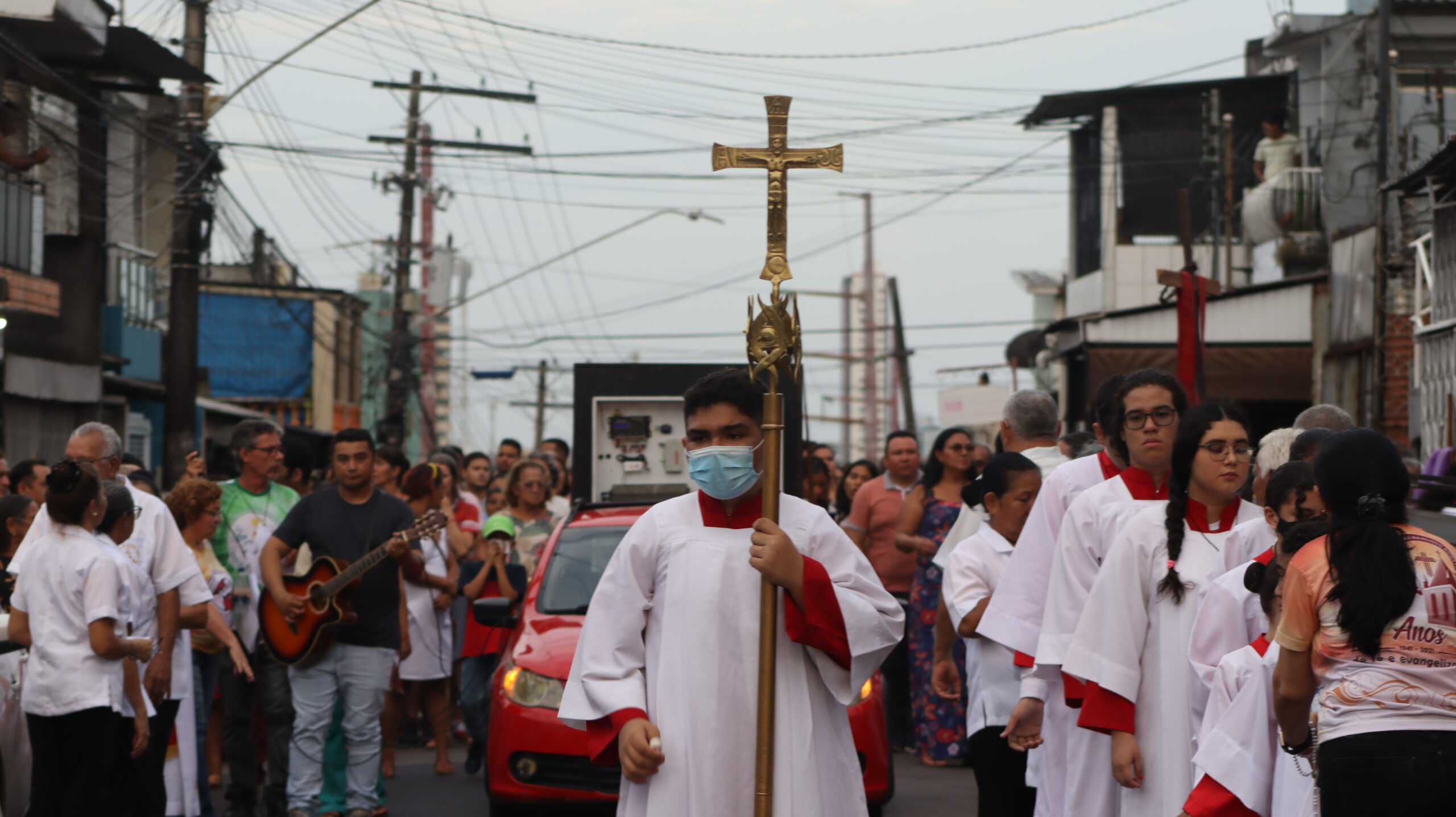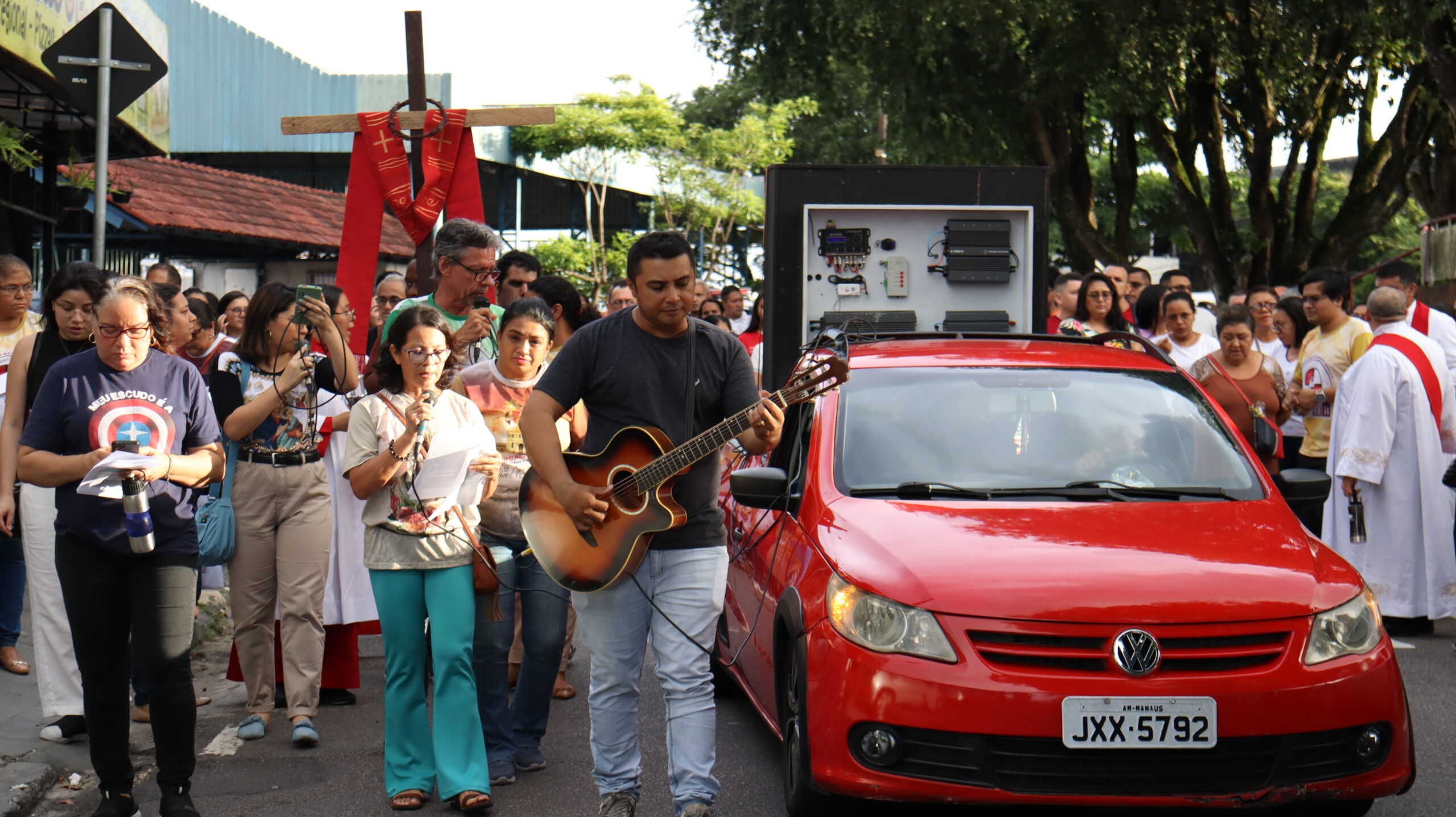 A paróquia, nesta sexta-feira santa, fez a via-sacra nas principais ruas do nosso bairro, contemplando e rezando a Paixão de Nosso Senhor Jesus Cristo.