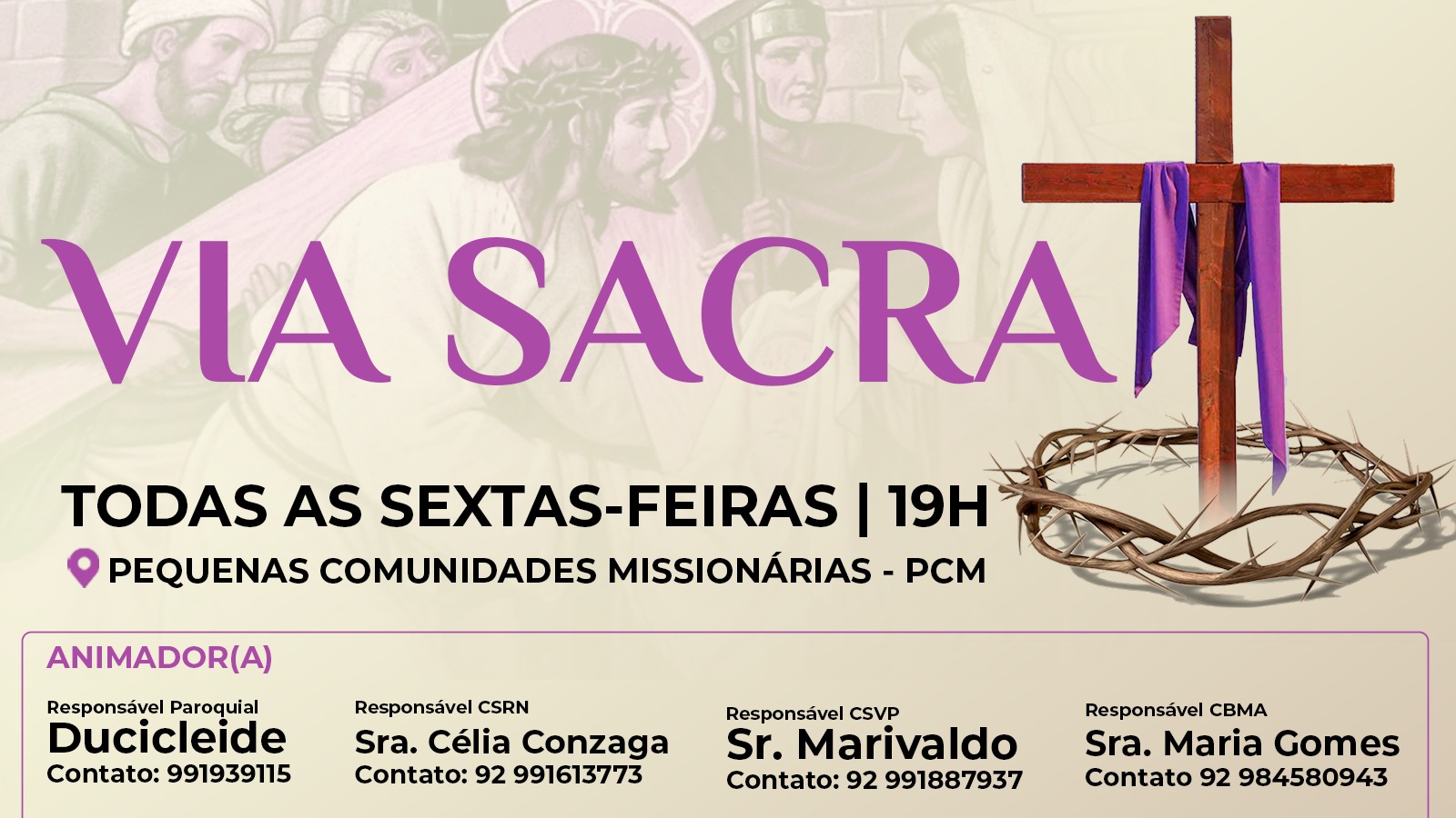 A via Sacra esta acontecendo em todas as Sextas-feiras – 19h nas pequenas comunidades Missionárias – PCM da paróquia.