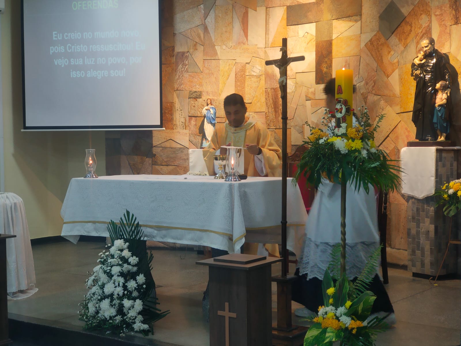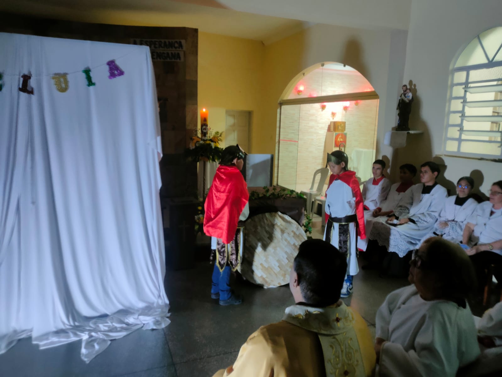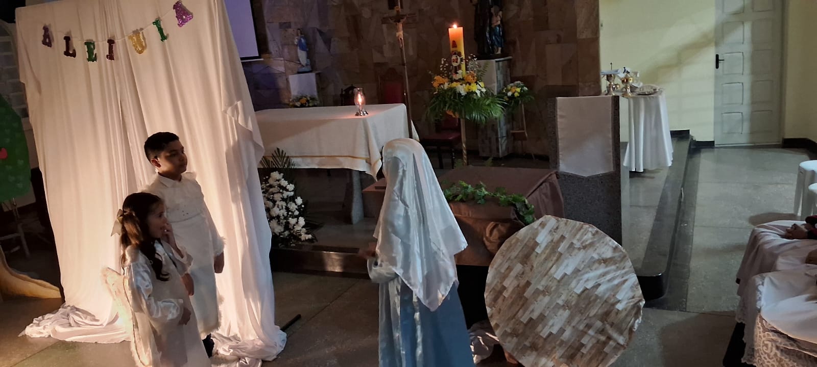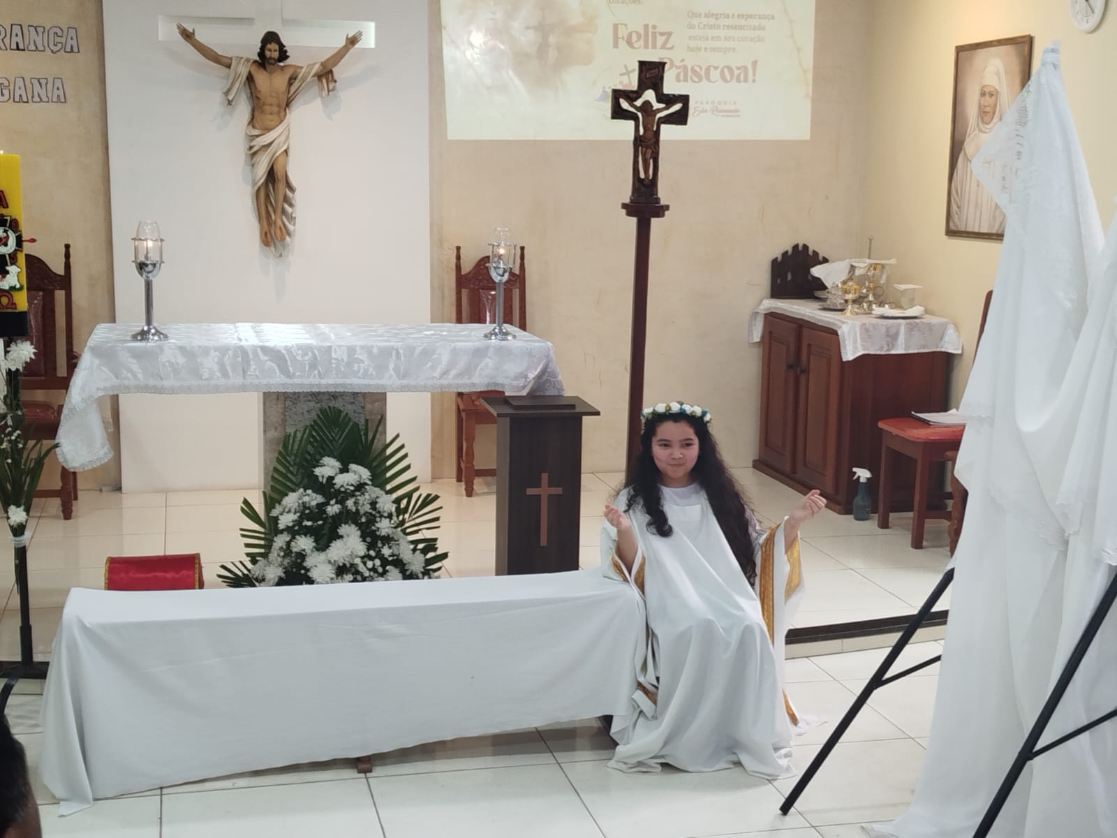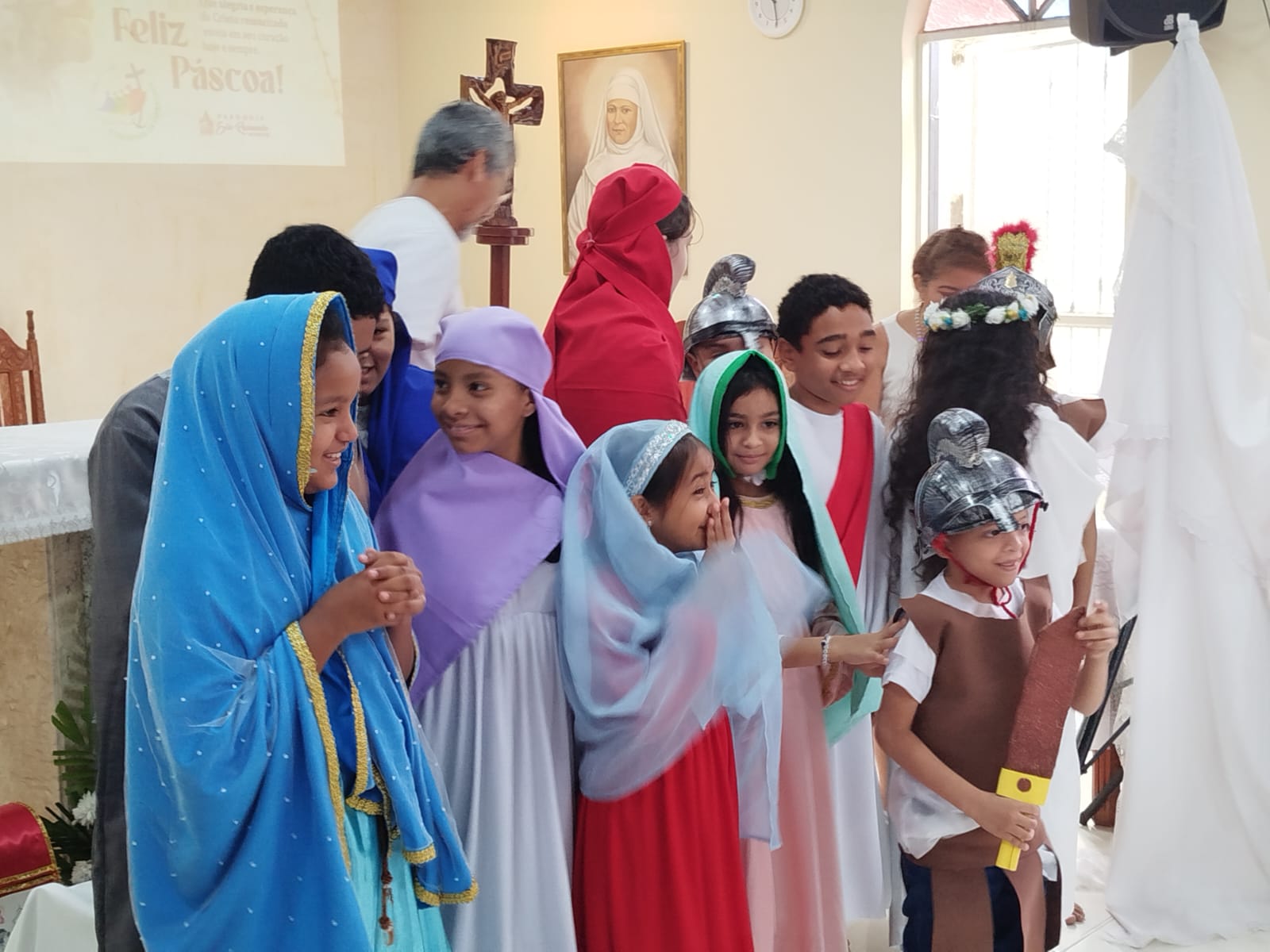 A Paróquia São Raimundo Nonato celebrou a festa da Páscoa neste domingo em suas três comunidades, com muita festa e alegria. Nas Comunidades São Vicente de Paulo e Beata Maria Assunta, as crianças da catequese encenaram a 15° estação para lembrar que Cristo ressuscitou, e na Comunidade Sao Raimundo Nonato os jovens terminaram a encenação que começou na sexta feira Santa. Com muita emoção e alegria celebramos a ressurreição de Nosso Senhor Jesus Cristo.