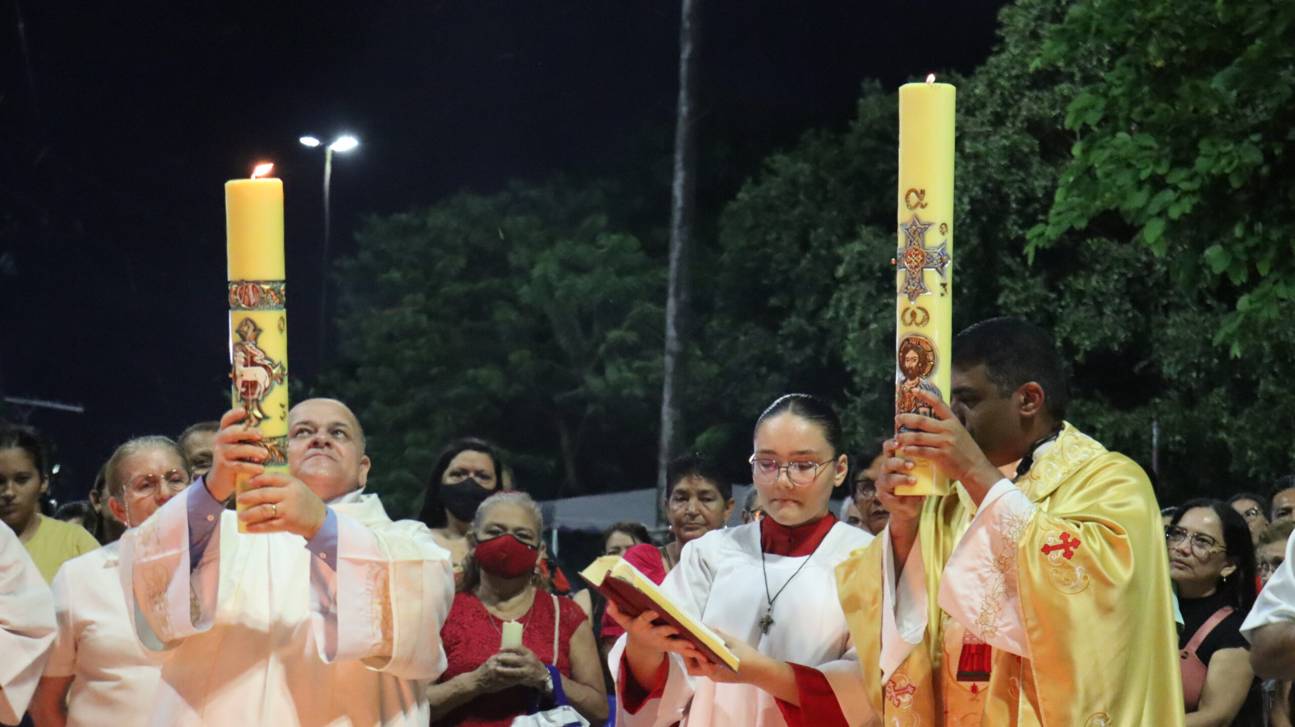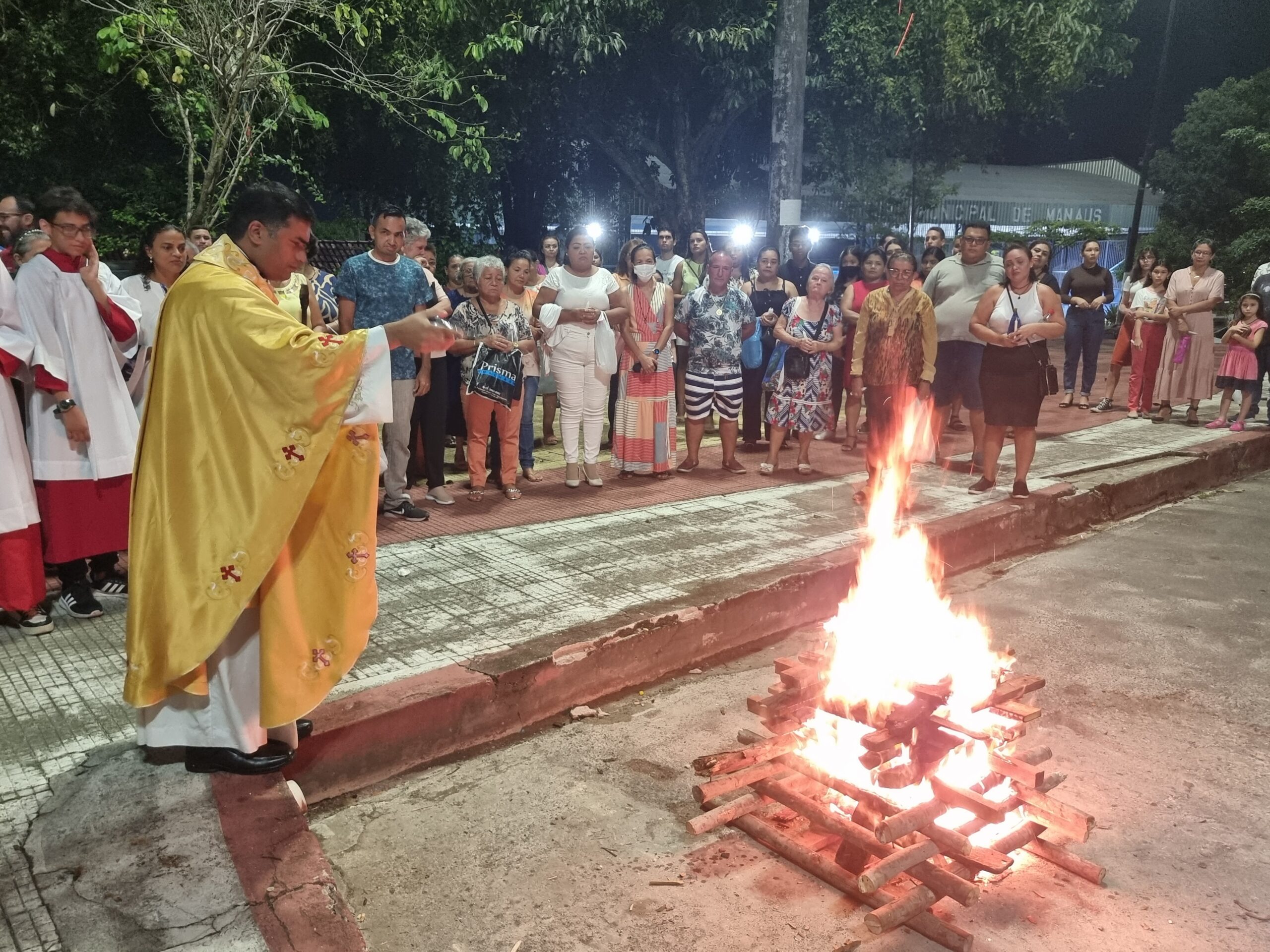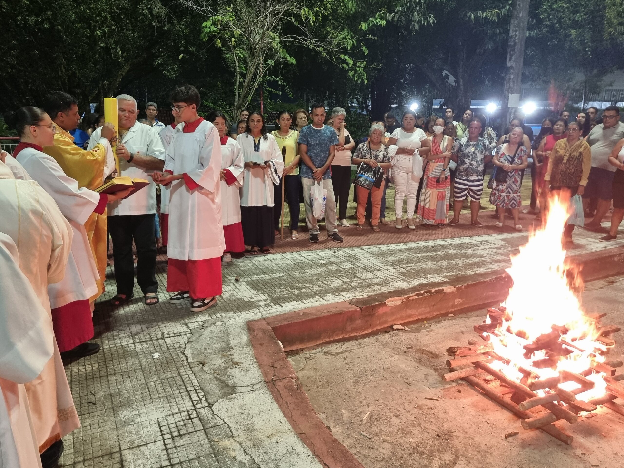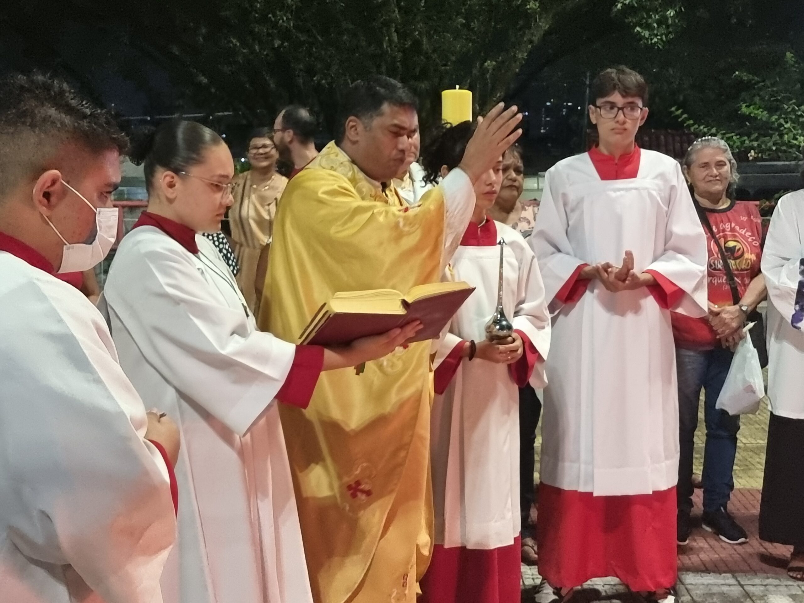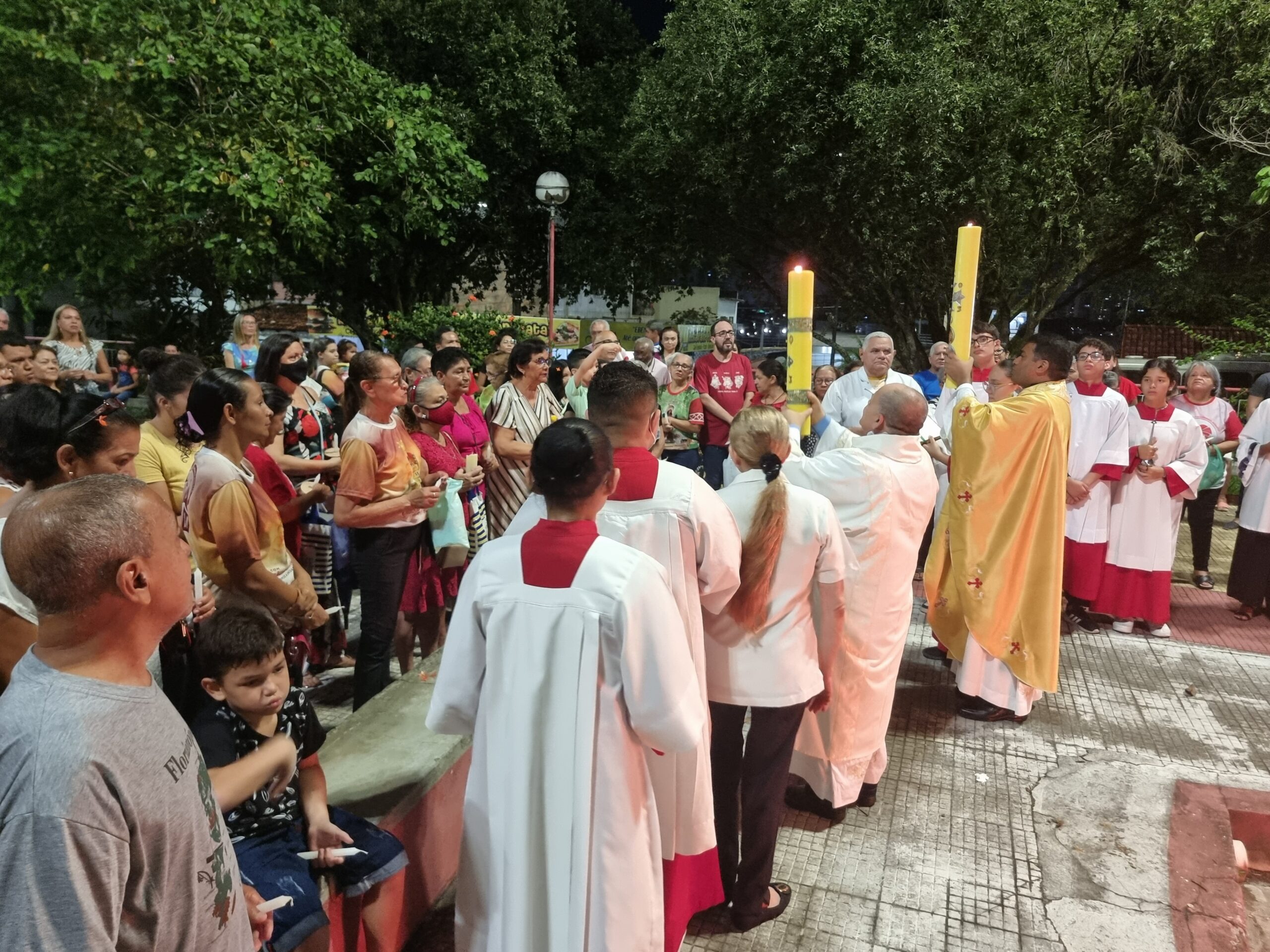 No Sábado Santo à noite 08 de abril, 2023, na comunidade São Raimundo Nonato celebraram a solene Vigília Pascal, quando se proclama a Ressurreição do Senhor. Com essa celebração chegamos ao ápice do Tríduo Pascal, iniciado na quinta-feira santa. Essa é a vigília das vigílias, dessa vigília provém todas as outras, é a celebração mais importante do ano. Na comunidade São Raimundo Nonato, ocorreu o batismo de dois adultos, em sua homilia, padre John ressaltou a alegria da ressurreição e esperança de vida nova, renovados com a Páscoa de Jesus.