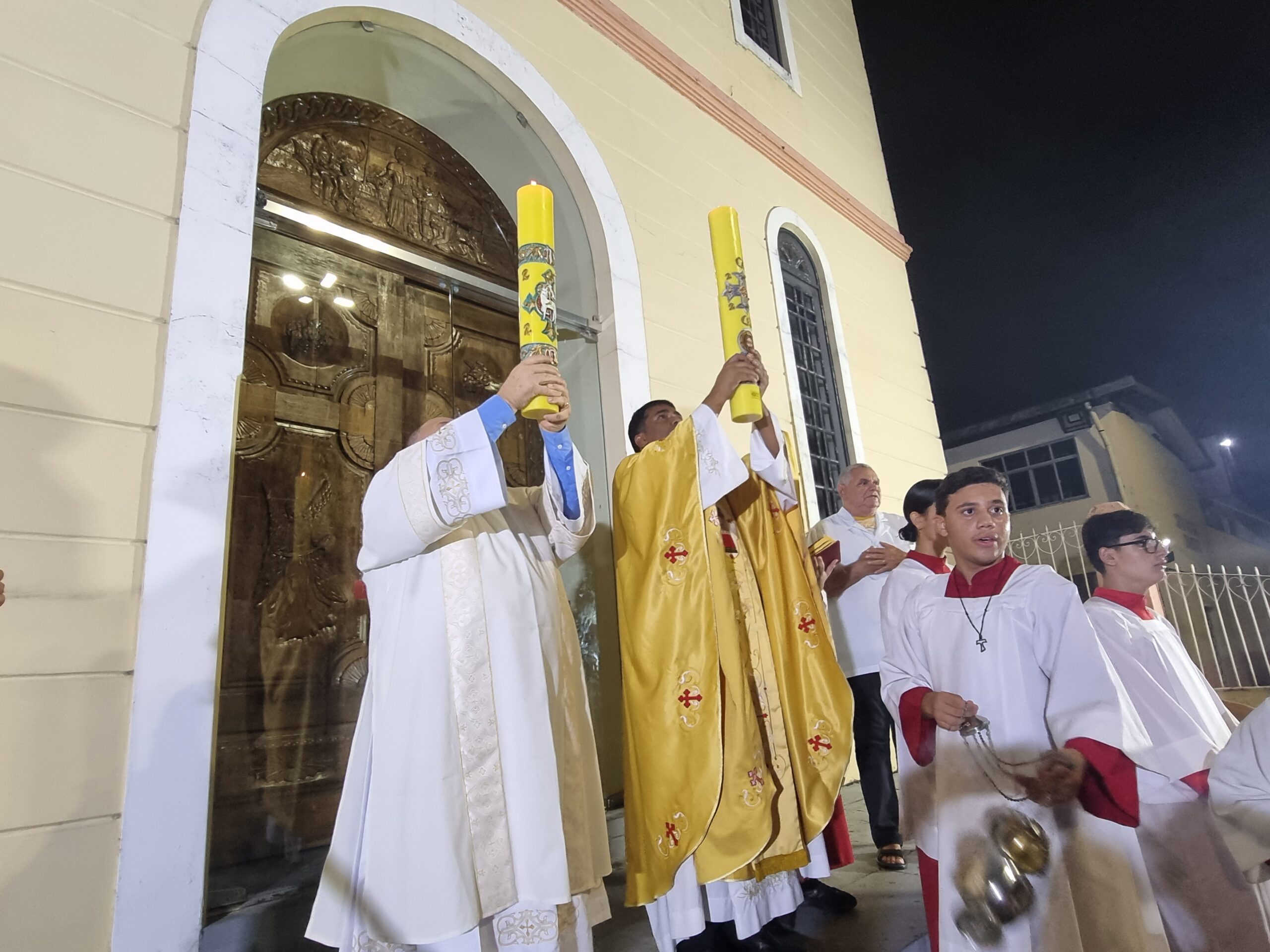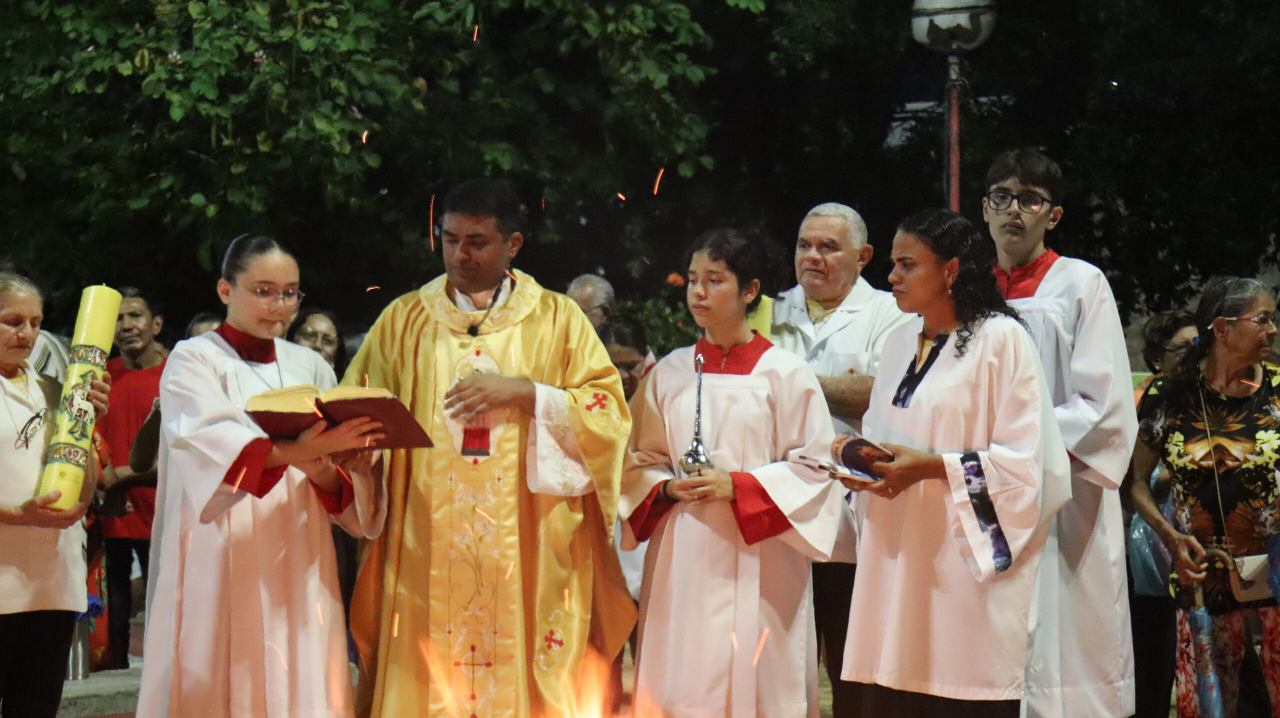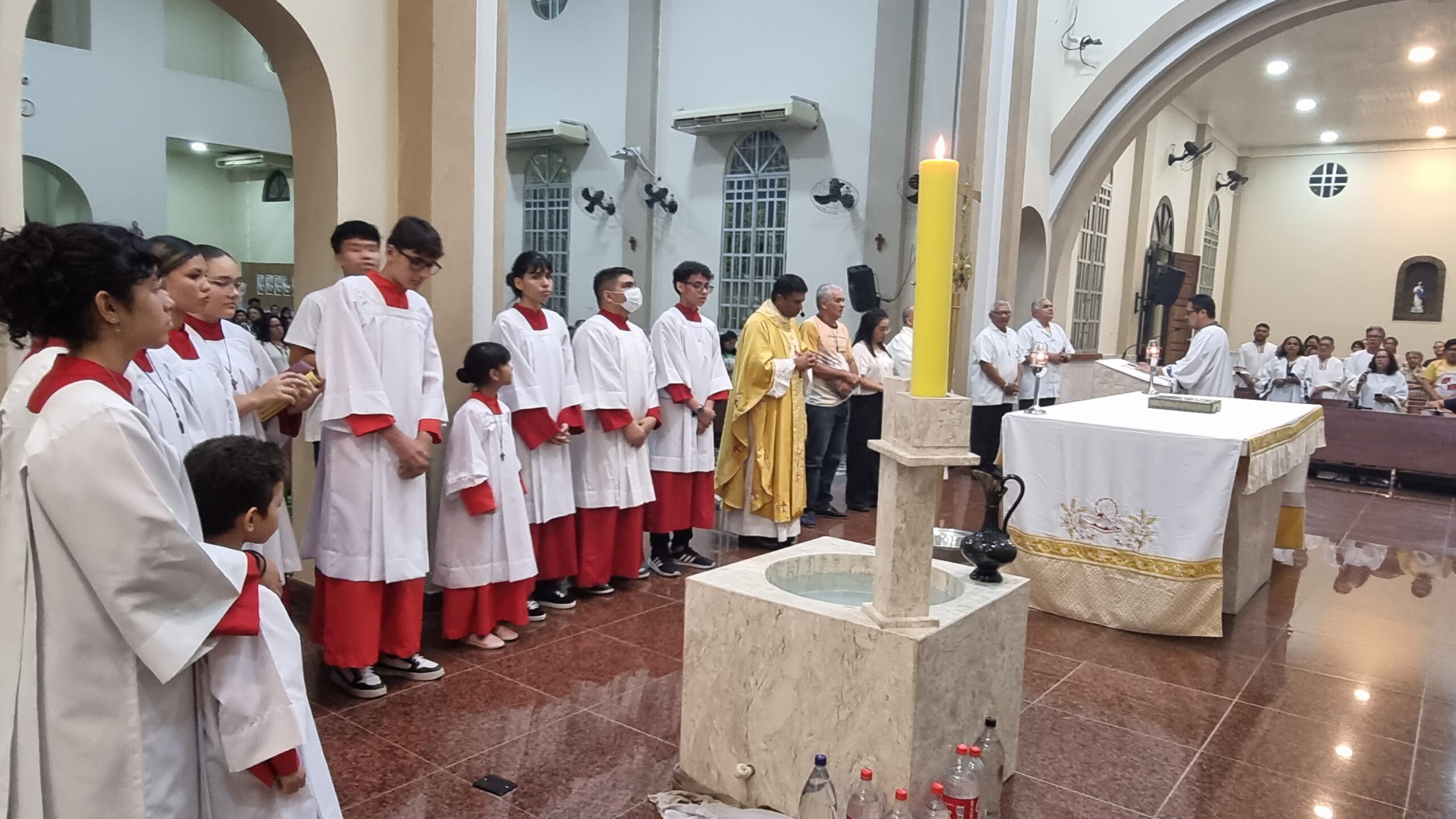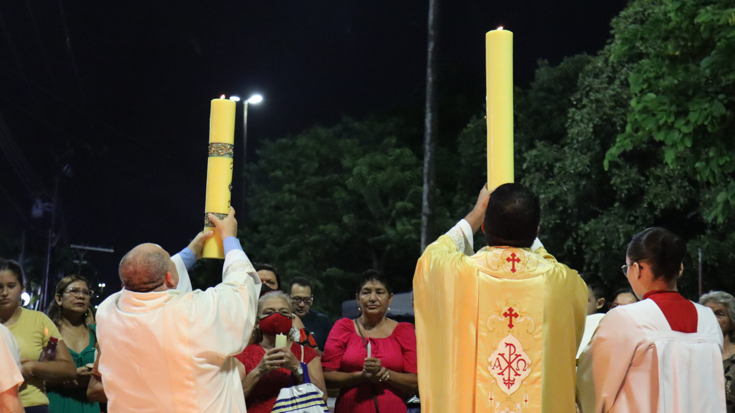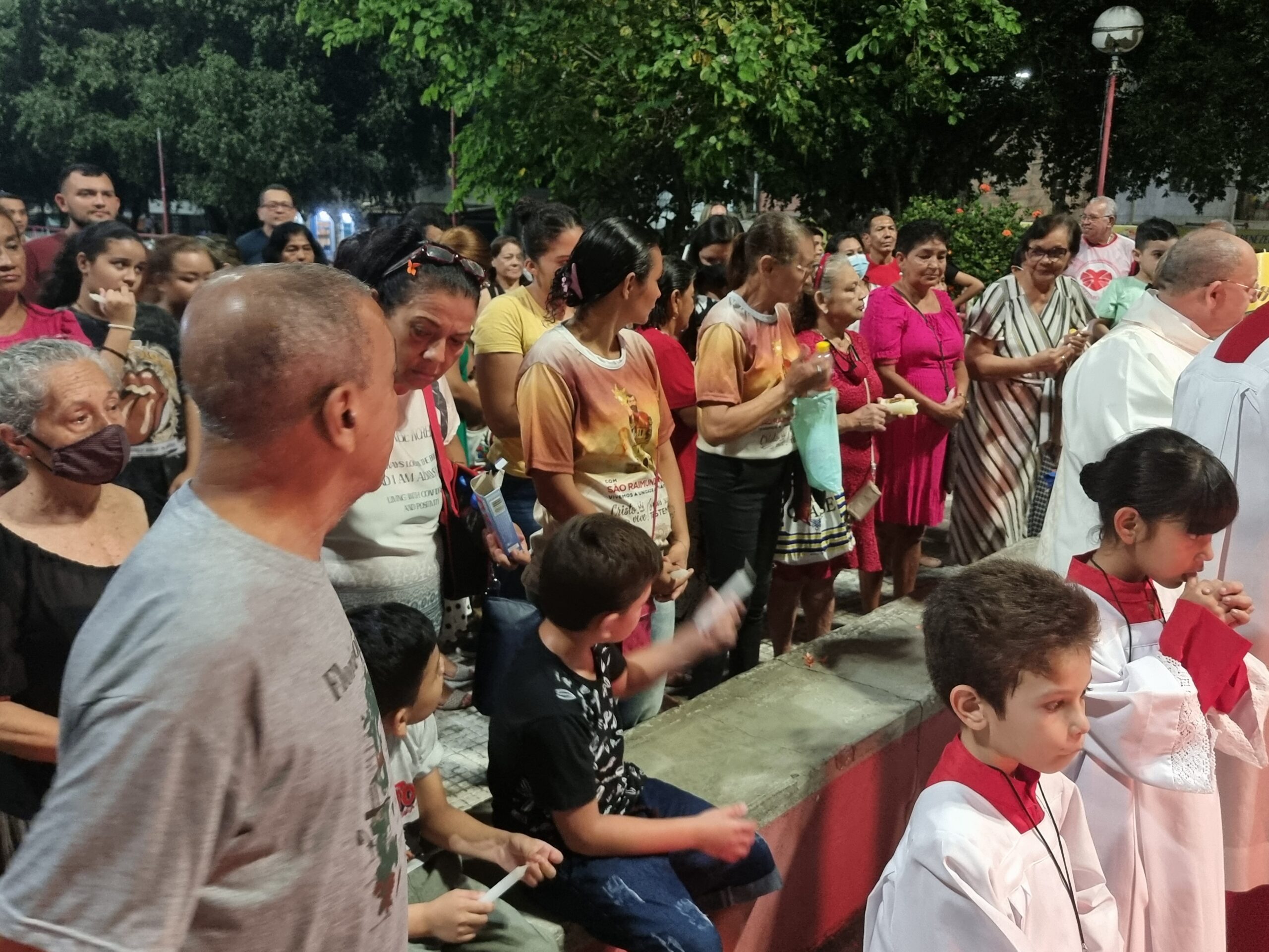 No Sábado Santo à noite 08 de abril, 2023, na comunidade São Raimundo Nonato celebraram a solene Vigília Pascal, quando se proclama a Ressurreição do Senhor. Com essa celebração chegamos ao ápice do Tríduo Pascal, iniciado na quinta-feira santa. Essa é a vigília das vigílias, dessa vigília provém todas as outras, é a celebração mais importante do ano. Na comunidade São Raimundo Nonato, ocorreu o batismo de dois adultos, em sua homilia, padre John ressaltou a alegria da ressurreição e esperança de vida nova, renovados com a Páscoa de Jesus.