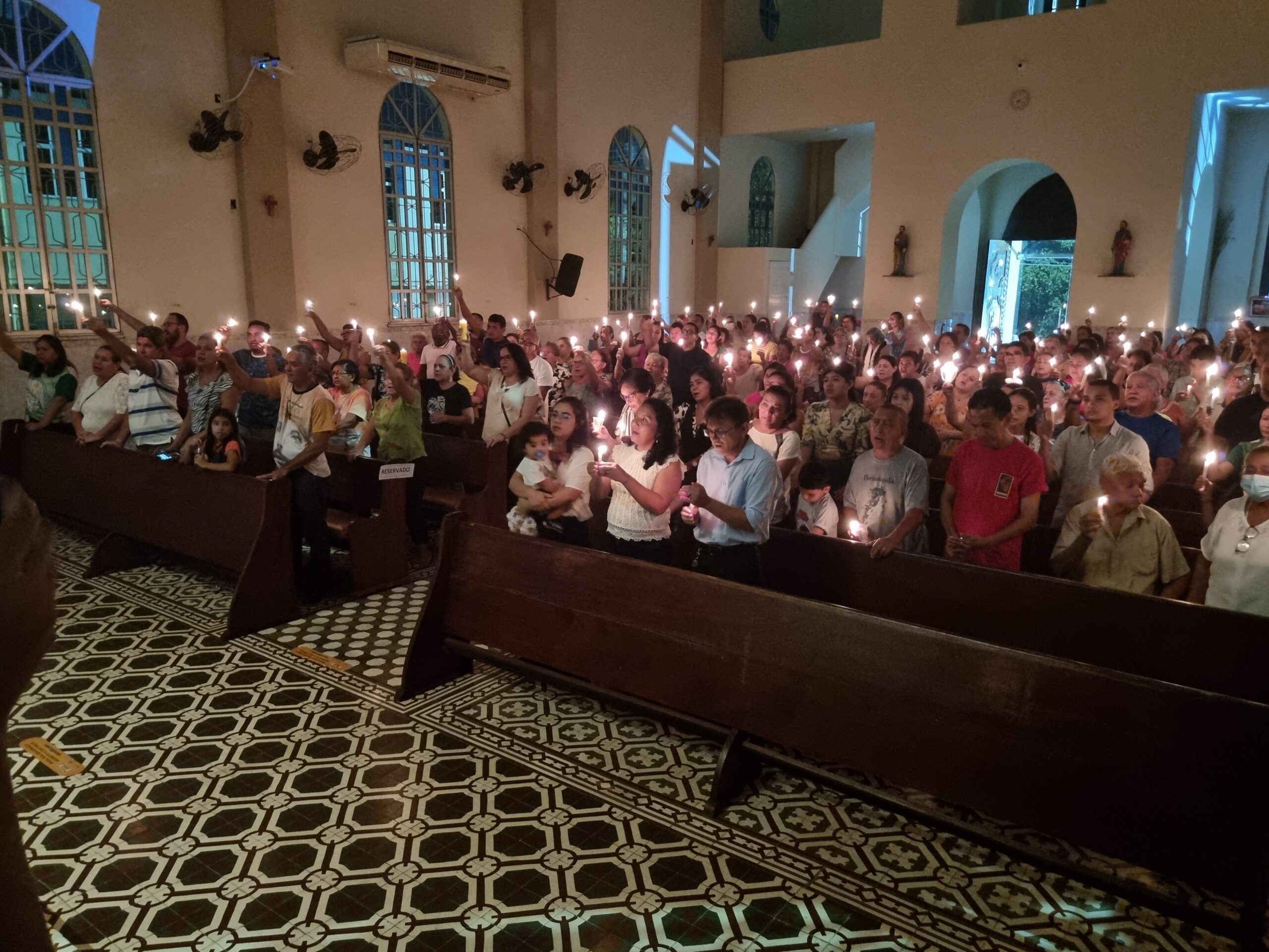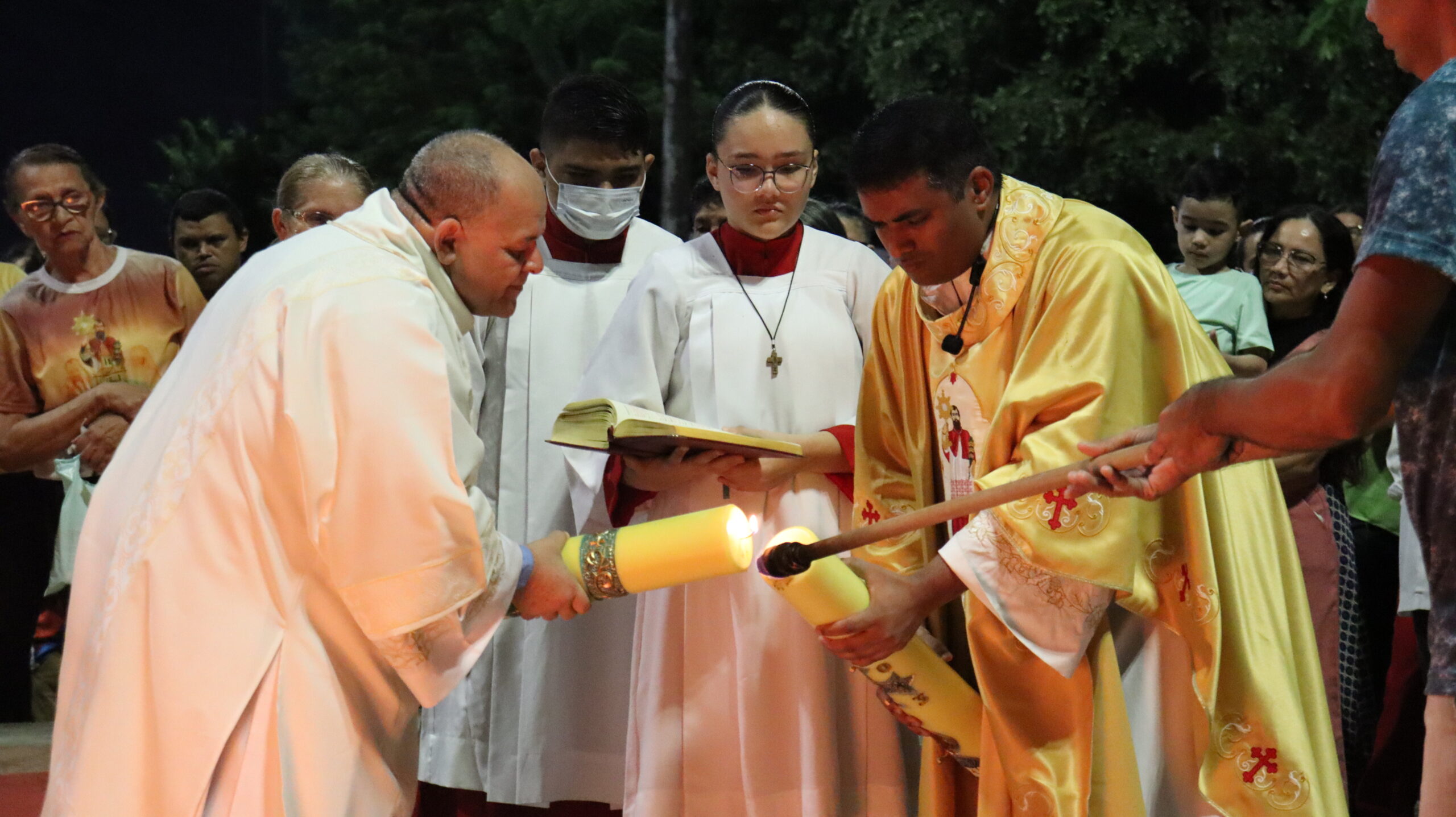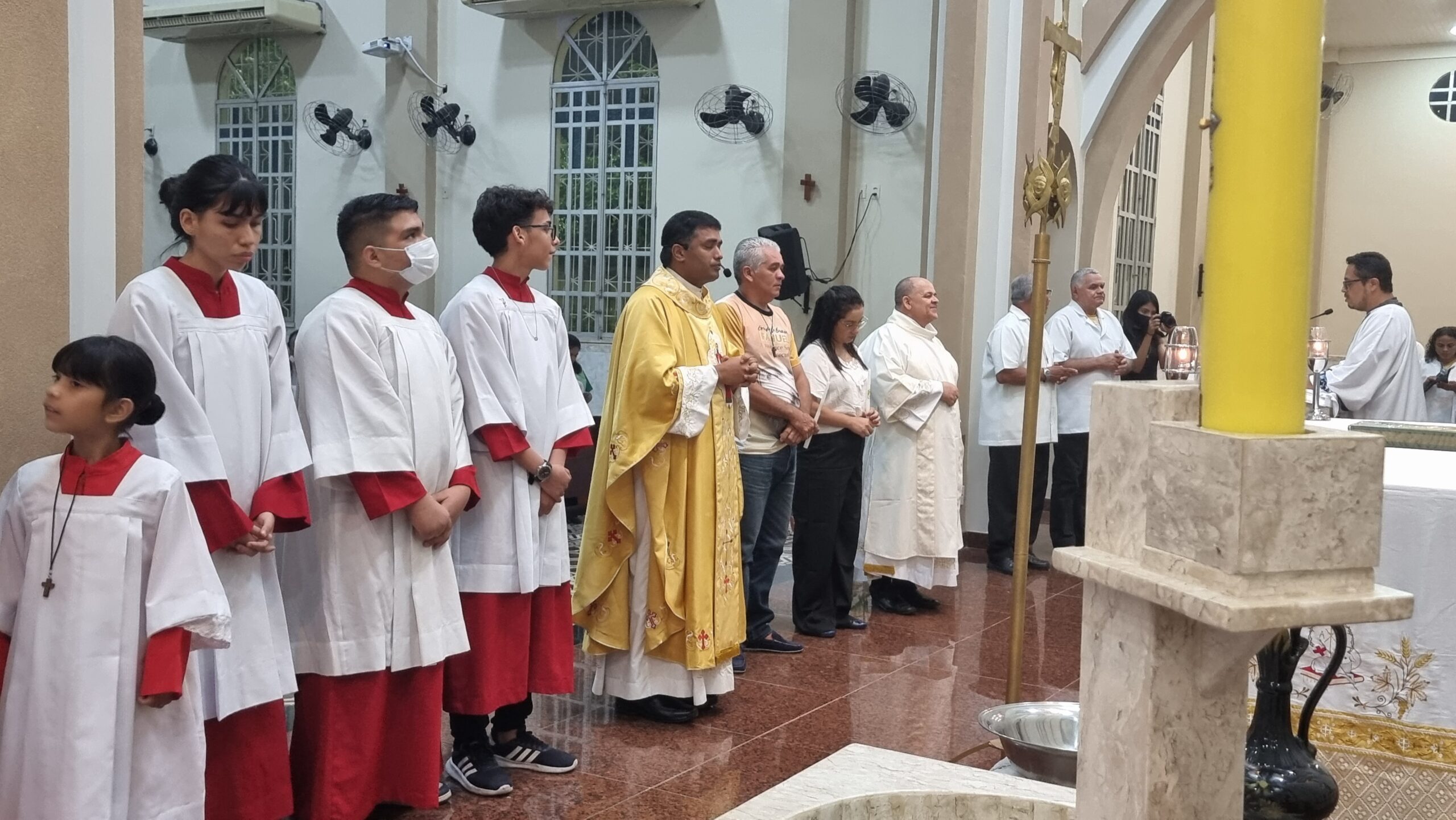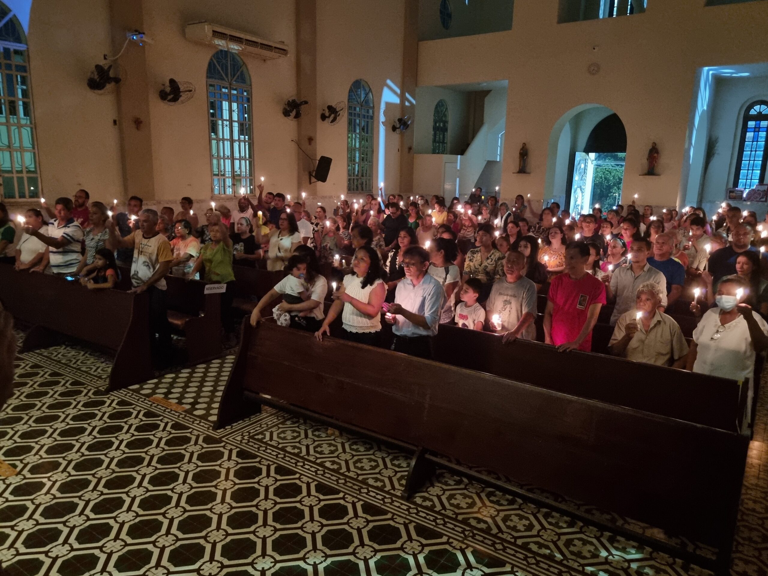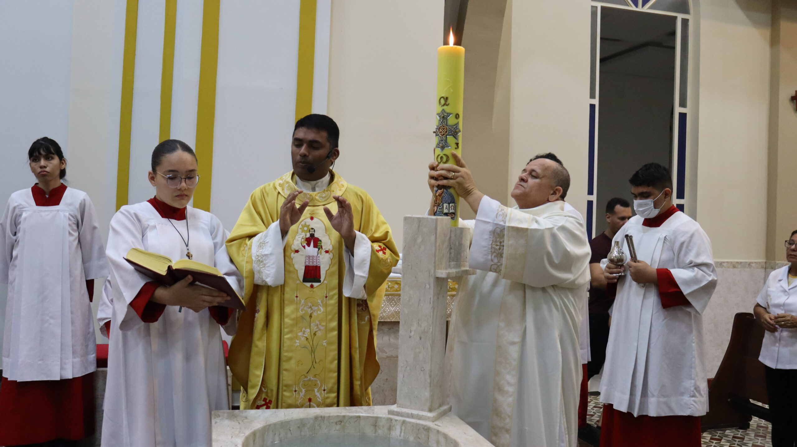 No Sábado Santo à noite 08 de abril, 2023, na comunidade São Raimundo Nonato celebraram a solene Vigília Pascal, quando se proclama a Ressurreição do Senhor. Com essa celebração chegamos ao ápice do Tríduo Pascal, iniciado na quinta-feira santa. Essa é a vigília das vigílias, dessa vigília provém todas as outras, é a celebração mais importante do ano. Na comunidade São Raimundo Nonato, ocorreu o batismo de dois adultos, em sua homilia, padre John ressaltou a alegria da ressurreição e esperança de vida nova, renovados com a Páscoa de Jesus.