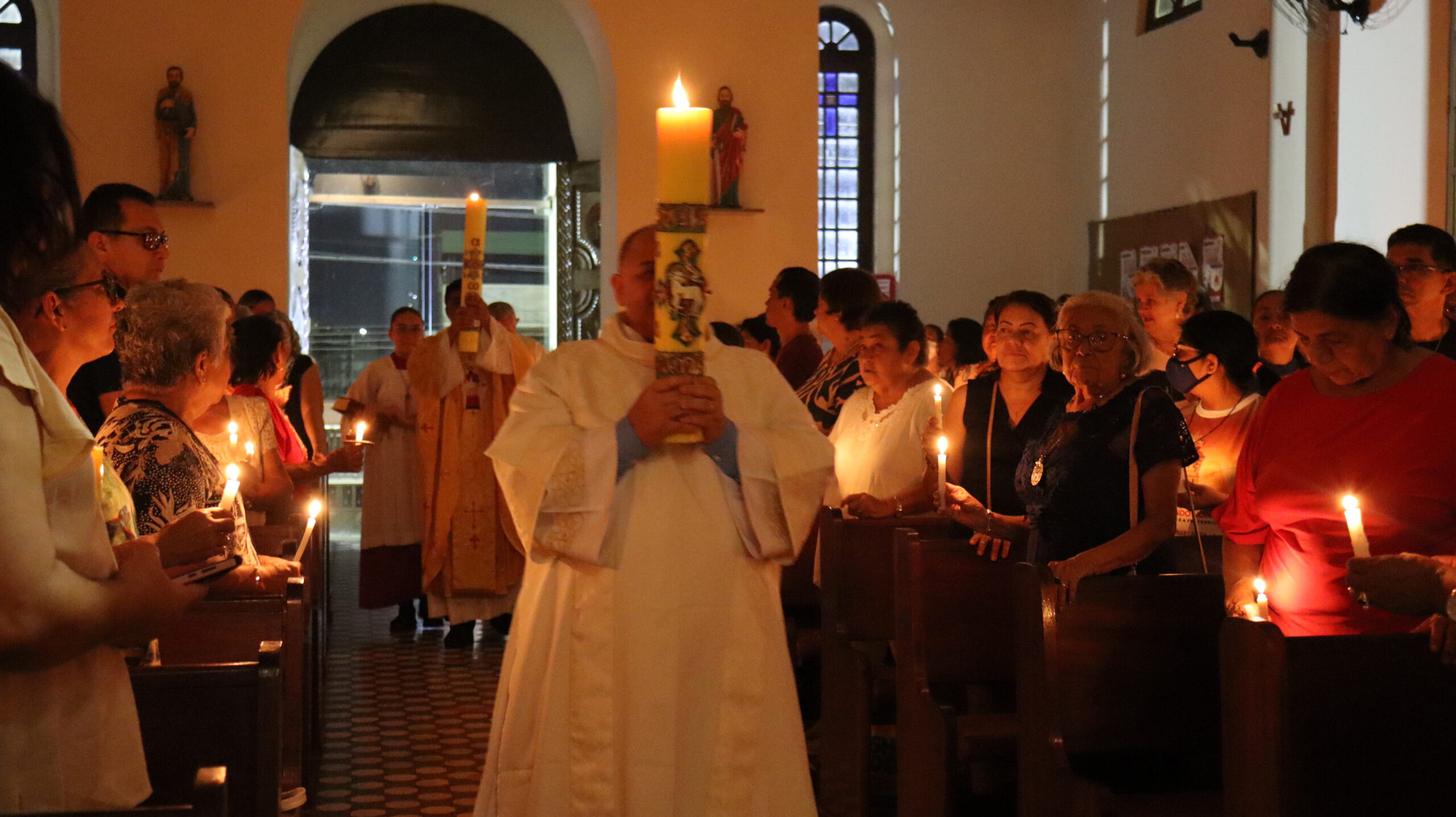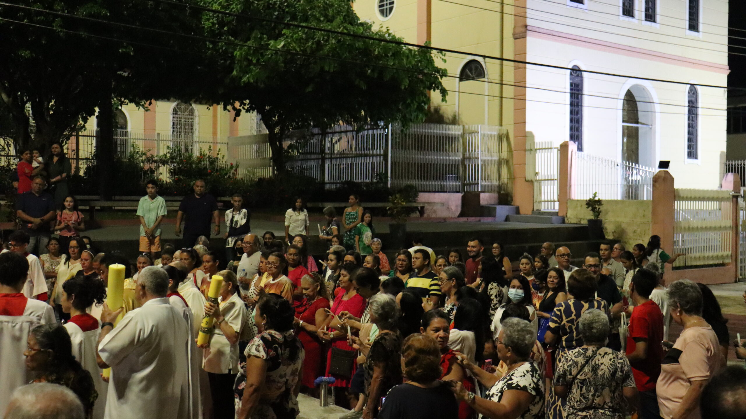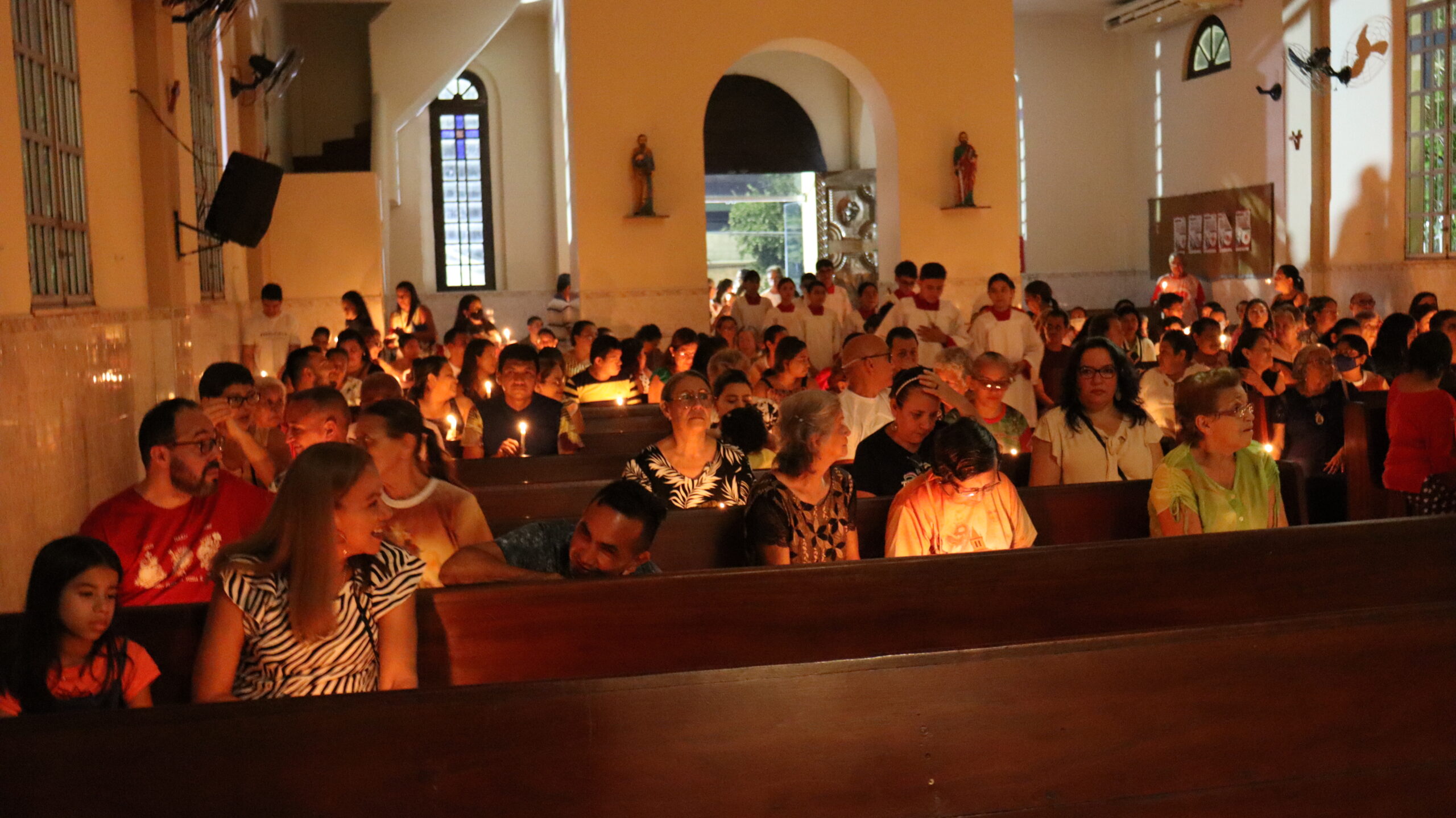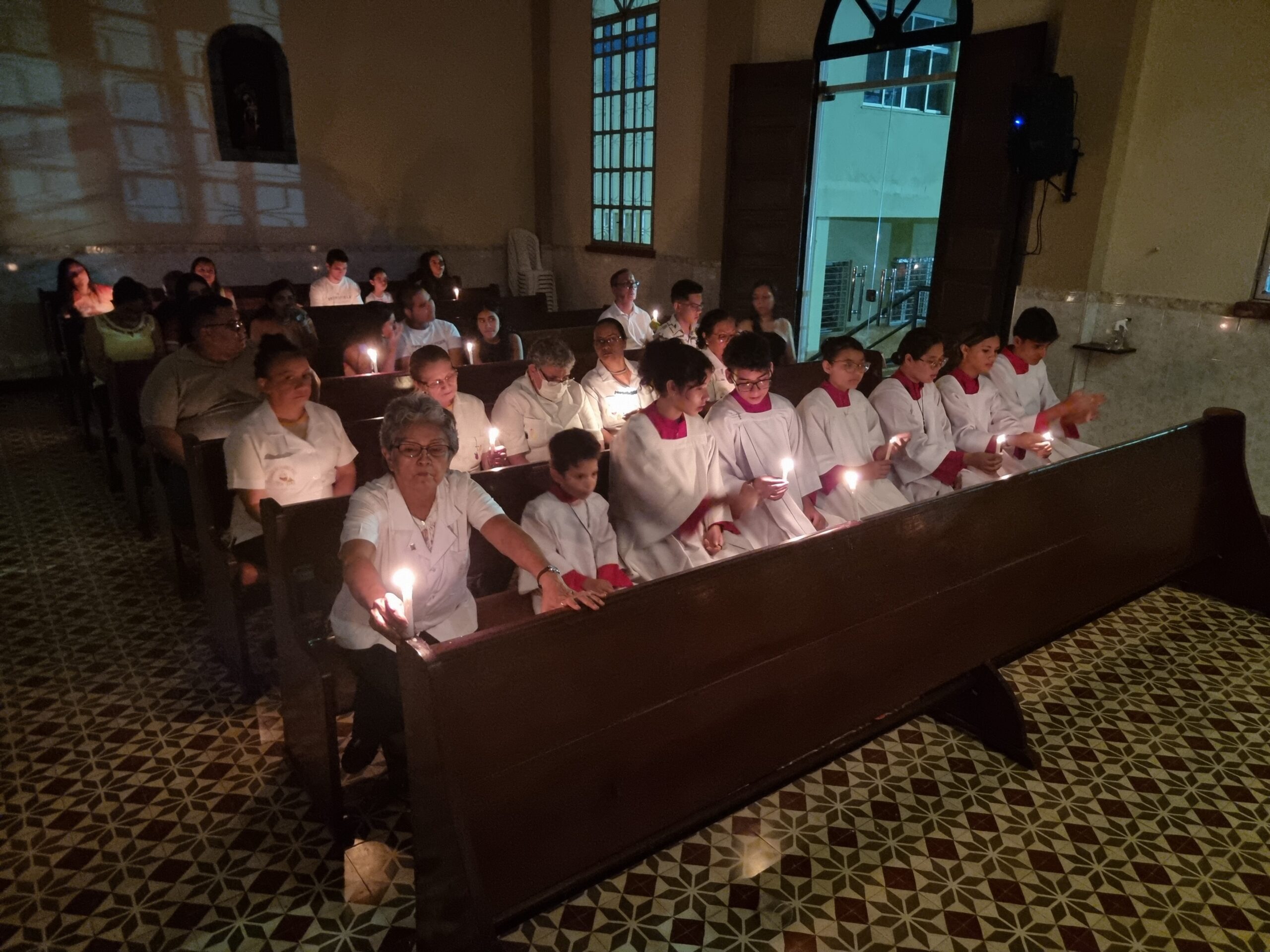 No Sábado Santo à noite 08 de abril, 2023, na comunidade São Raimundo Nonato celebraram a solene Vigília Pascal, quando se proclama a Ressurreição do Senhor. Com essa celebração chegamos ao ápice do Tríduo Pascal, iniciado na quinta-feira santa. Essa é a vigília das vigílias, dessa vigília provém todas as outras, é a celebração mais importante do ano. Na comunidade São Raimundo Nonato, ocorreu o batismo de dois adultos, em sua homilia, padre John ressaltou a alegria da ressurreição e esperança de vida nova, renovados com a Páscoa de Jesus.