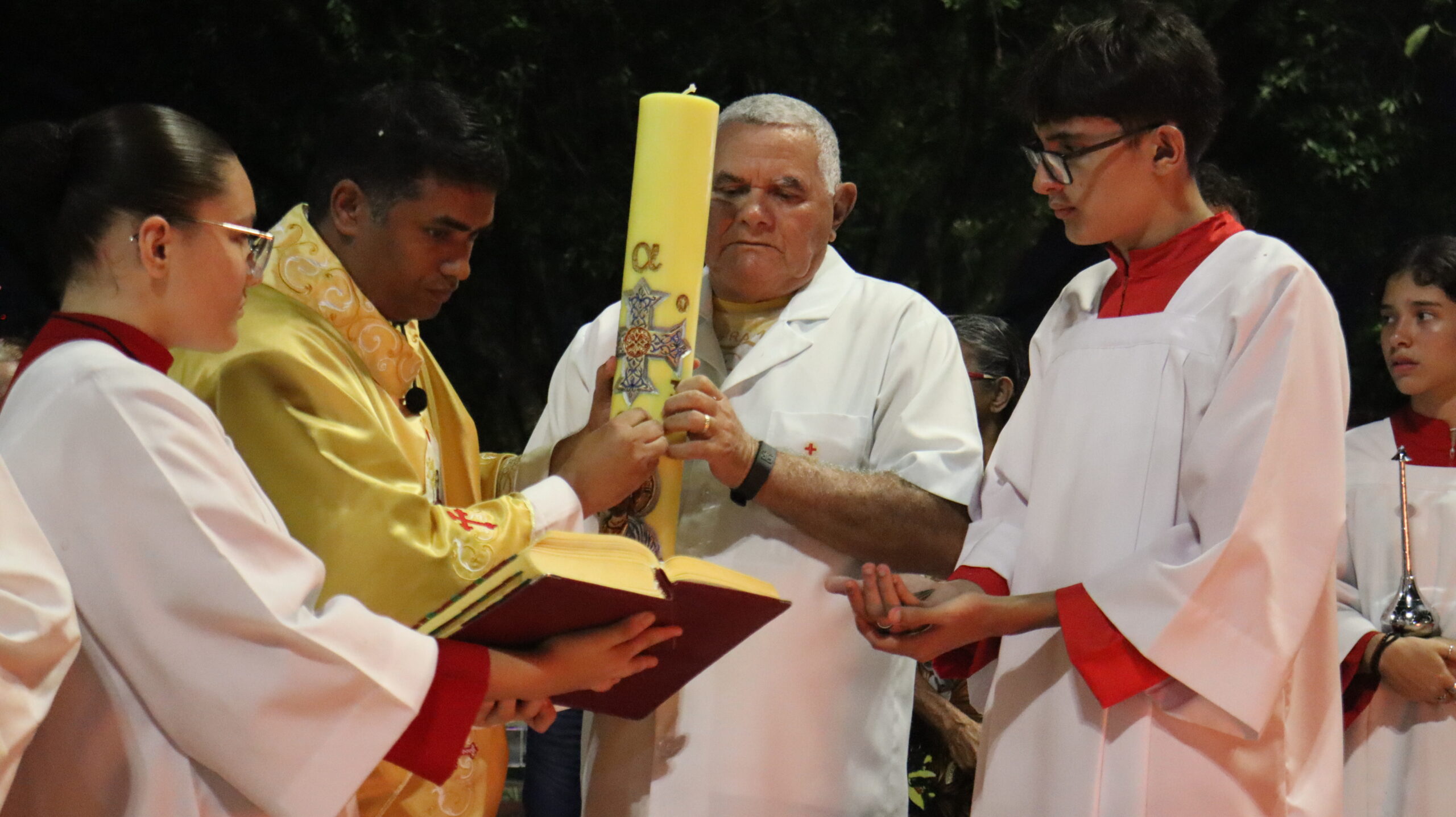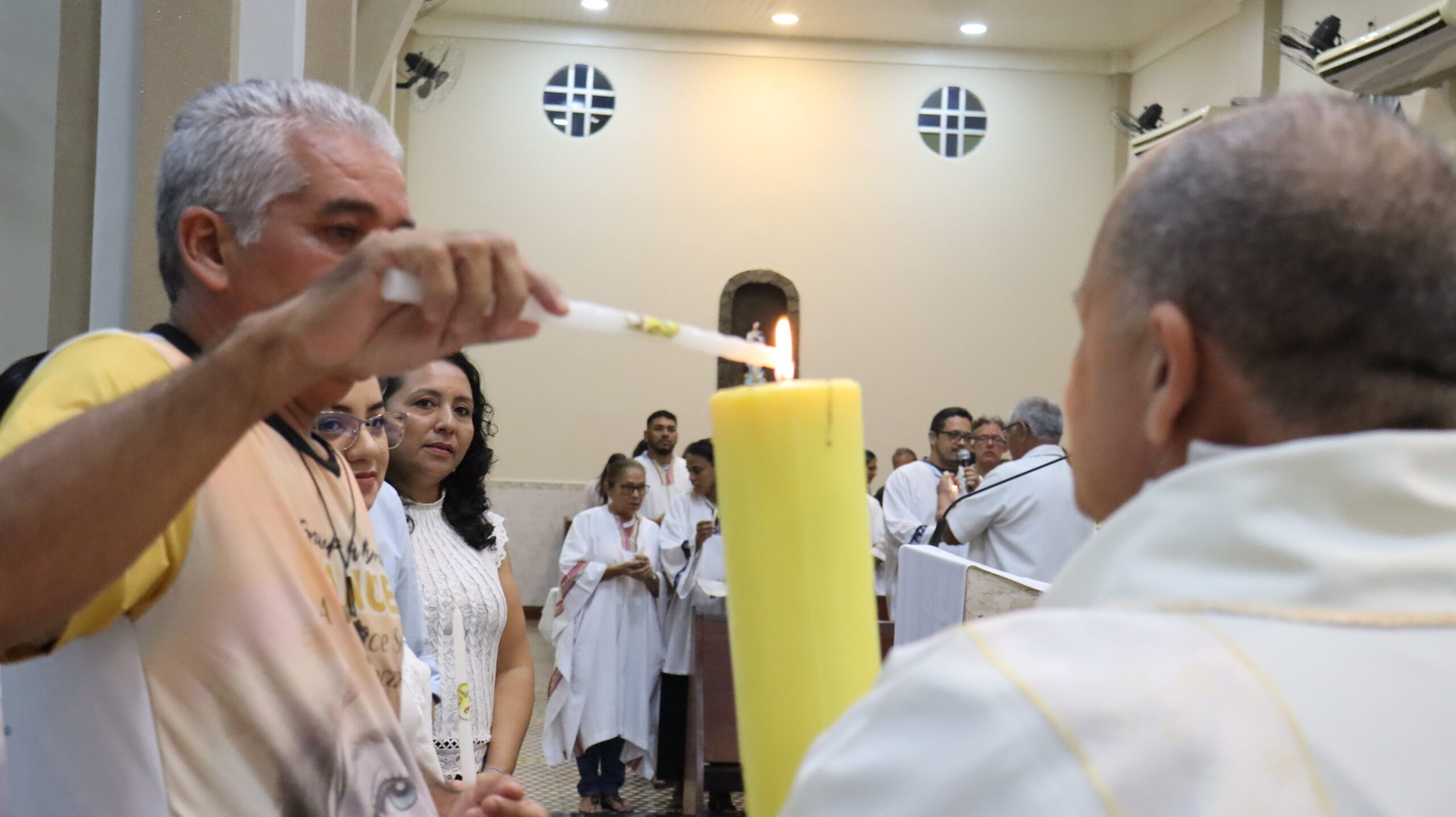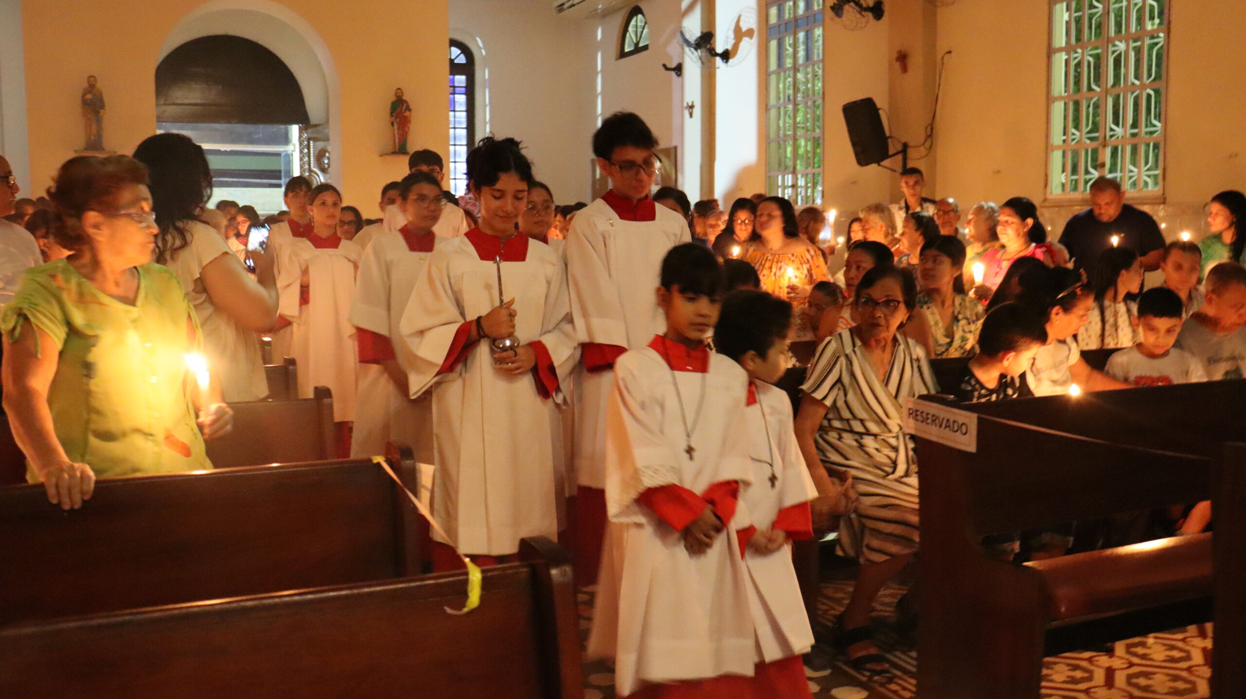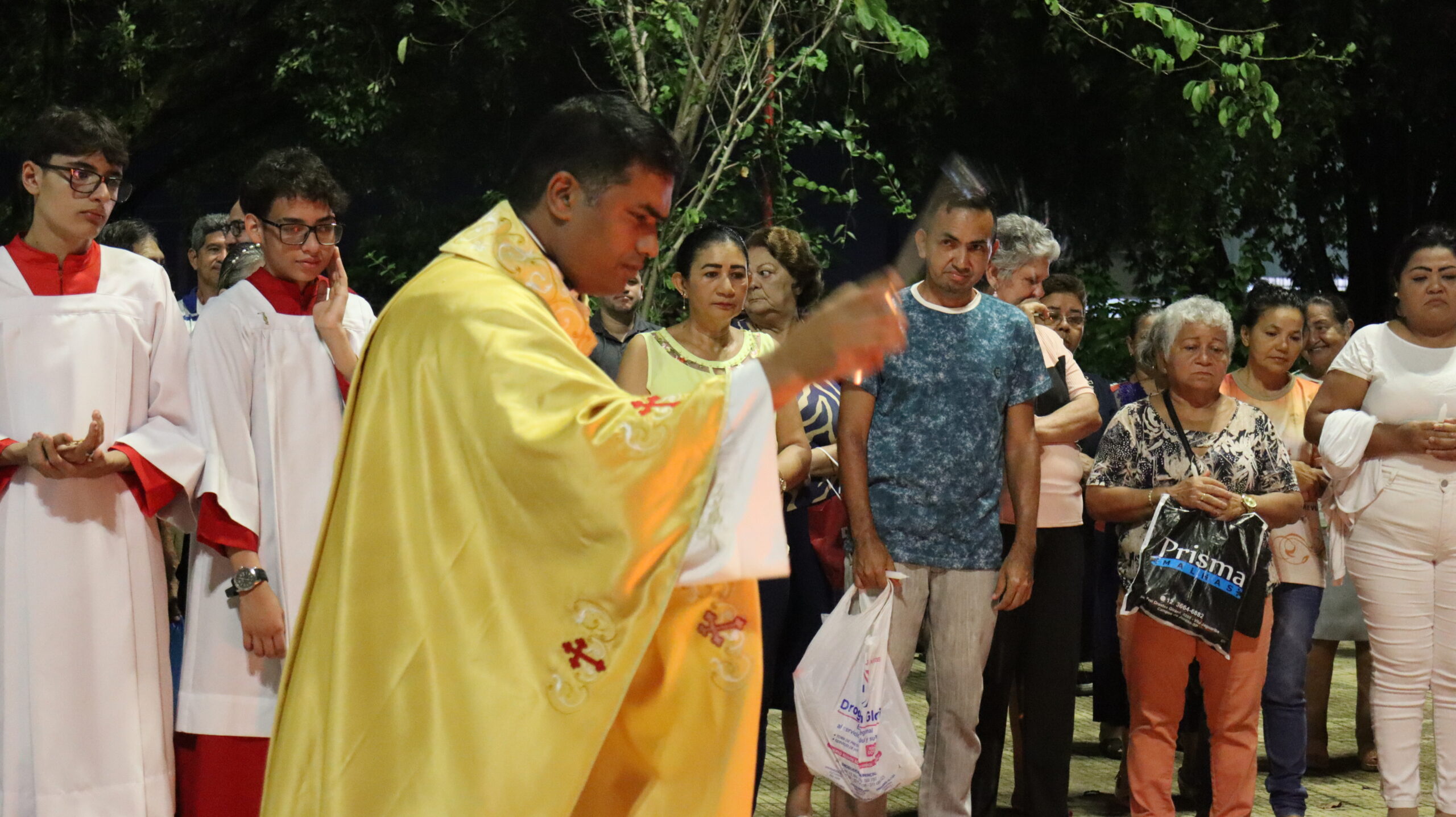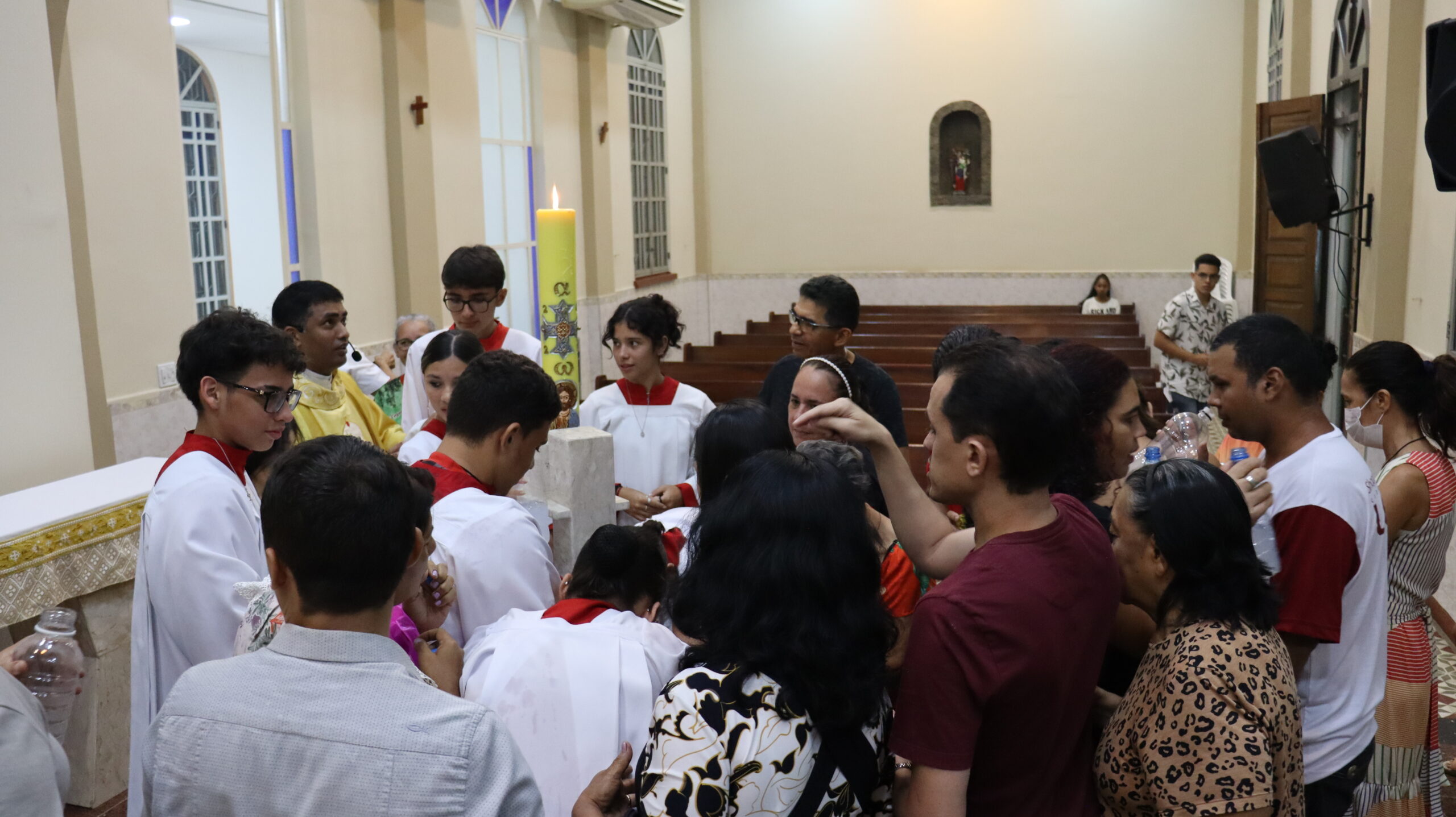 No Sábado Santo à noite 08 de abril, 2023, na comunidade São Raimundo Nonato celebraram a solene Vigília Pascal, quando se proclama a Ressurreição do Senhor. Com essa celebração chegamos ao ápice do Tríduo Pascal, iniciado na quinta-feira santa. Essa é a vigília das vigílias, dessa vigília provém todas as outras, é a celebração mais importante do ano. Na comunidade São Raimundo Nonato, ocorreu o batismo de dois adultos, em sua homilia, padre John ressaltou a alegria da ressurreição e esperança de vida nova, renovados com a Páscoa de Jesus.