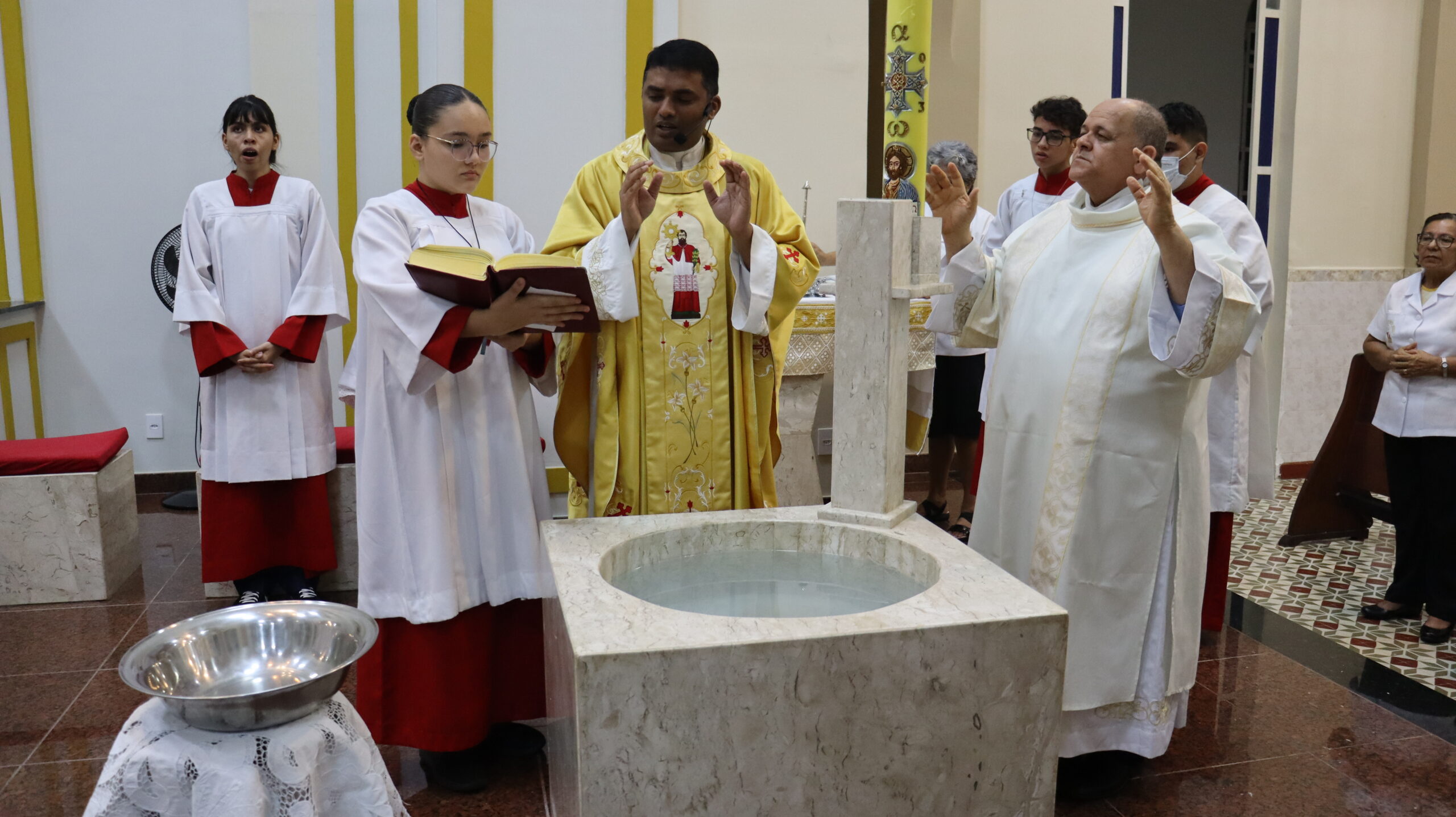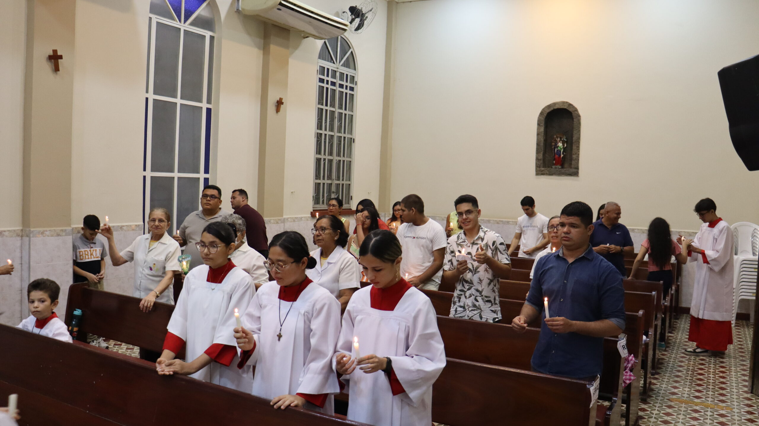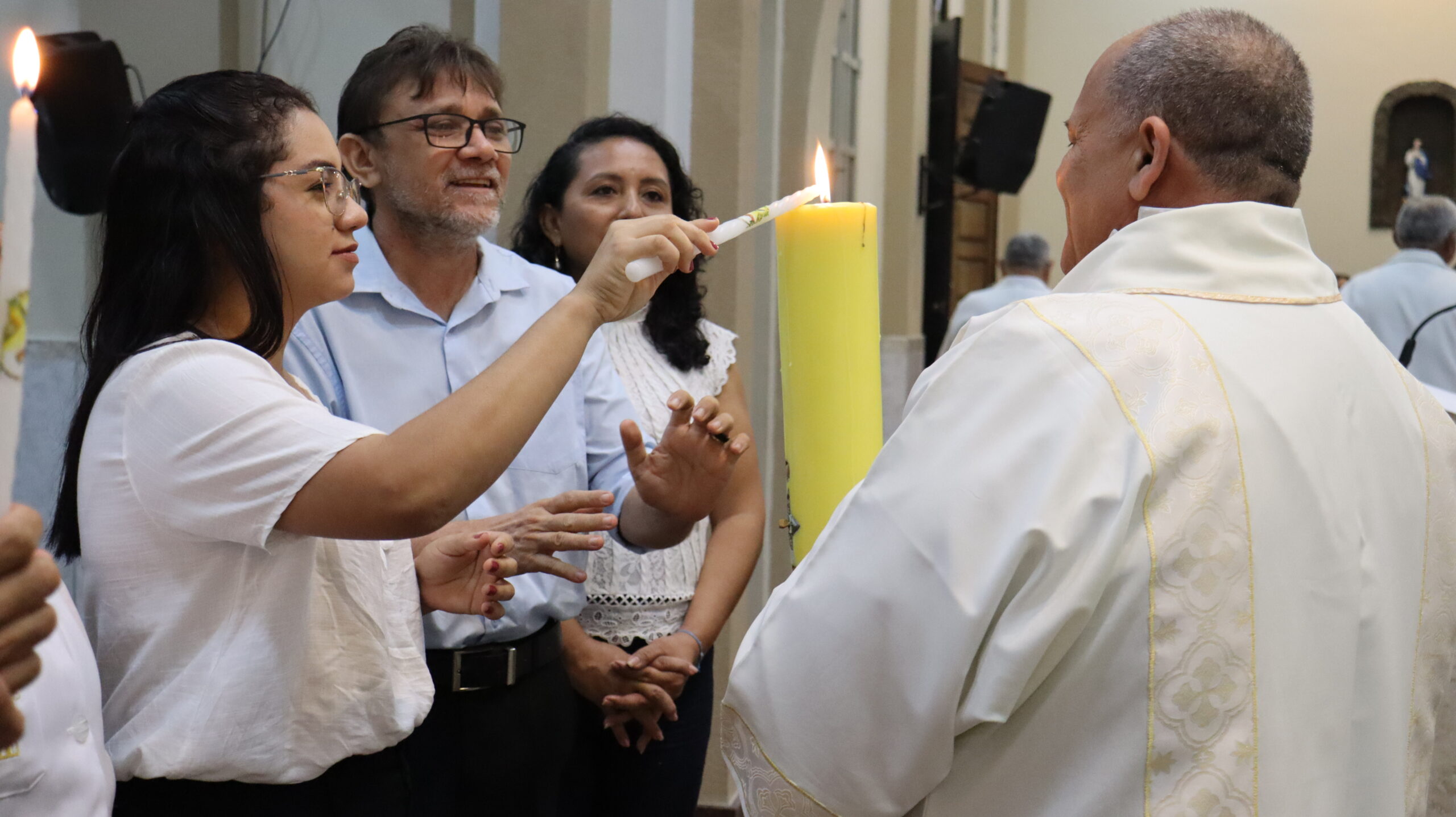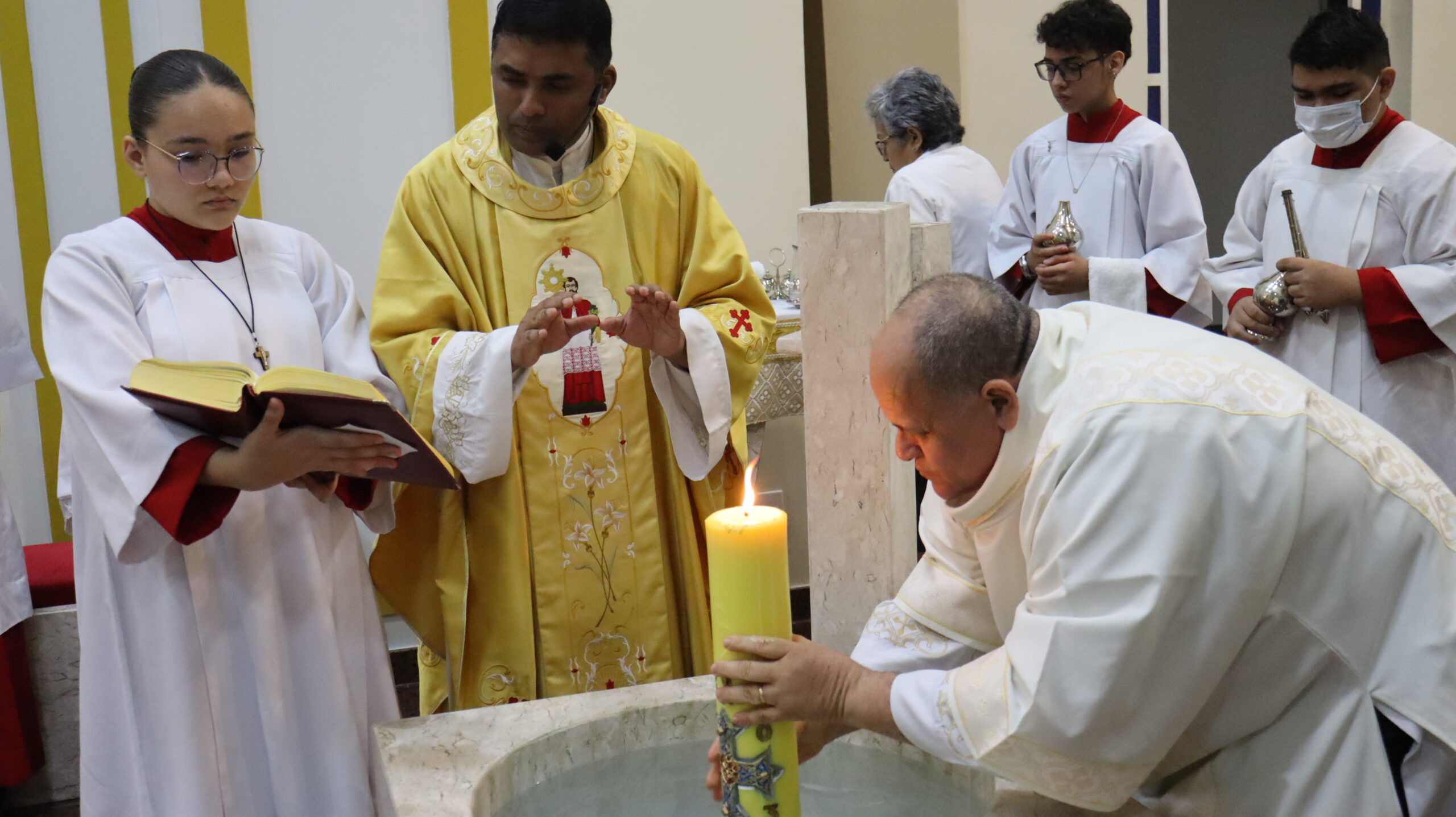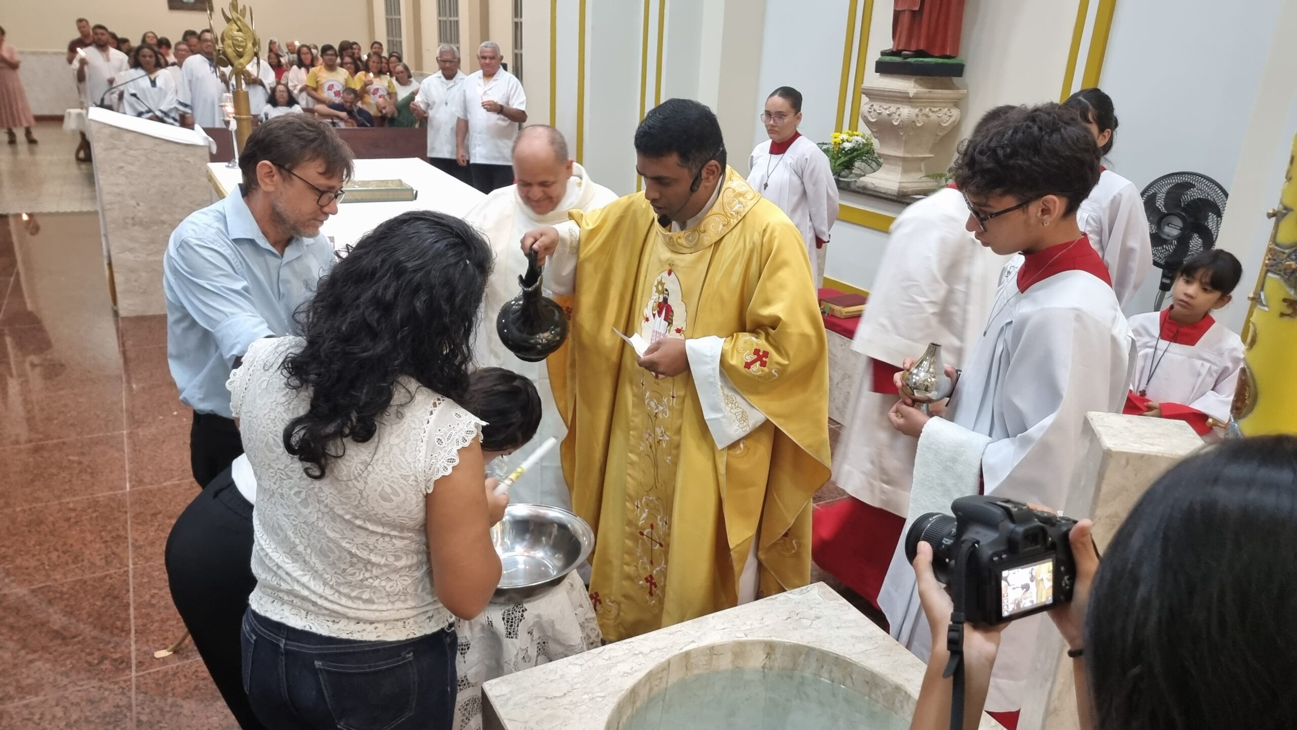 No Sábado Santo à noite 08 de abril, 2023, na comunidade São Raimundo Nonato celebraram a solene Vigília Pascal, quando se proclama a Ressurreição do Senhor. Com essa celebração chegamos ao ápice do Tríduo Pascal, iniciado na quinta-feira santa. Essa é a vigília das vigílias, dessa vigília provém todas as outras, é a celebração mais importante do ano. Na comunidade São Raimundo Nonato, ocorreu o batismo de dois adultos, em sua homilia, padre John ressaltou a alegria da ressurreição e esperança de vida nova, renovados com a Páscoa de Jesus.