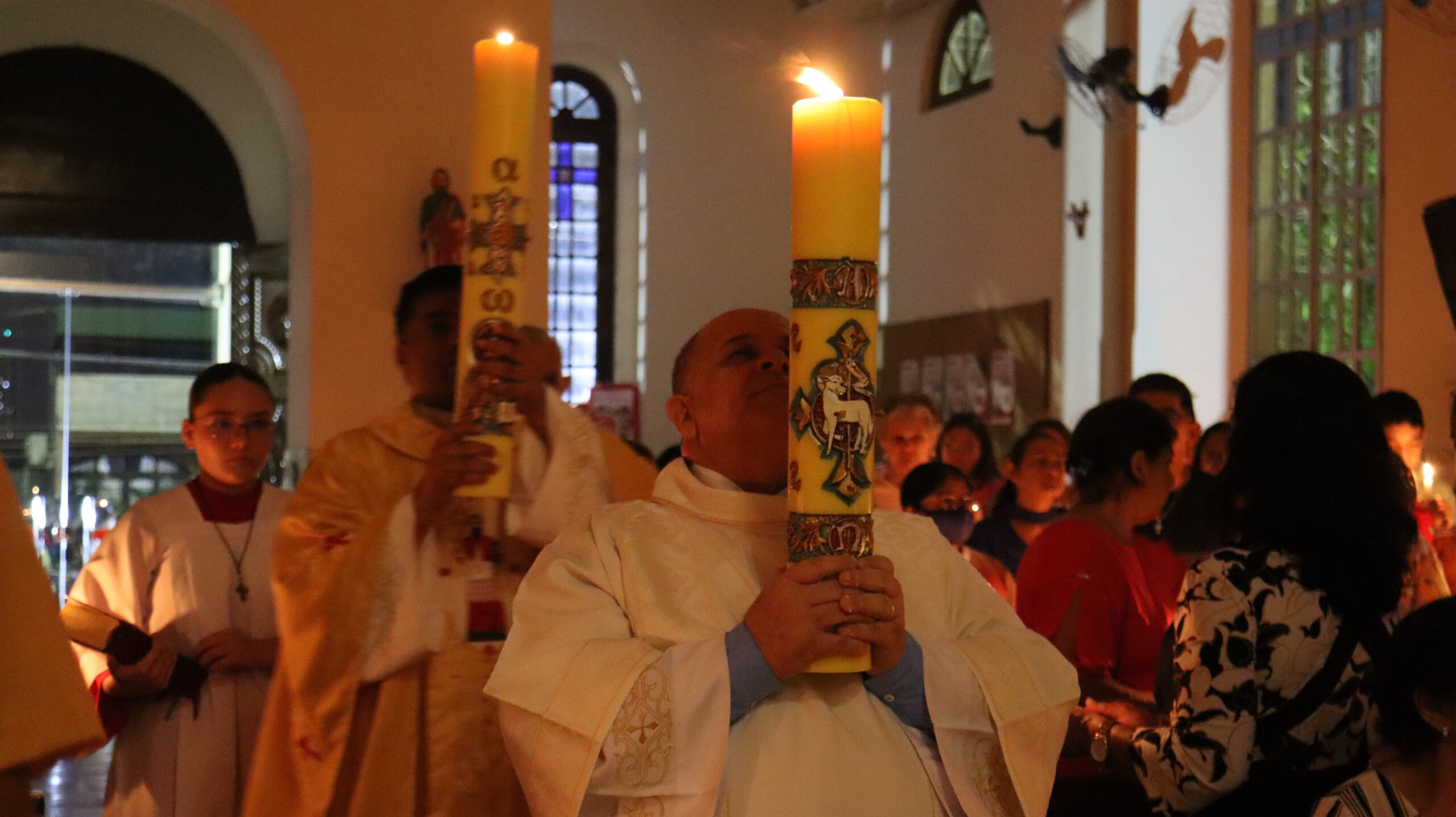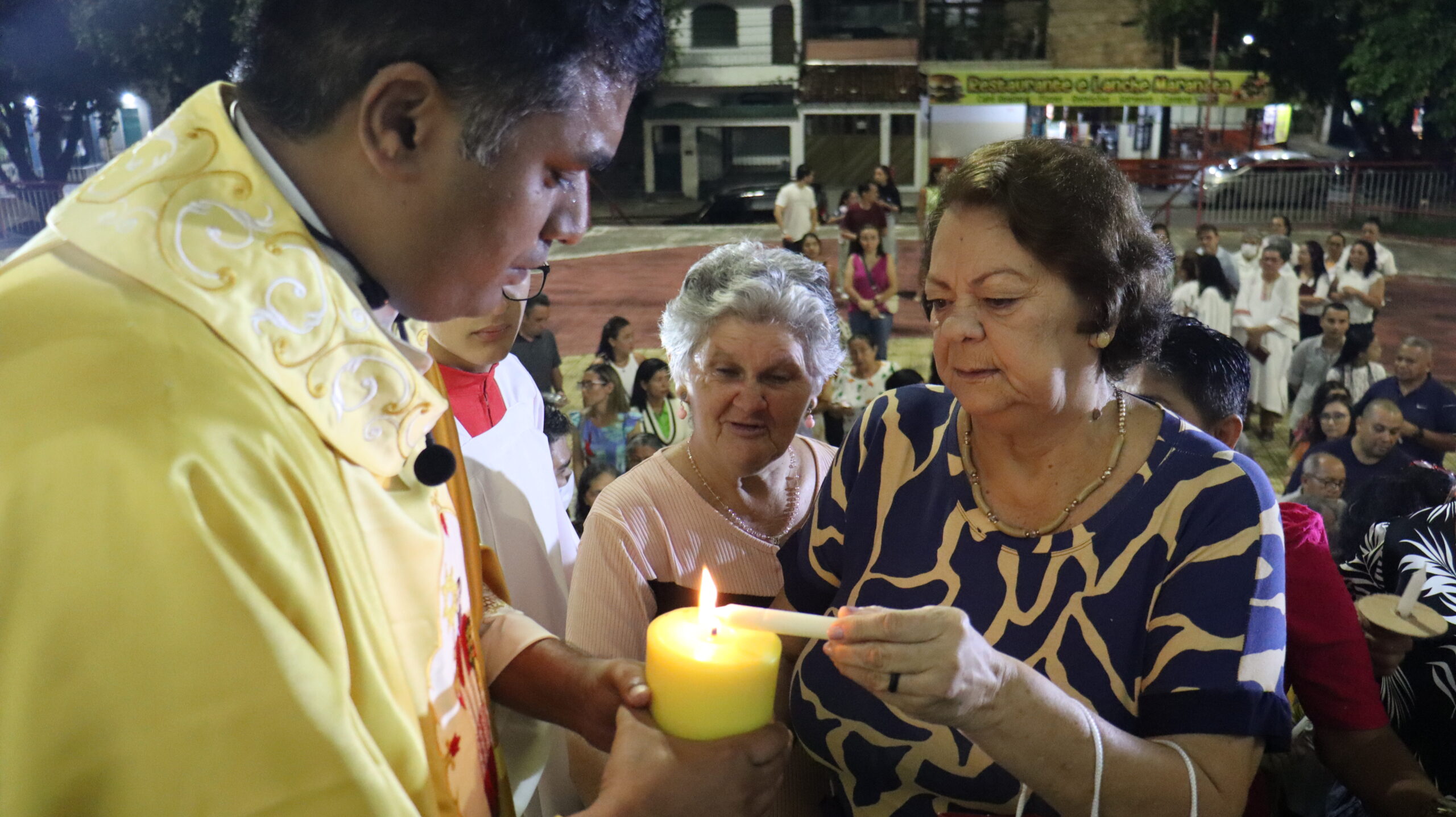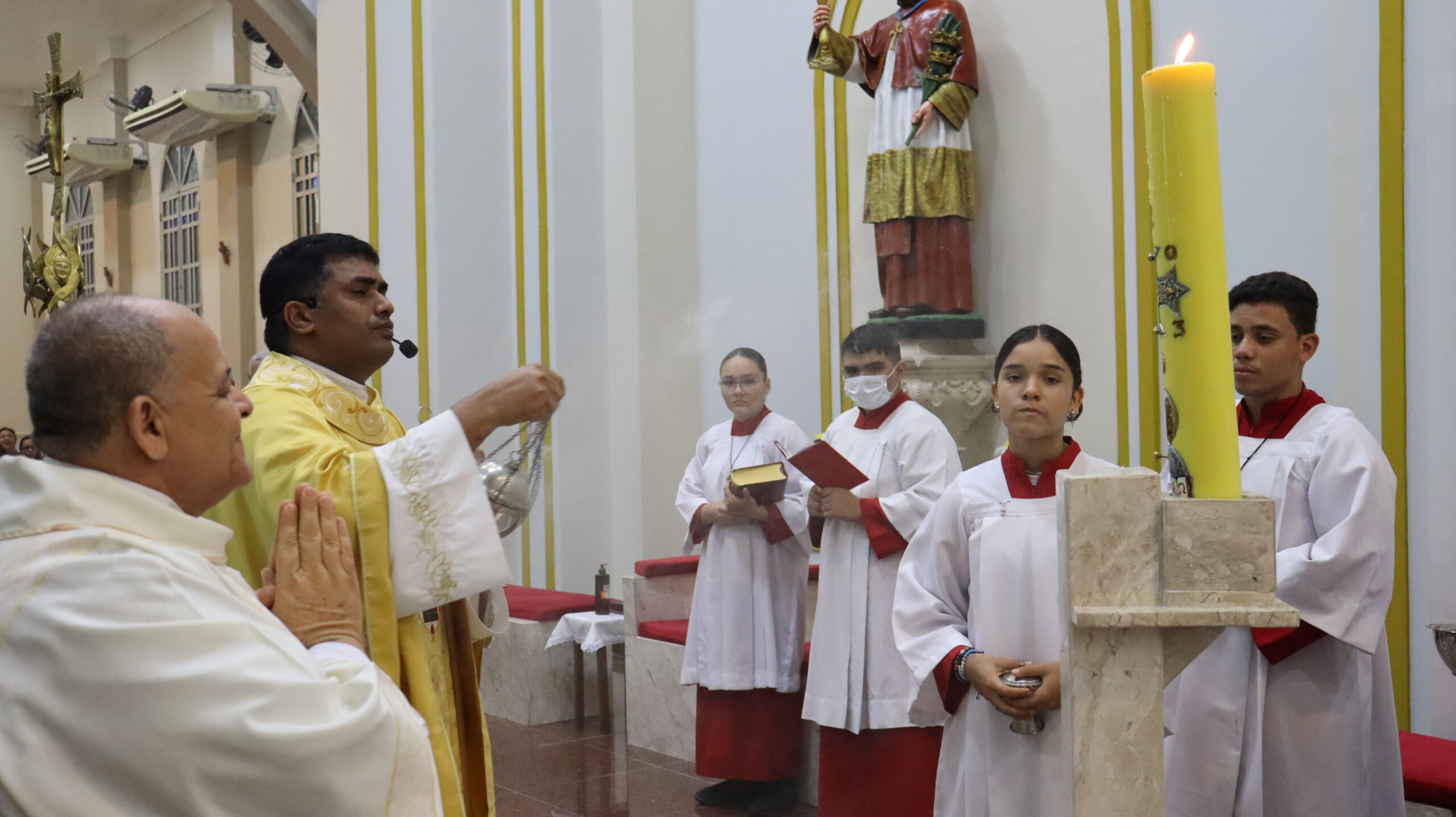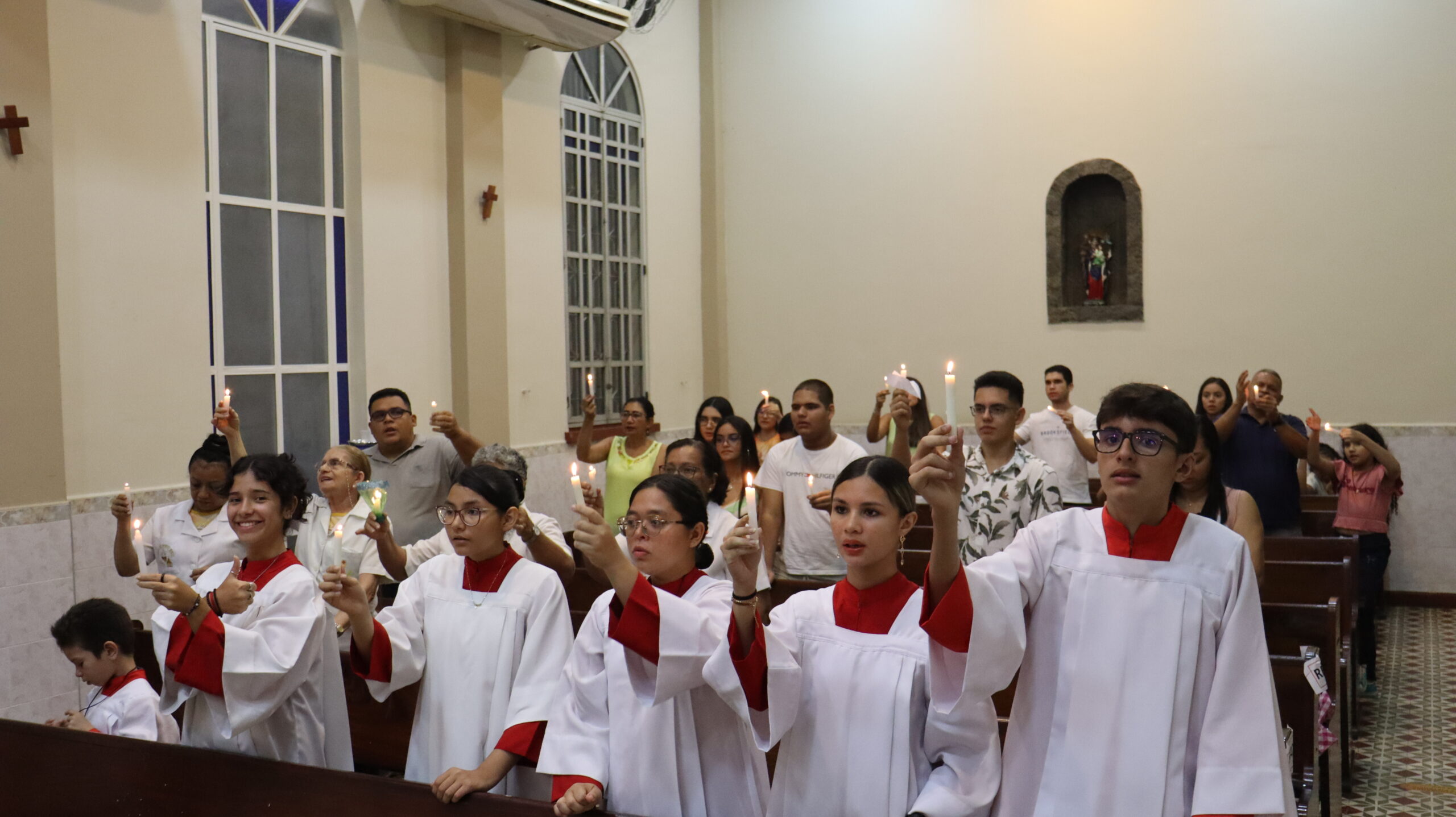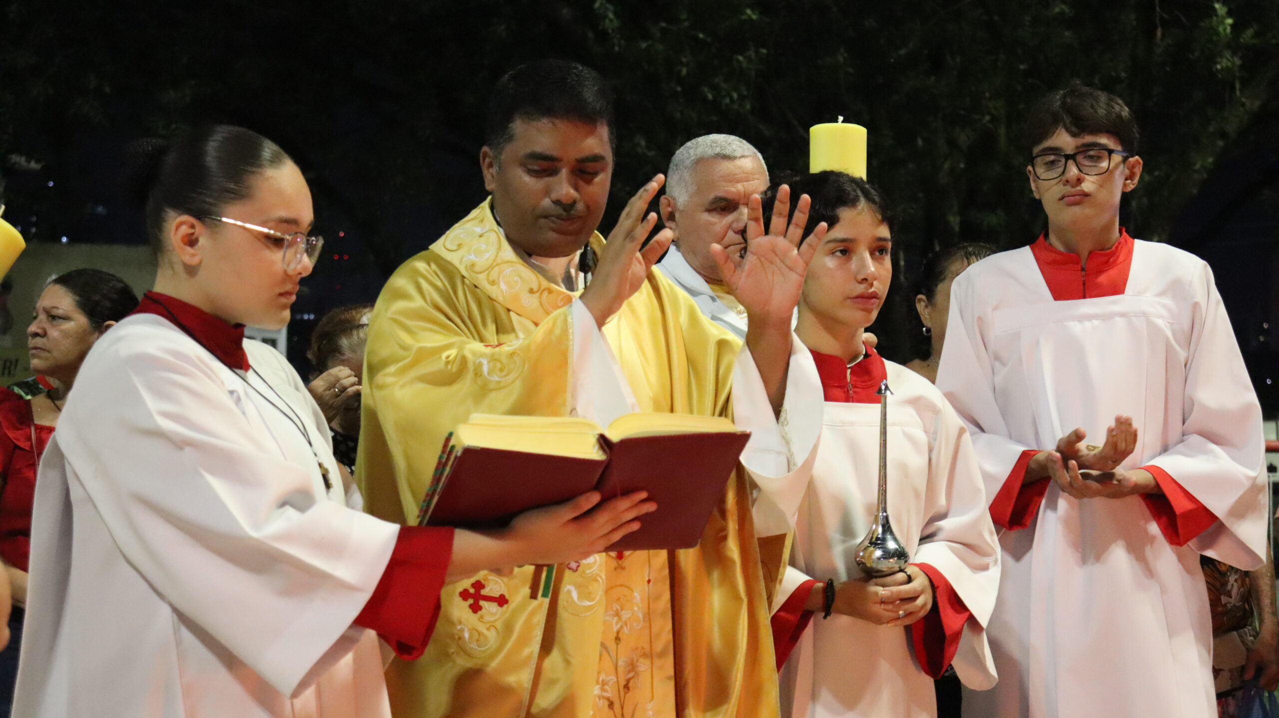 No Sábado Santo à noite 08 de abril, 2023, na comunidade São Raimundo Nonato celebraram a solene Vigília Pascal, quando se proclama a Ressurreição do Senhor. Com essa celebração chegamos ao ápice do Tríduo Pascal, iniciado na quinta-feira santa. Essa é a vigília das vigílias, dessa vigília provém todas as outras, é a celebração mais importante do ano. Na comunidade São Raimundo Nonato, ocorreu o batismo de dois adultos, em sua homilia, padre John ressaltou a alegria da ressurreição e esperança de vida nova, renovados com a Páscoa de Jesus.